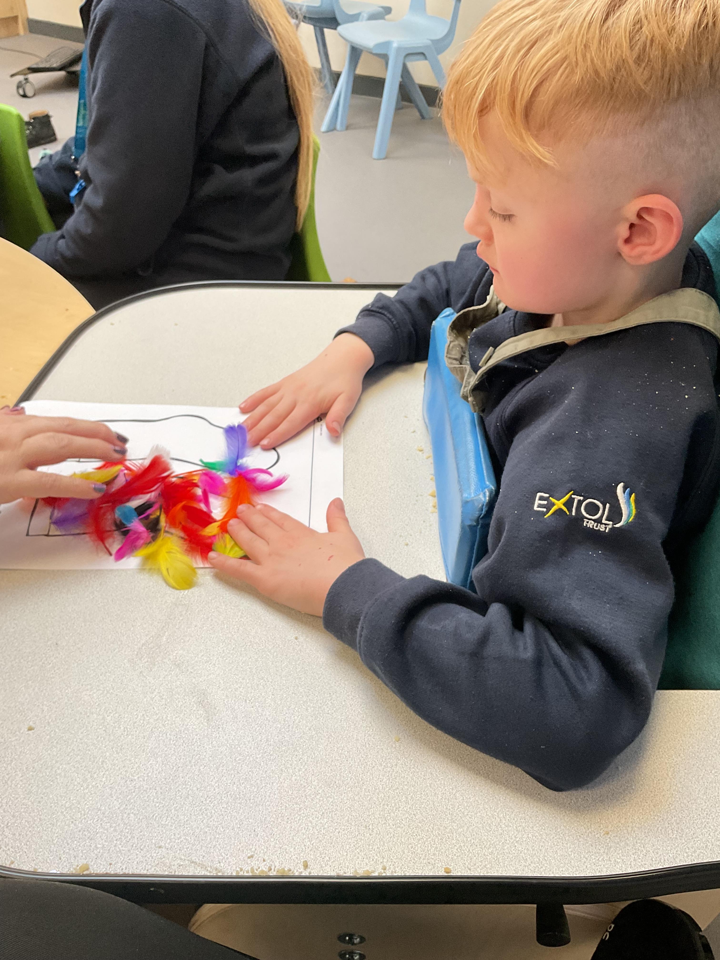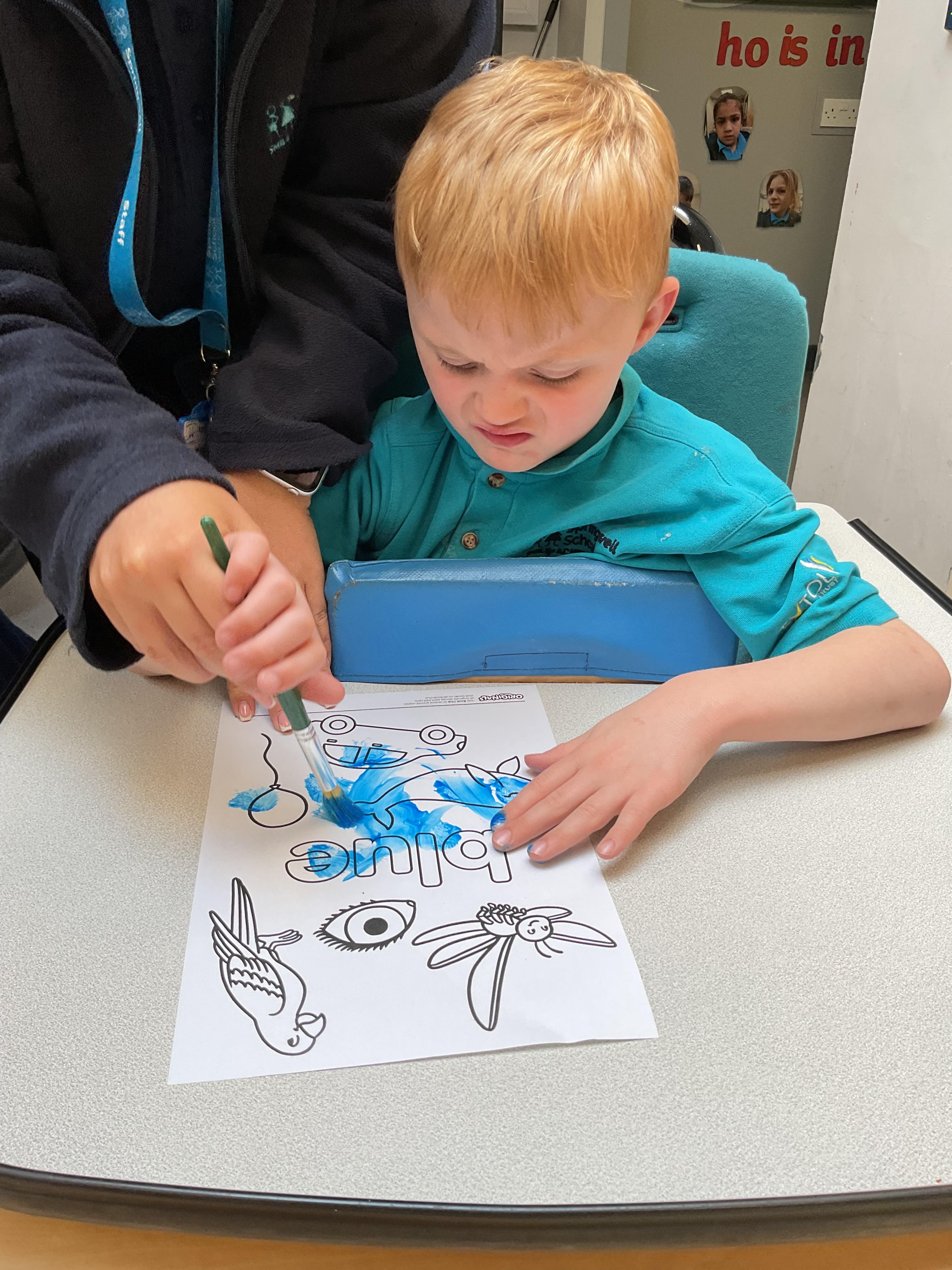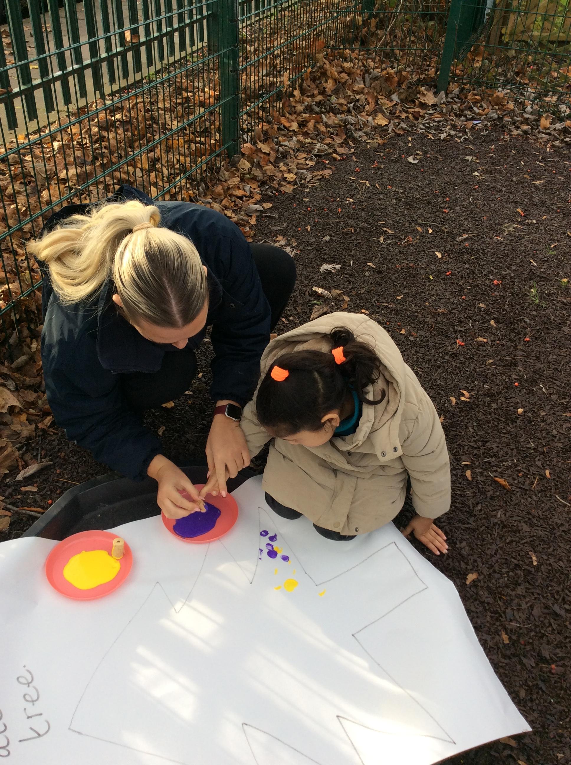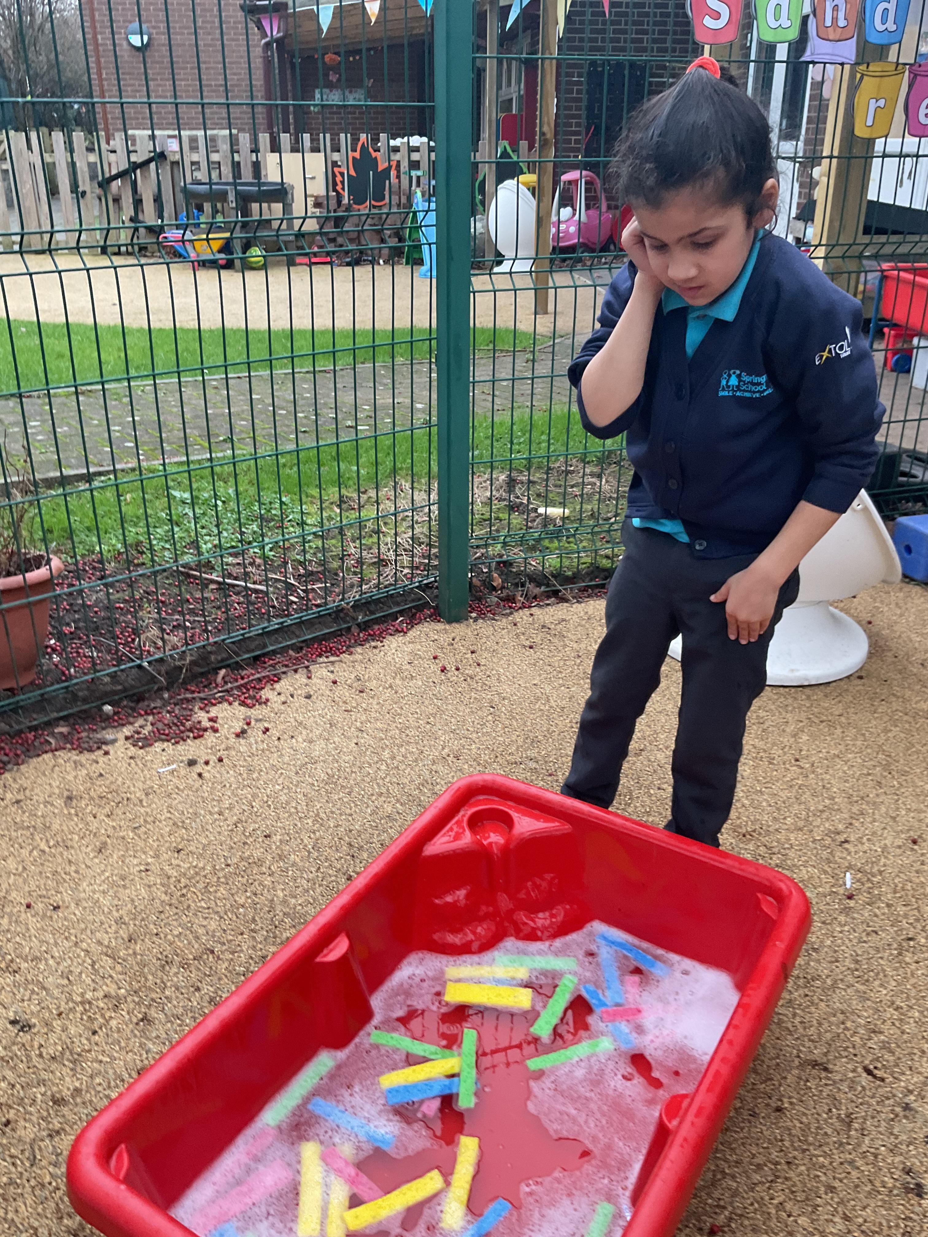 A very busy day today, learning all about colour, we all listened to a colour song and explored our favourite colours. We then explored outside and found different colour sponges