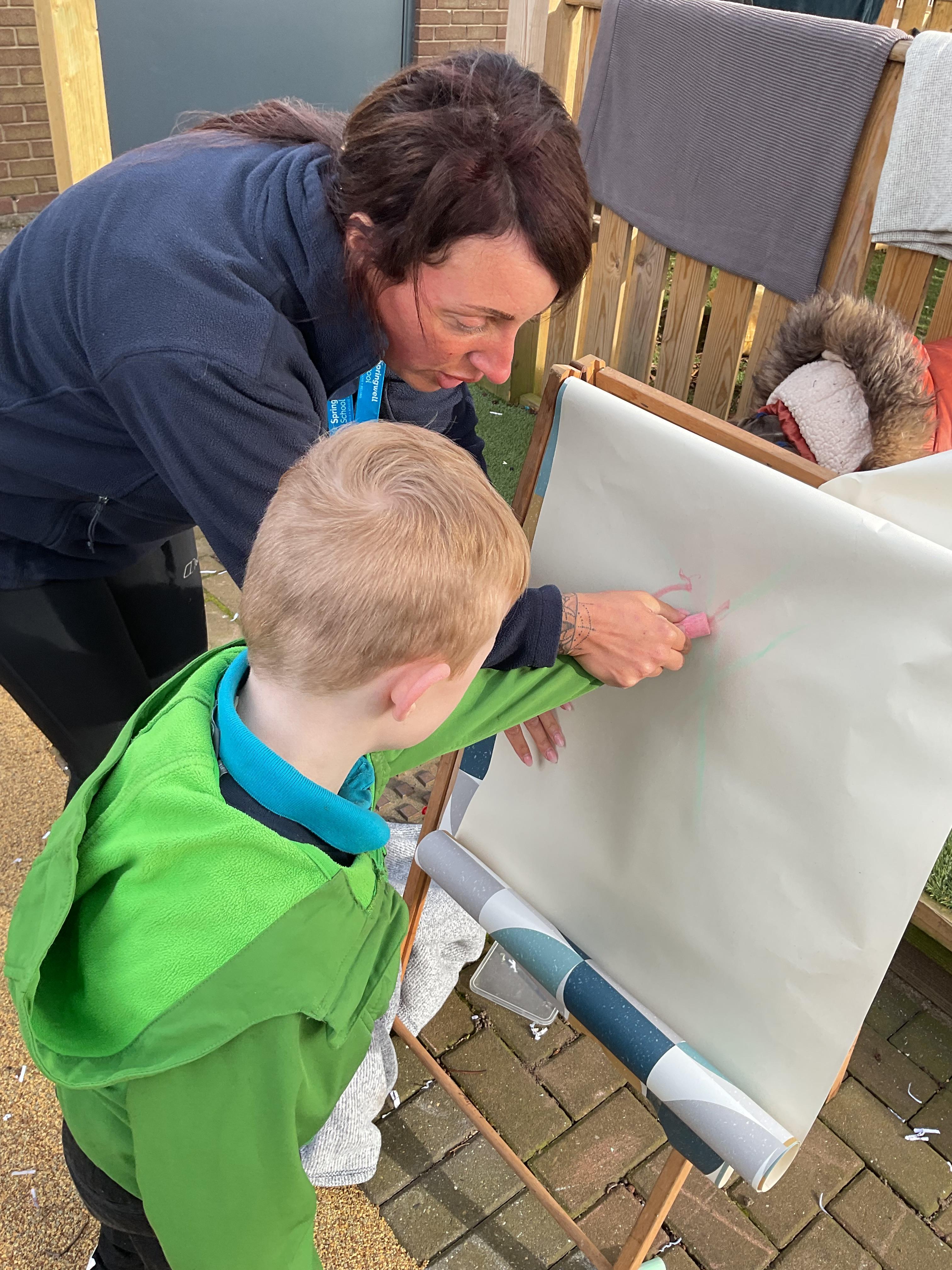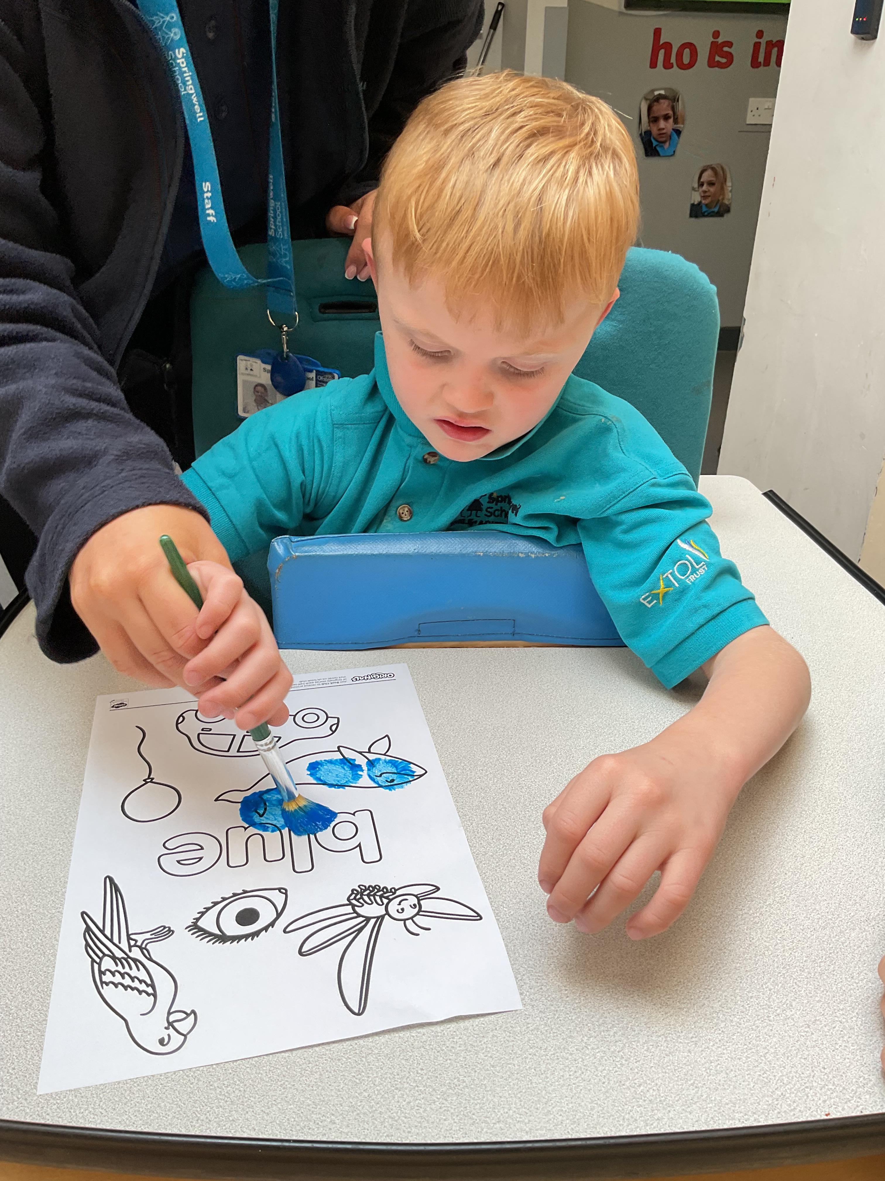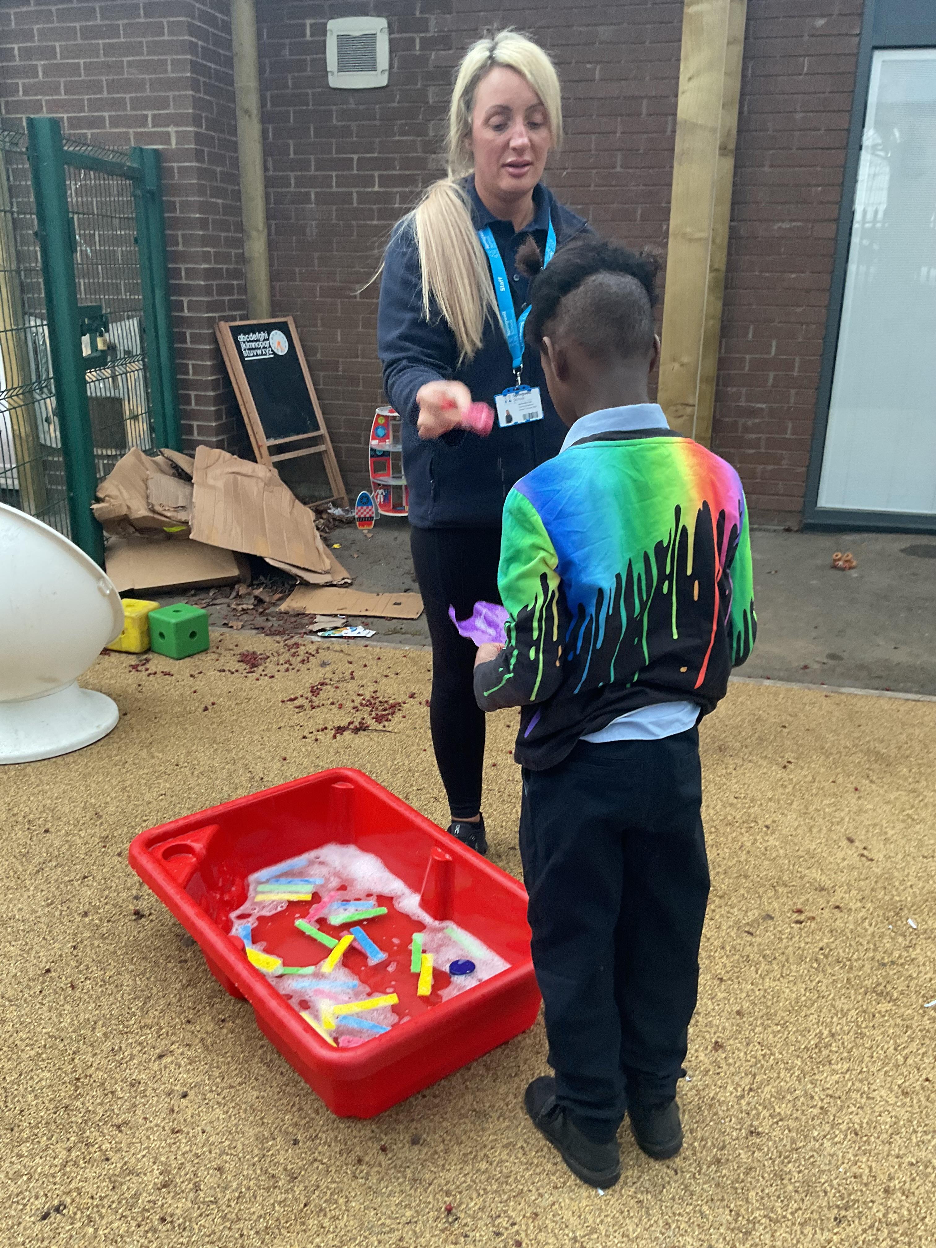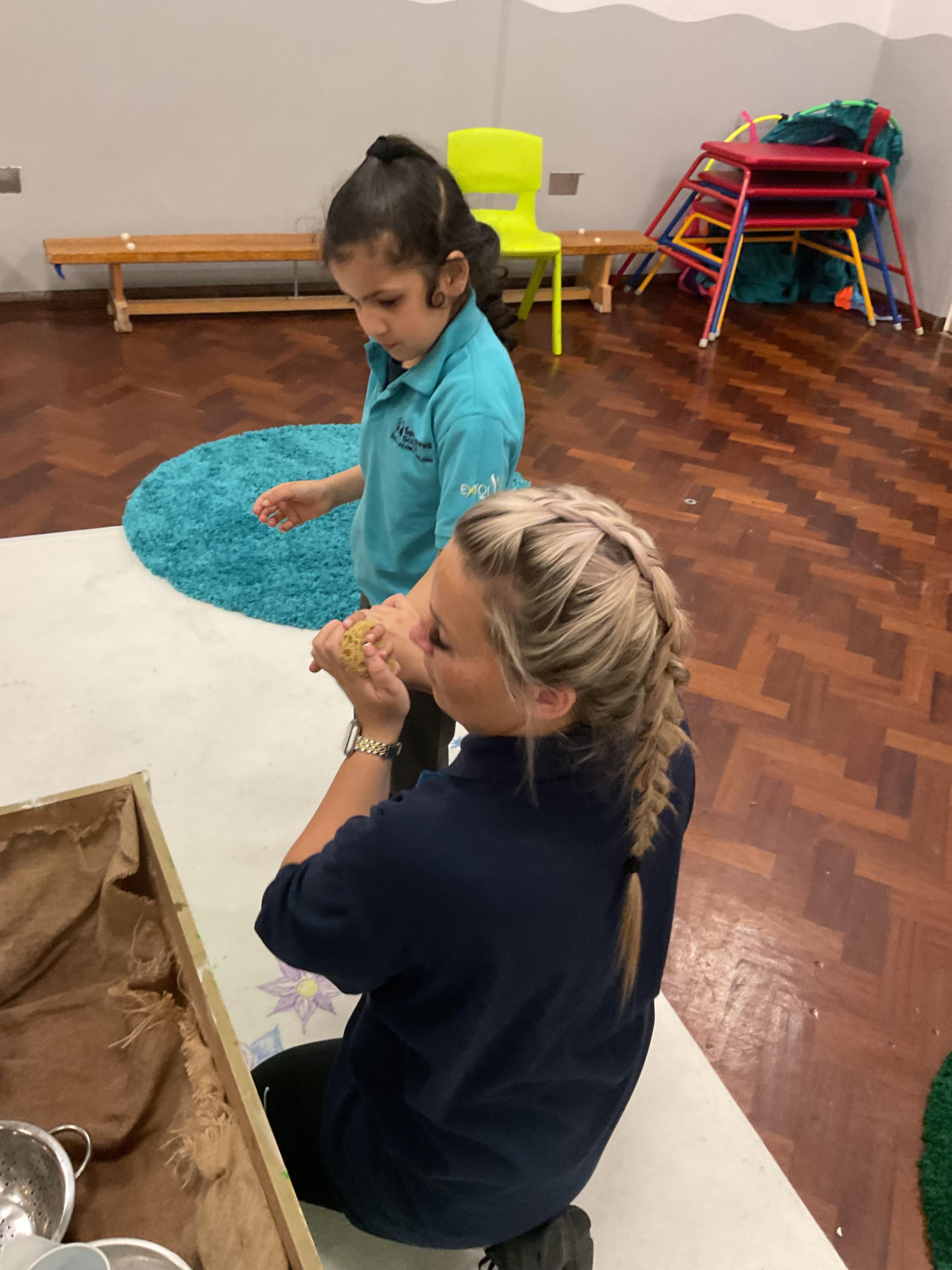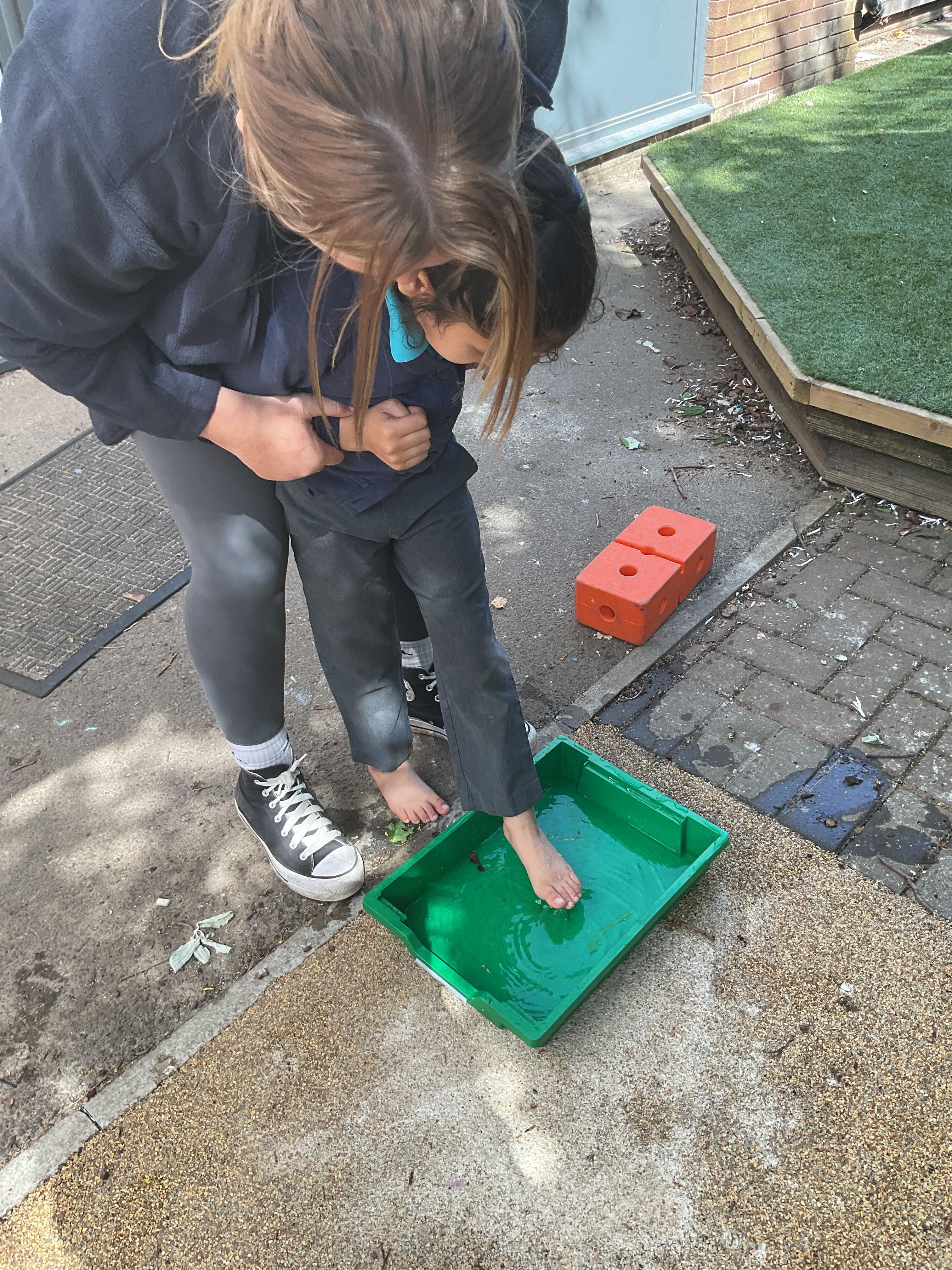 A very busy day today, learning all about colour, we all listened to a colour song and explored our favourite colours. We then explored outside and found different colour sponges