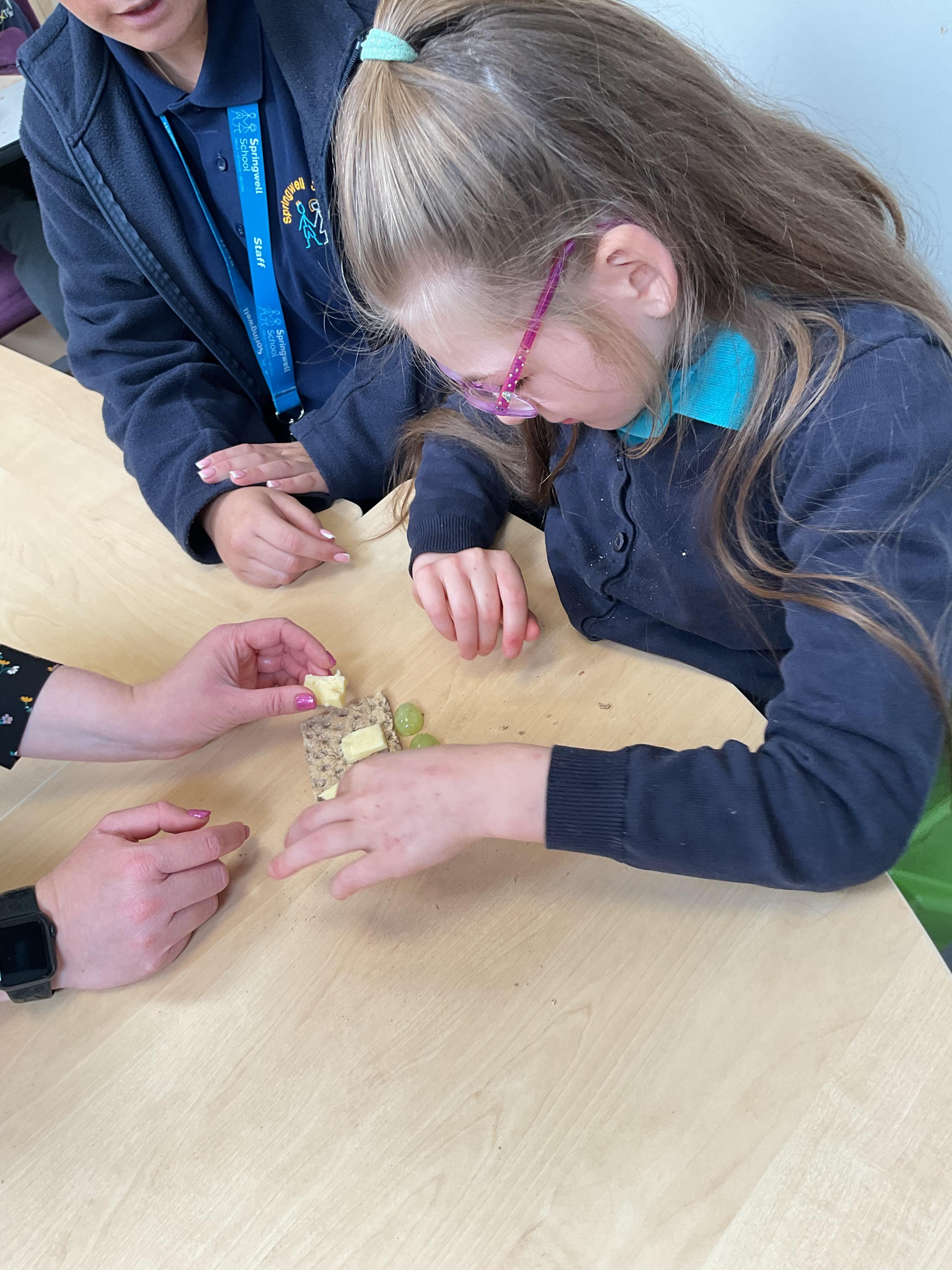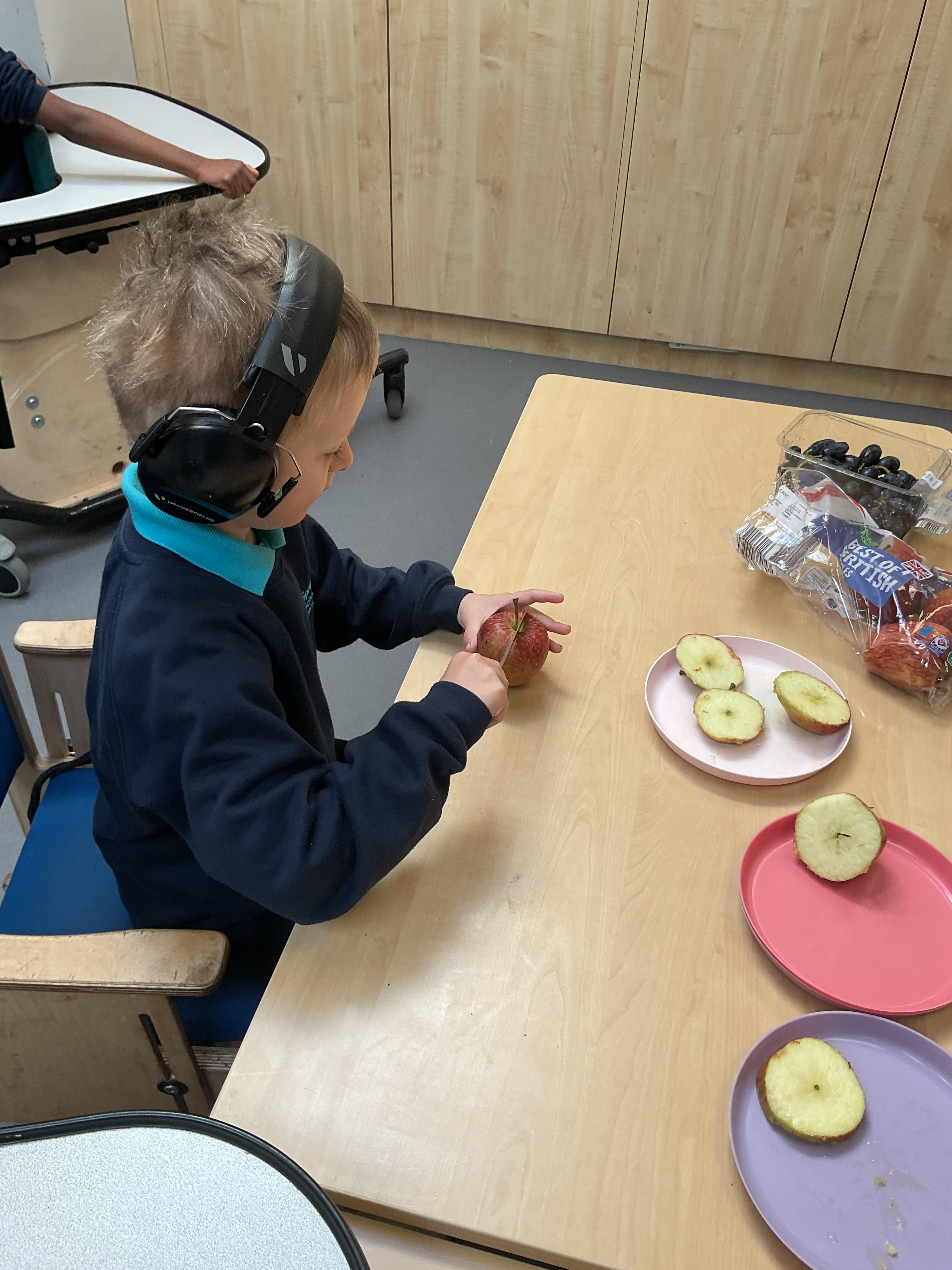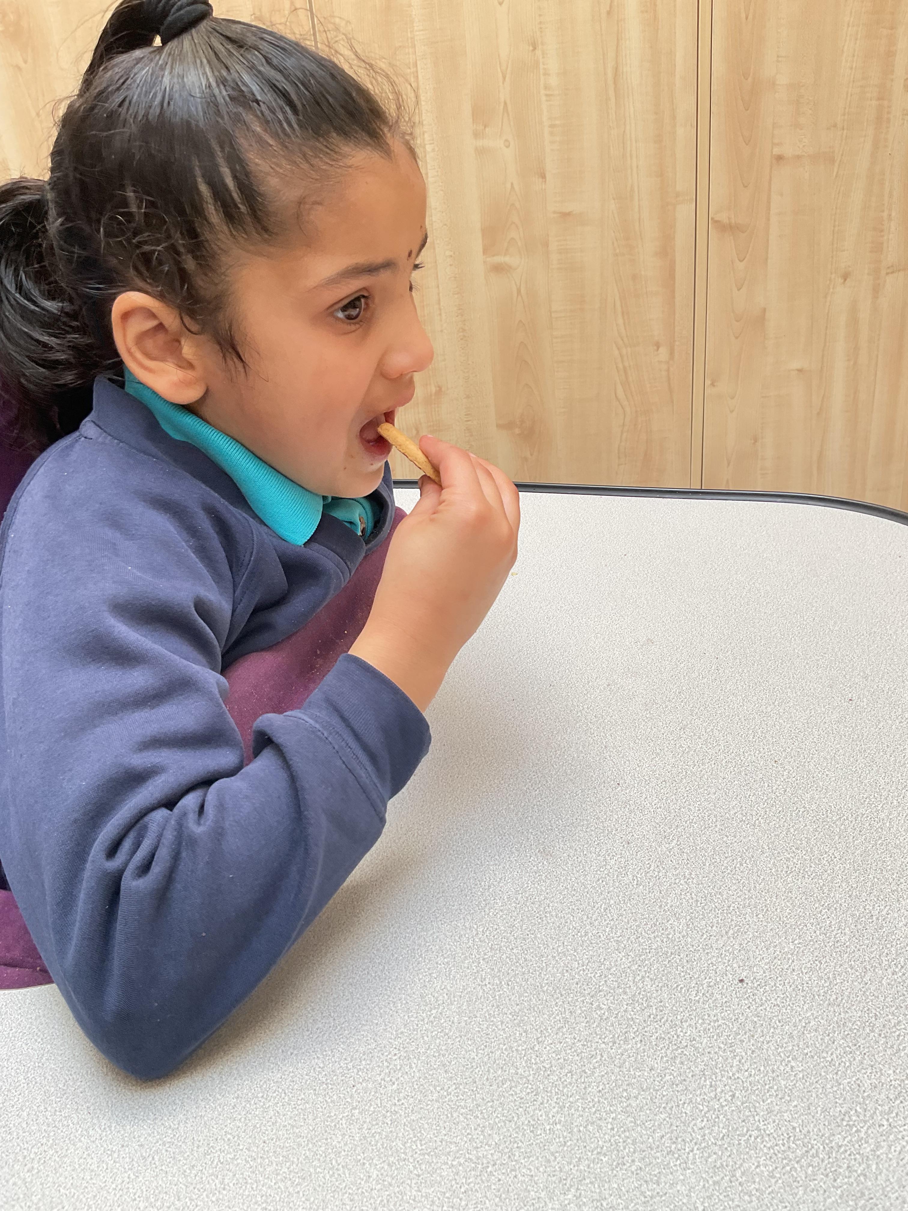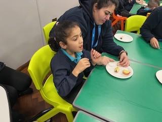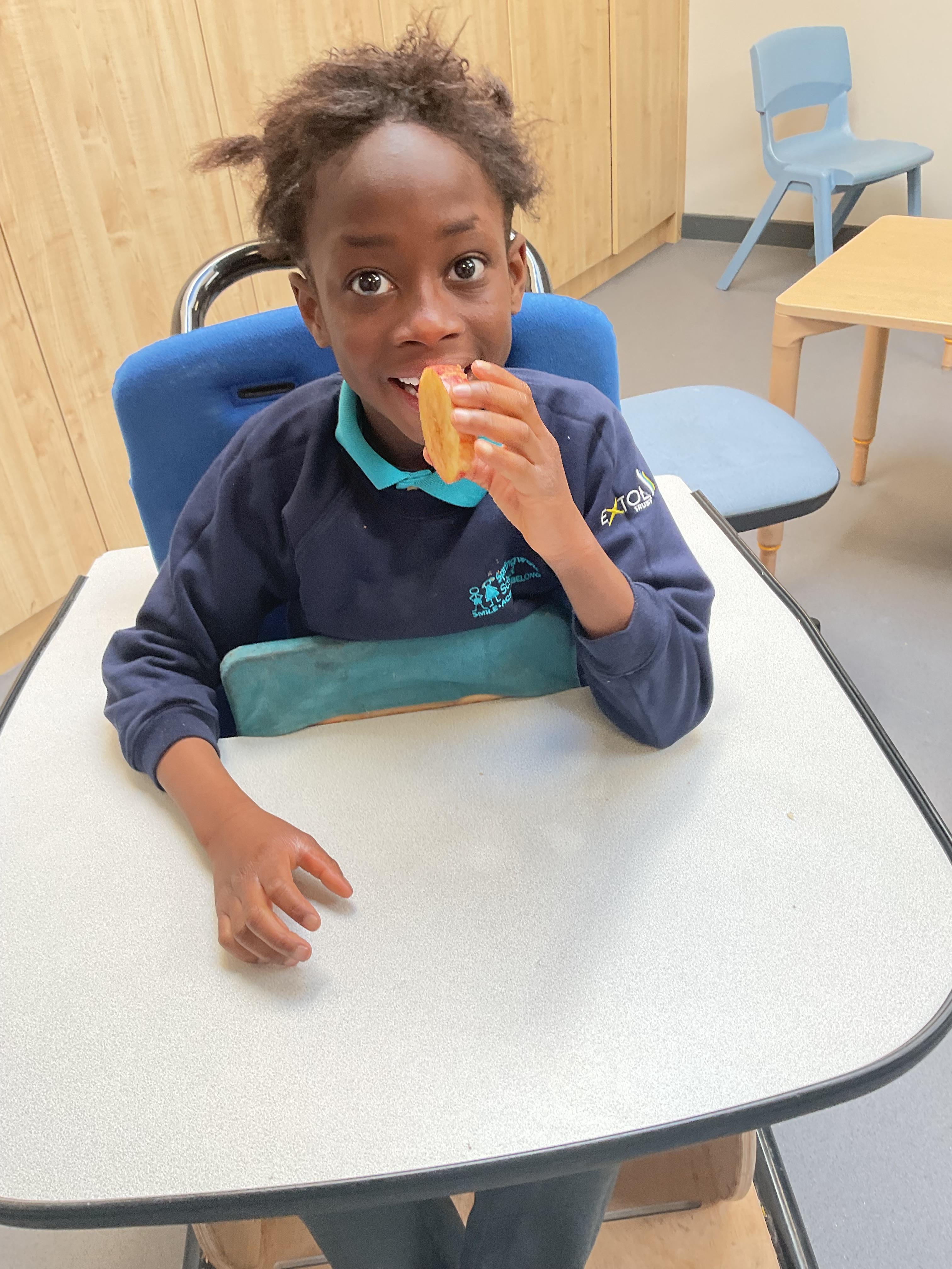 Today, it was our Wednesday assembly. We learnt the Makaton signs for lots of different types of food and then we tried to cut them up and taste them. Some of the vegetables we liked very much and some, we did not like at all!