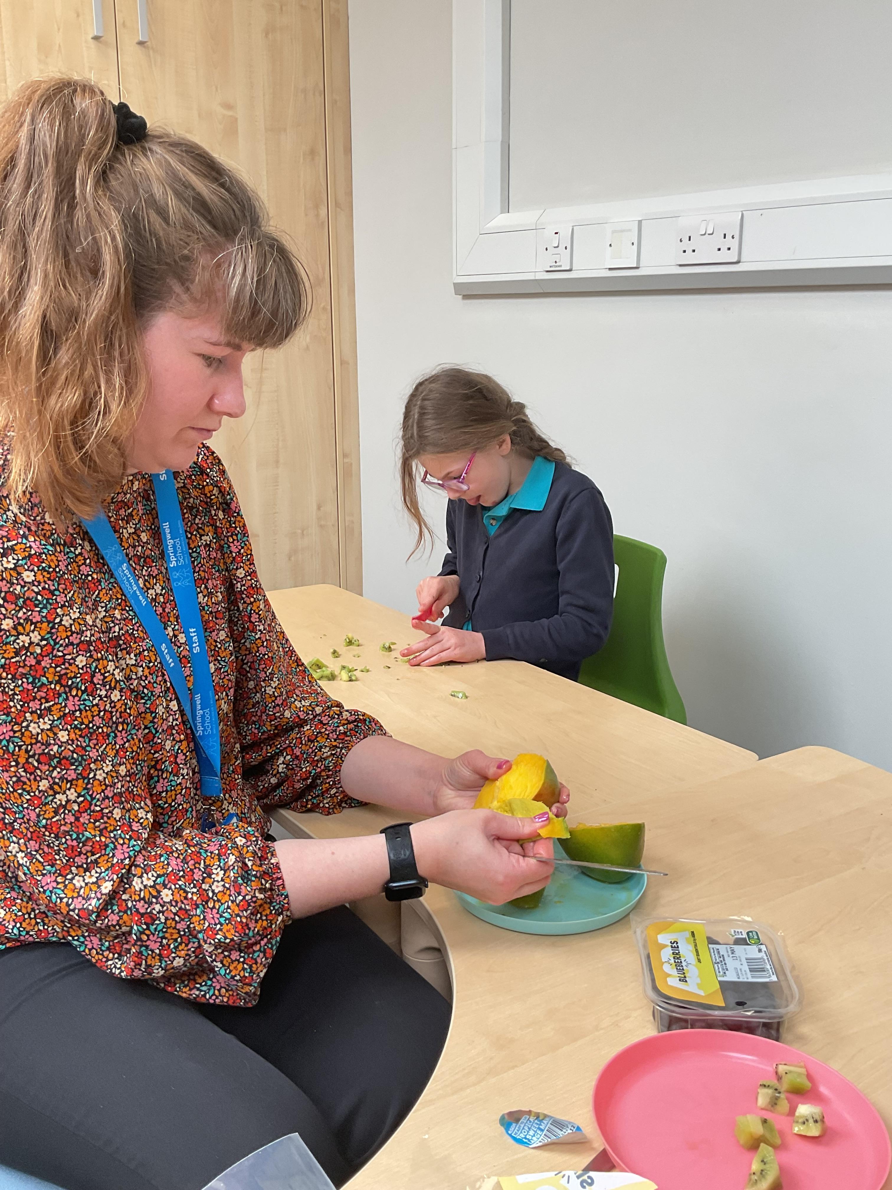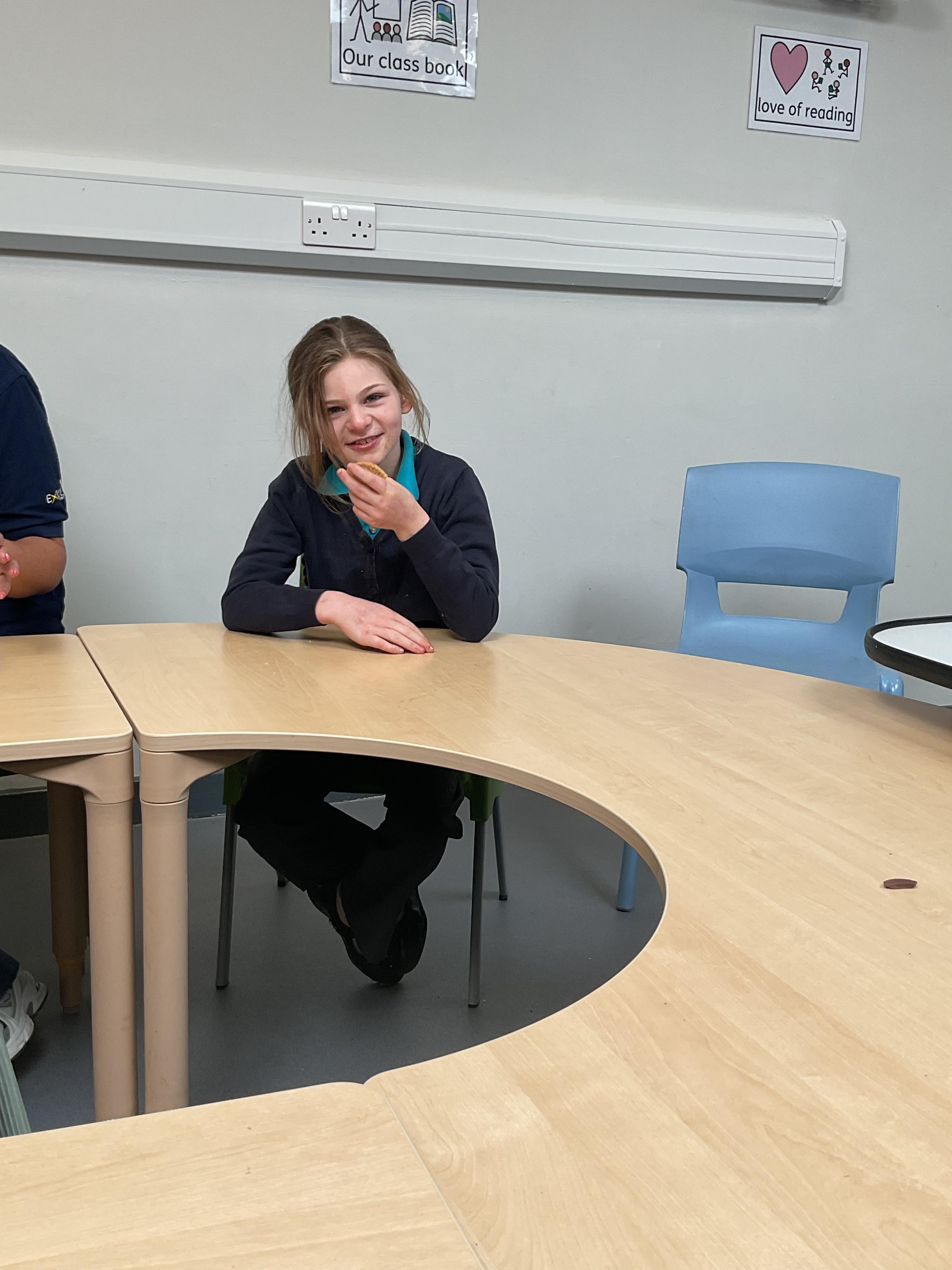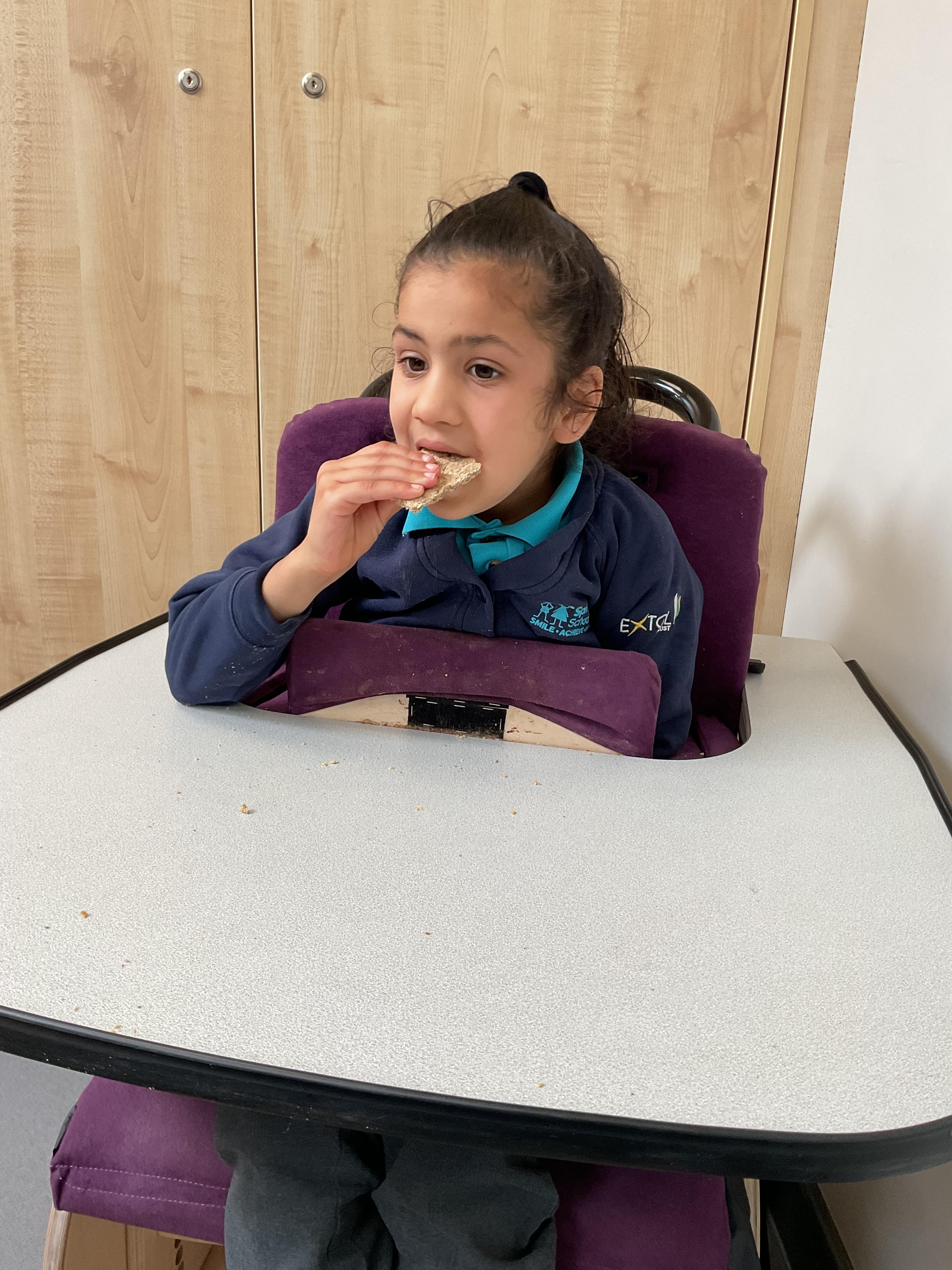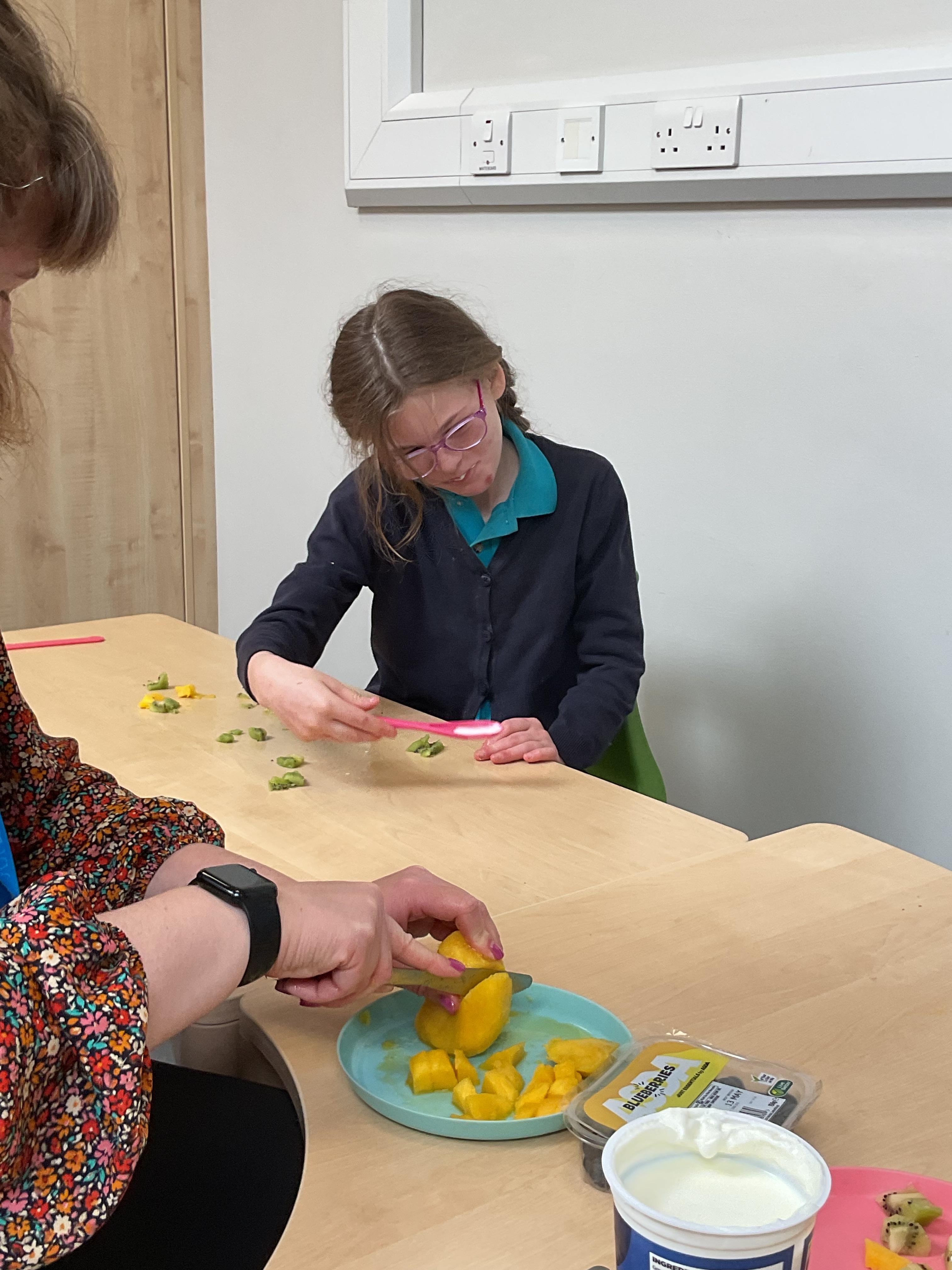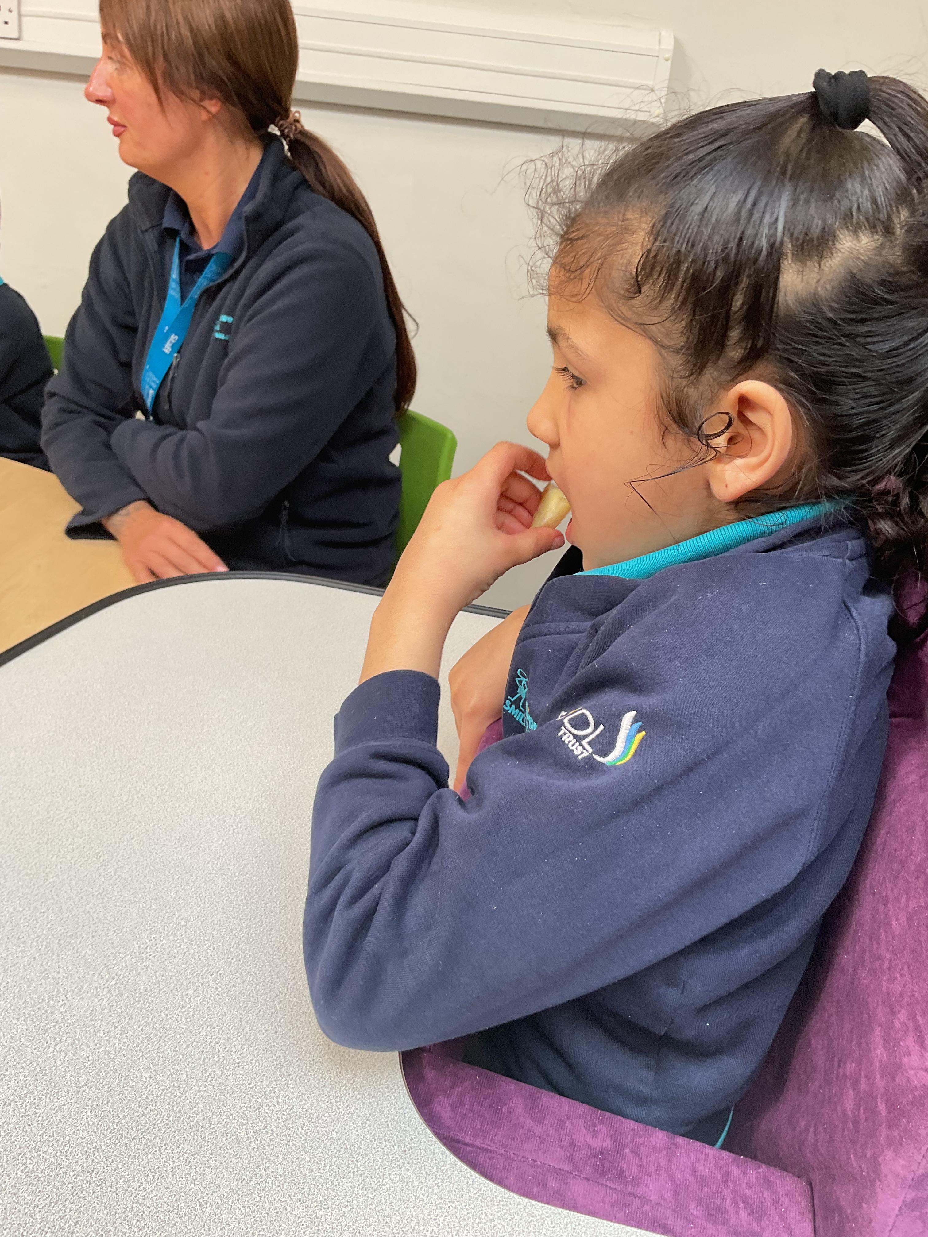 Today, it was our Wednesday assembly. We learnt the Makaton signs for lots of different types of food and then we tried to cut them up and taste them. Some of the vegetables we liked very much and some, we did not like at all!