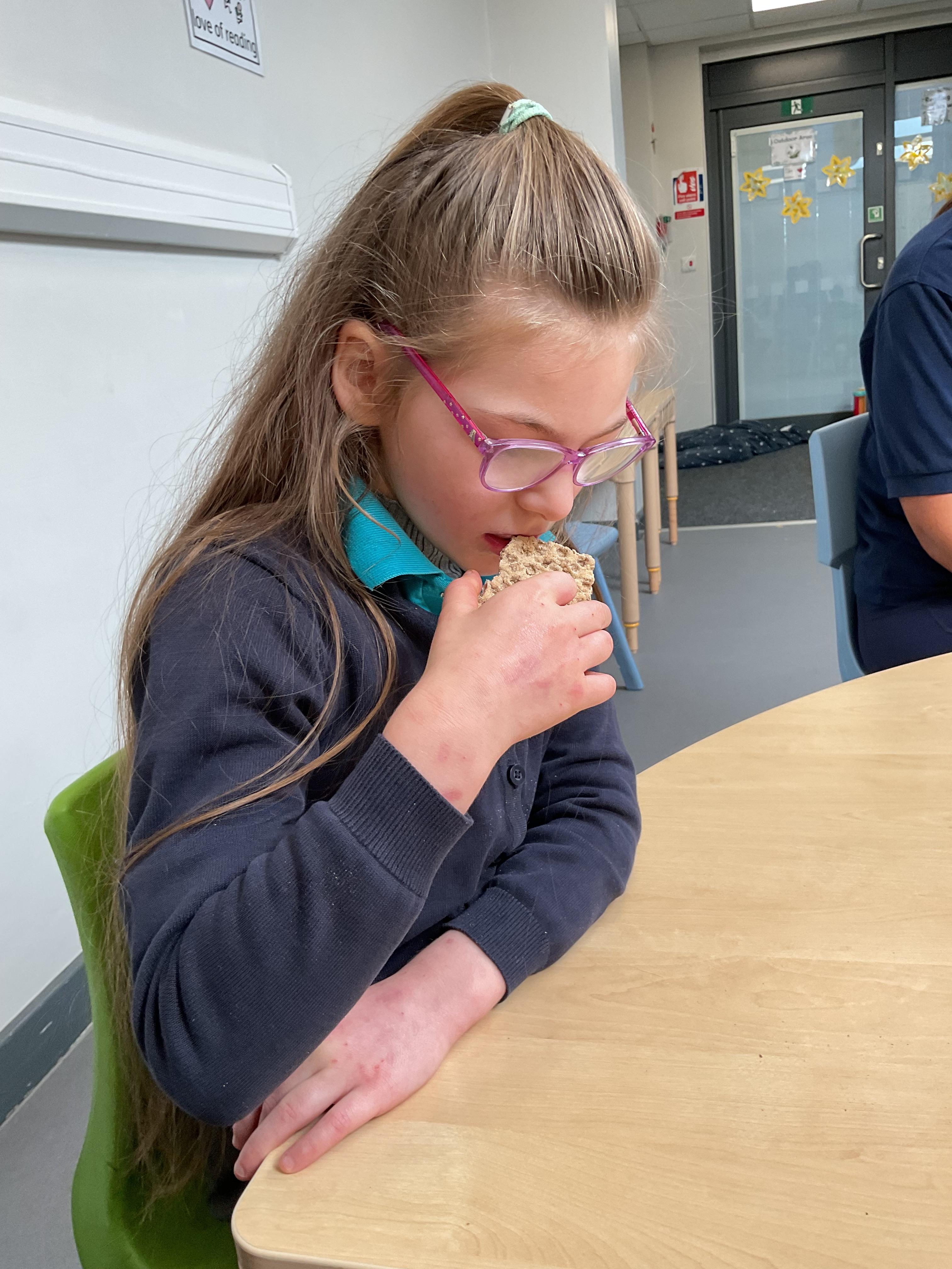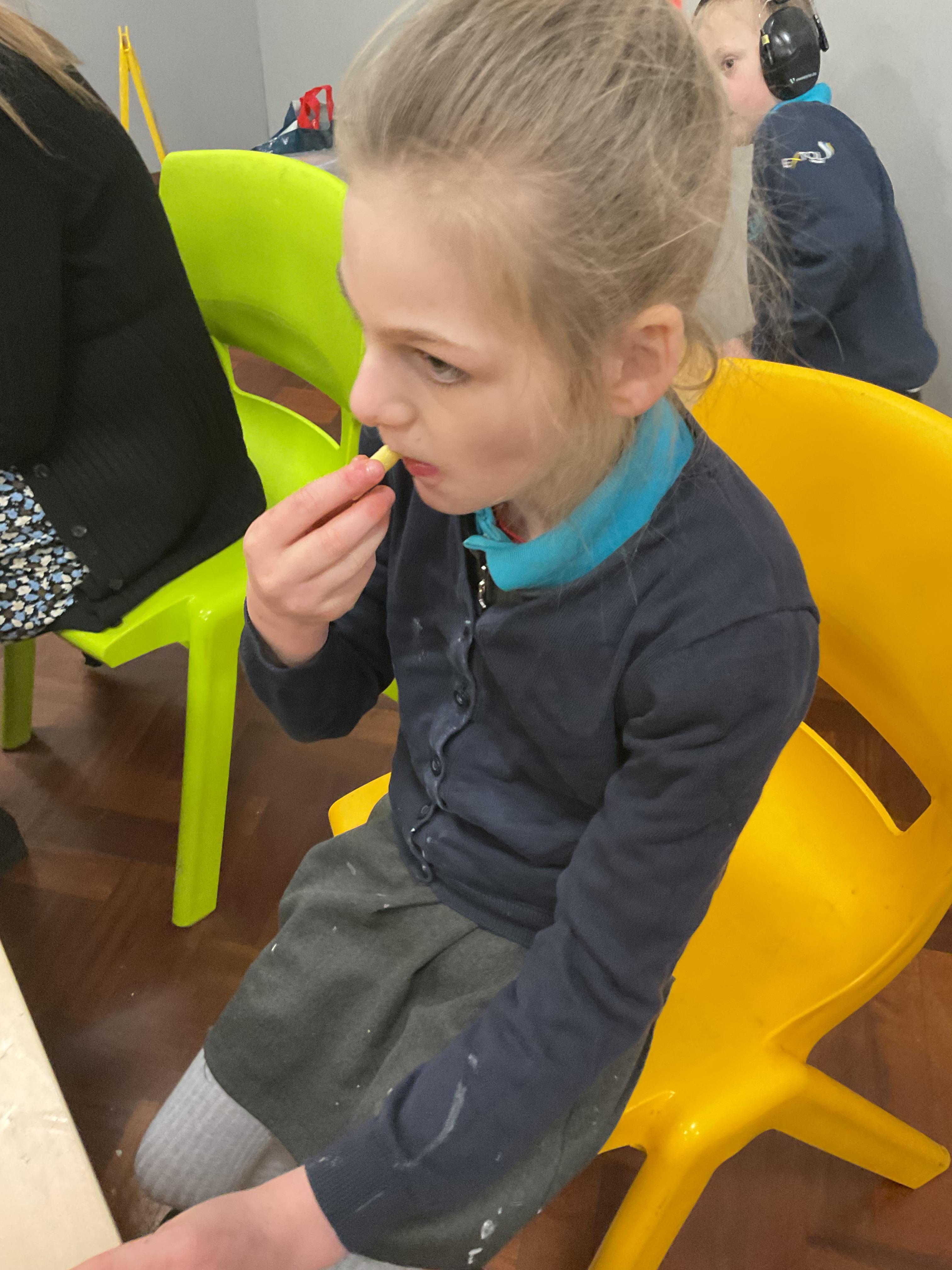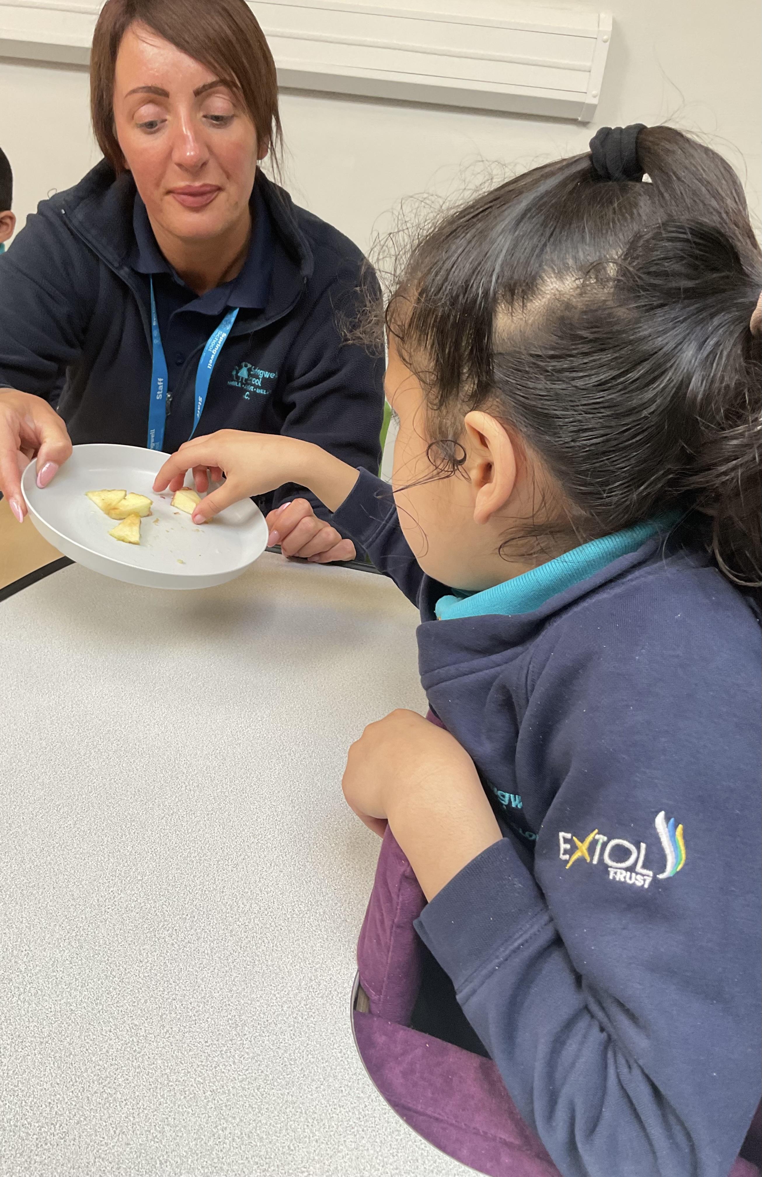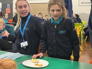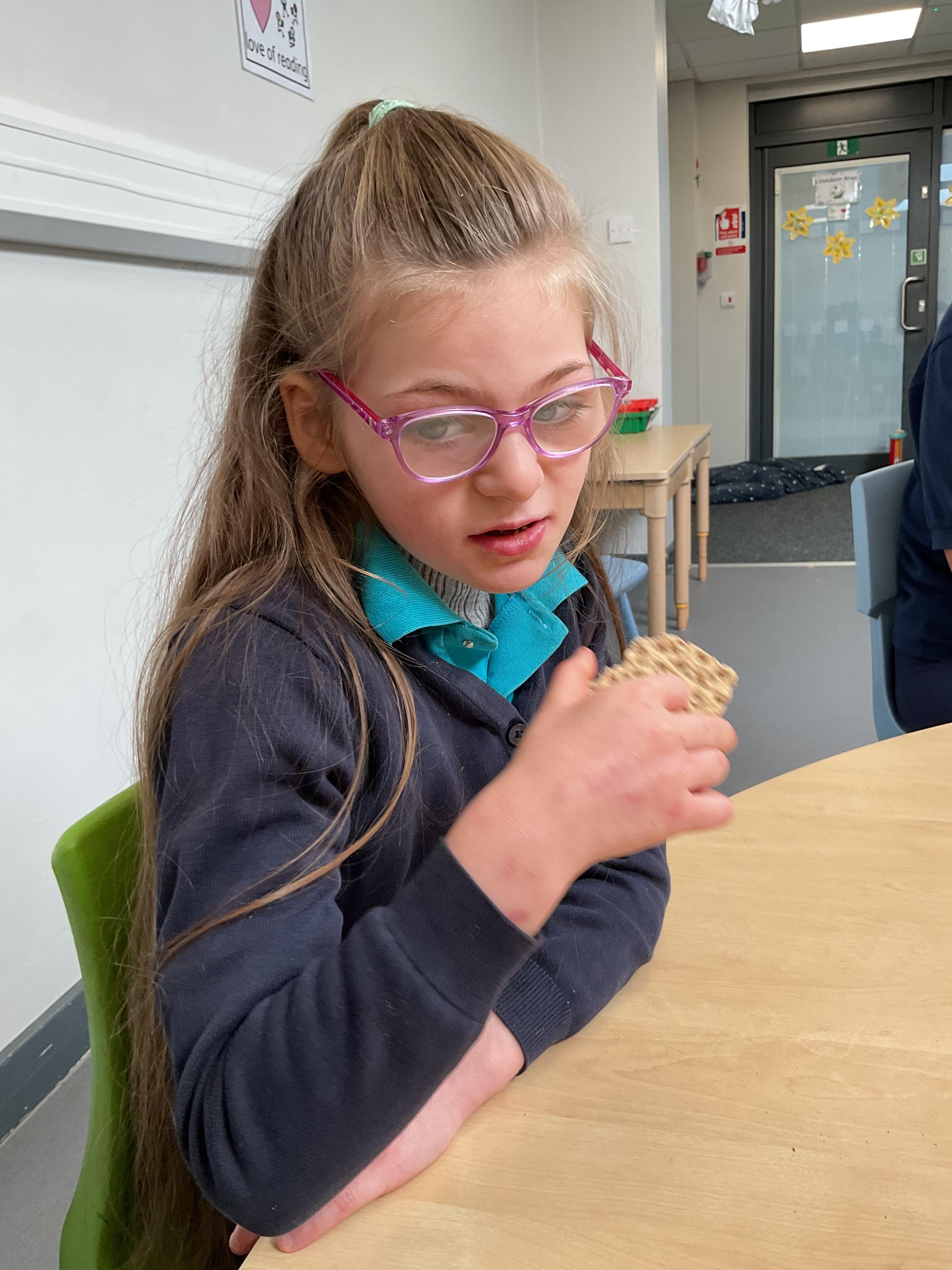 Today, it was our Wednesday assembly. We learnt the Makaton signs for lots of different types of food and then we tried to cut them up and taste them. Some of the vegetables we liked very much and some, we did not like at all!