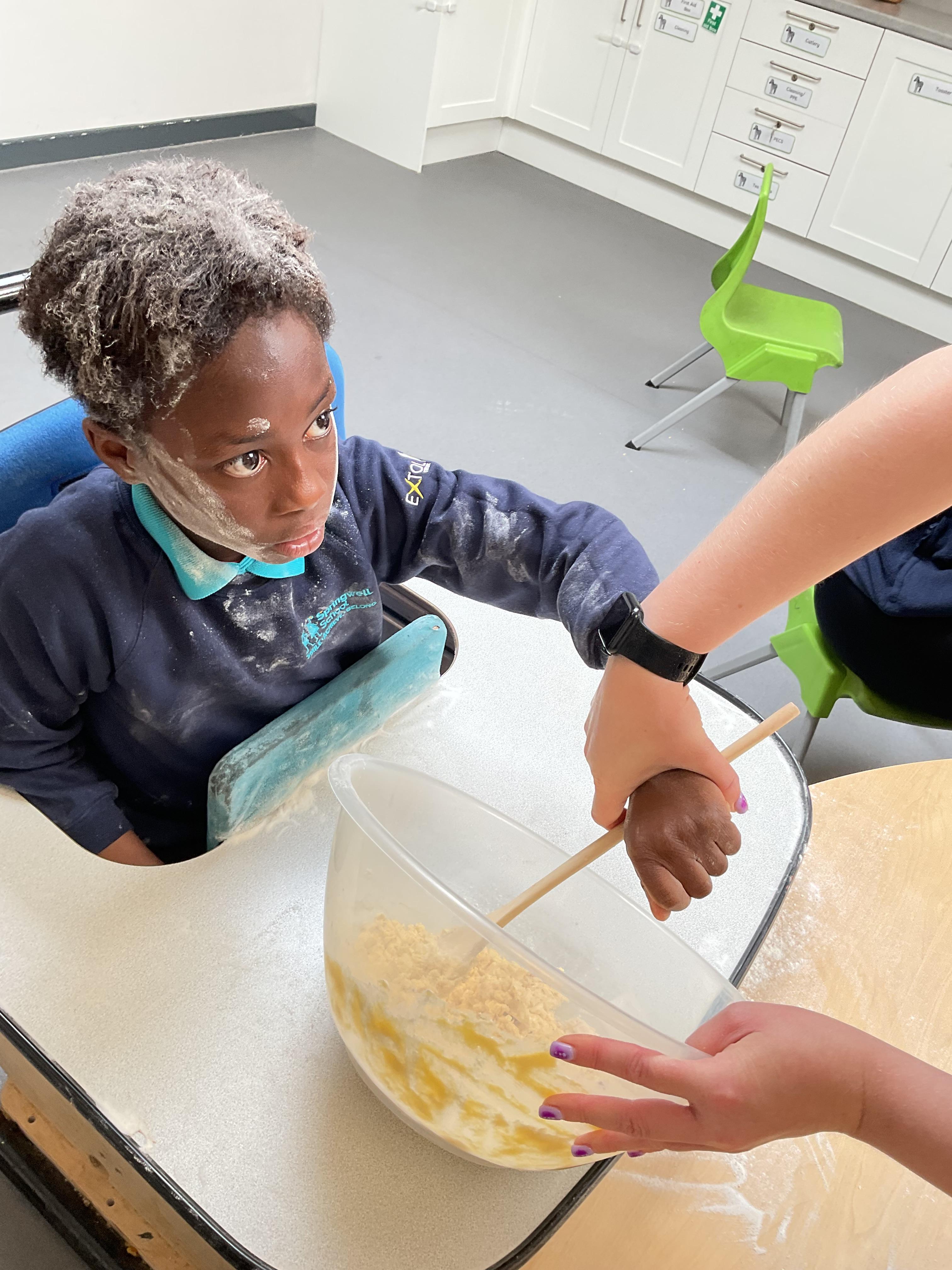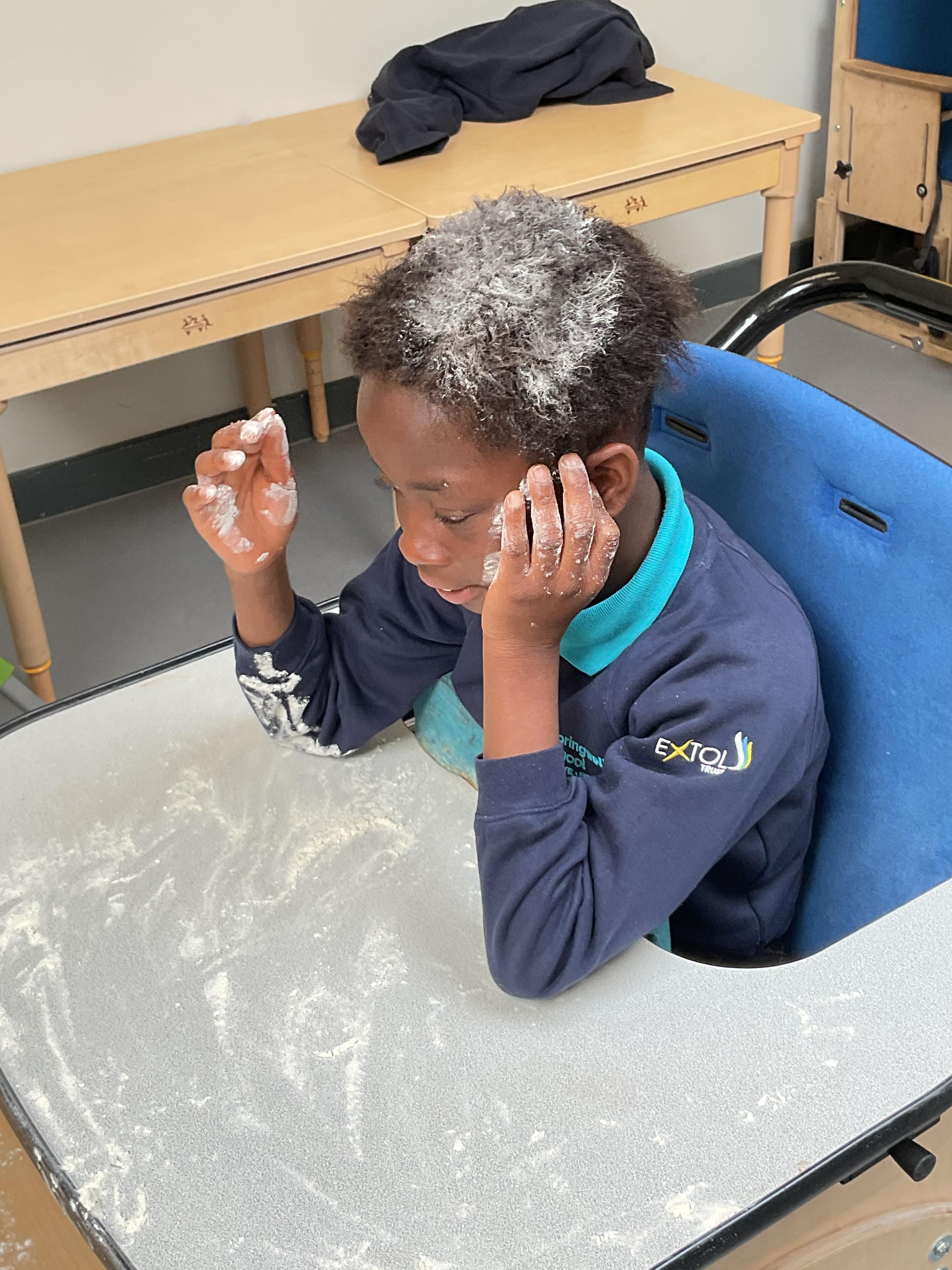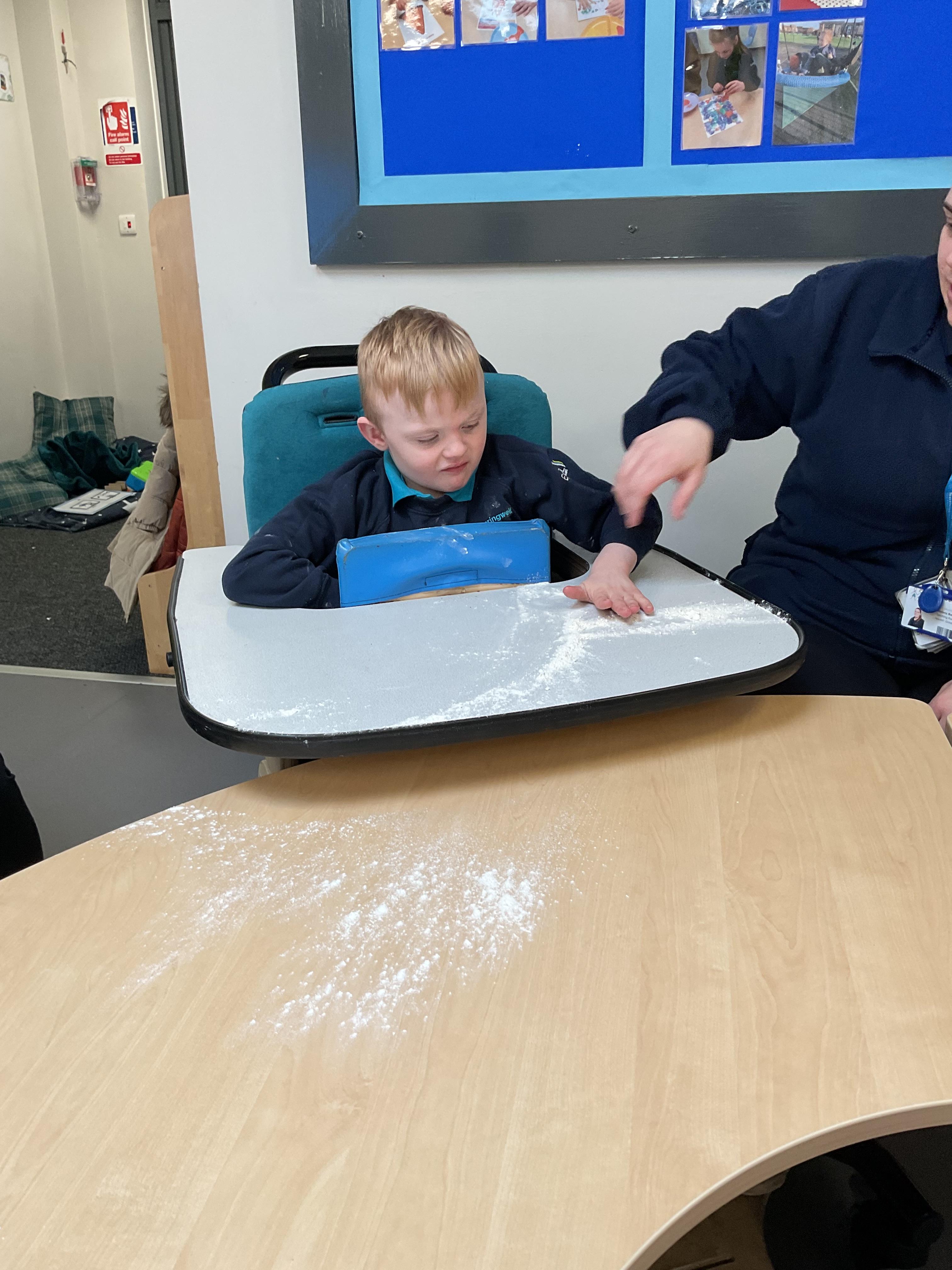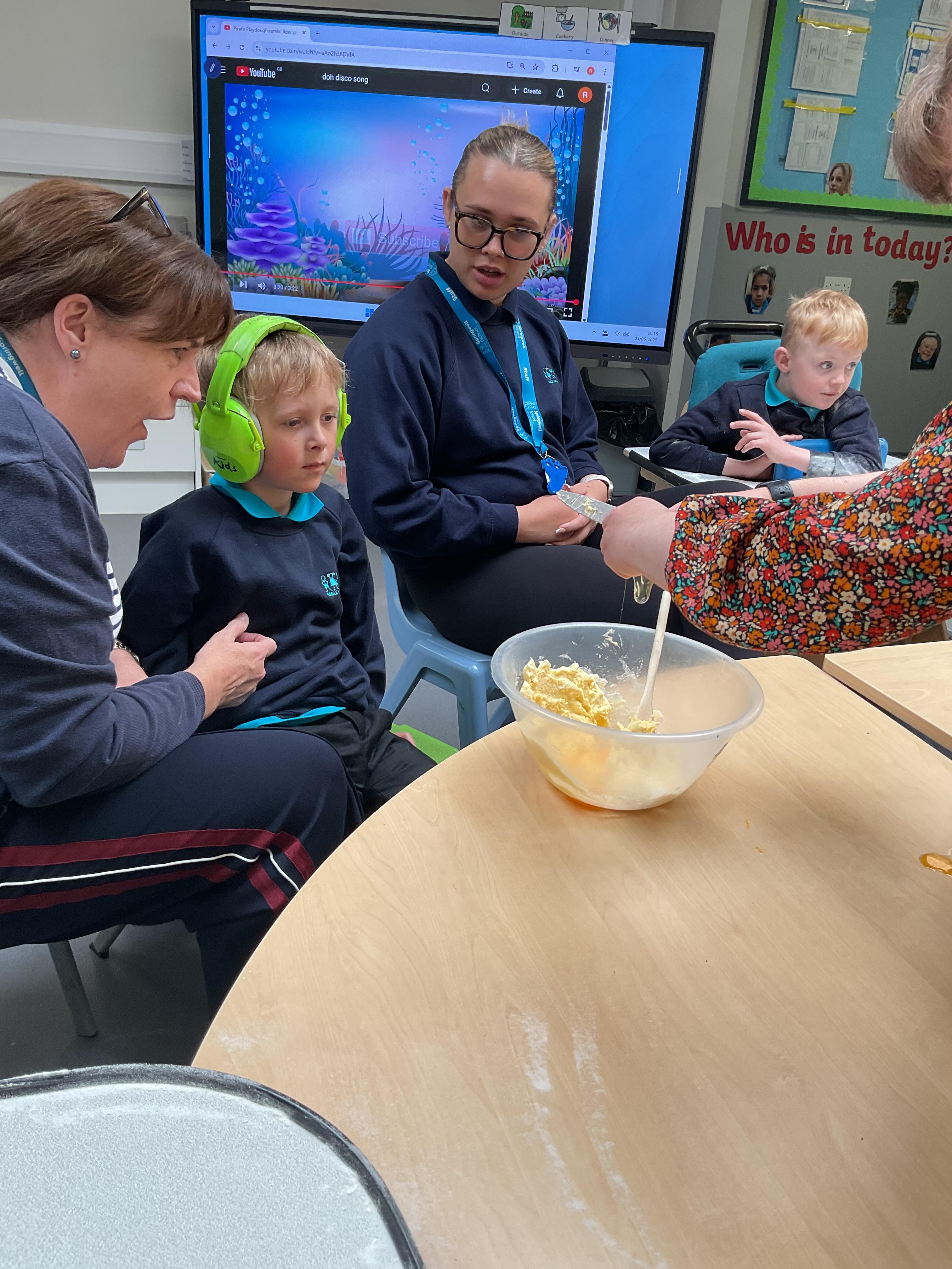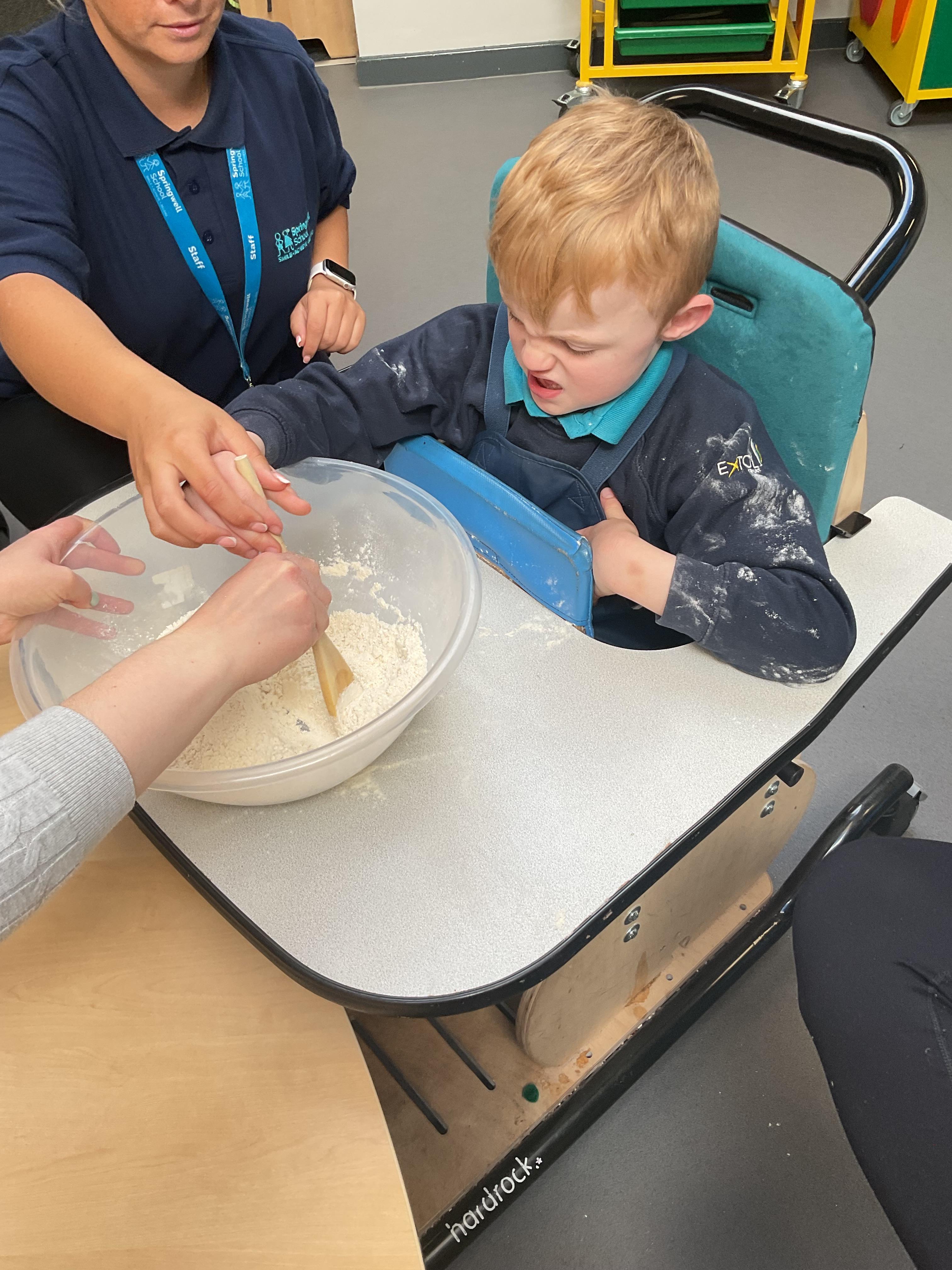 This week zebras focused on their individual communication targets and have been practicing communicating in school with PECs. All zebras have worked so hard communicating at breakfast time, communicating in a range of classroom activities and during physical activities such as rebound therapy. We started the week improving our fine motor skills by carefully tracing over dotted lines with our chosen colour. In dough disco, we practised rolling the dough, splatting the dough and pinching the dough with our fingers. At the end of the week, we got messy in cookery by exploring the flour, splatting the eggs and mark making with the sugar. By mixing the ingredients together we made cakes and then iced them later, these were delicious. Our favourite time of the week was getting all of our energy out on the trampoline. This week our focus was for the children to stay in the centre of the trampoline independently but most of all we had fun!