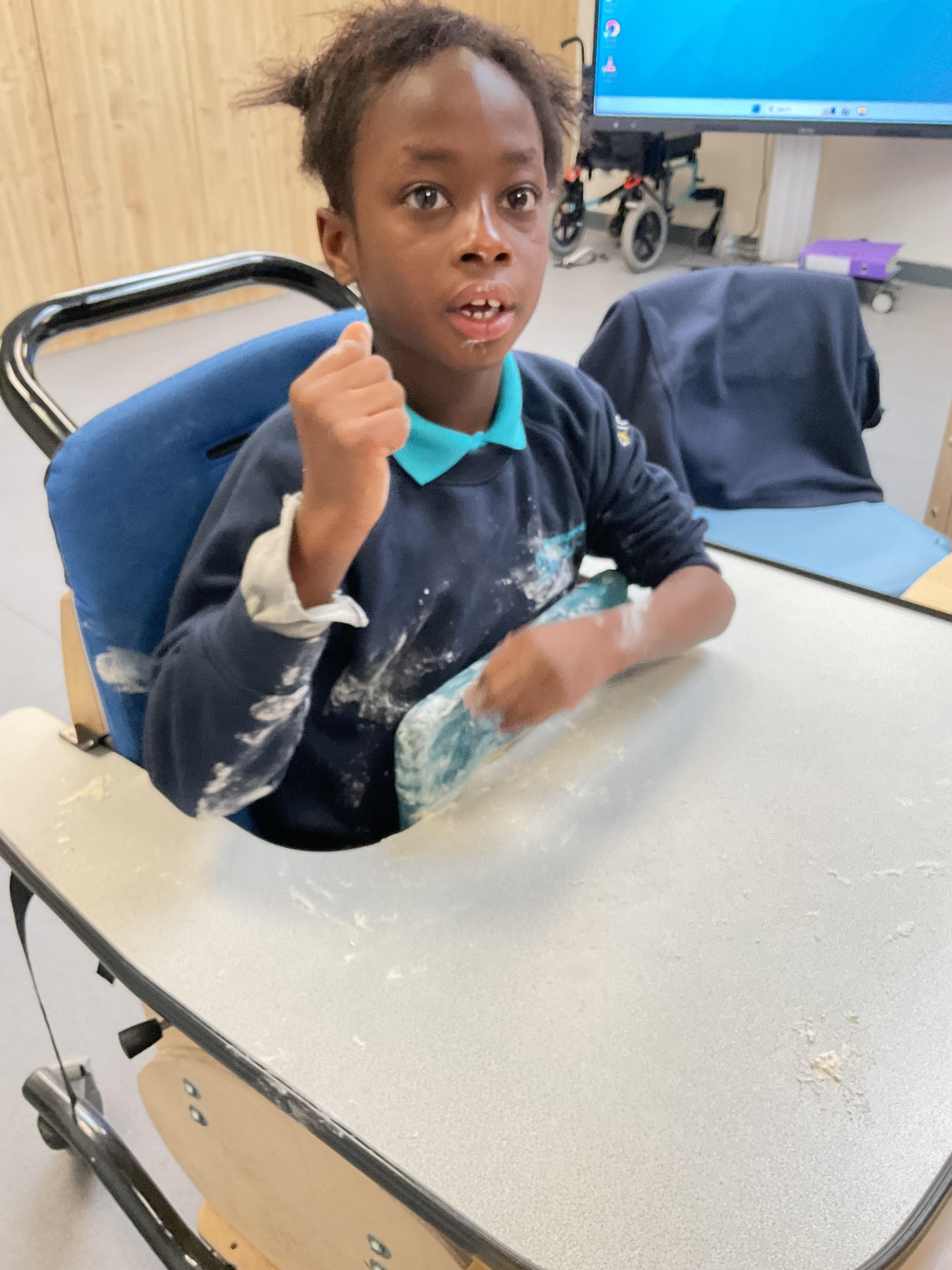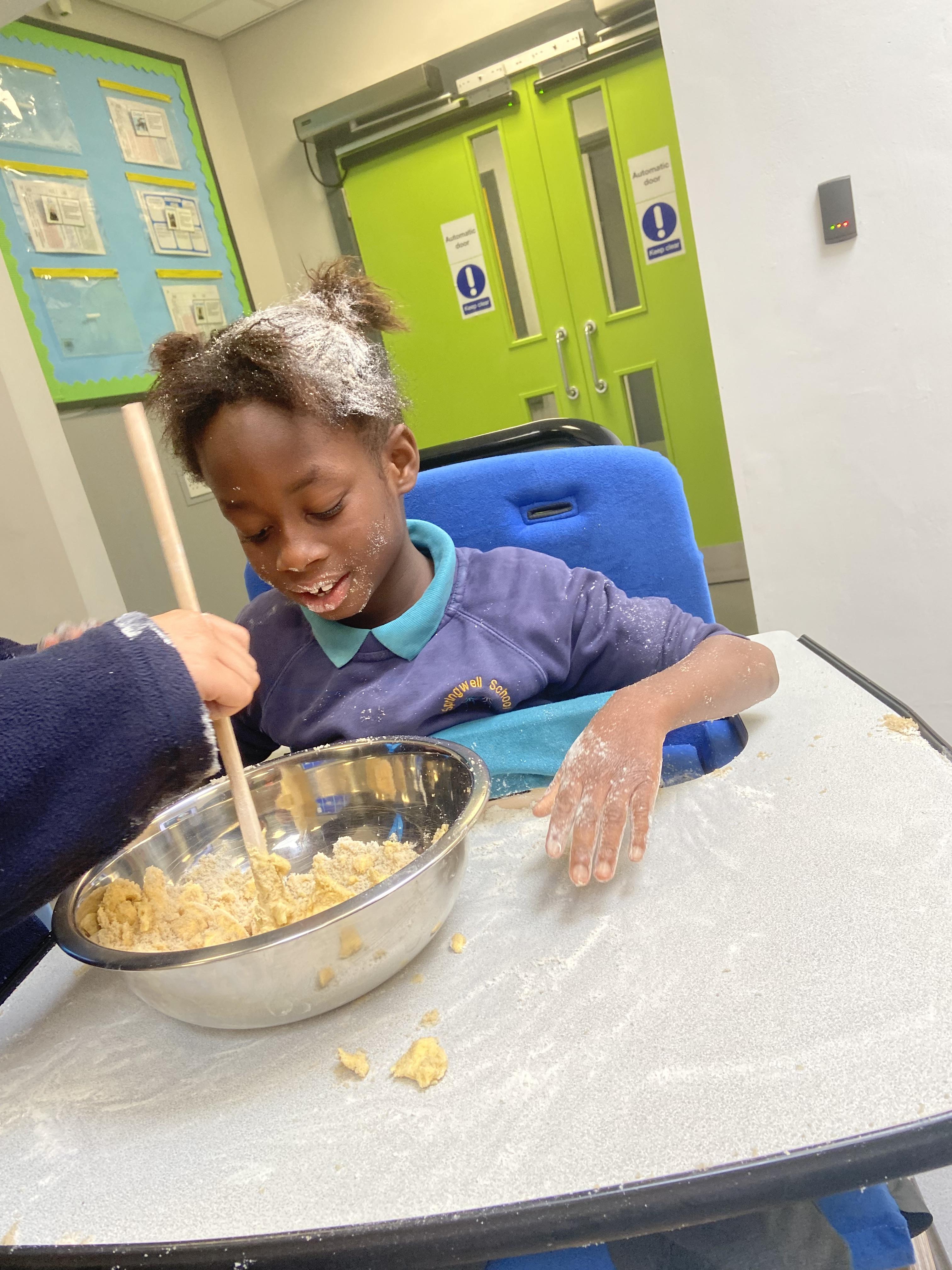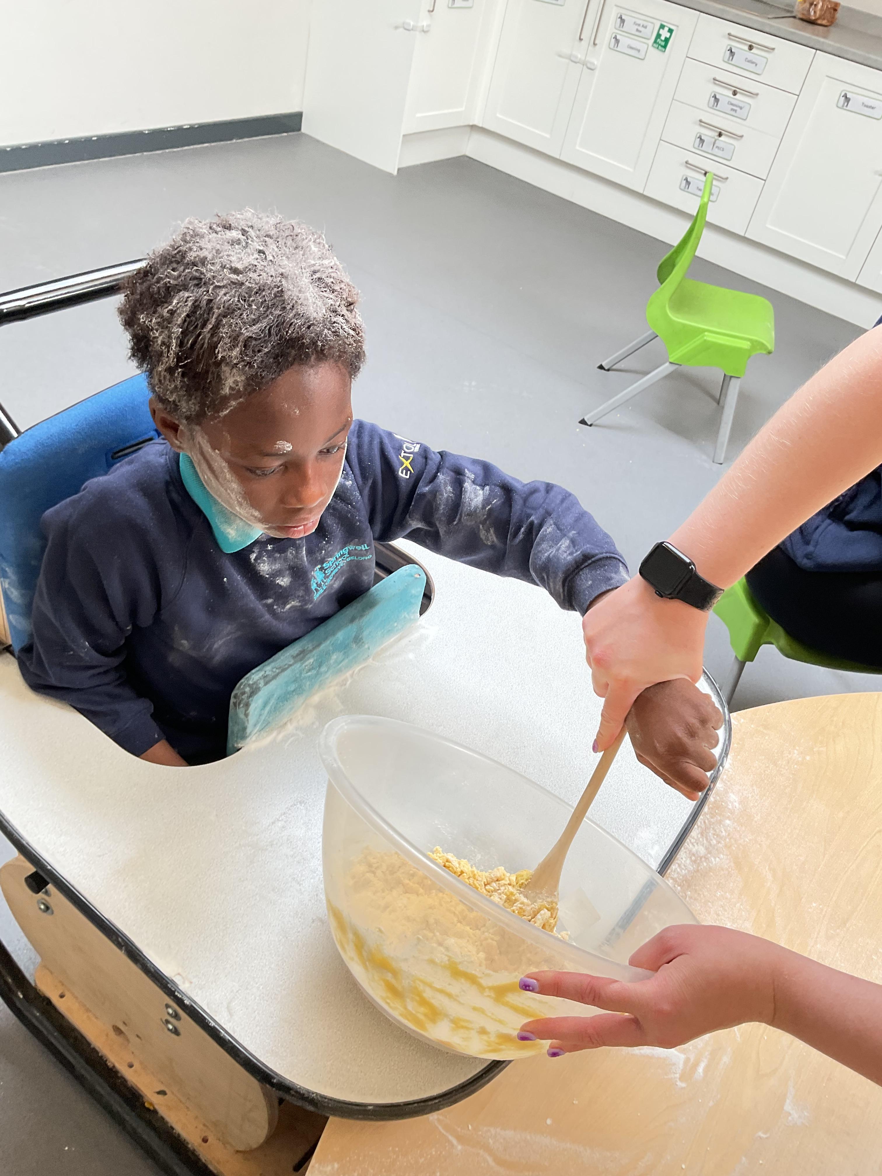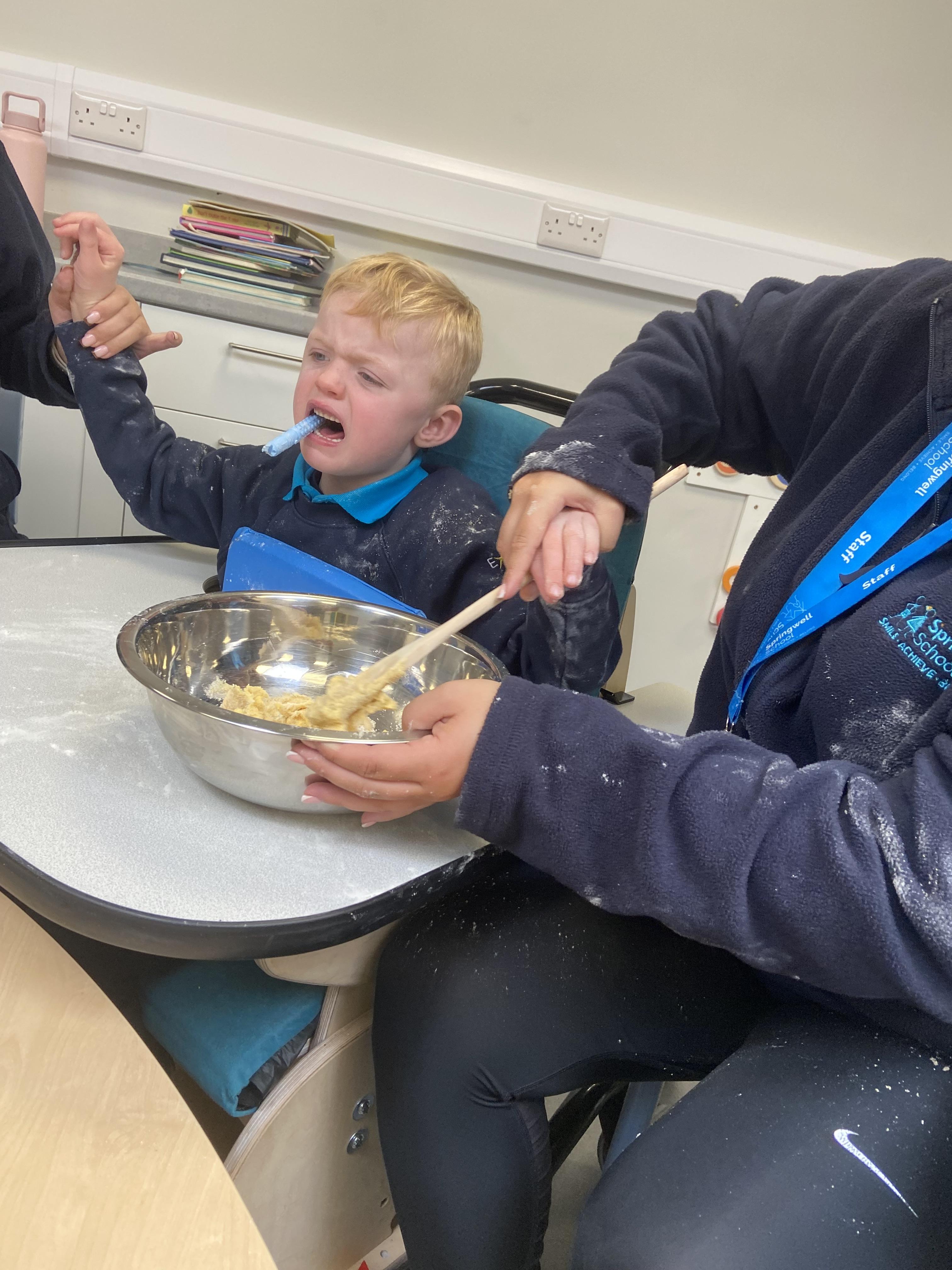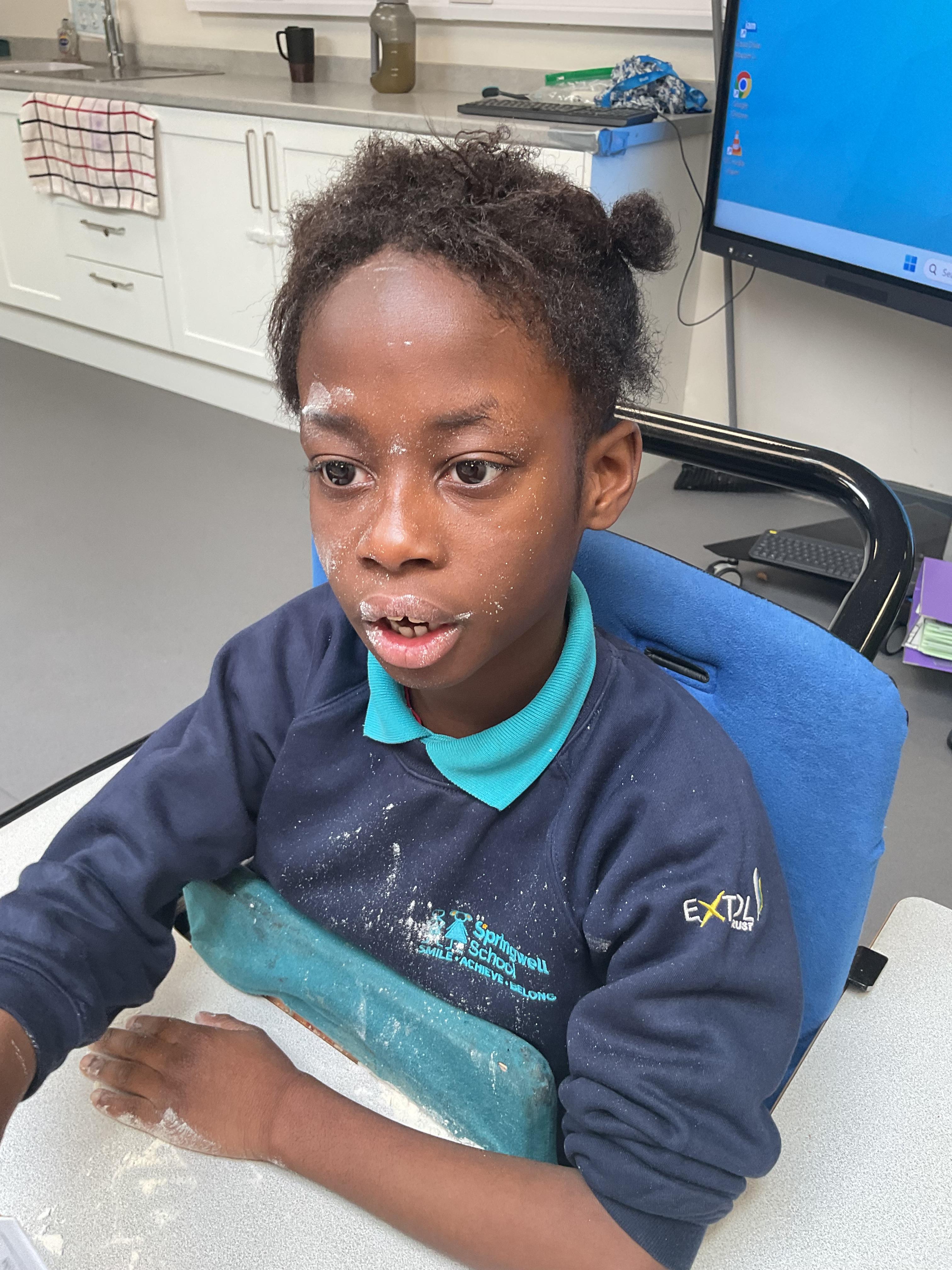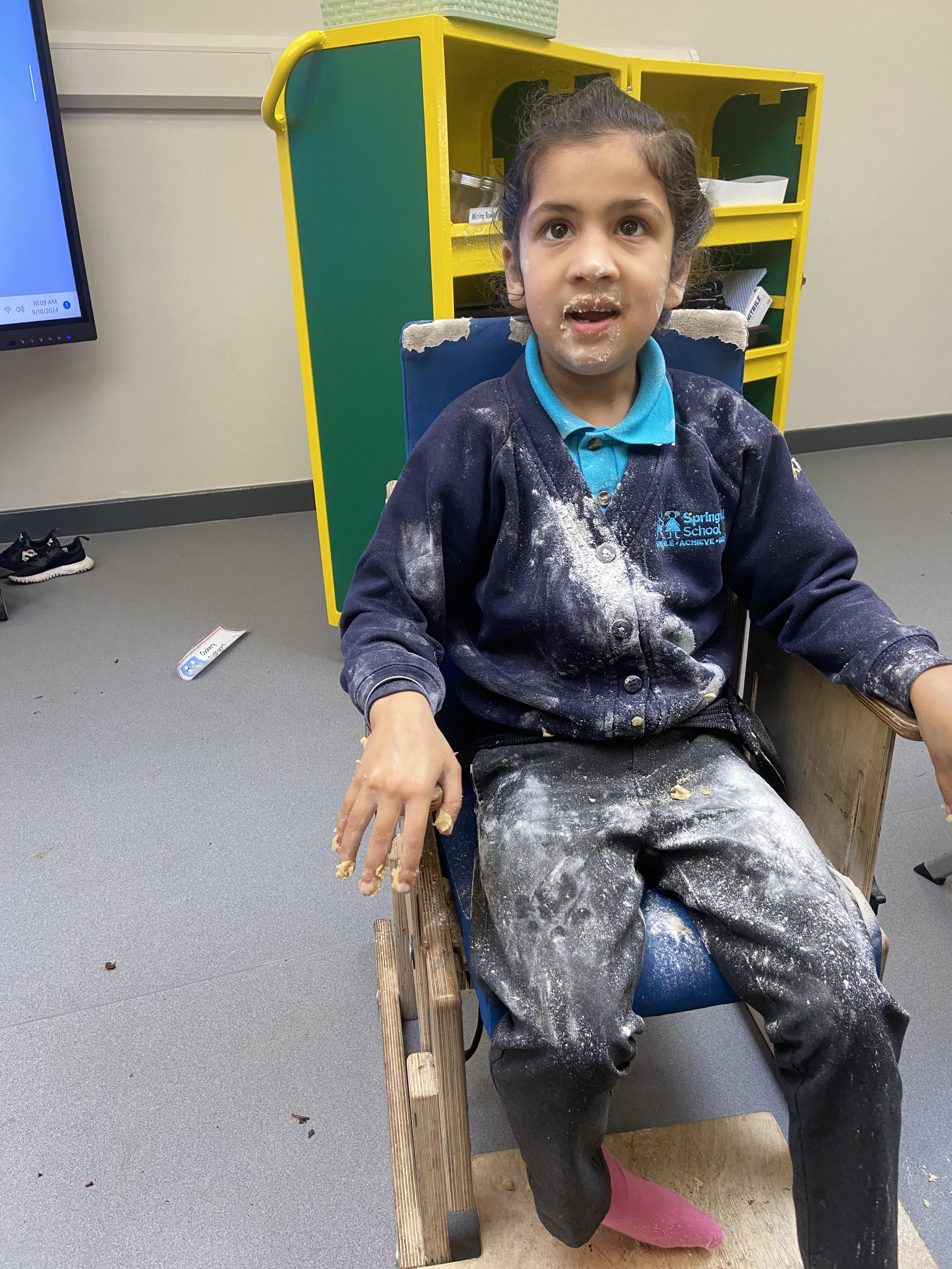 This week zebras focused on their individual communication targets and have been practicing communicating in school with PECs. All zebras have worked so hard communicating at breakfast time, communicating in a range of classroom activities and during physical activities such as rebound therapy. We started the week improving our fine motor skills by carefully tracing over dotted lines with our chosen colour. In dough disco, we practised rolling the dough, splatting the dough and pinching the dough with our fingers. At the end of the week, we got messy in cookery by exploring the flour, splatting the eggs and mark making with the sugar. By mixing the ingredients together we made cakes and then iced them later, these were delicious. Our favourite time of the week was getting all of our energy out on the trampoline. This week our focus was for the children to stay in the centre of the trampoline independently but most of all we had fun!