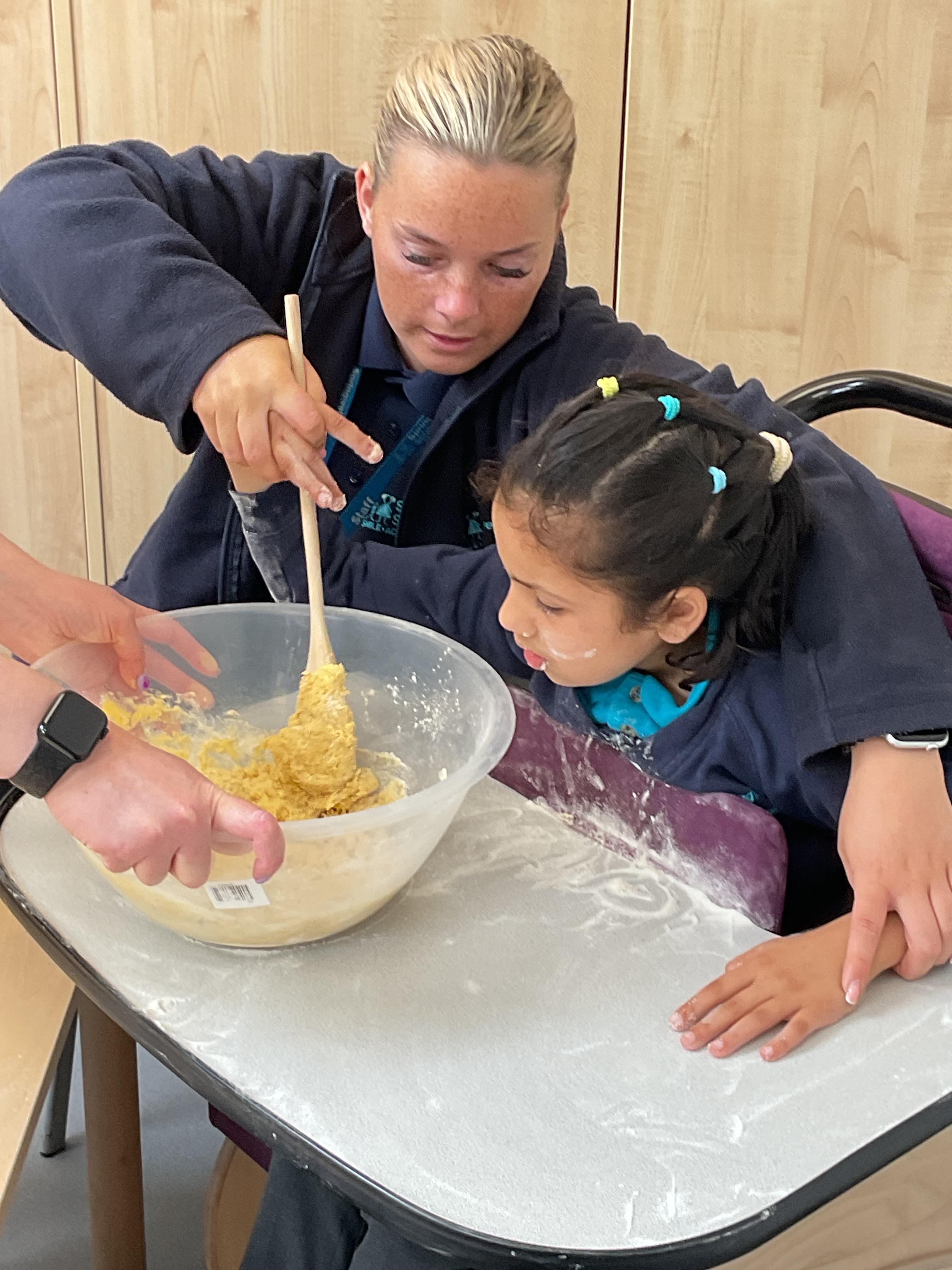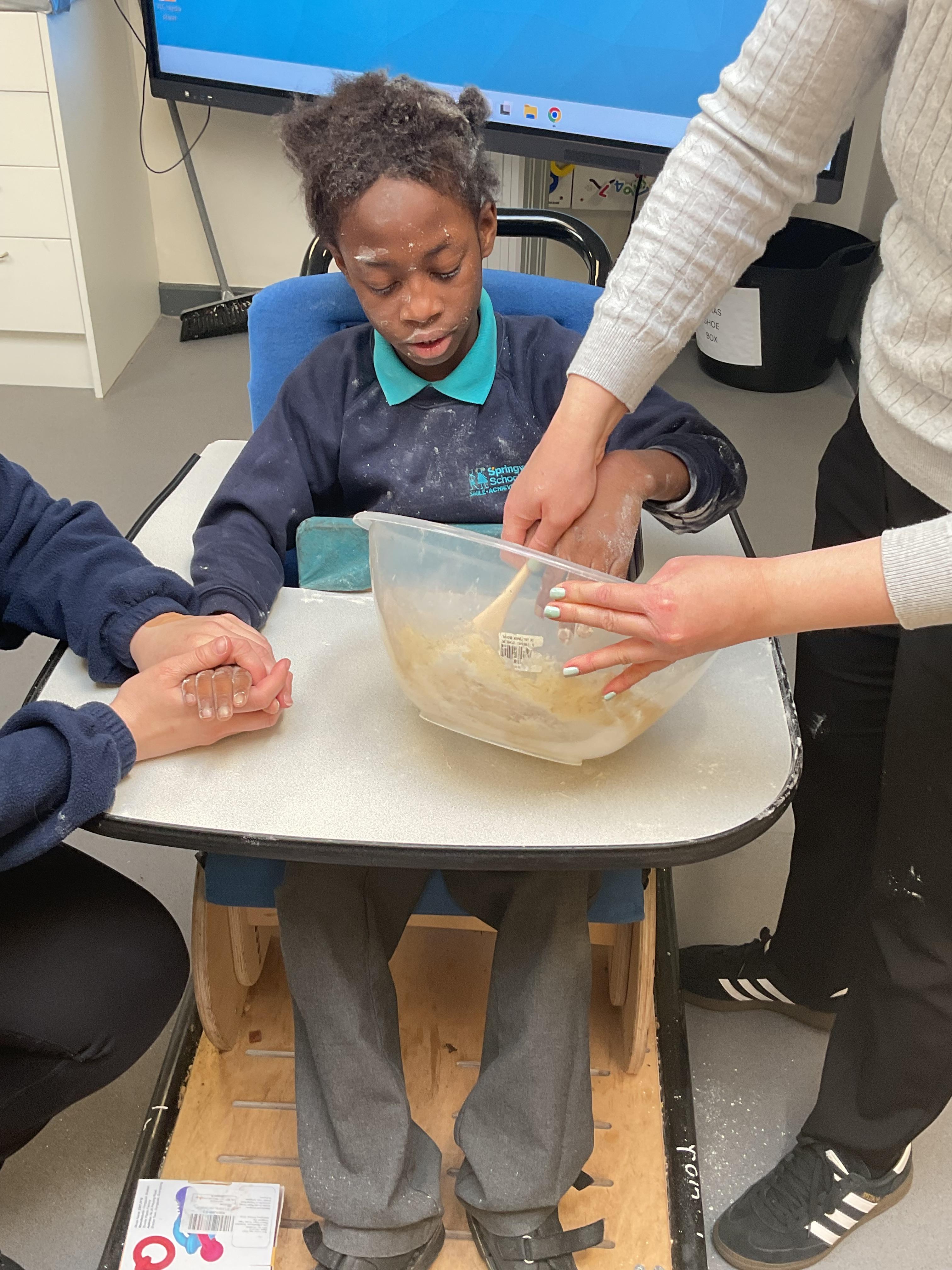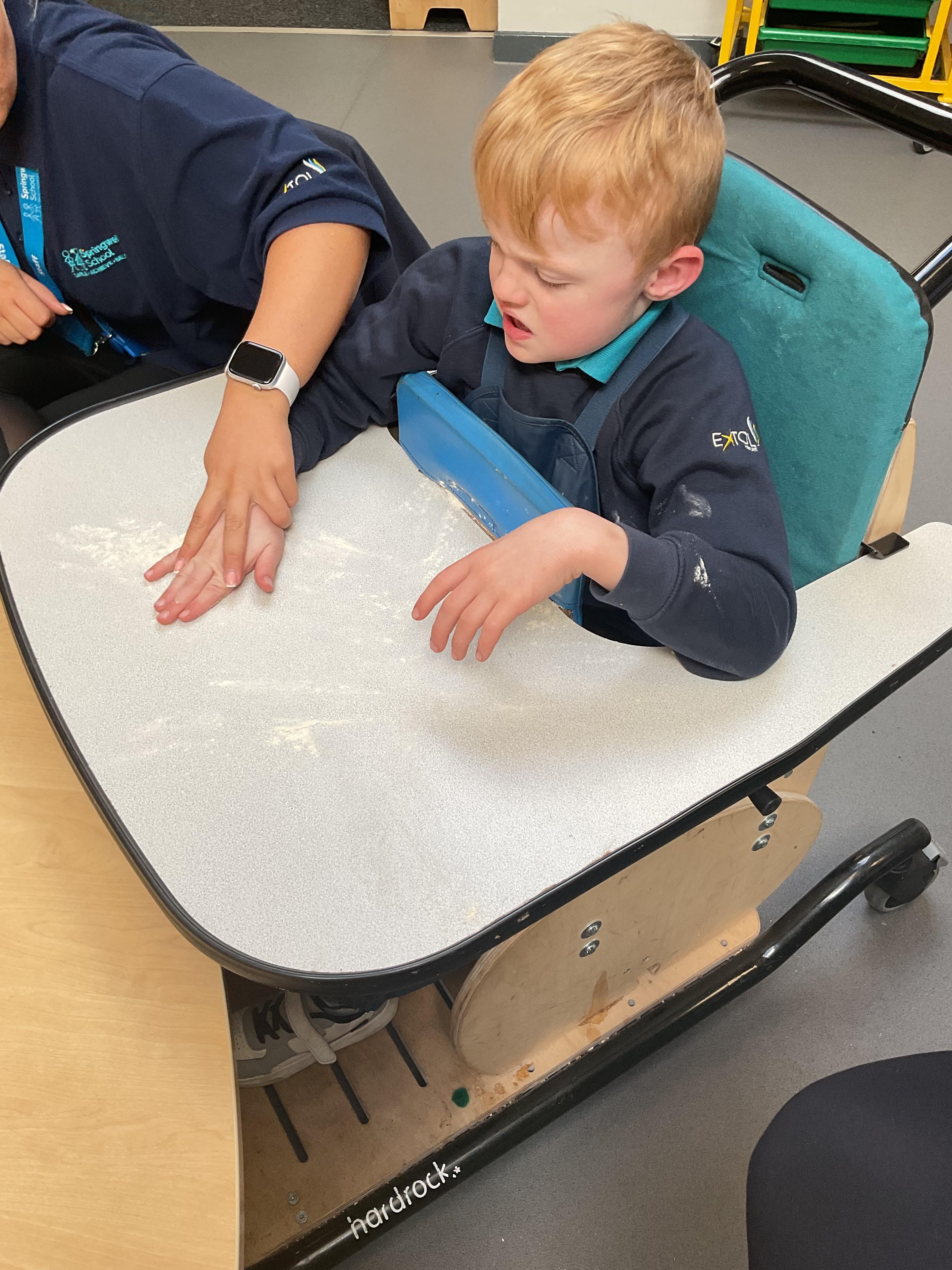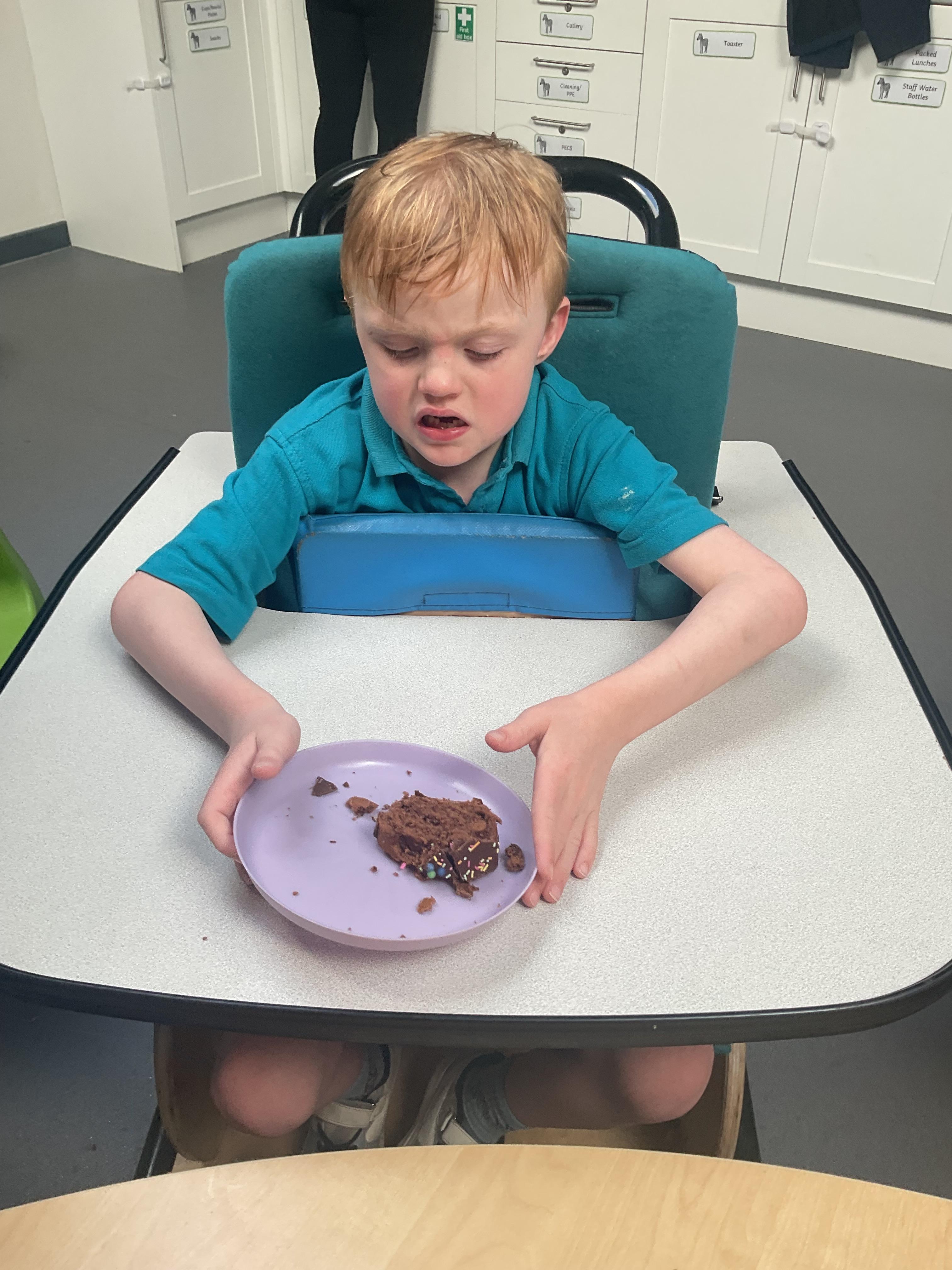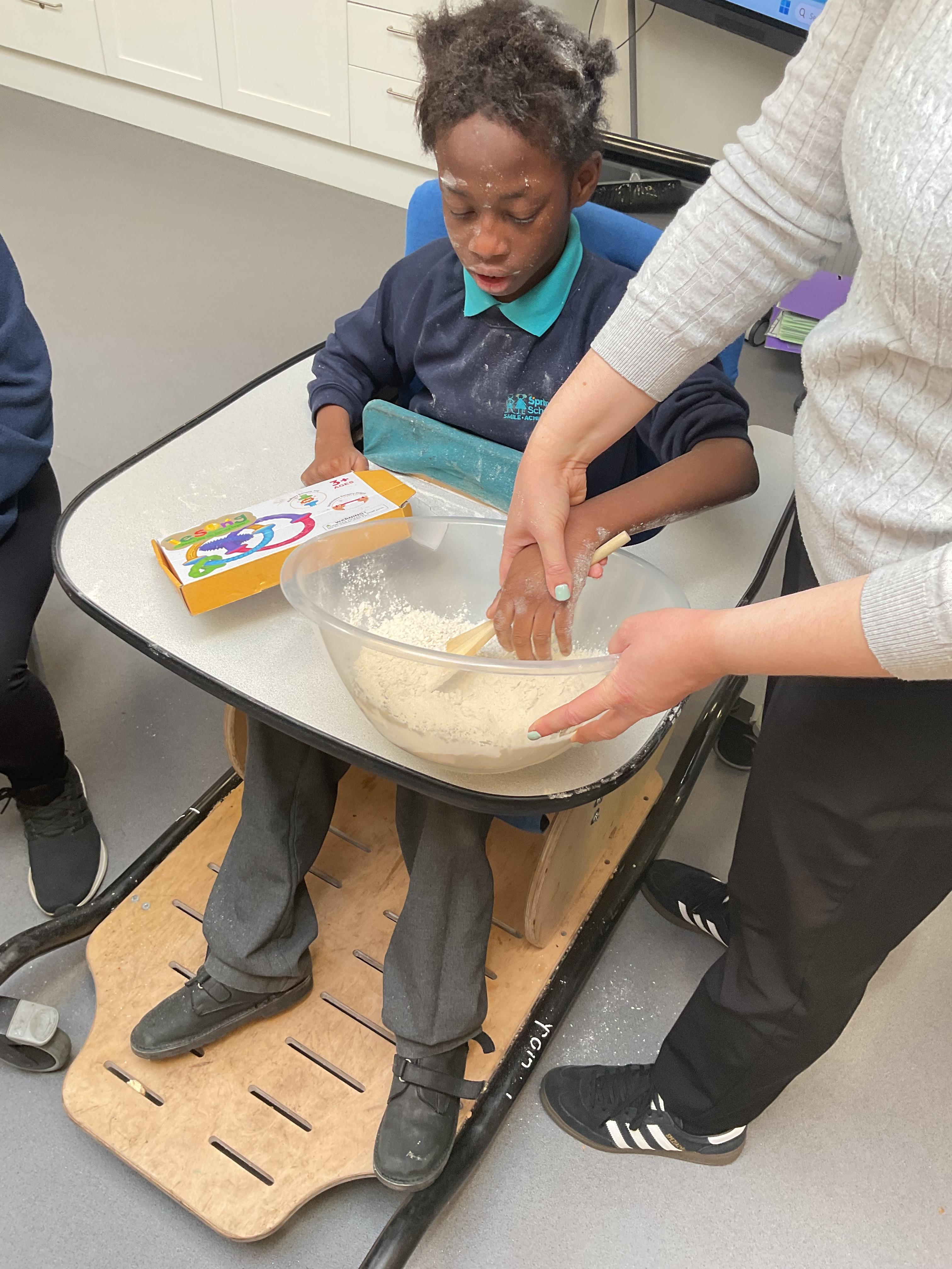 This week zebras focused on their individual communication targets and have been practicing communicating in school with PECs. All zebras have worked so hard communicating at breakfast time, communicating in a range of classroom activities and during physical activities such as rebound therapy. We started the week improving our fine motor skills by carefully tracing over dotted lines with our chosen colour. In dough disco, we practised rolling the dough, splatting the dough and pinching the dough with our fingers. At the end of the week, we got messy in cookery by exploring the flour, splatting the eggs and mark making with the sugar. By mixing the ingredients together we made cakes and then iced them later, these were delicious. Our favourite time of the week was getting all of our energy out on the trampoline. This week our focus was for the children to stay in the centre of the trampoline independently but most of all we had fun!