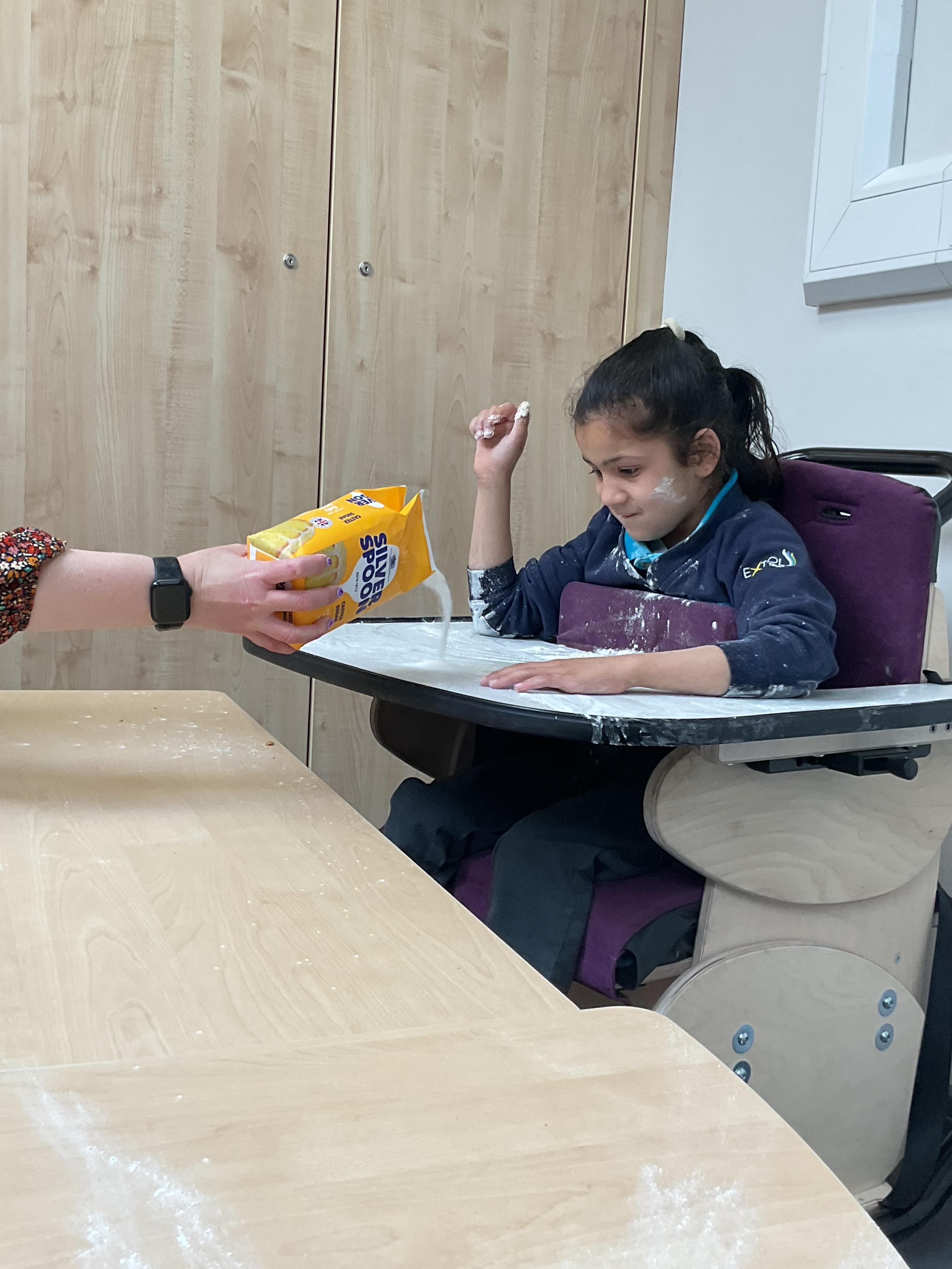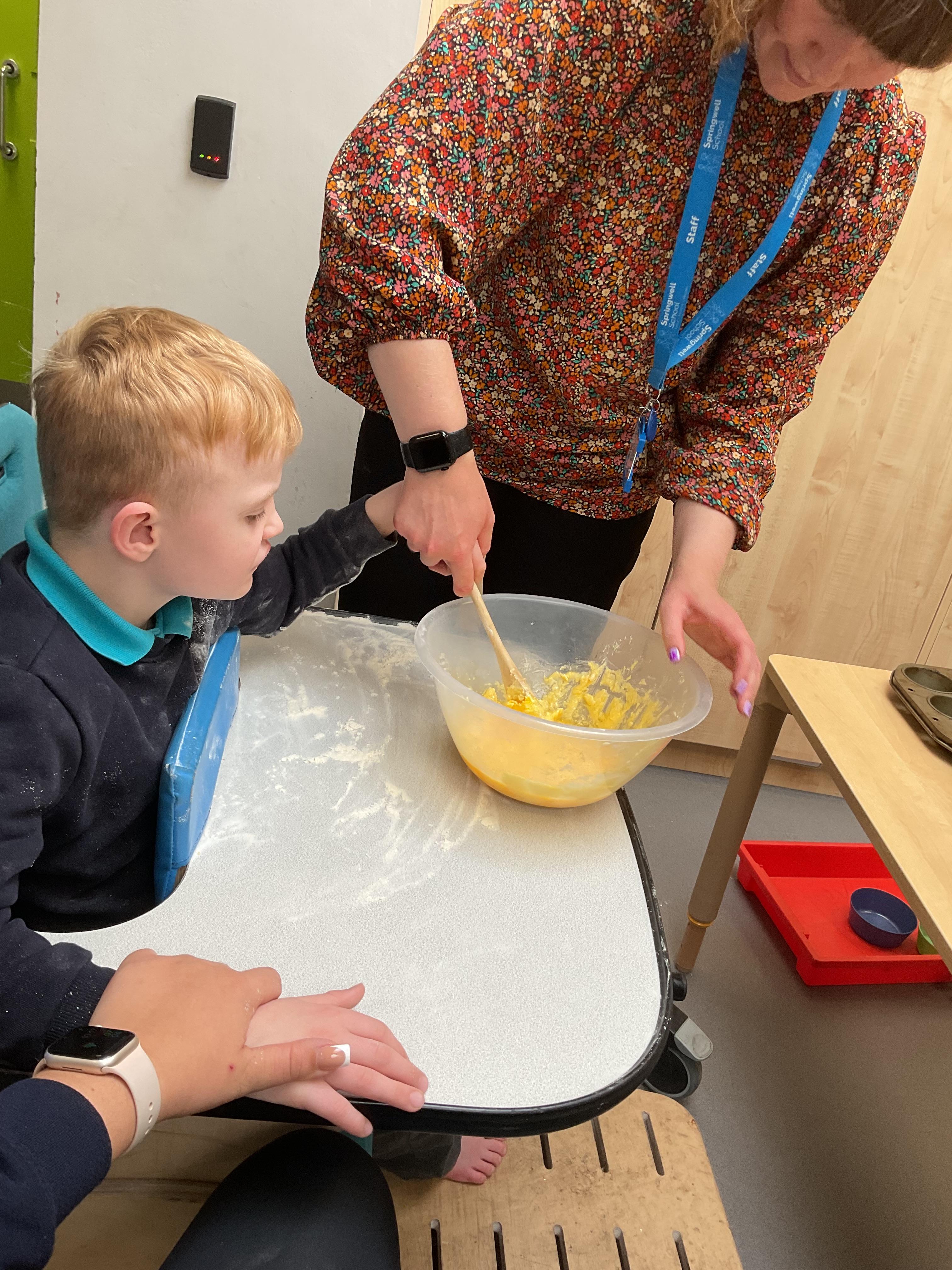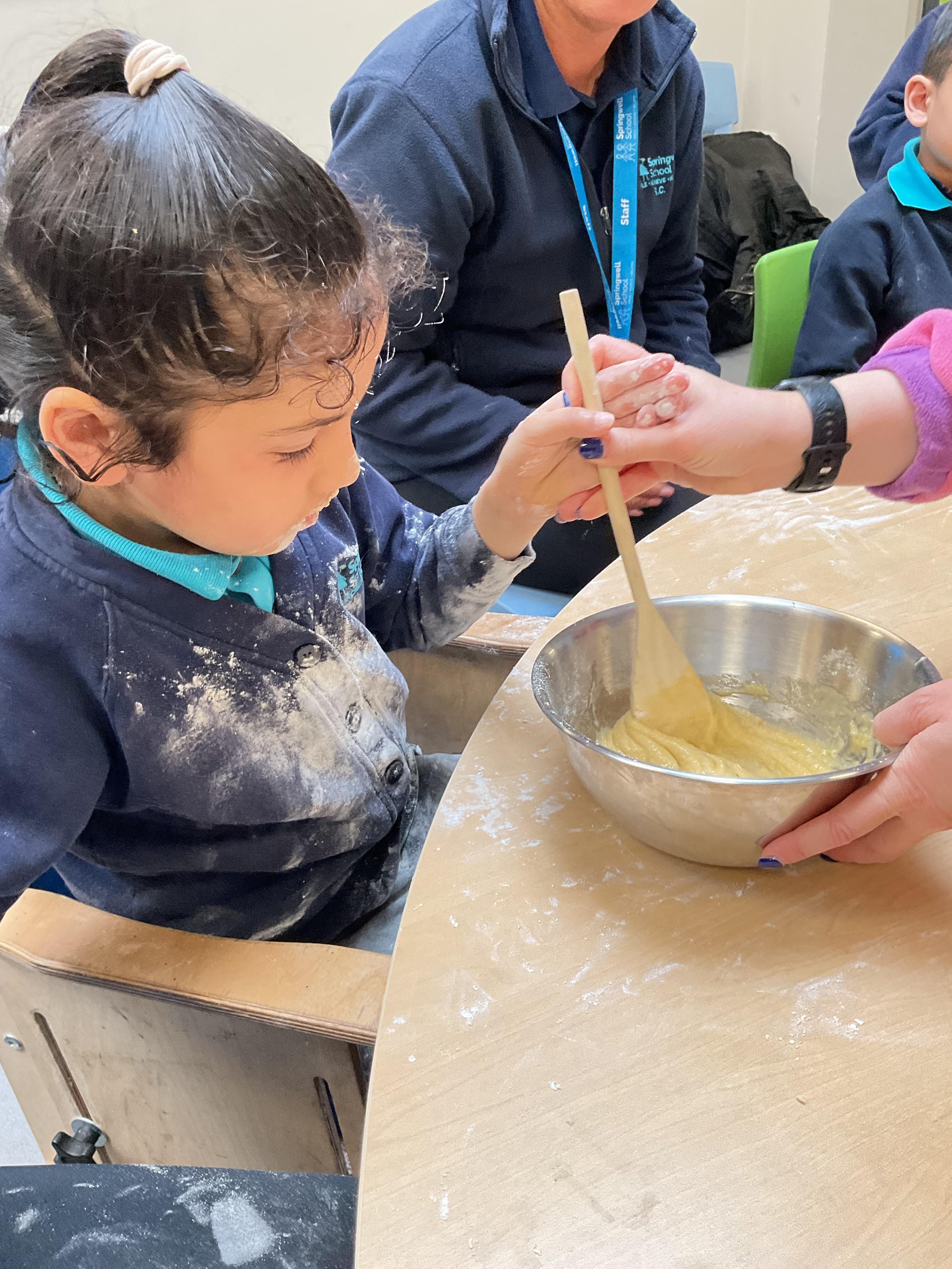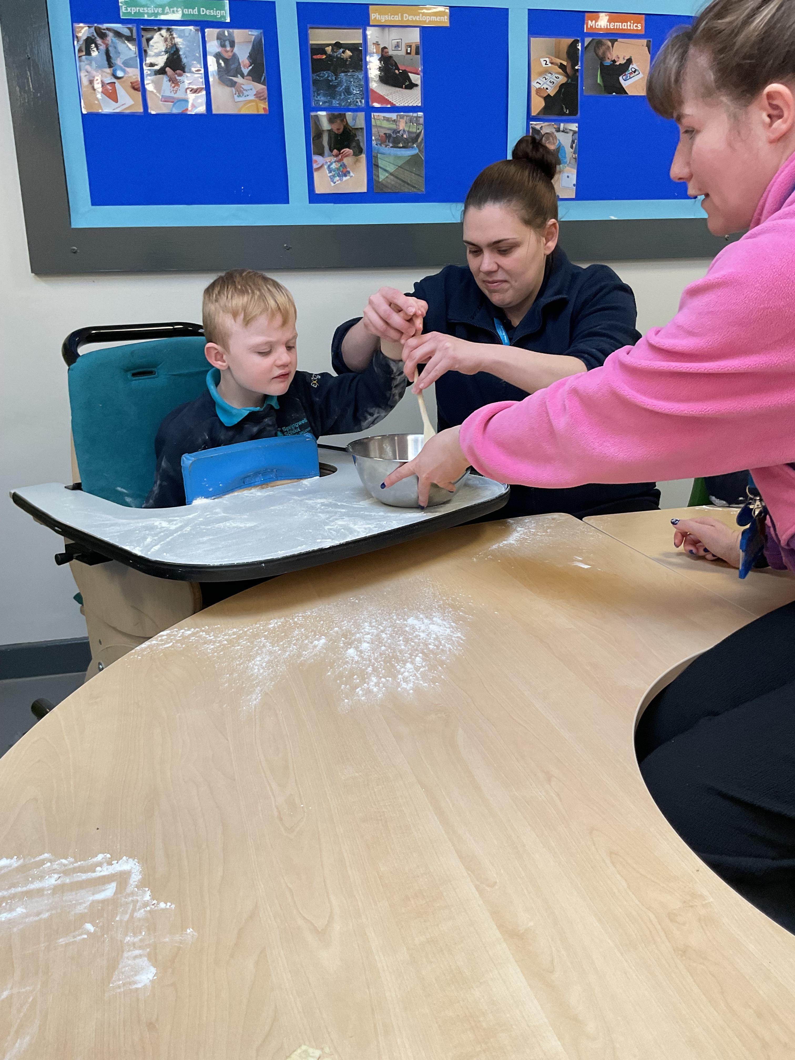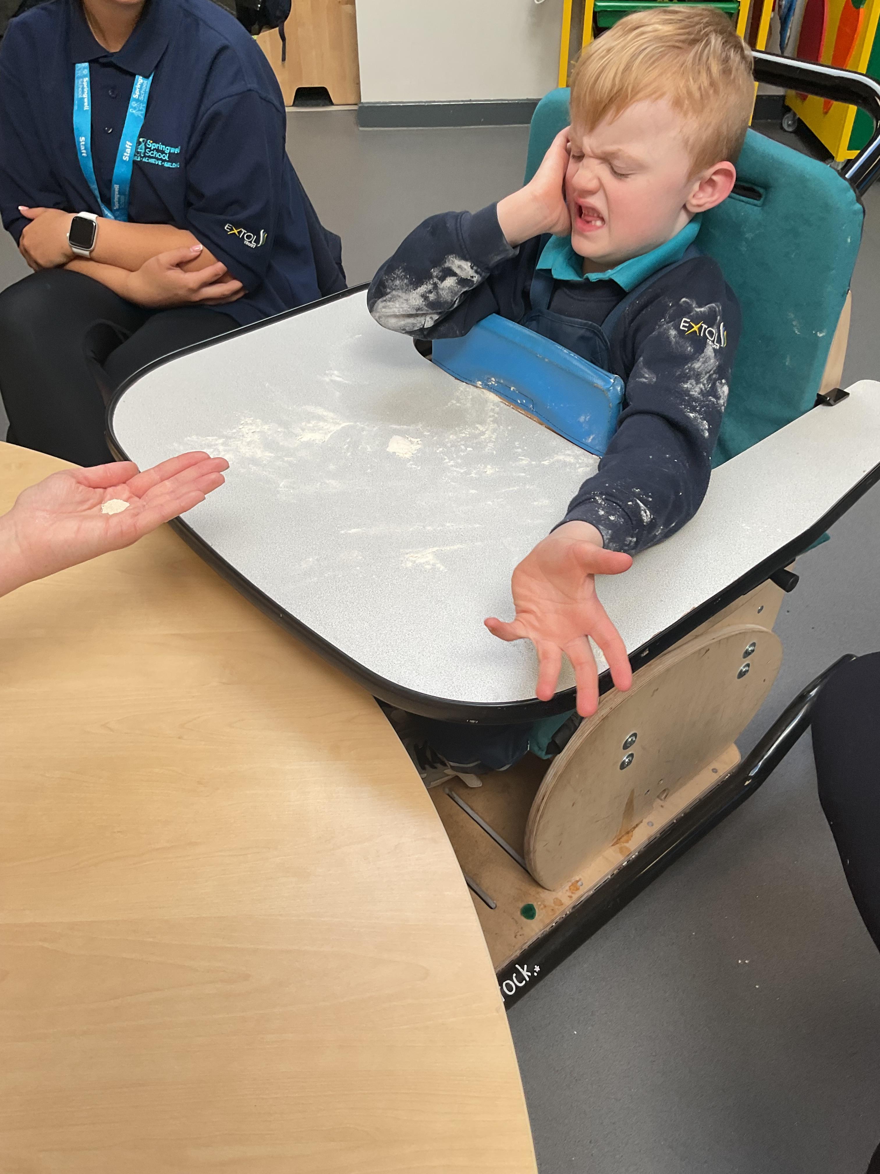 This week zebras focused on their individual communication targets and have been practicing communicating in school with PECs. All zebras have worked so hard communicating at breakfast time, communicating in a range of classroom activities and during physical activities such as rebound therapy. We started the week improving our fine motor skills by carefully tracing over dotted lines with our chosen colour. In dough disco, we practised rolling the dough, splatting the dough and pinching the dough with our fingers. At the end of the week, we got messy in cookery by exploring the flour, splatting the eggs and mark making with the sugar. By mixing the ingredients together we made cakes and then iced them later, these were delicious. Our favourite time of the week was getting all of our energy out on the trampoline. This week our focus was for the children to stay in the centre of the trampoline independently but most of all we had fun!
