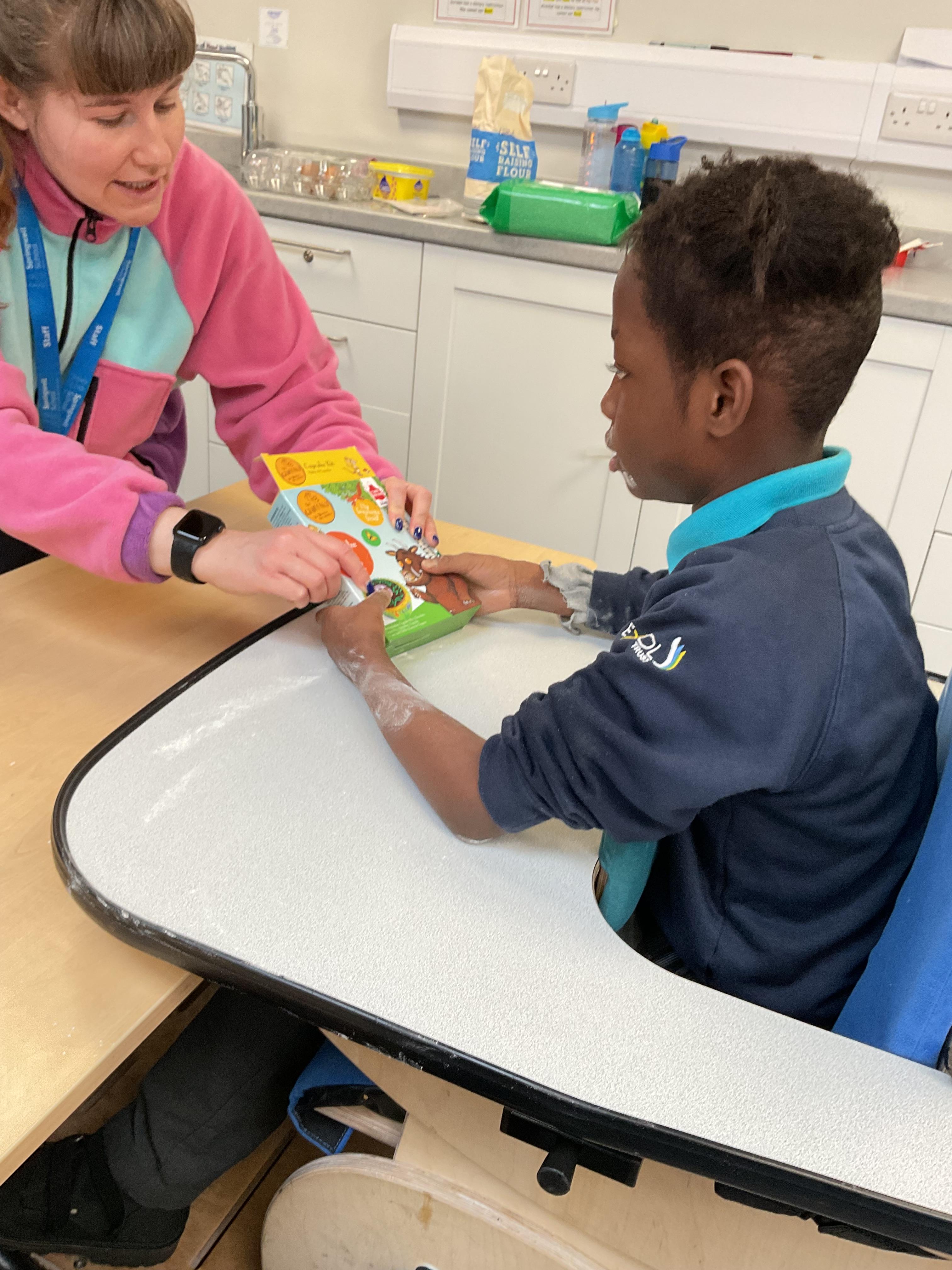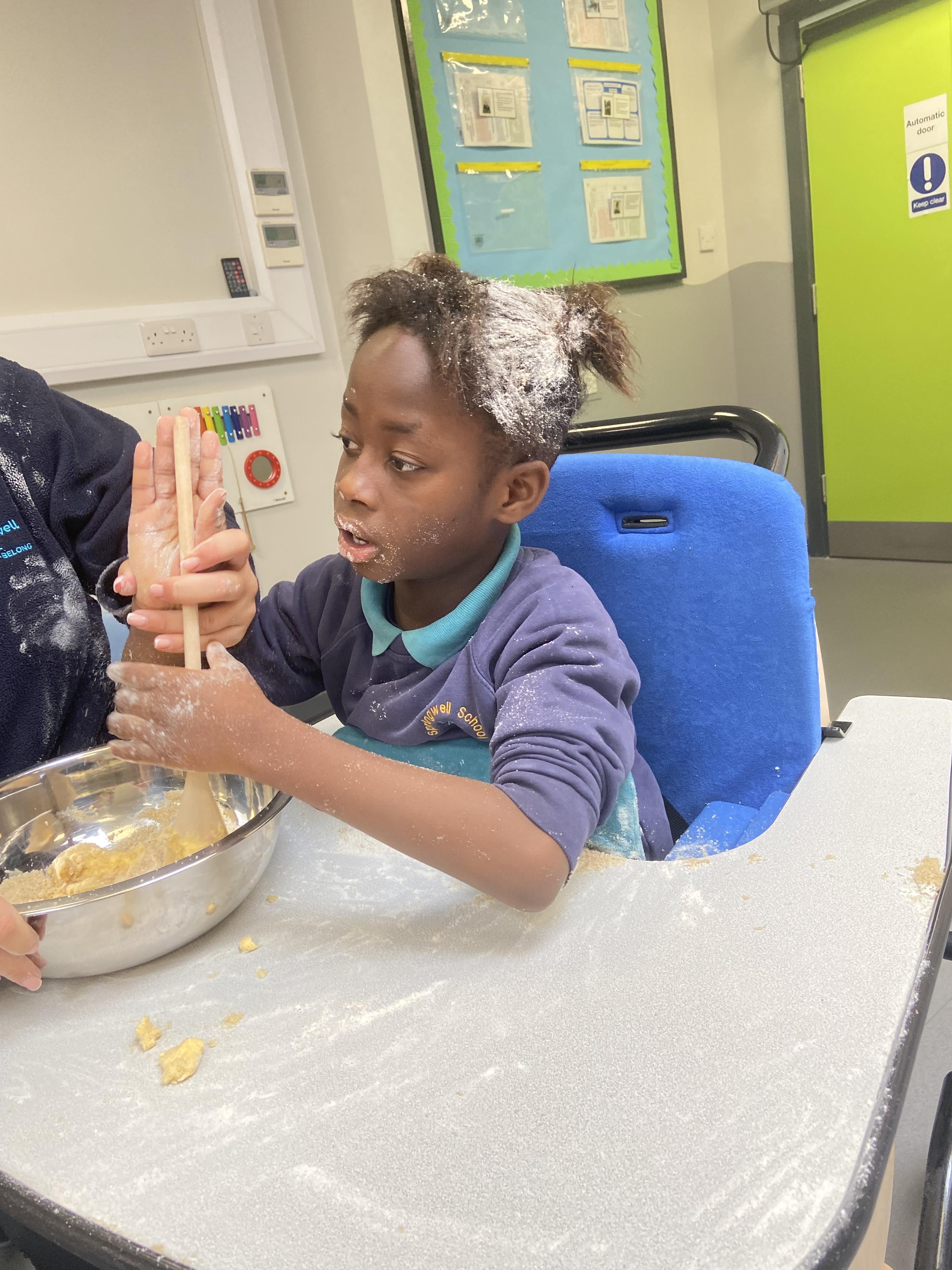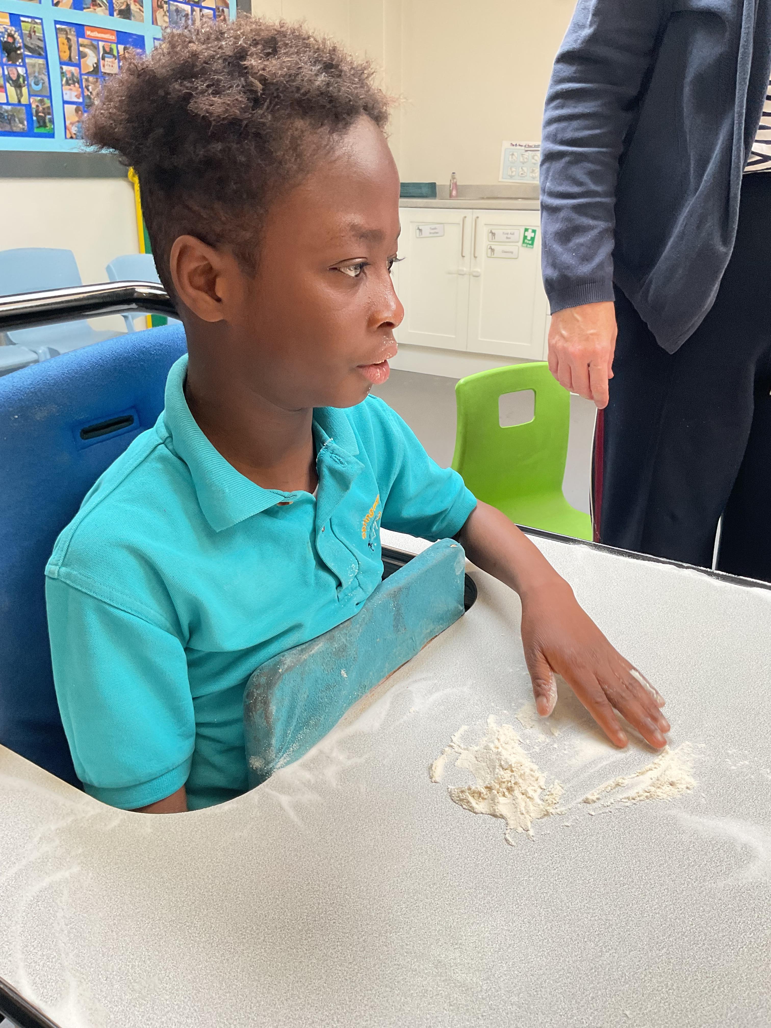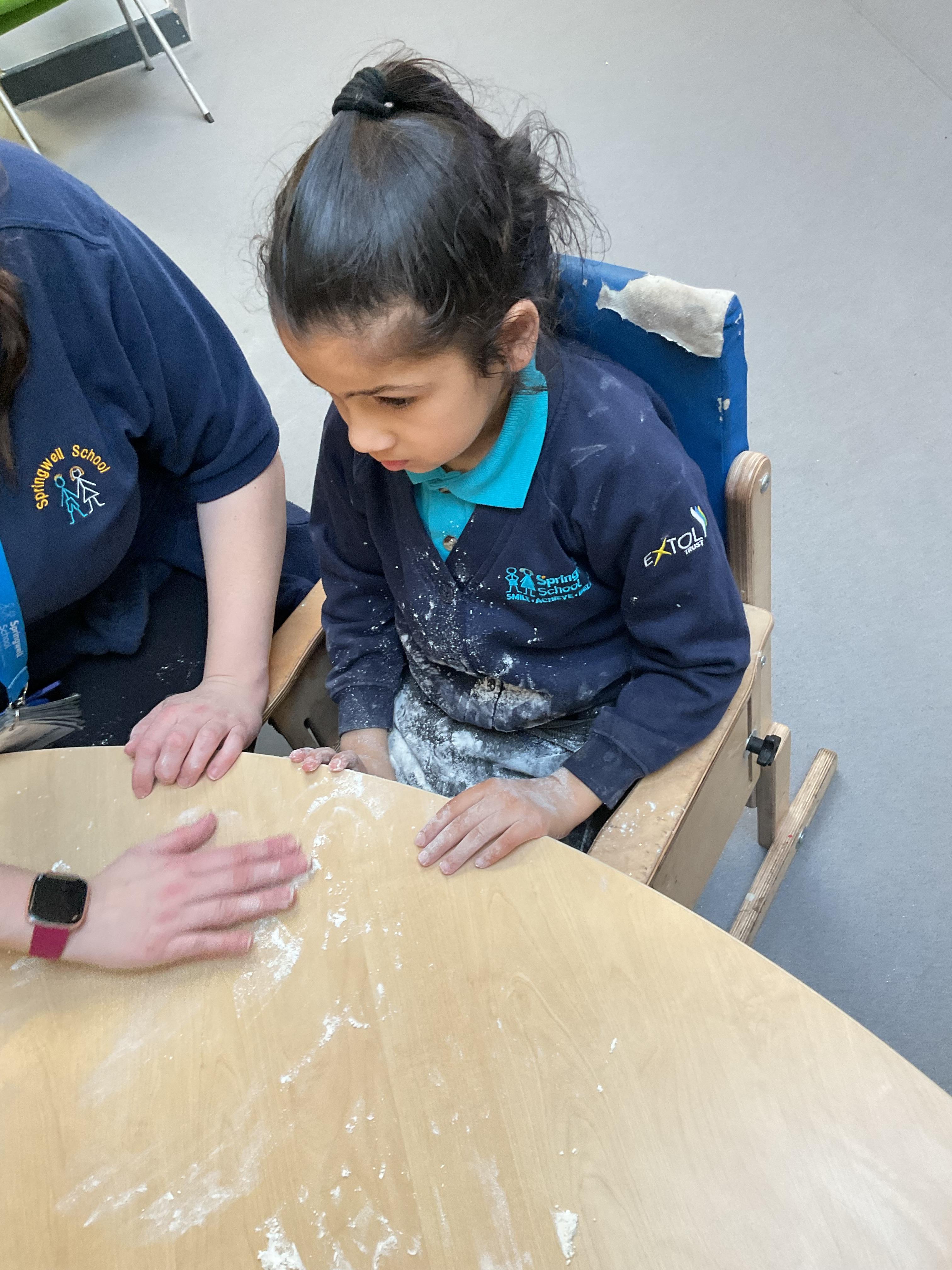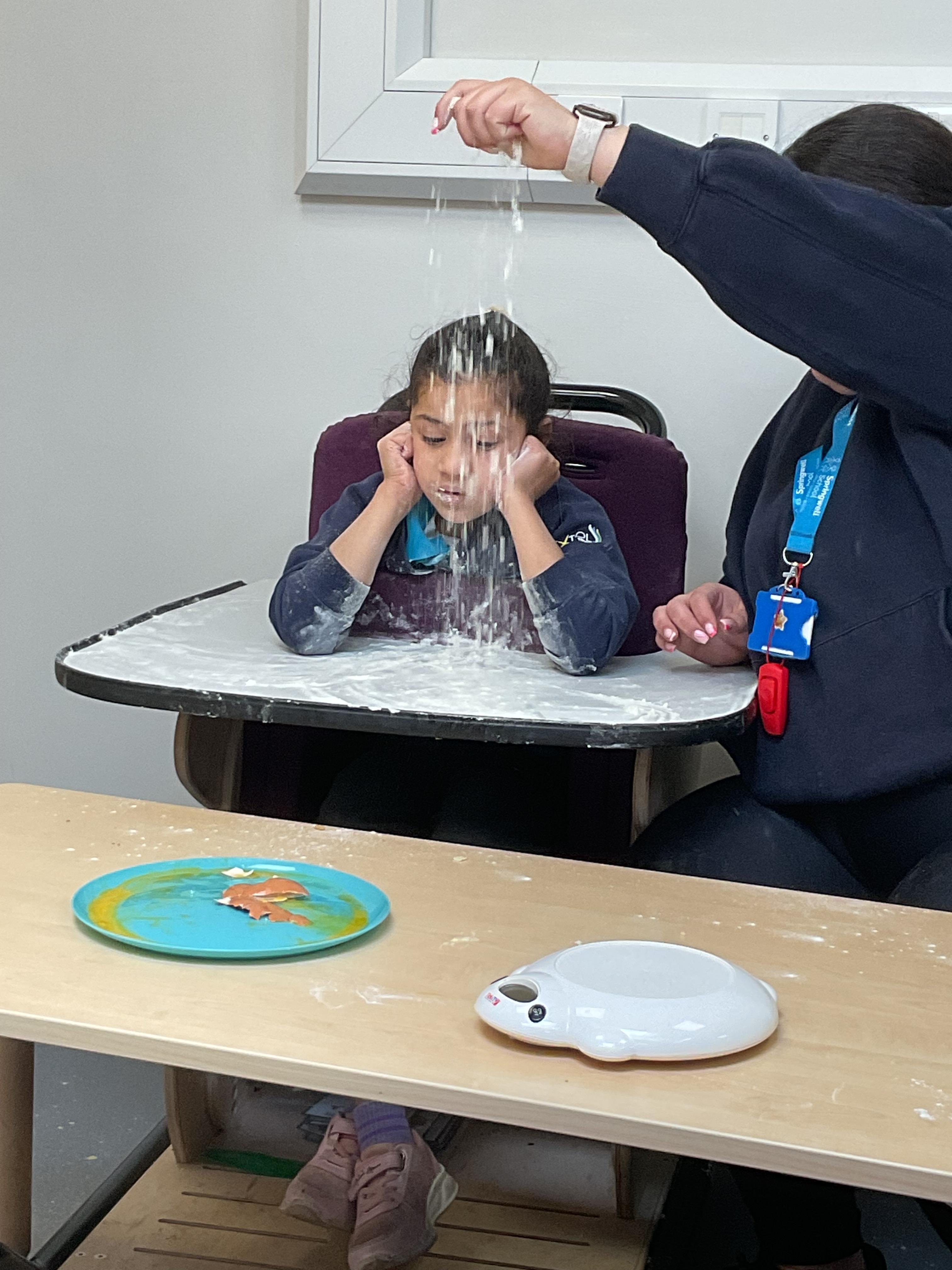 This week zebras focused on their individual communication targets and have been practicing communicating in school with PECs. All zebras have worked so hard communicating at breakfast time, communicating in a range of classroom activities and during physical activities such as rebound therapy. We started the week improving our fine motor skills by carefully tracing over dotted lines with our chosen colour. In dough disco, we practised rolling the dough, splatting the dough and pinching the dough with our fingers. At the end of the week, we got messy in cookery by exploring the flour, splatting the eggs and mark making with the sugar. By mixing the ingredients together we made cakes and then iced them later, these were delicious. Our favourite time of the week was getting all of our energy out on the trampoline. This week our focus was for the children to stay in the centre of the trampoline independently but most of all we had fun!