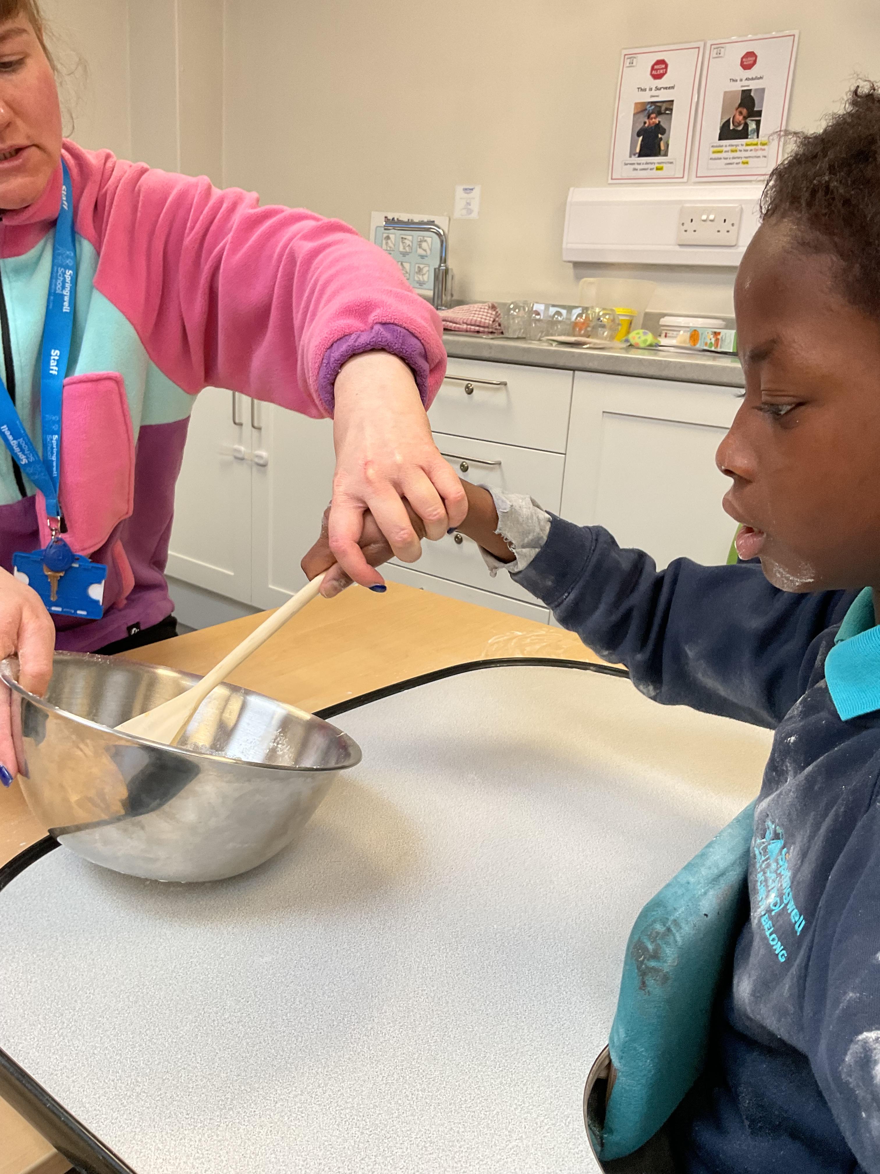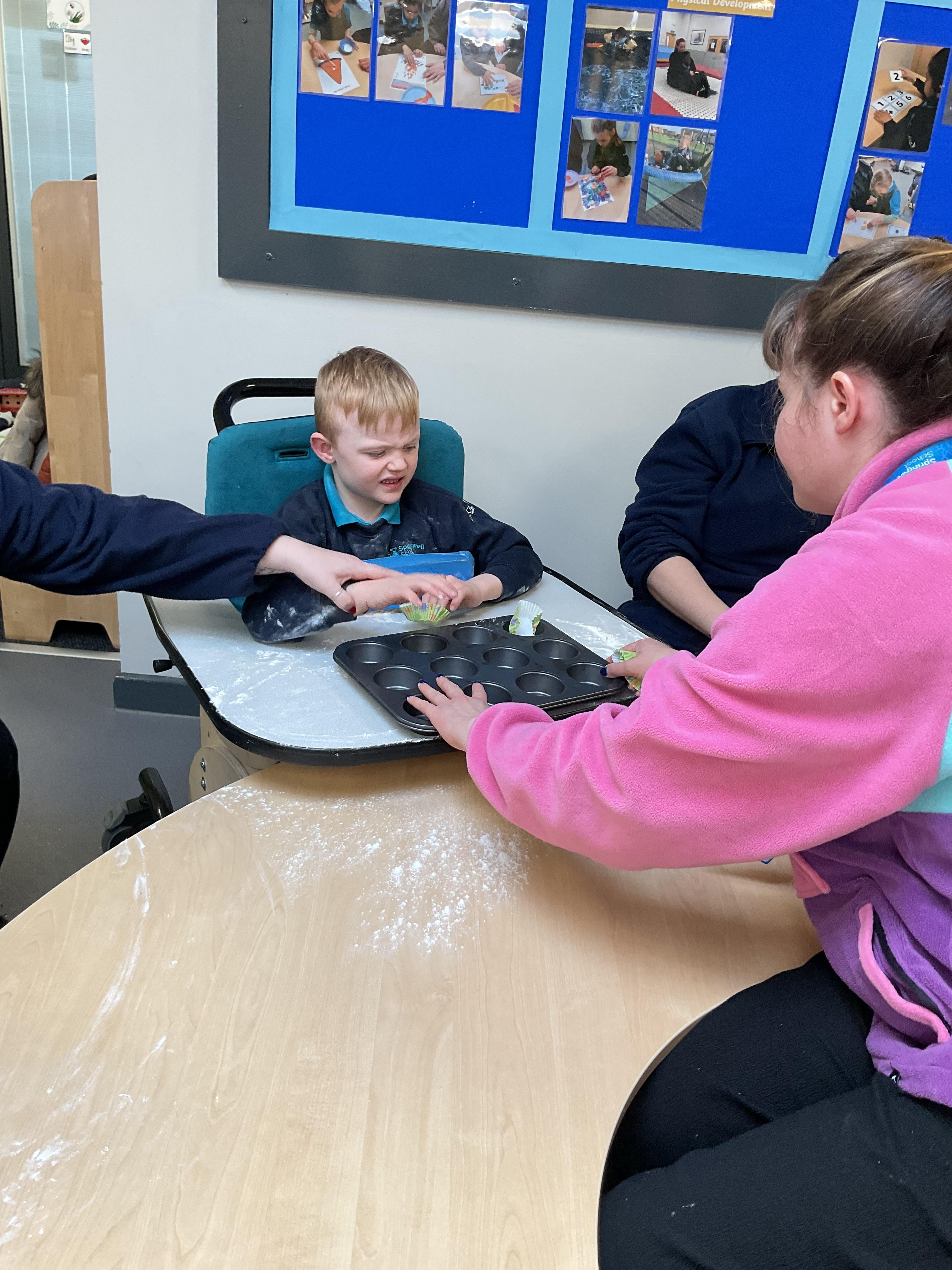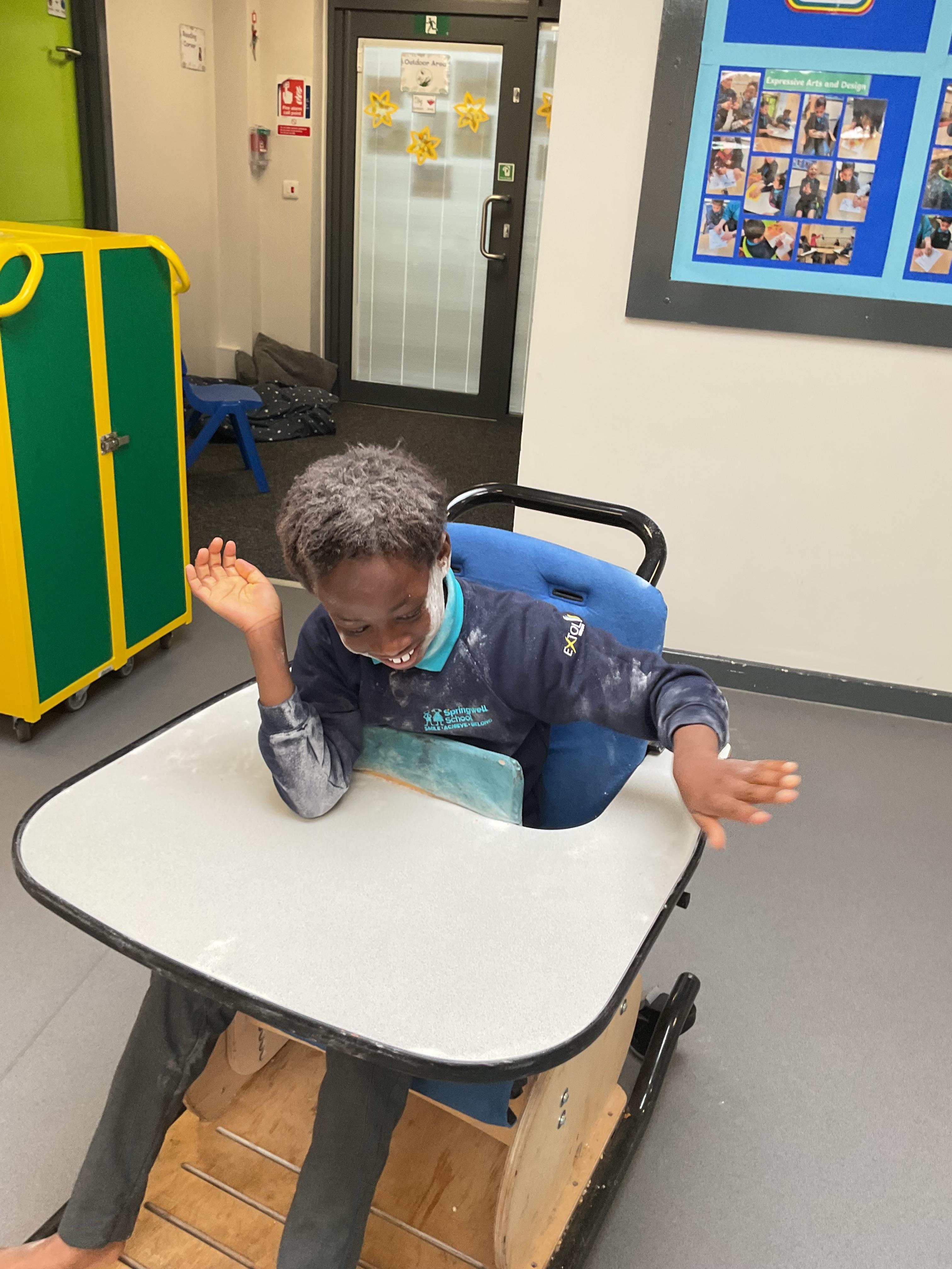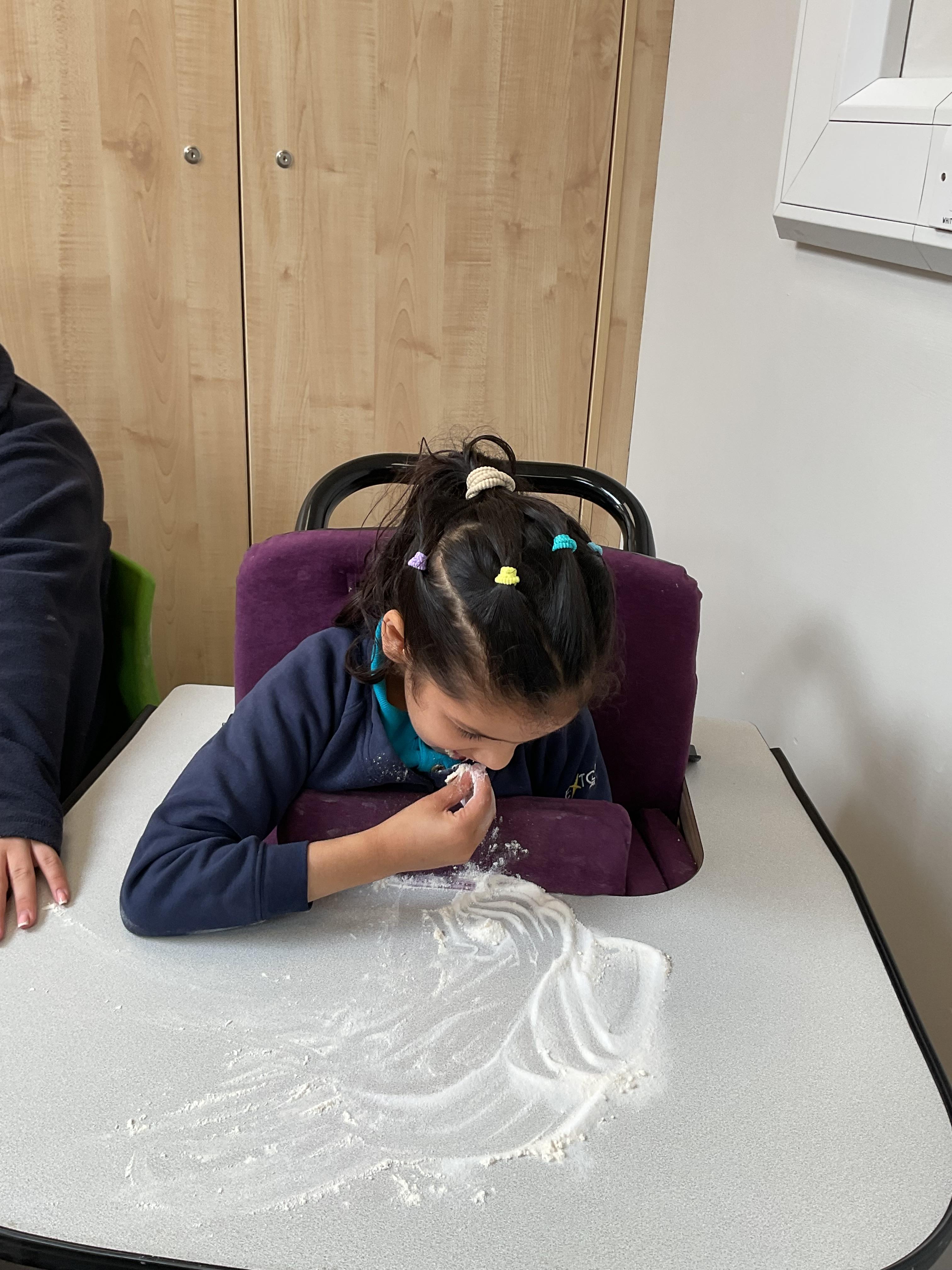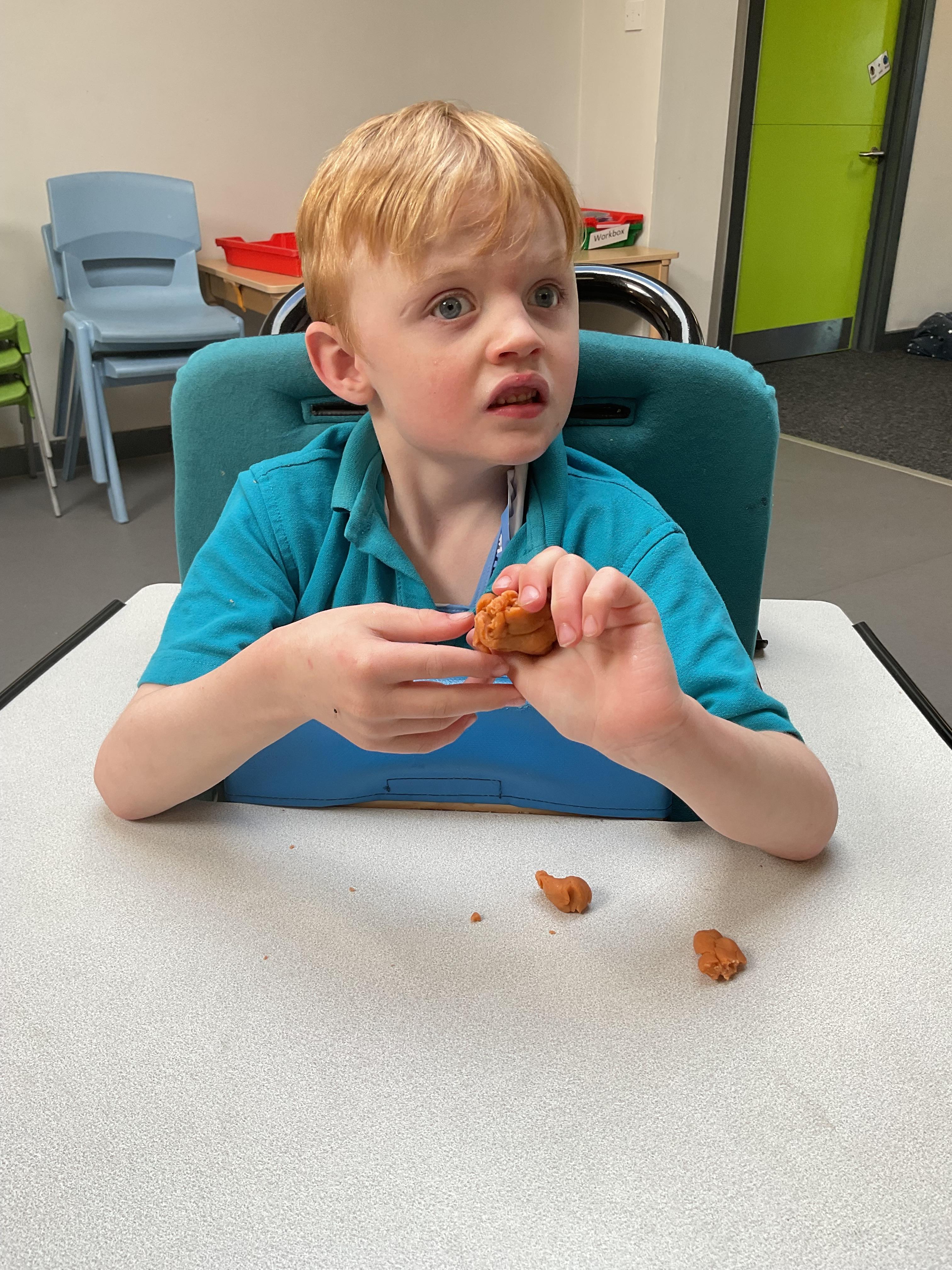 This week zebras focused on their individual communication targets and have been practicing communicating in school with PECs. All zebras have worked so hard communicating at breakfast time, communicating in a range of classroom activities and during physical activities such as rebound therapy. We started the week improving our fine motor skills by carefully tracing over dotted lines with our chosen colour. In dough disco, we practised rolling the dough, splatting the dough and pinching the dough with our fingers. At the end of the week, we got messy in cookery by exploring the flour, splatting the eggs and mark making with the sugar. By mixing the ingredients together we made cakes and then iced them later, these were delicious. Our favourite time of the week was getting all of our energy out on the trampoline. This week our focus was for the children to stay in the centre of the trampoline independently but most of all we had fun!
