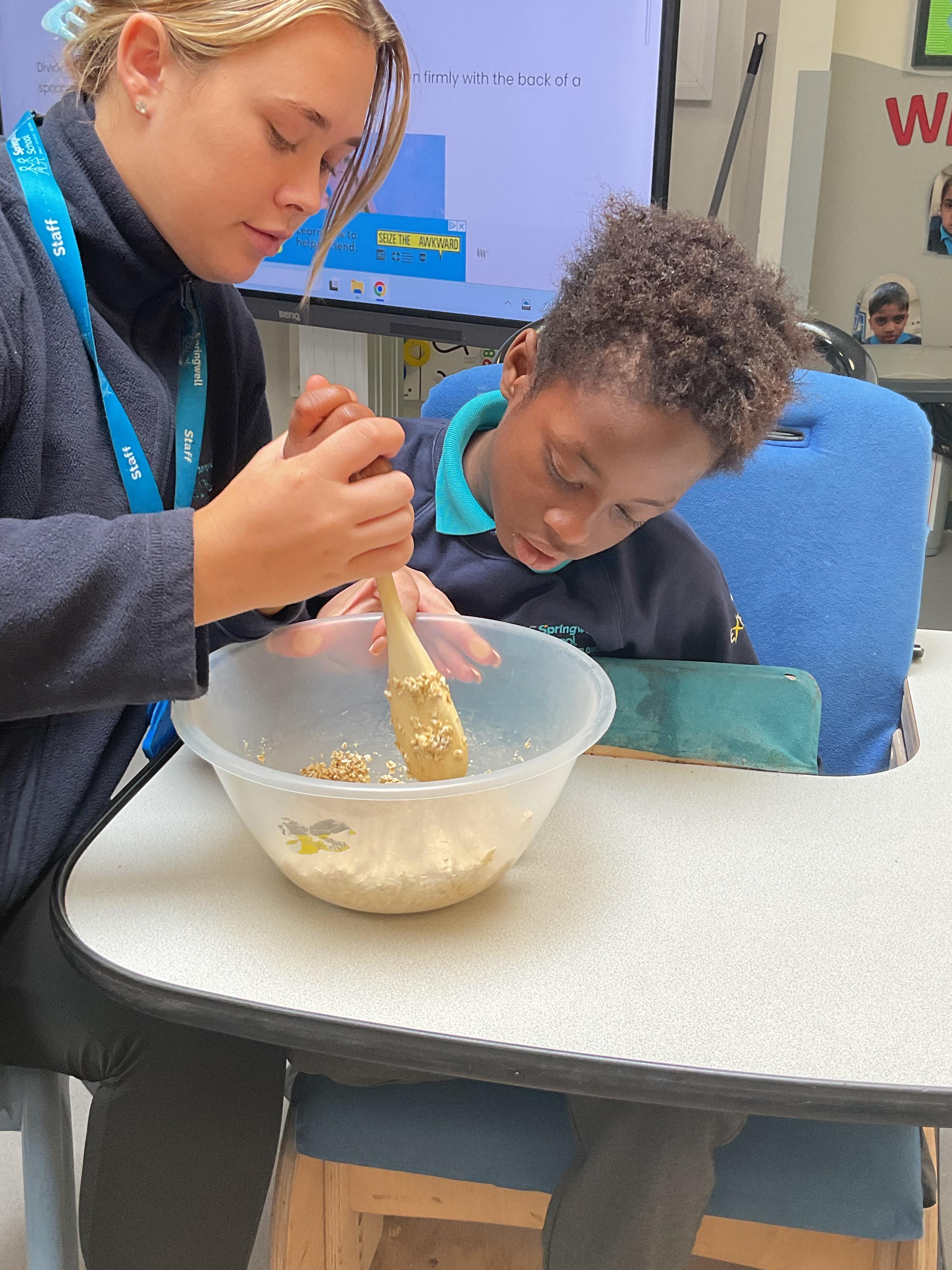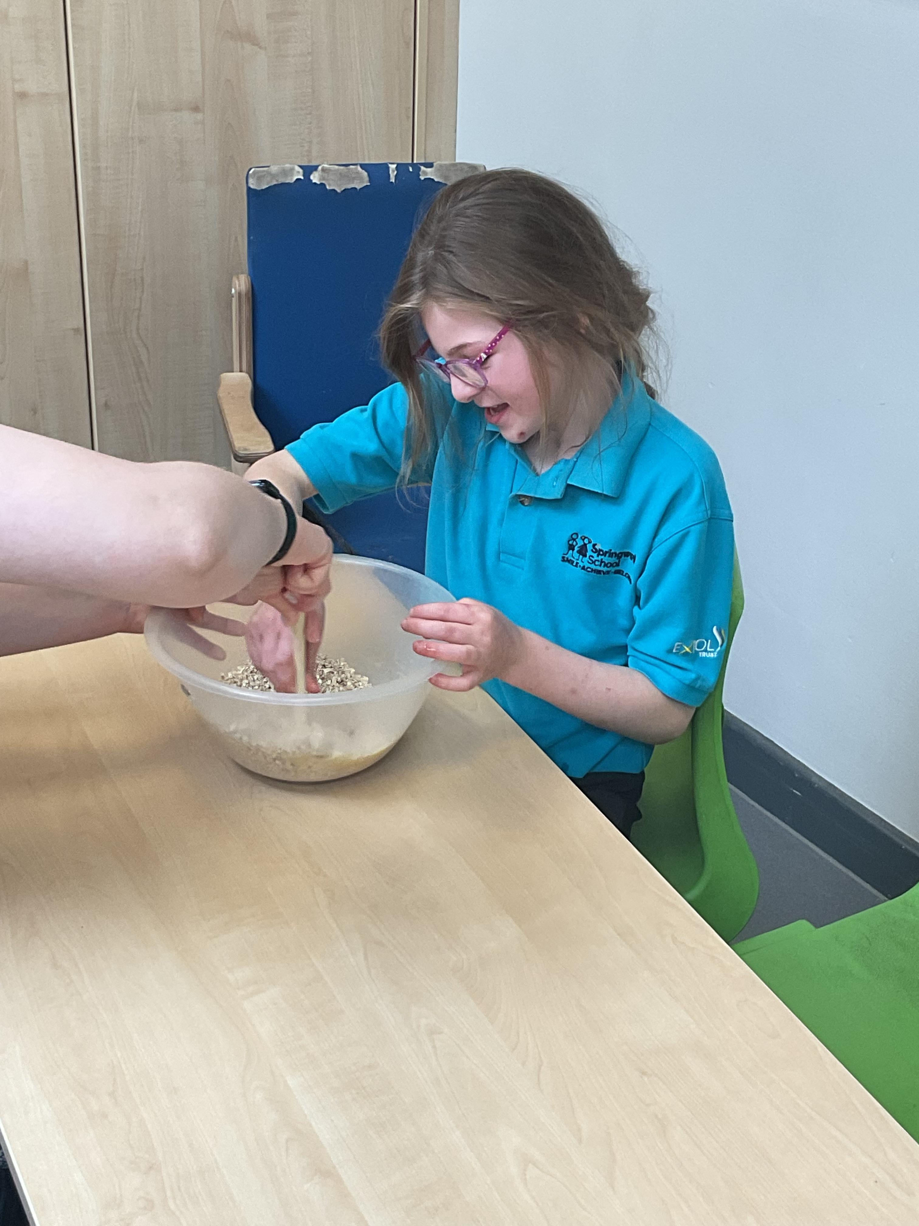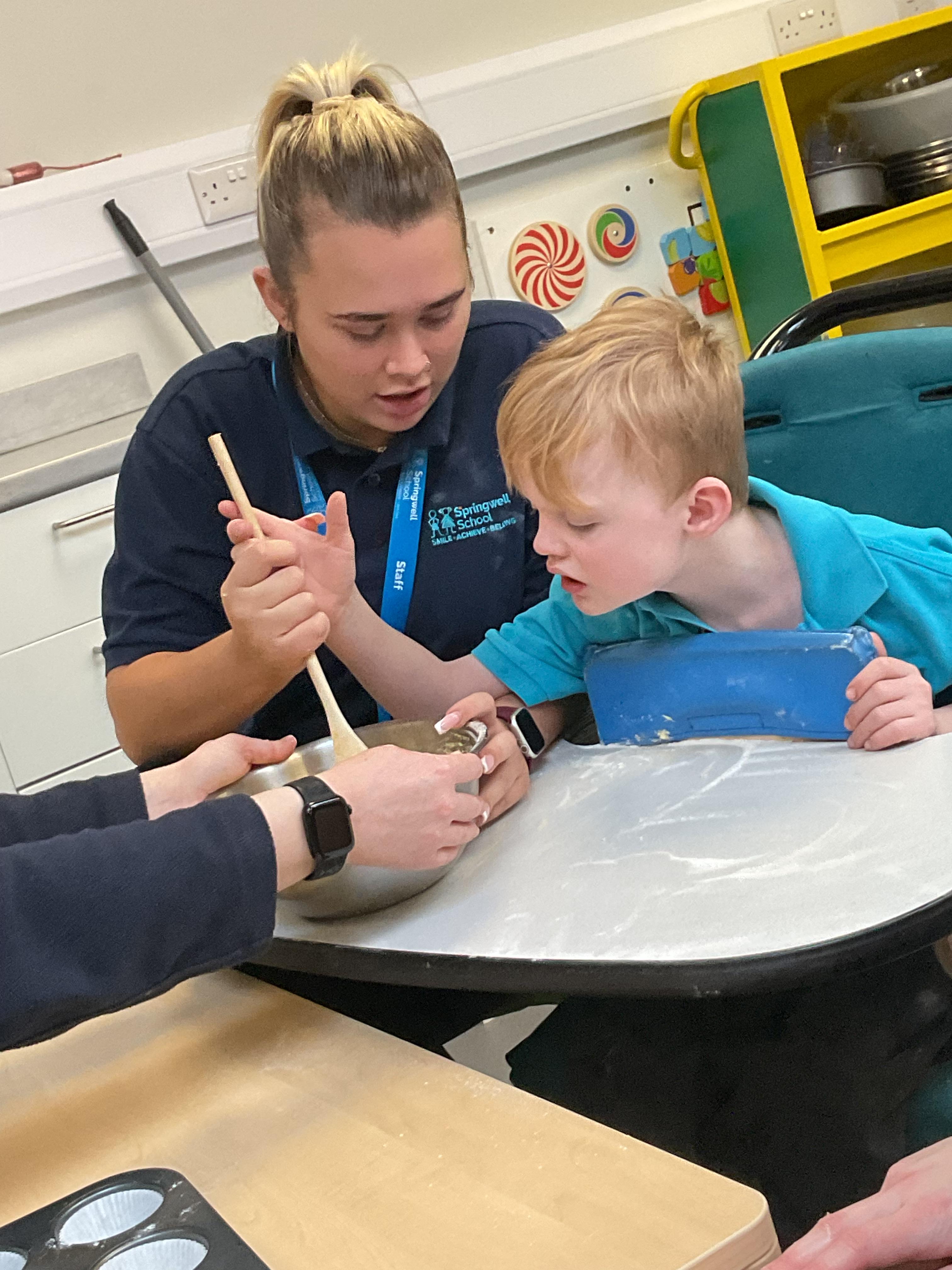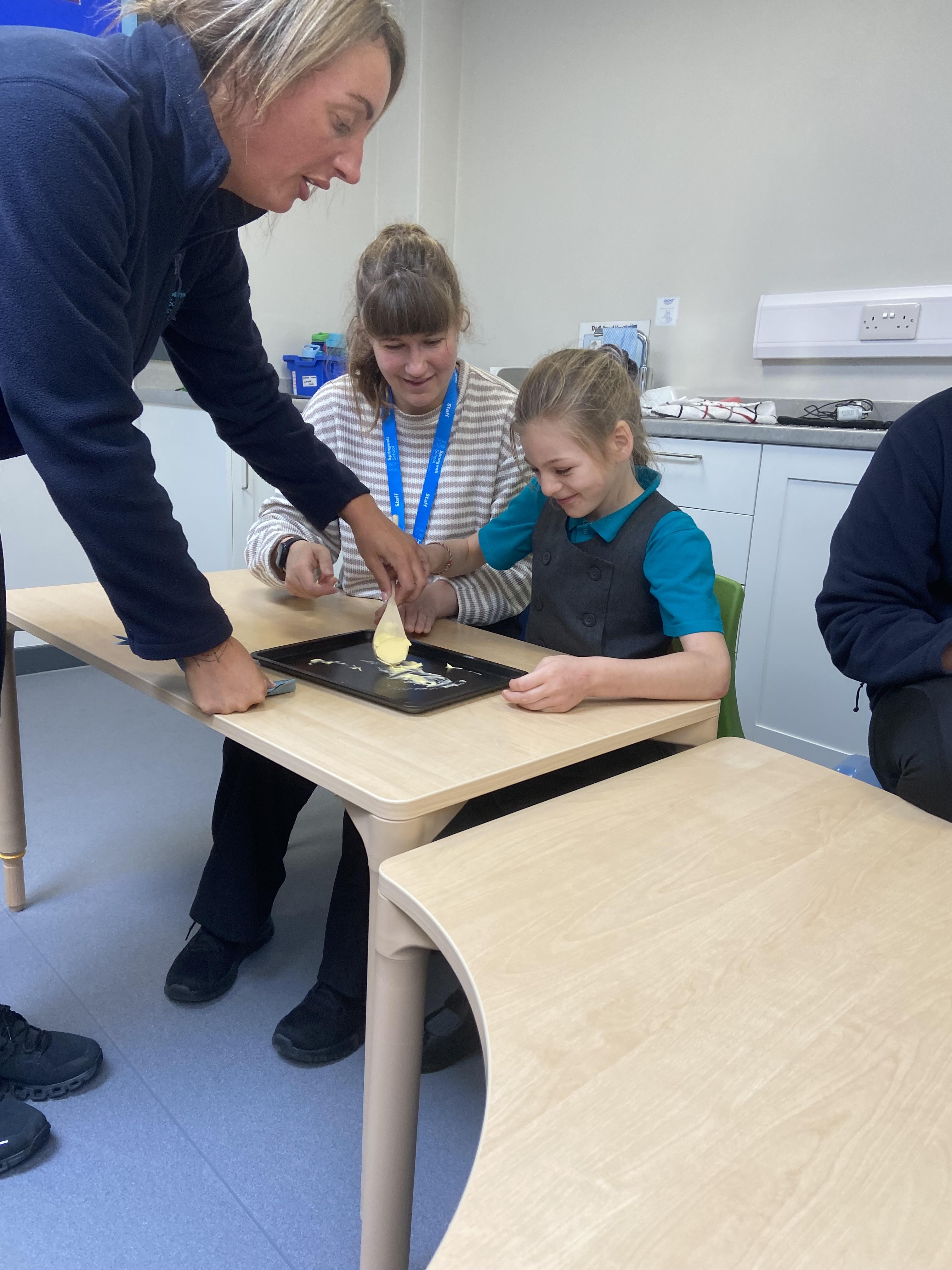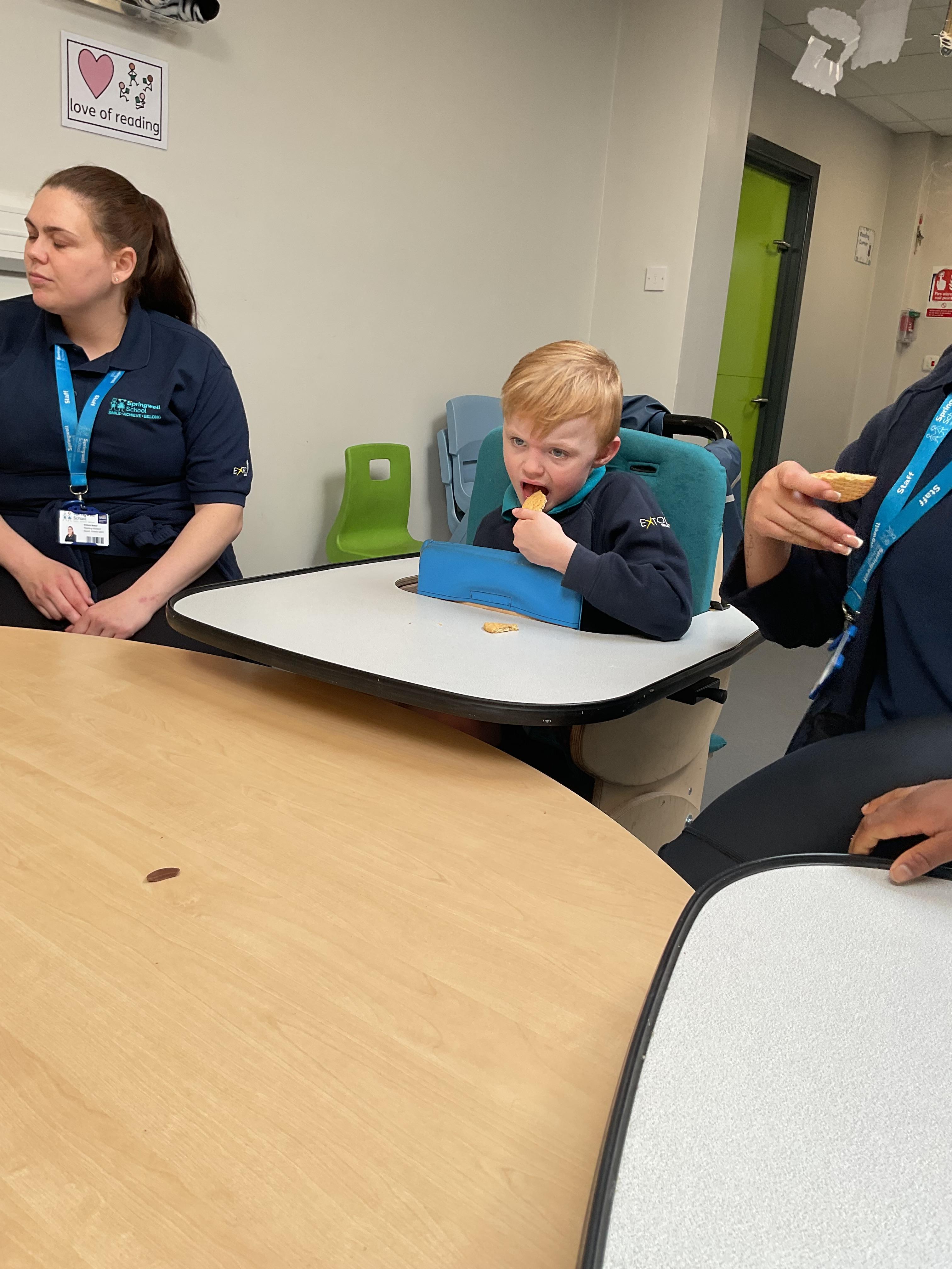 This week zebras focused on their individual communication targets and have been practicing communicating in school with PECs. All zebras have worked so hard communicating at breakfast time, communicating in a range of classroom activities and during physical activities such as rebound therapy. We started the week improving our fine motor skills by carefully tracing over dotted lines with our chosen colour. In dough disco, we practised rolling the dough, splatting the dough and pinching the dough with our fingers. At the end of the week, we got messy in cookery by exploring the flour, splatting the eggs and mark making with the sugar. By mixing the ingredients together we made cakes and then iced them later, these were delicious. Our favourite time of the week was getting all of our energy out on the trampoline. This week our focus was for the children to stay in the centre of the trampoline independently but most of all we had fun!