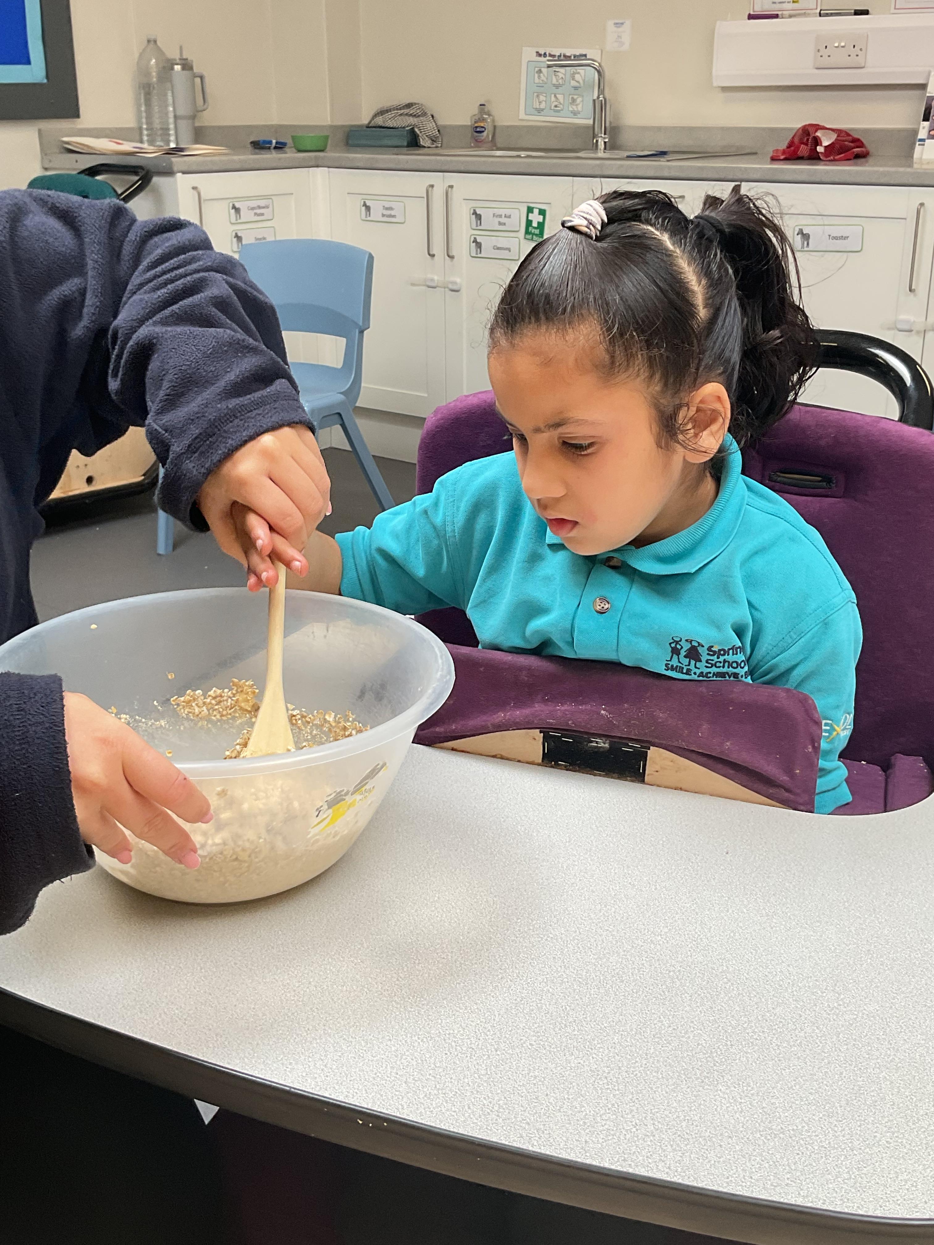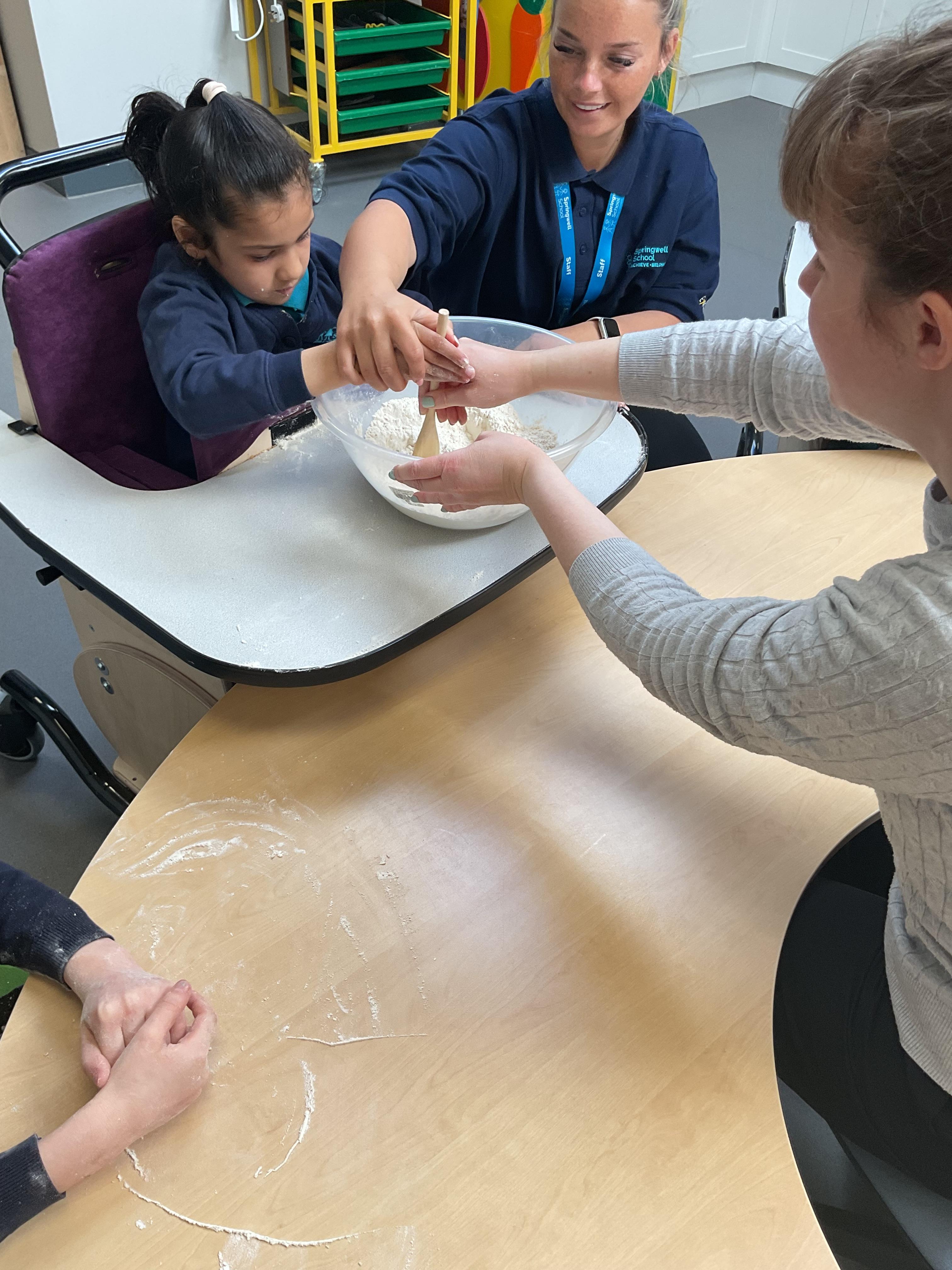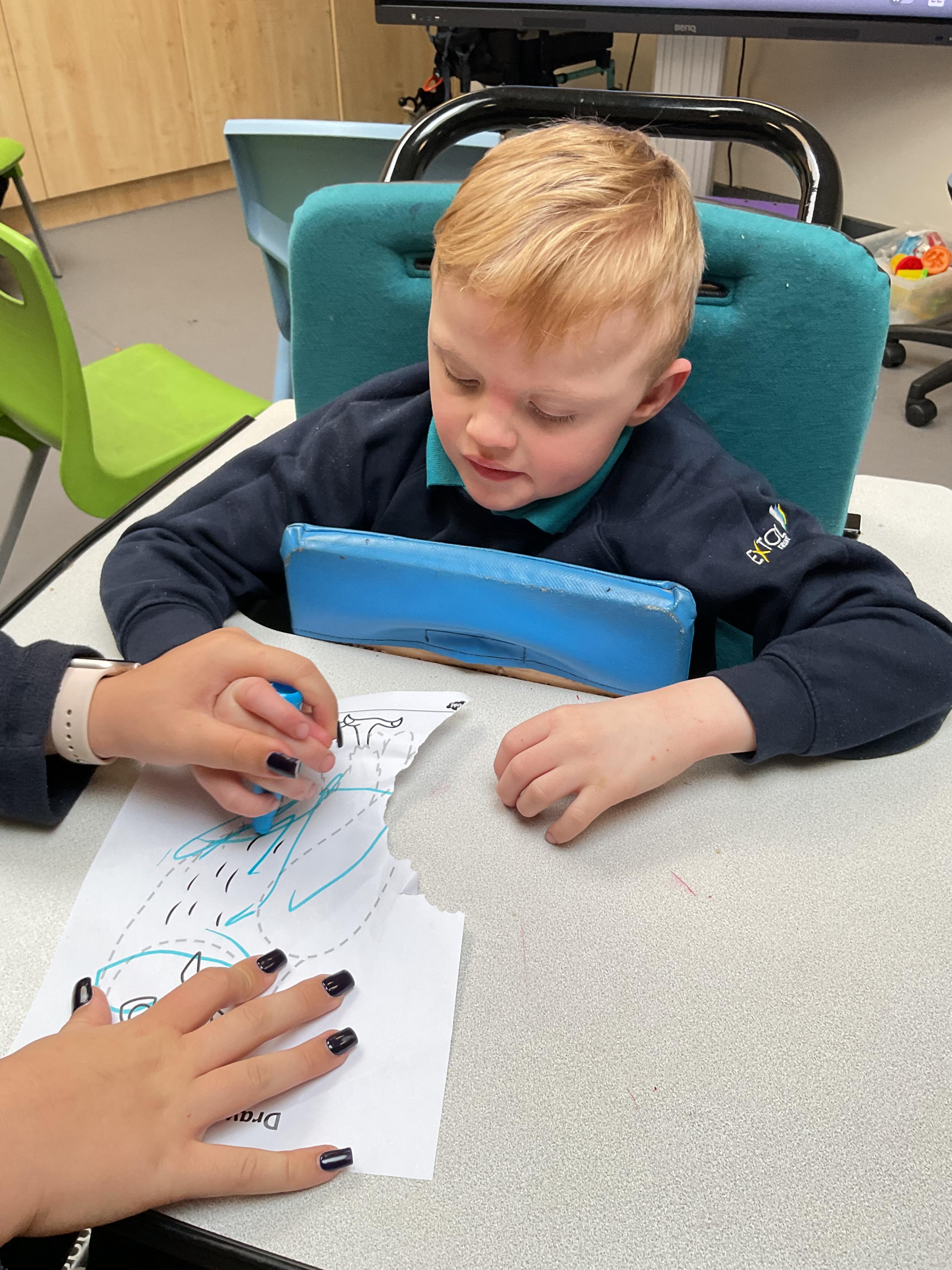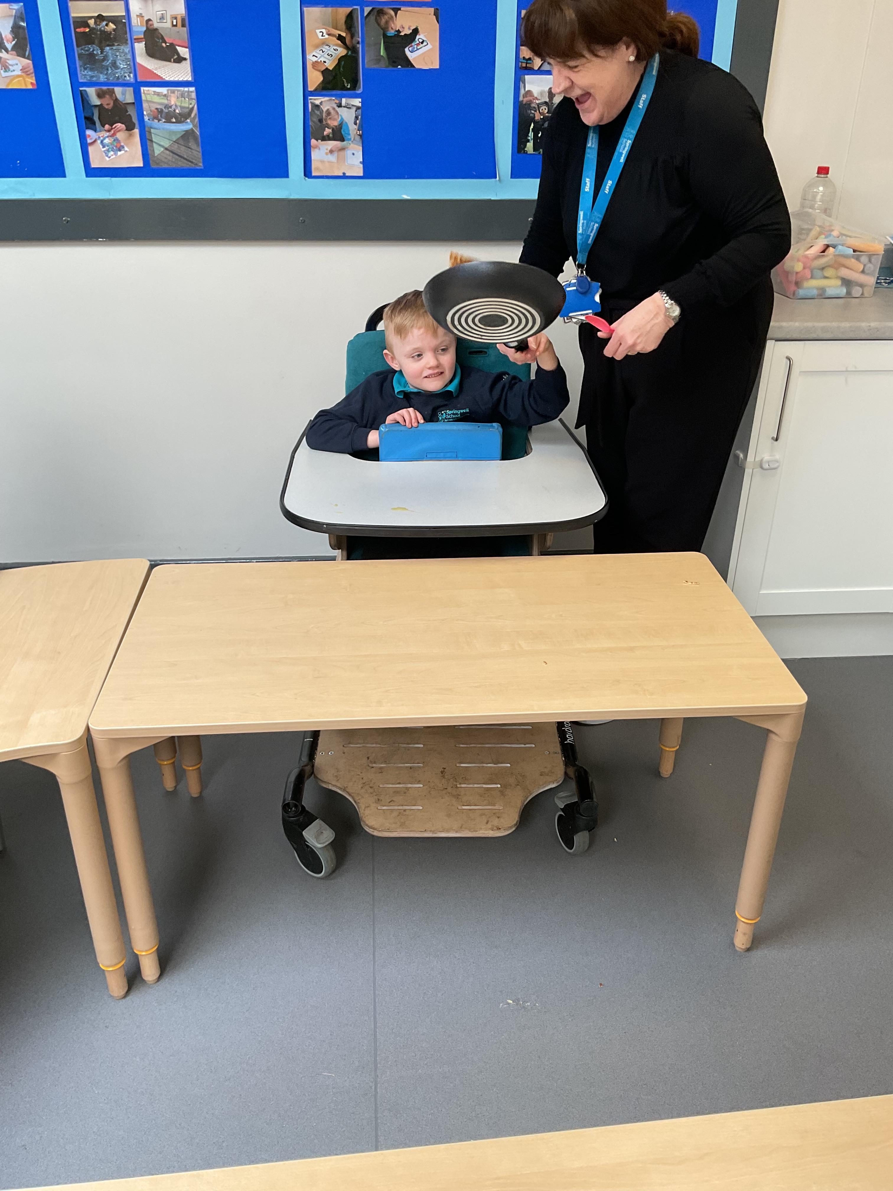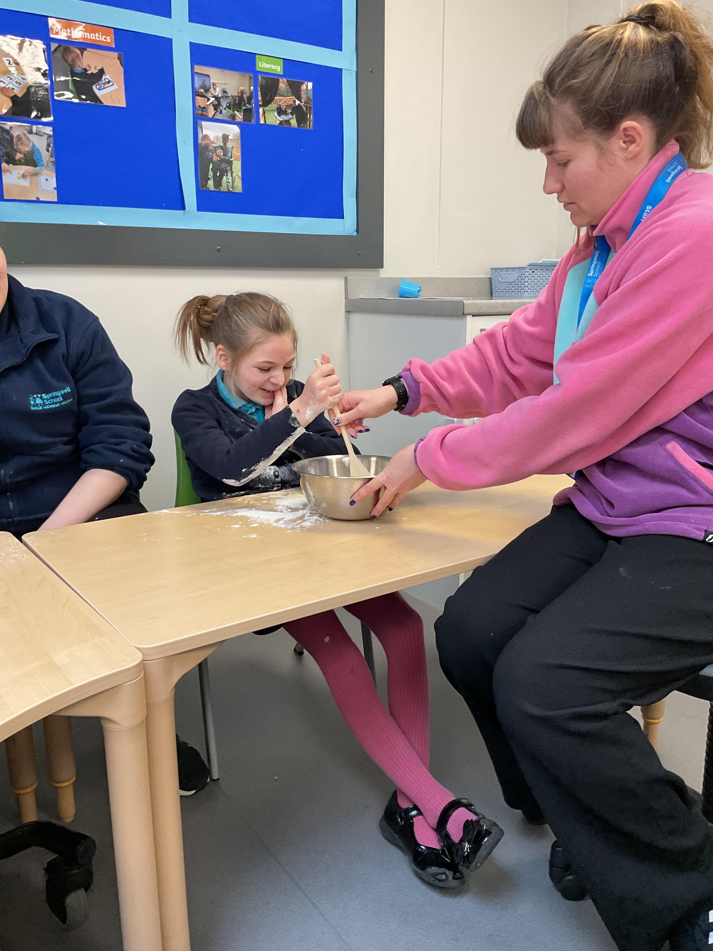 This week zebras focused on their individual communication targets and have been practicing communicating in school with PECs. All zebras have worked so hard communicating at breakfast time, communicating in a range of classroom activities and during physical activities such as rebound therapy. We started the week improving our fine motor skills by carefully tracing over dotted lines with our chosen colour. In dough disco, we practised rolling the dough, splatting the dough and pinching the dough with our fingers. At the end of the week, we got messy in cookery by exploring the flour, splatting the eggs and mark making with the sugar. By mixing the ingredients together we made cakes and then iced them later, these were delicious. Our favourite time of the week was getting all of our energy out on the trampoline. This week our focus was for the children to stay in the centre of the trampoline independently but most of all we had fun!