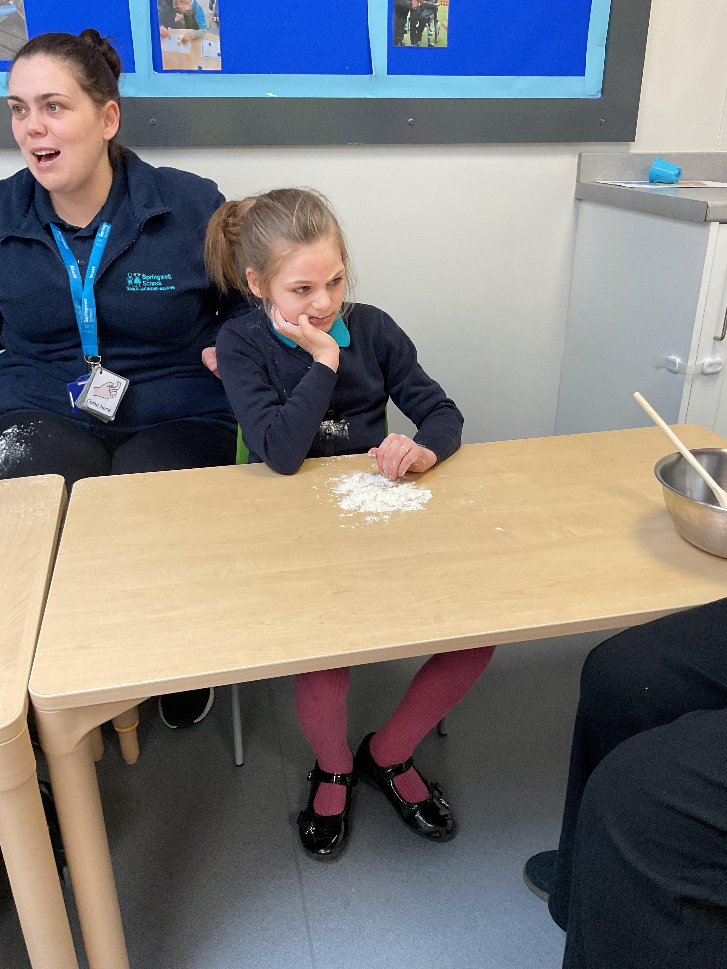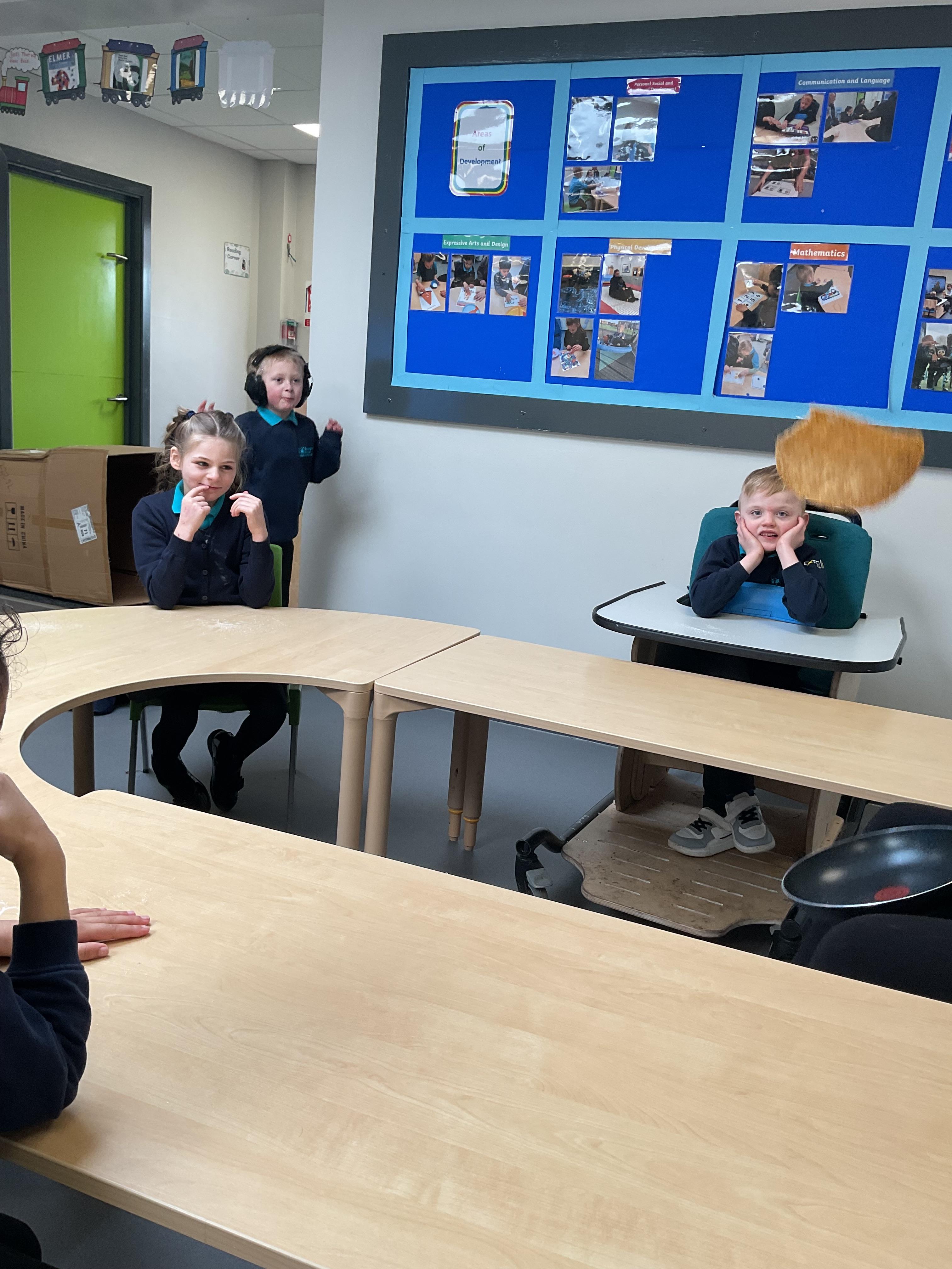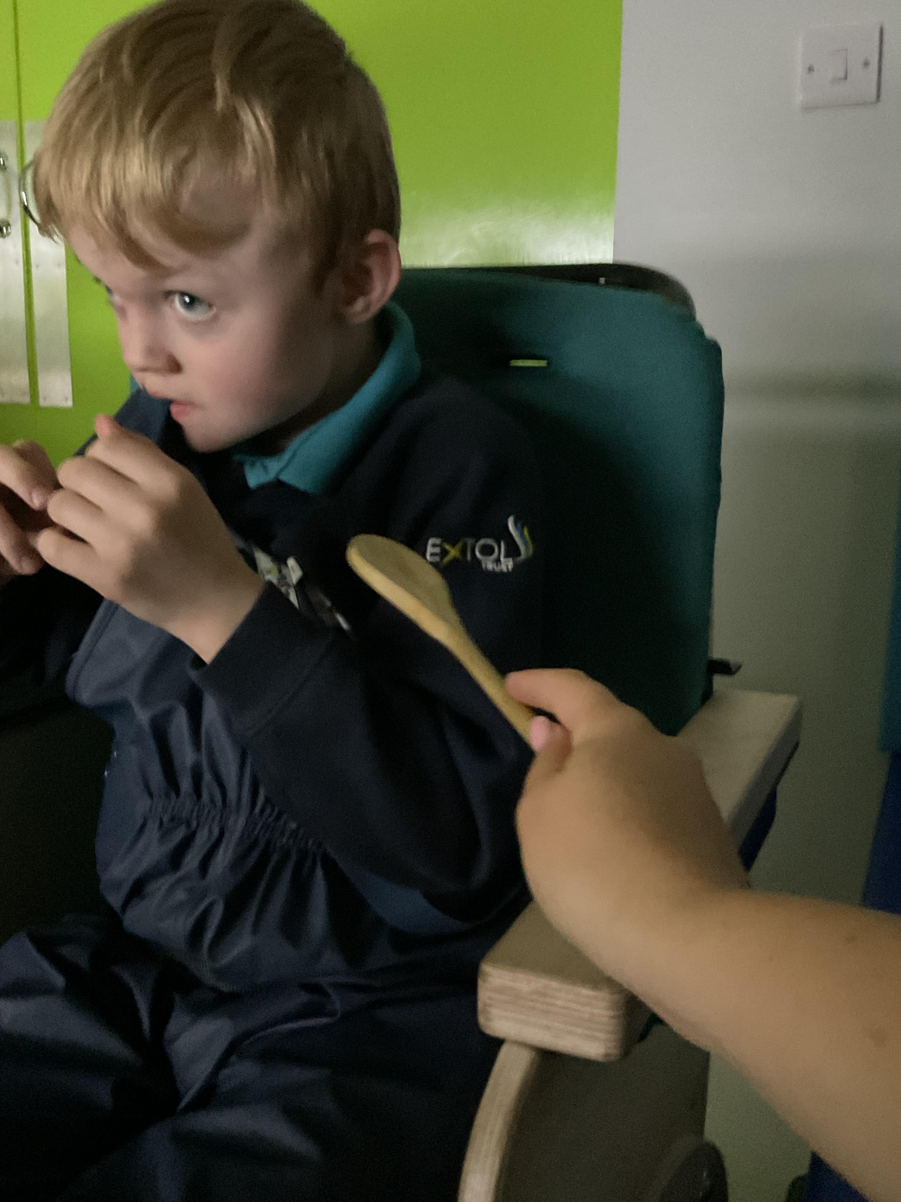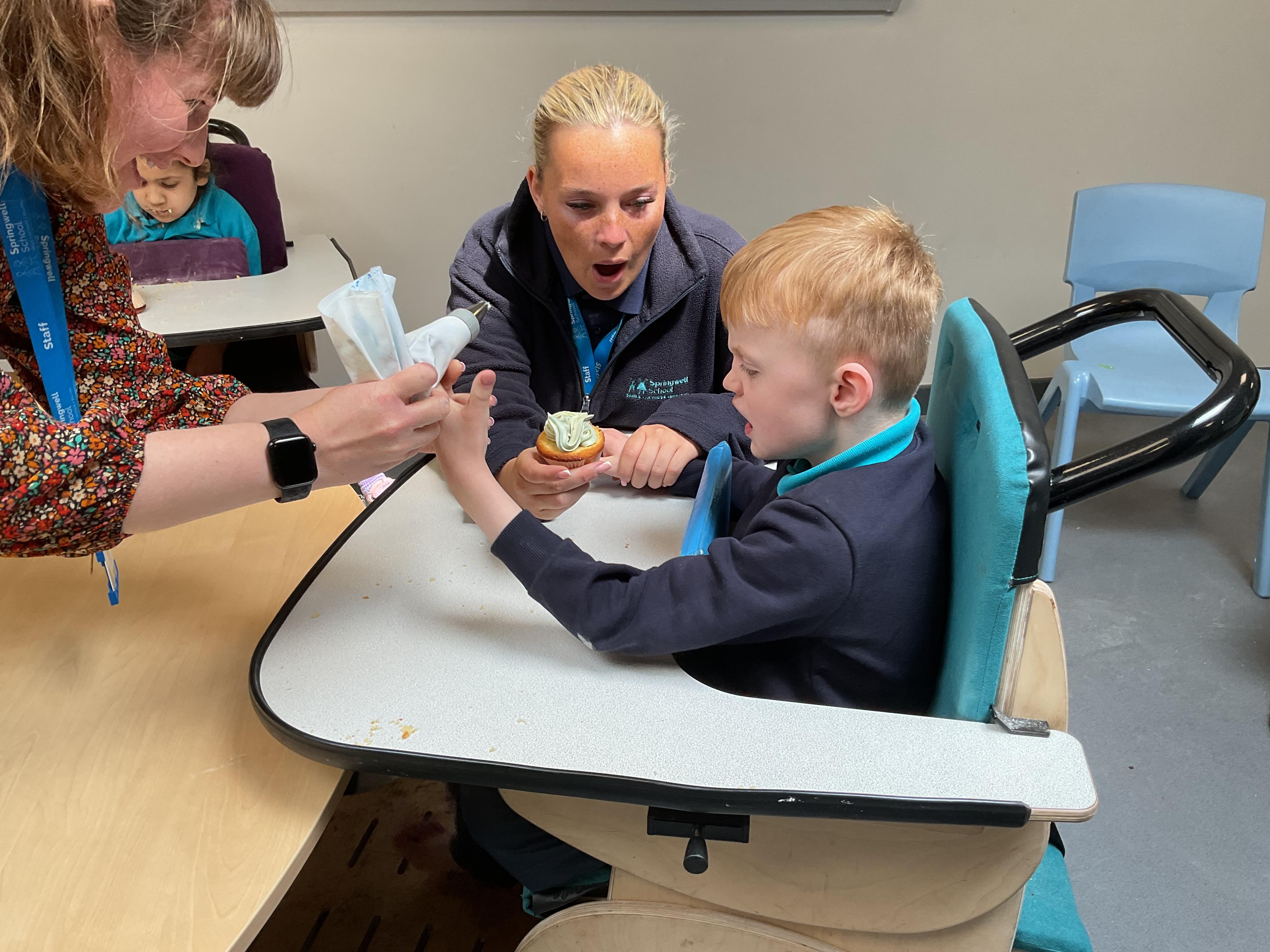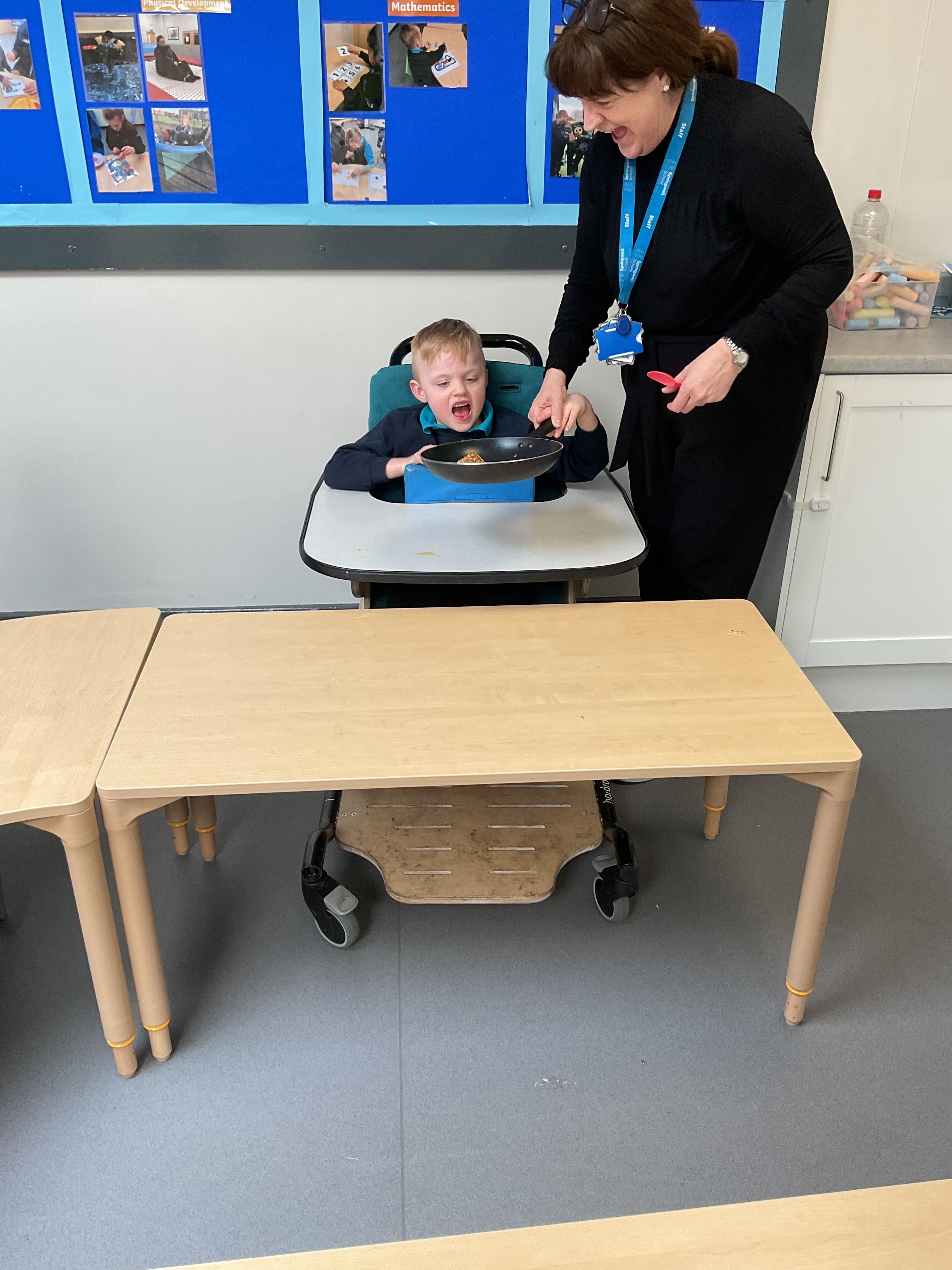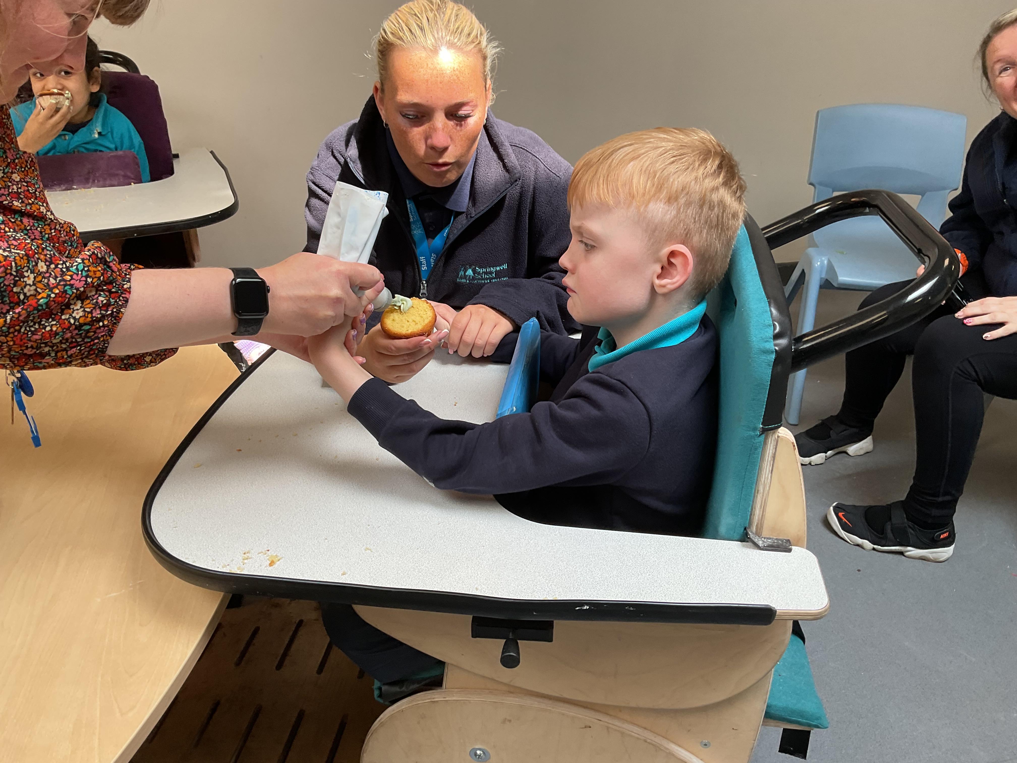 This week zebras focused on their individual communication targets and have been practicing communicating in school with PECs. All zebras have worked so hard communicating at breakfast time, communicating in a range of classroom activities and during physical activities such as rebound therapy. We started the week improving our fine motor skills by carefully tracing over dotted lines with our chosen colour. In dough disco, we practised rolling the dough, splatting the dough and pinching the dough with our fingers. At the end of the week, we got messy in cookery by exploring the flour, splatting the eggs and mark making with the sugar. By mixing the ingredients together we made cakes and then iced them later, these were delicious. Our favourite time of the week was getting all of our energy out on the trampoline. This week our focus was for the children to stay in the centre of the trampoline independently but most of all we had fun!