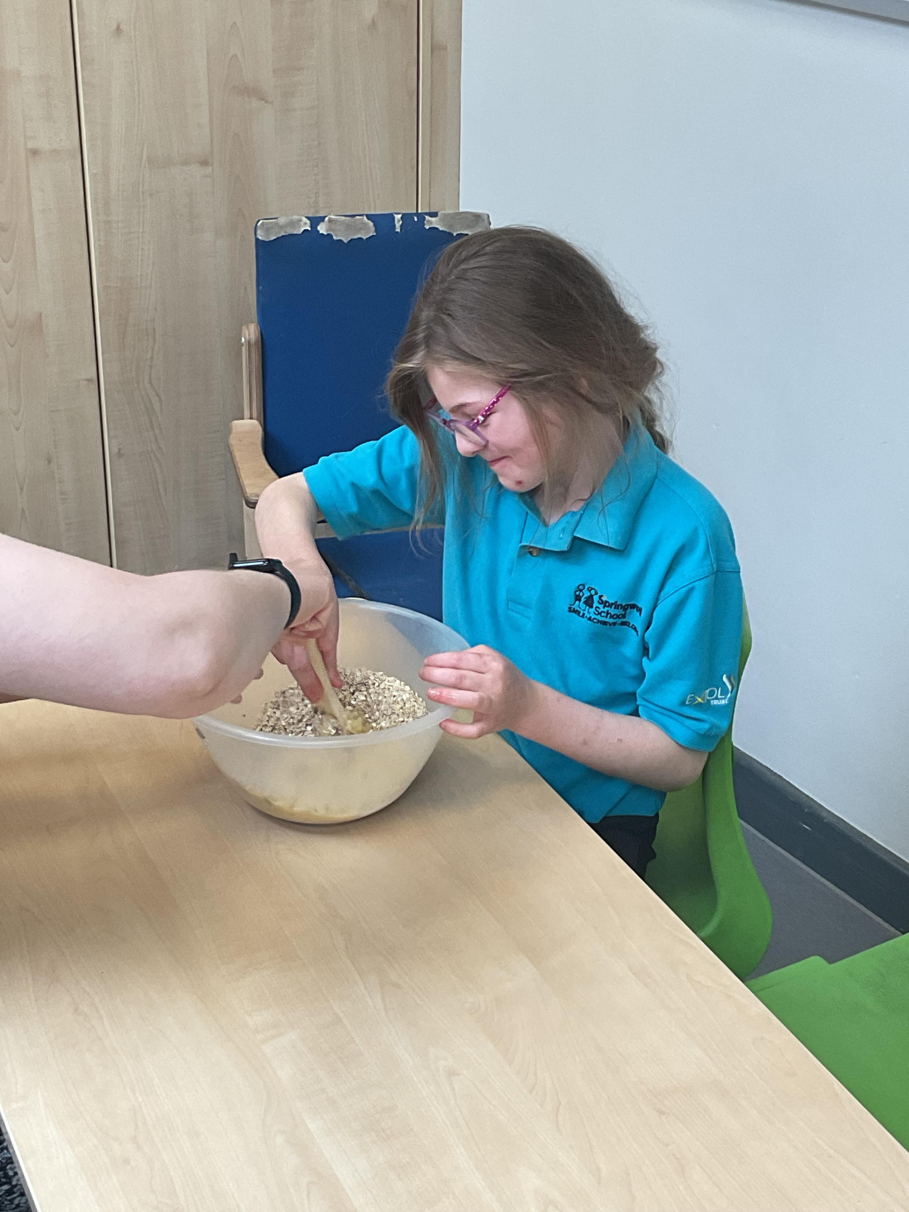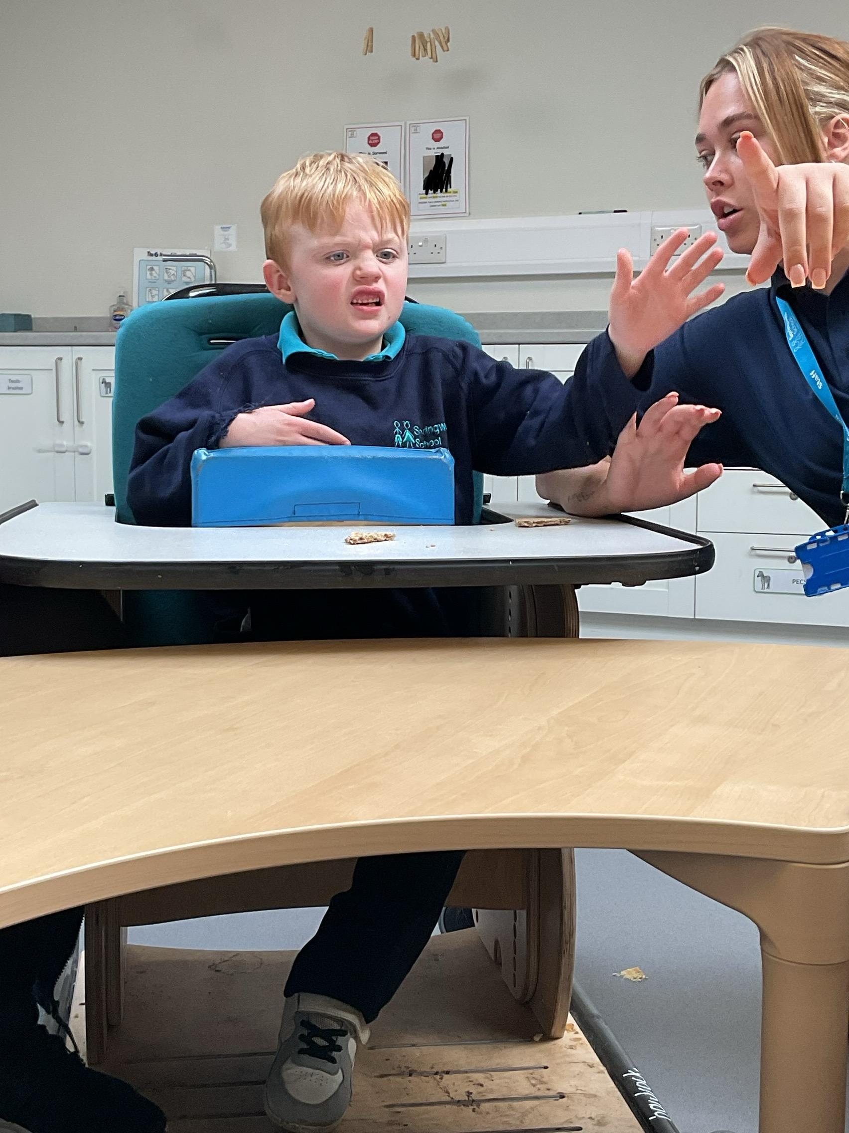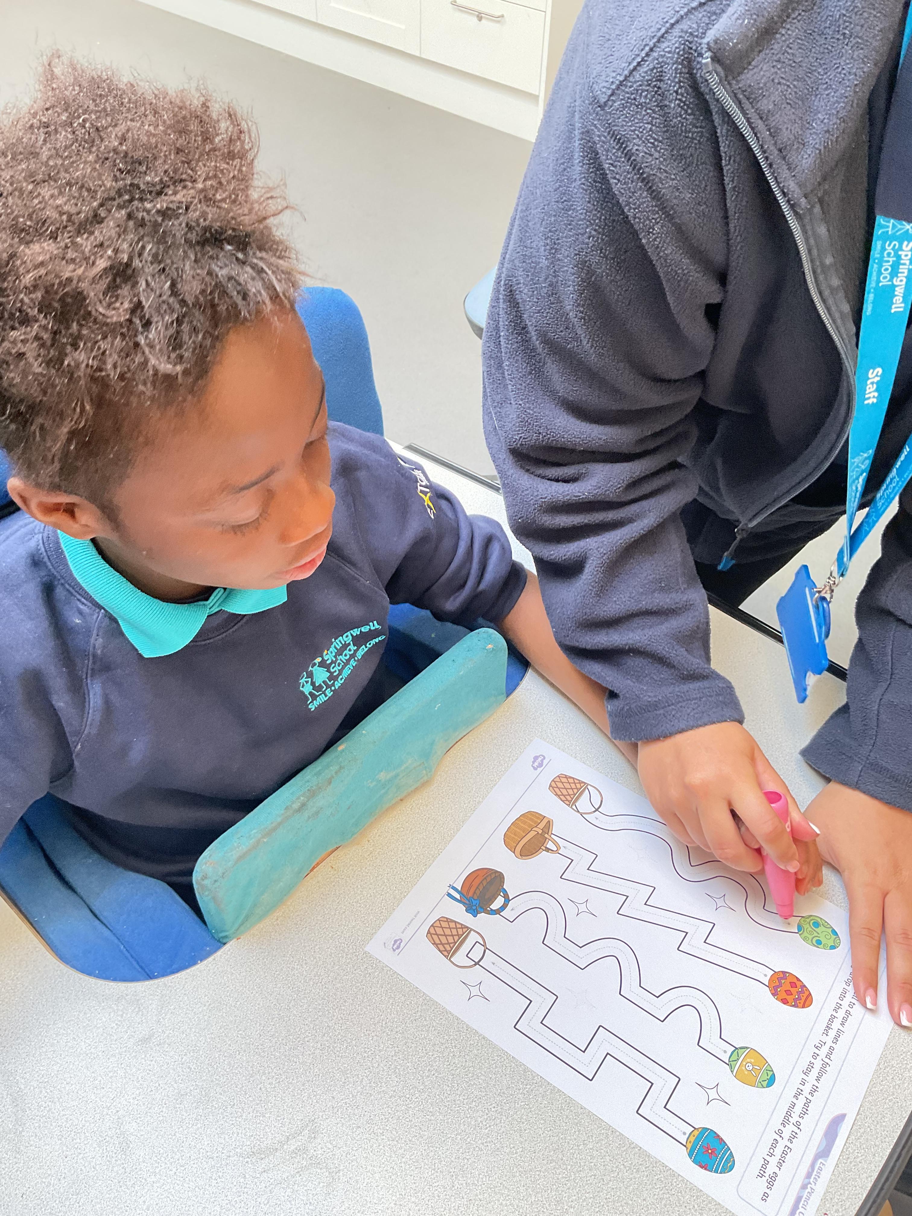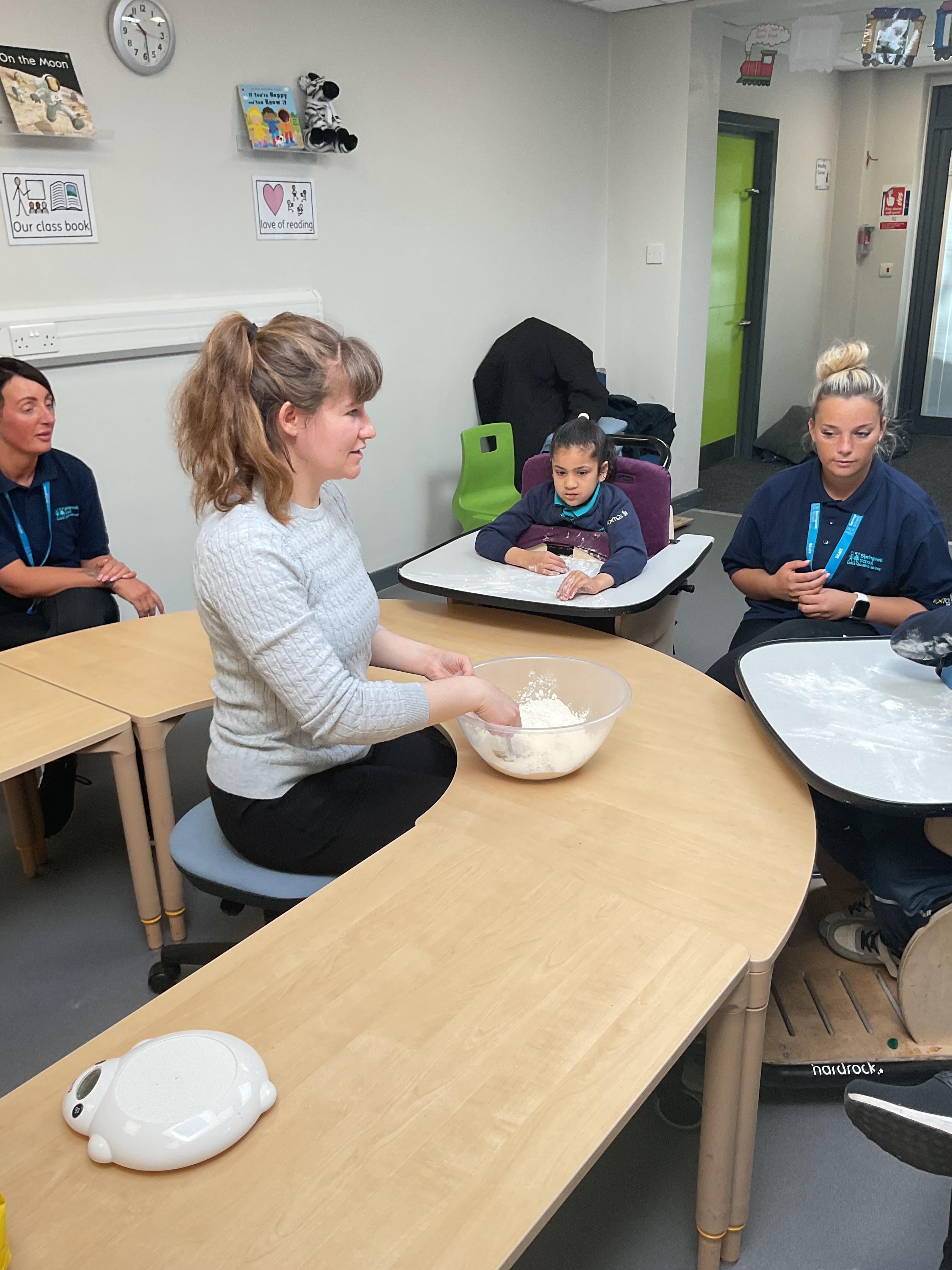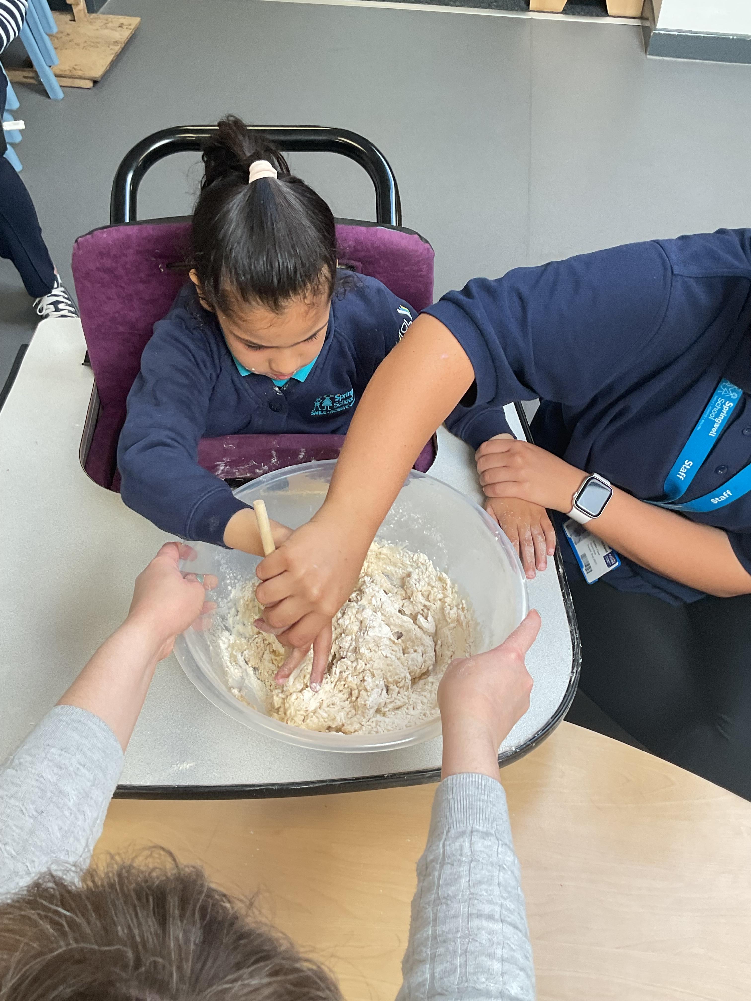 This week zebras focused on their individual communication targets and have been practicing communicating in school with PECs. All zebras have worked so hard communicating at breakfast time, communicating in a range of classroom activities and during physical activities such as rebound therapy. We started the week improving our fine motor skills by carefully tracing over dotted lines with our chosen colour. In dough disco, we practised rolling the dough, splatting the dough and pinching the dough with our fingers. At the end of the week, we got messy in cookery by exploring the flour, splatting the eggs and mark making with the sugar. By mixing the ingredients together we made cakes and then iced them later, these were delicious. Our favourite time of the week was getting all of our energy out on the trampoline. This week our focus was for the children to stay in the centre of the trampoline independently but most of all we had fun!