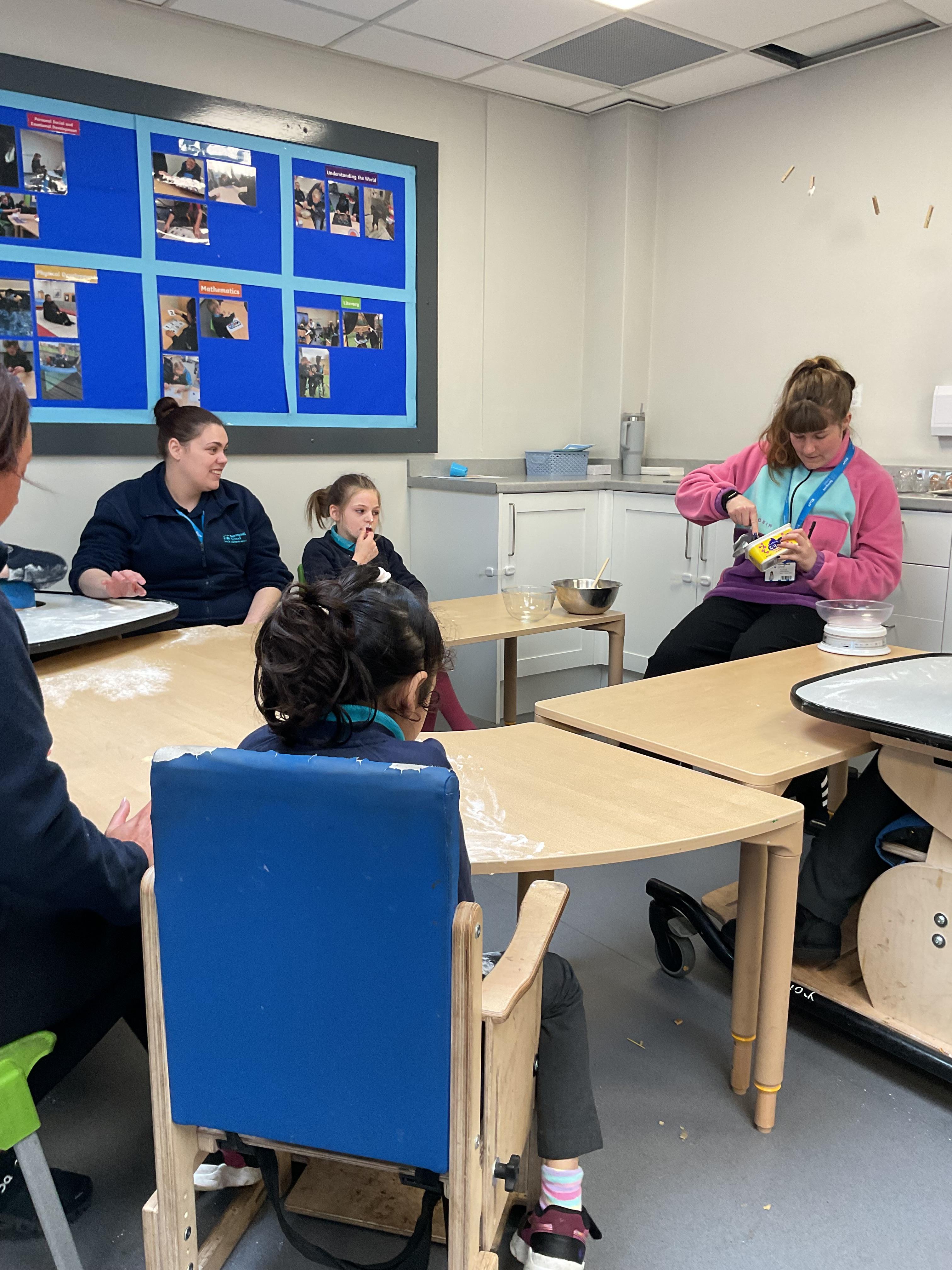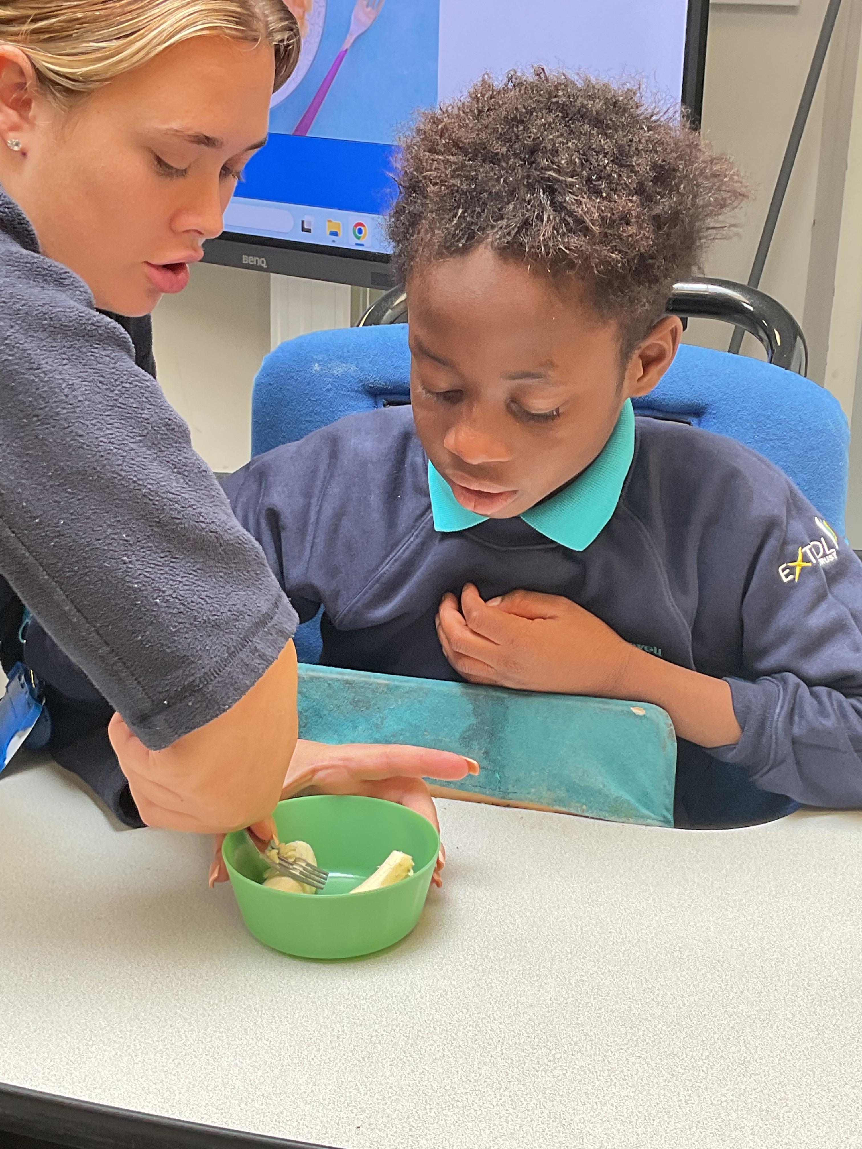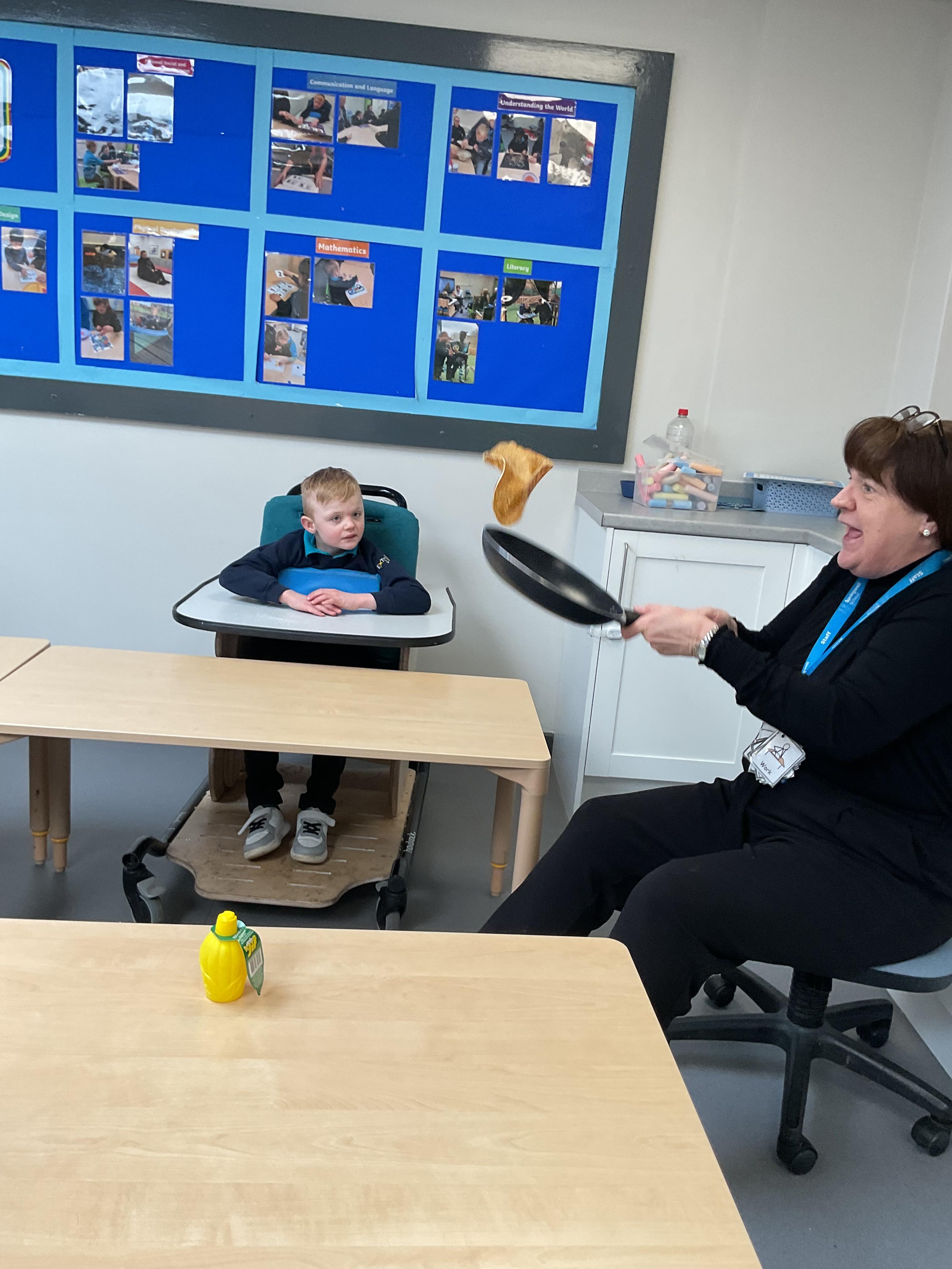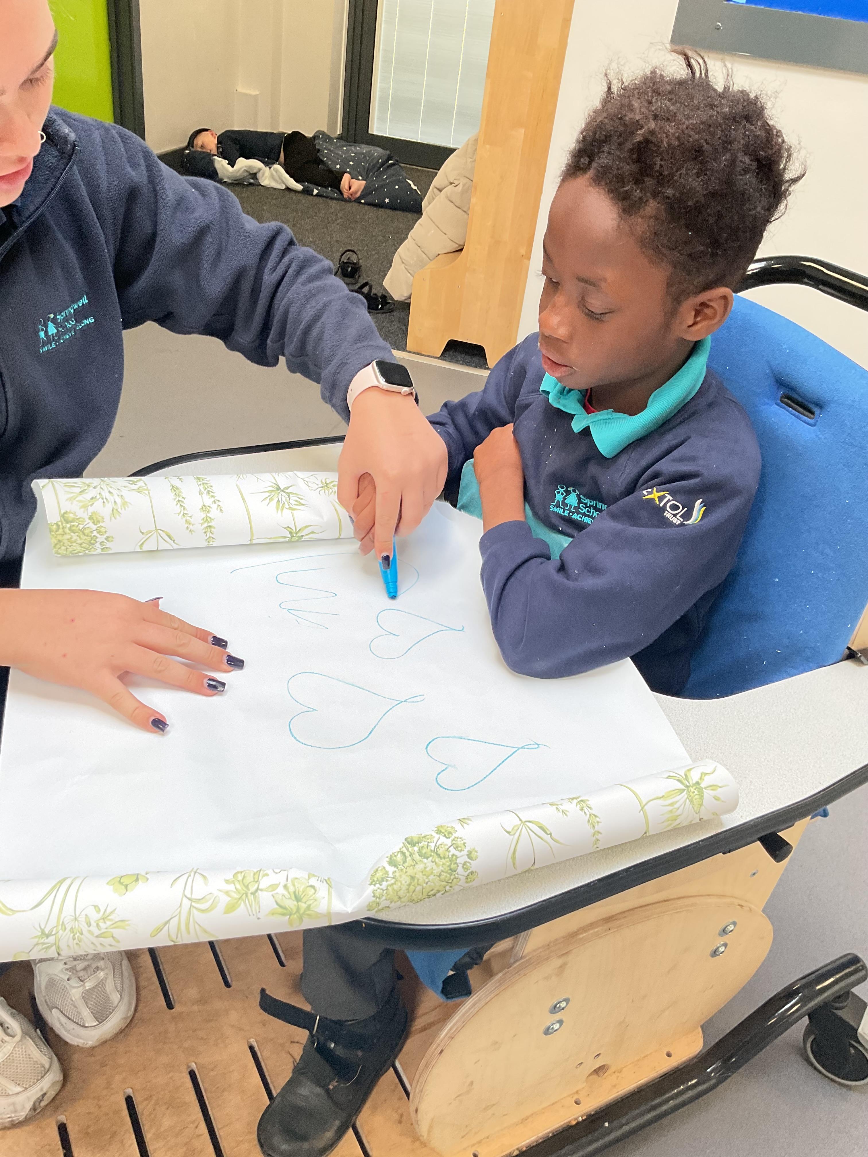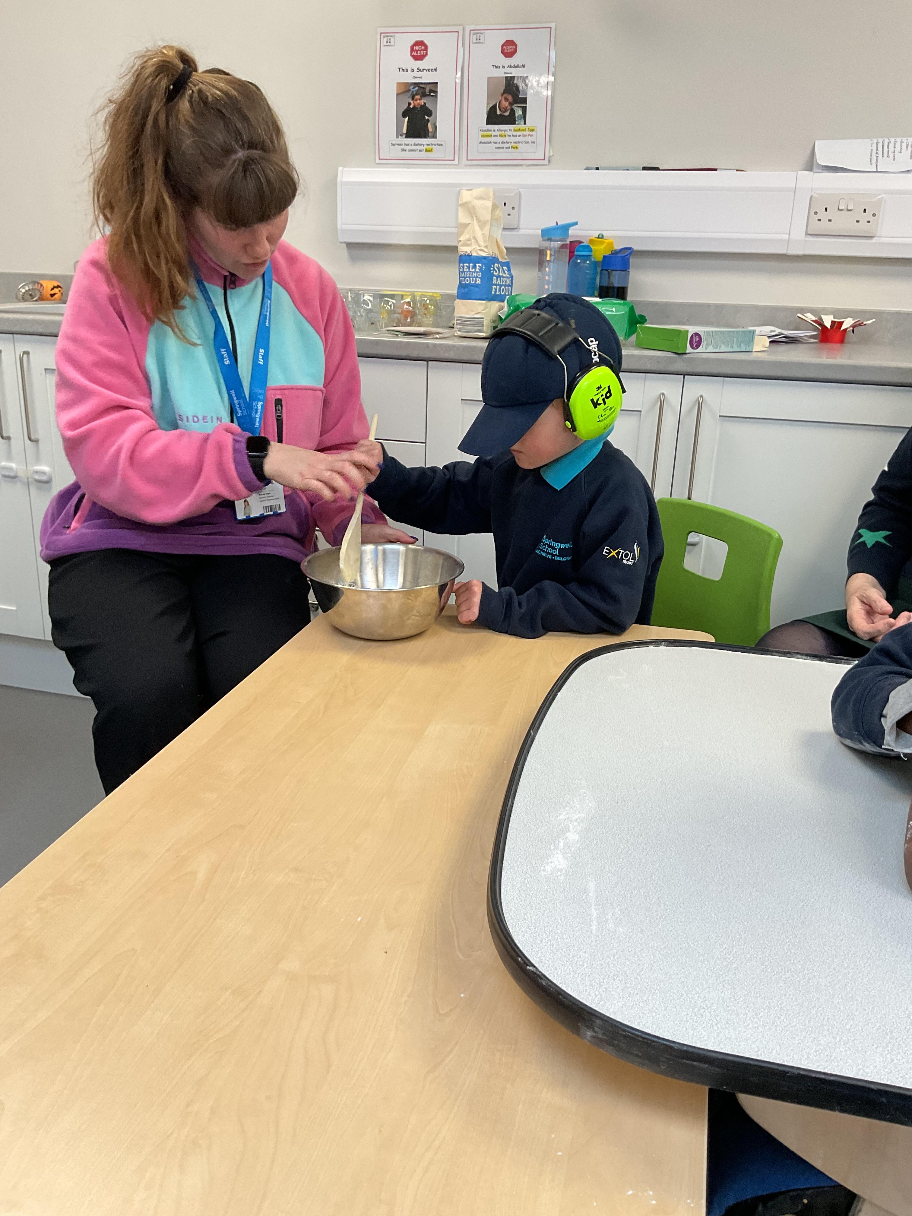 This week zebras focused on their individual communication targets and have been practicing communicating in school with PECs. All zebras have worked so hard communicating at breakfast time, communicating in a range of classroom activities and during physical activities such as rebound therapy. We started the week improving our fine motor skills by carefully tracing over dotted lines with our chosen colour. In dough disco, we practised rolling the dough, splatting the dough and pinching the dough with our fingers. At the end of the week, we got messy in cookery by exploring the flour, splatting the eggs and mark making with the sugar. By mixing the ingredients together we made cakes and then iced them later, these were delicious. Our favourite time of the week was getting all of our energy out on the trampoline. This week our focus was for the children to stay in the centre of the trampoline independently but most of all we had fun!