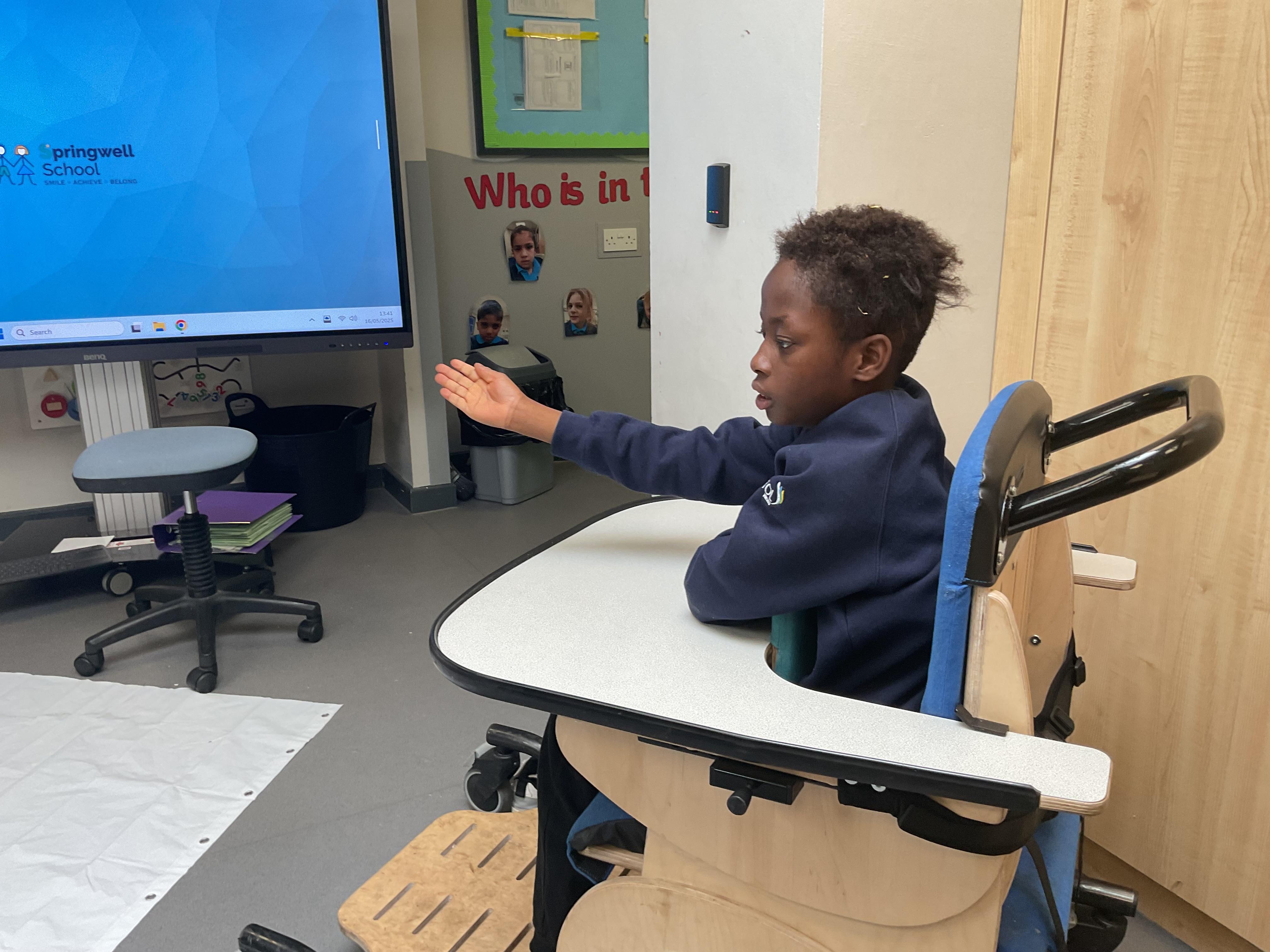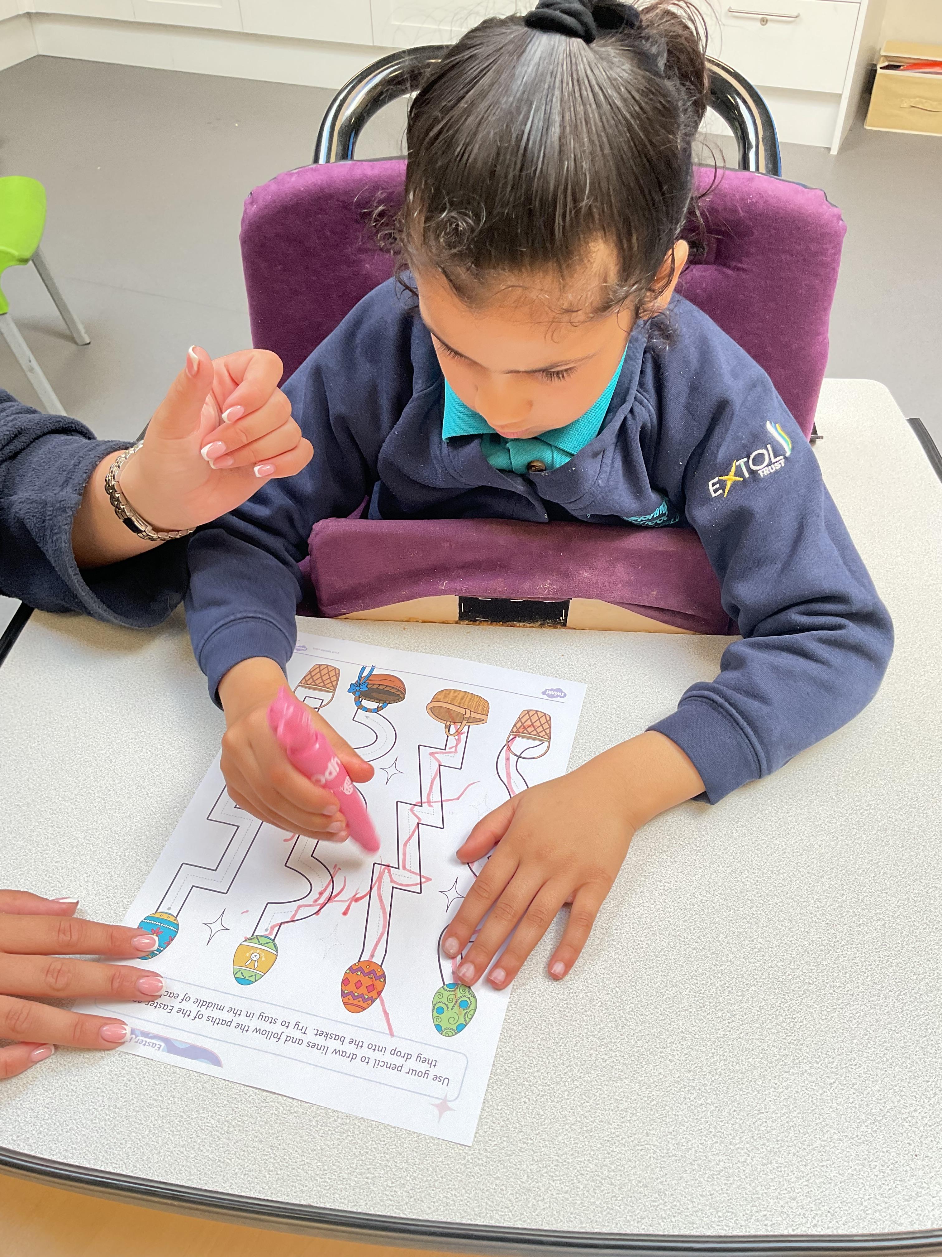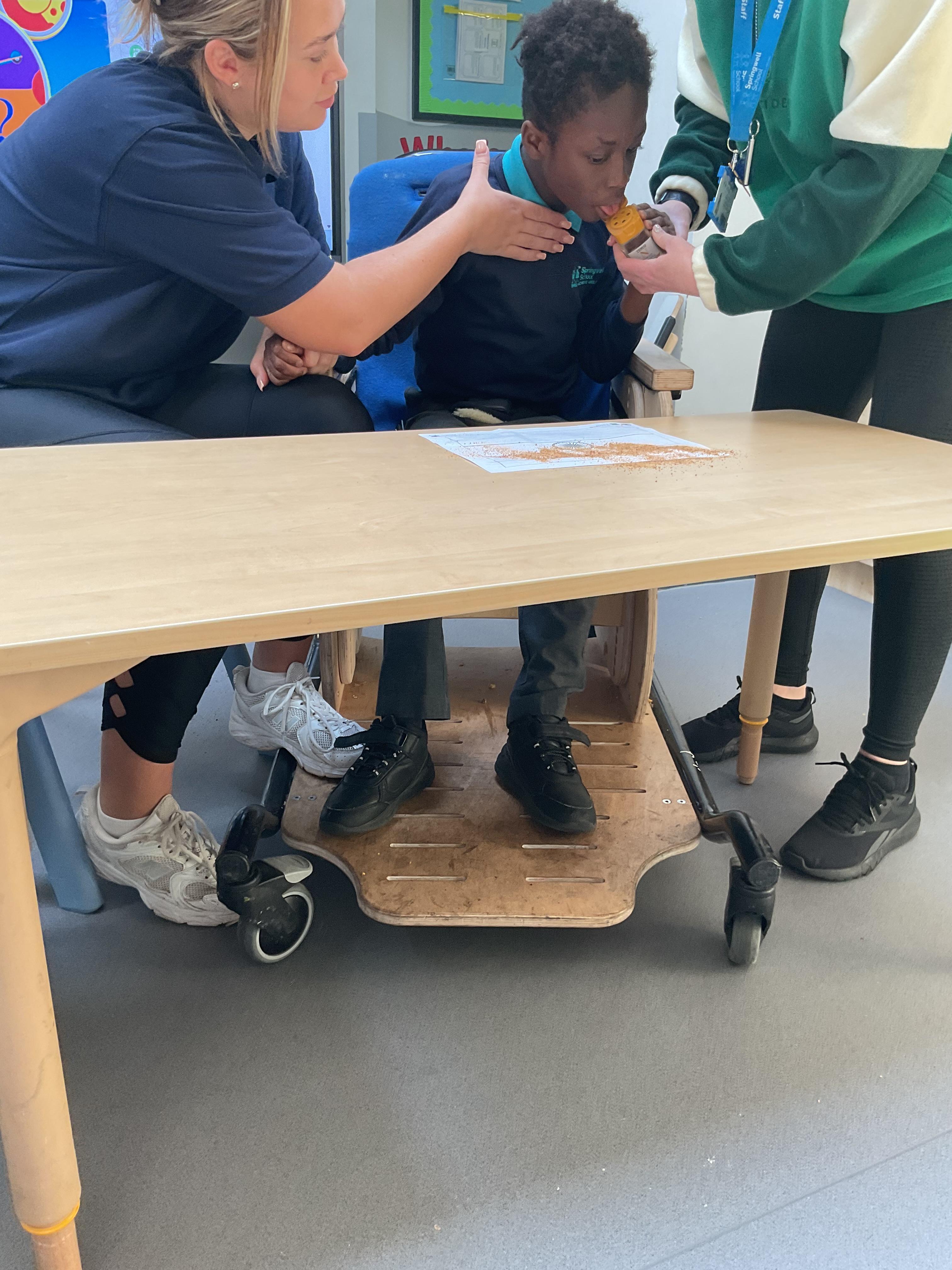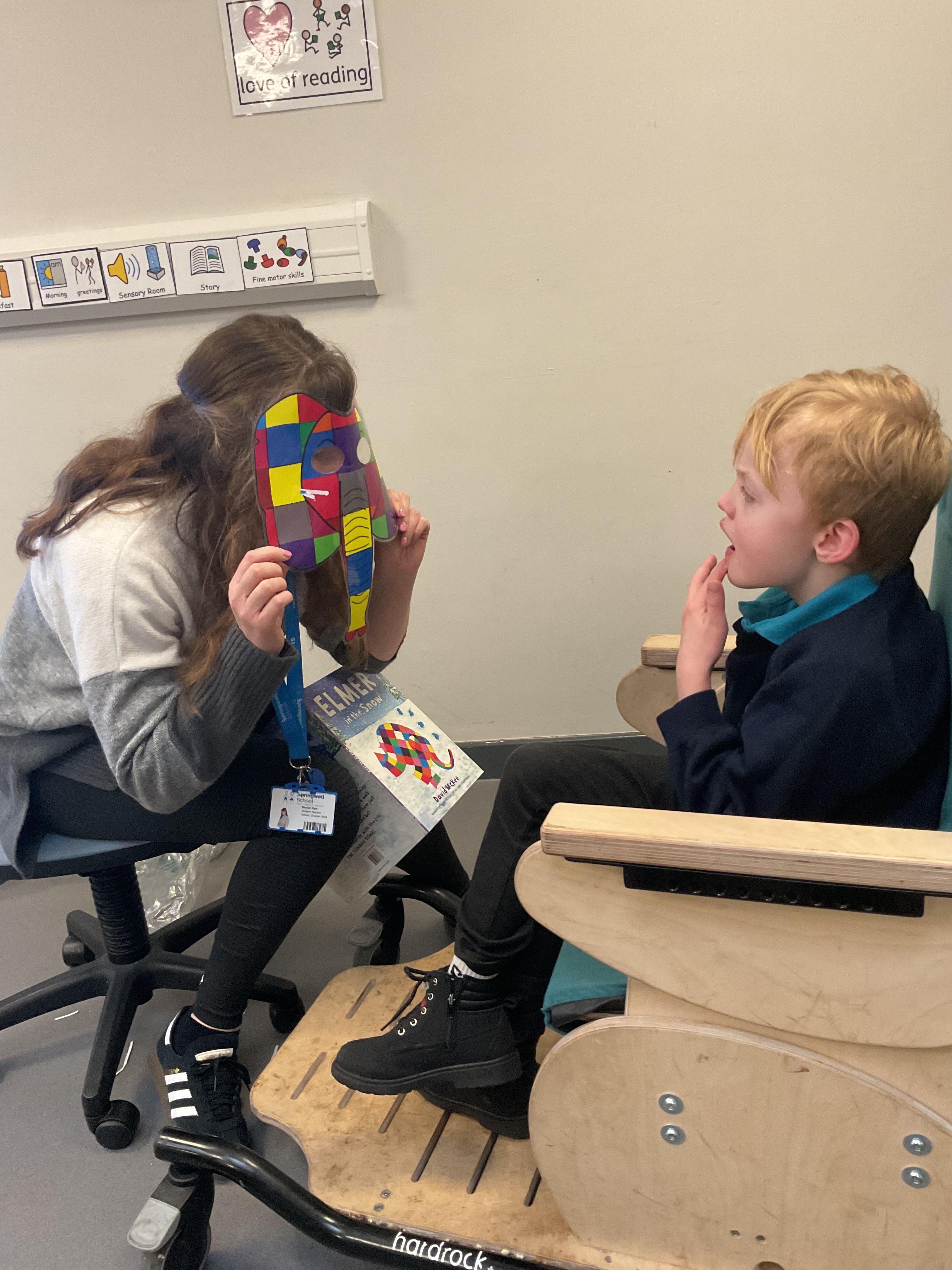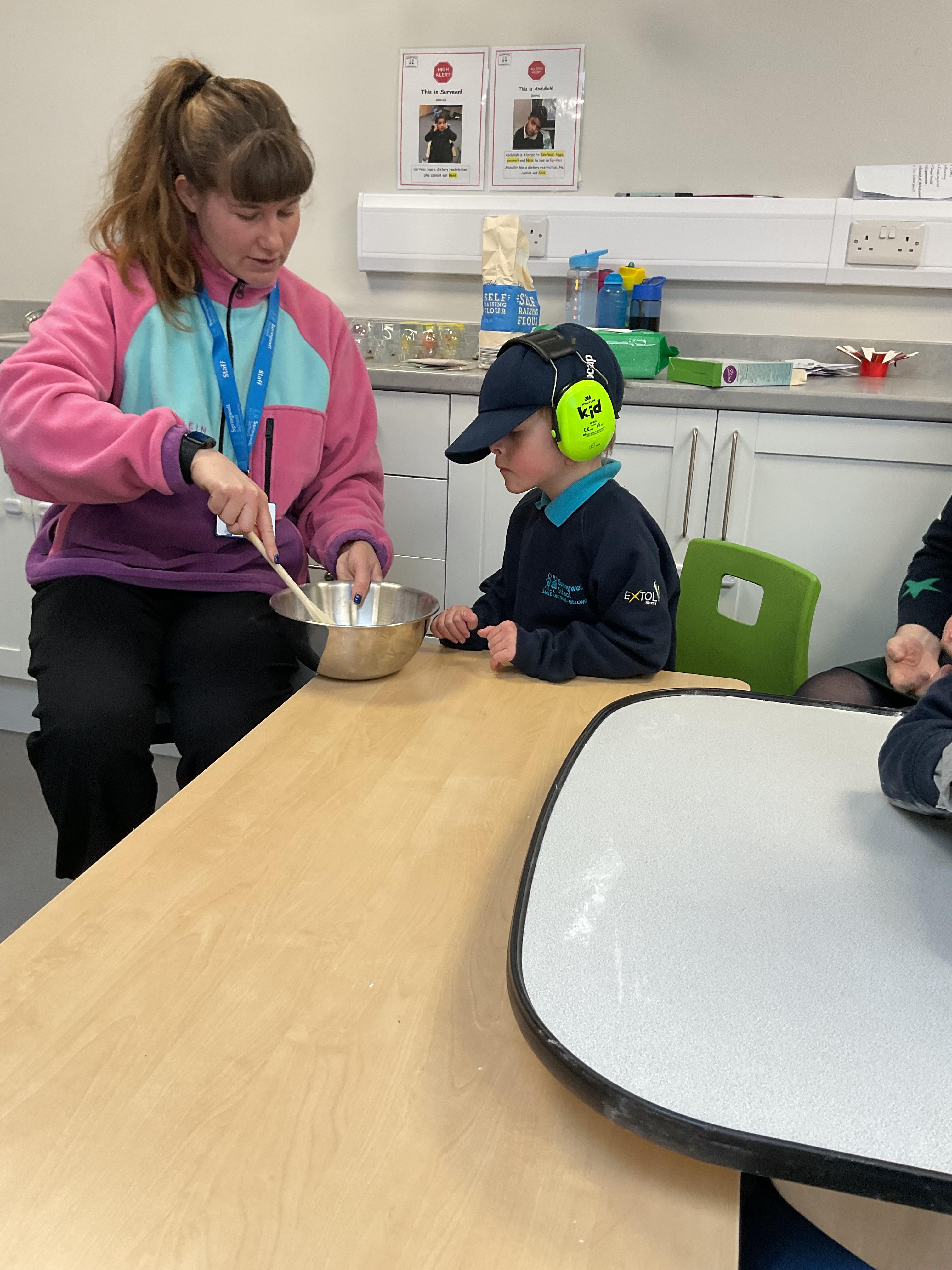 This week zebras focused on their individual communication targets and have been practicing communicating in school with PECs. All zebras have worked so hard communicating at breakfast time, communicating in a range of classroom activities and during physical activities such as rebound therapy. We started the week improving our fine motor skills by carefully tracing over dotted lines with our chosen colour. In dough disco, we practised rolling the dough, splatting the dough and pinching the dough with our fingers. At the end of the week, we got messy in cookery by exploring the flour, splatting the eggs and mark making with the sugar. By mixing the ingredients together we made cakes and then iced them later, these were delicious. Our favourite time of the week was getting all of our energy out on the trampoline. This week our focus was for the children to stay in the centre of the trampoline independently but most of all we had fun!
