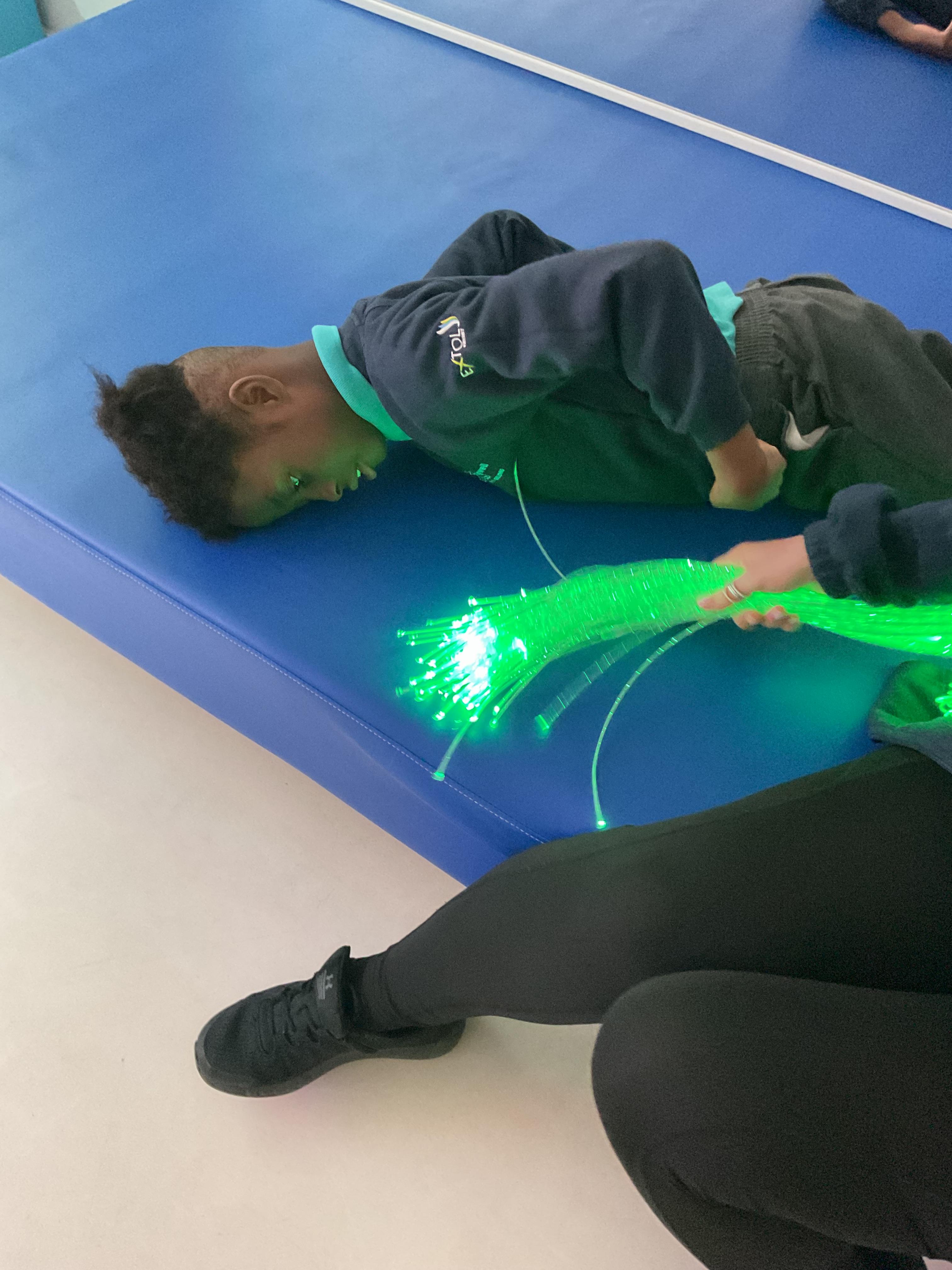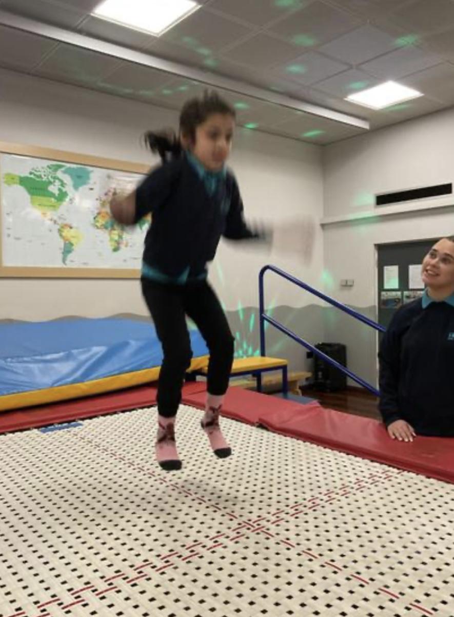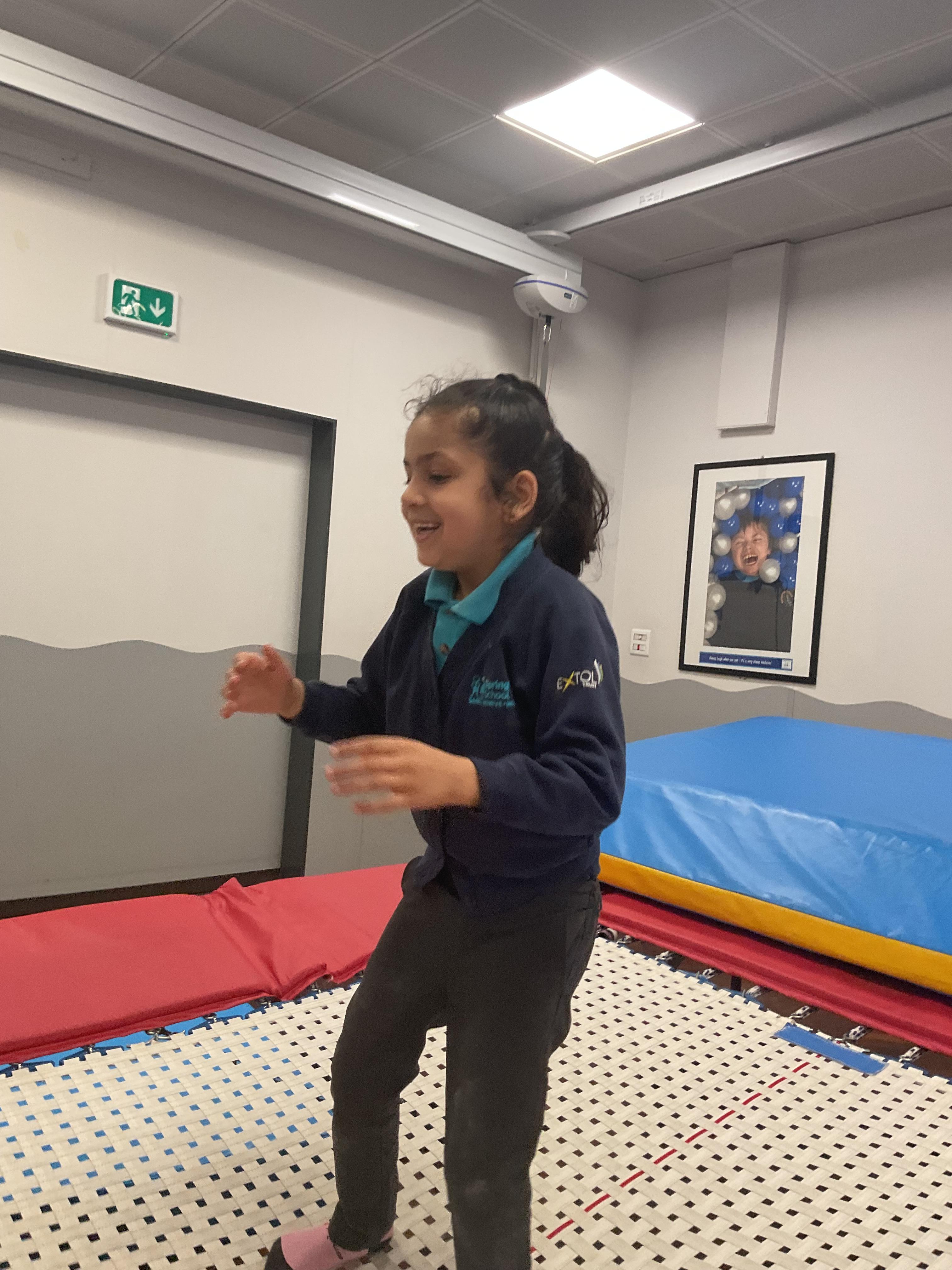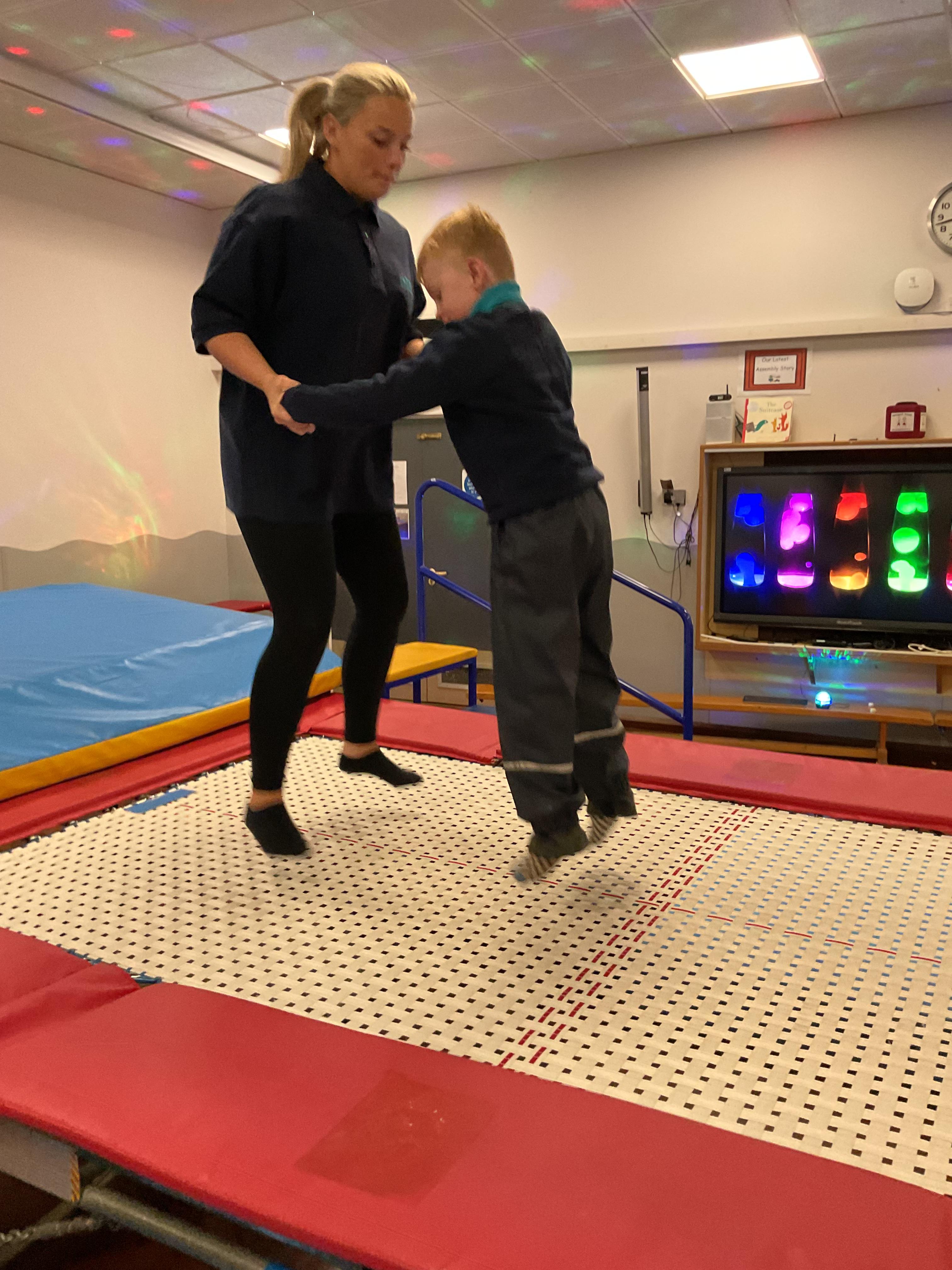 Zebras have really enjoyed our rebound session today. This helps us to develop balance and the coordination of our motor skills. It also helps us to develop  our proprioception, knowing where our body is and how it needs to be positioned to be able to jump, be in the air and land back on the trampoline. We also really like putting the sensory lights on and listening to some music, helping us to unwind and relax after a busy day at school!