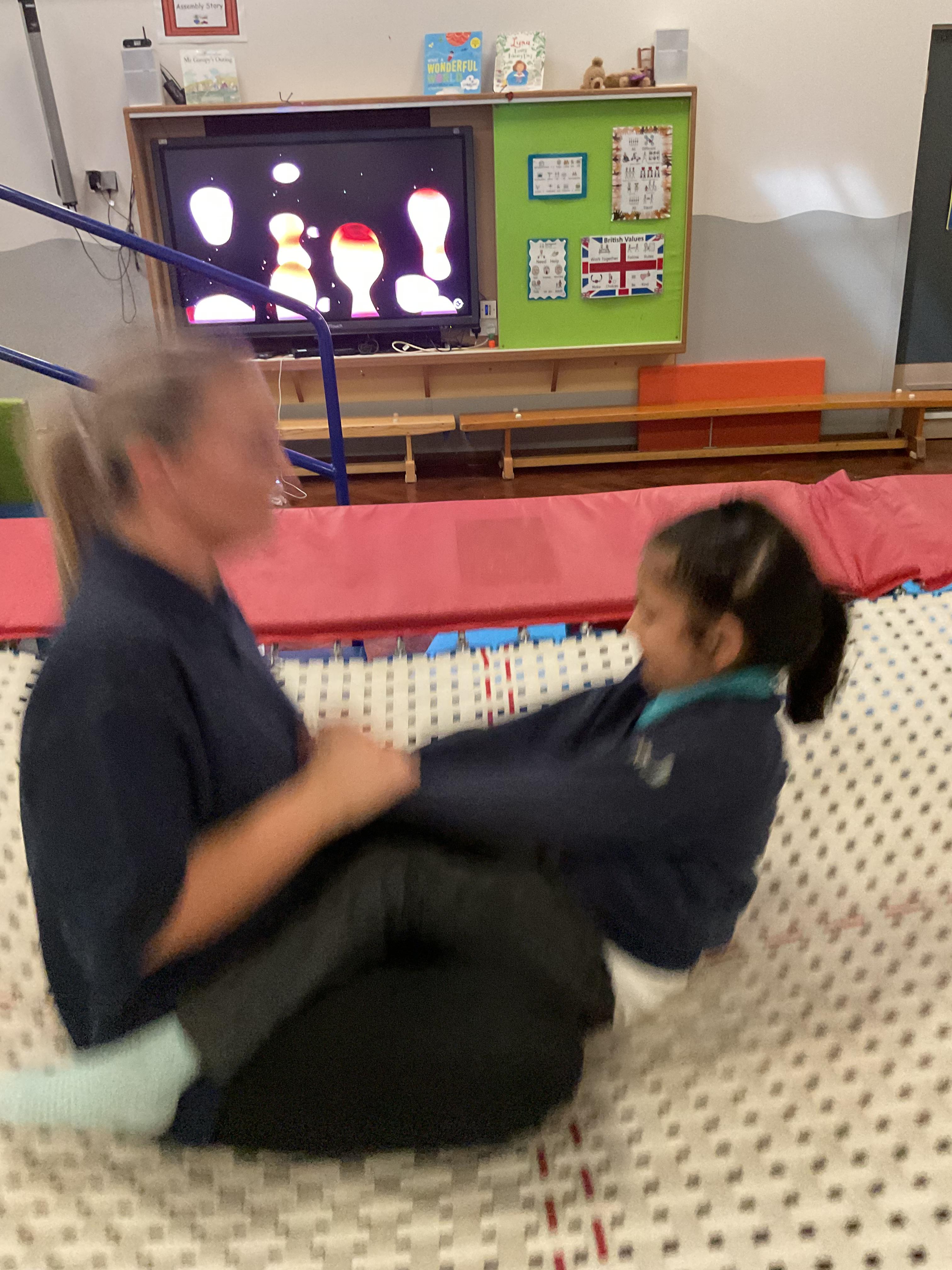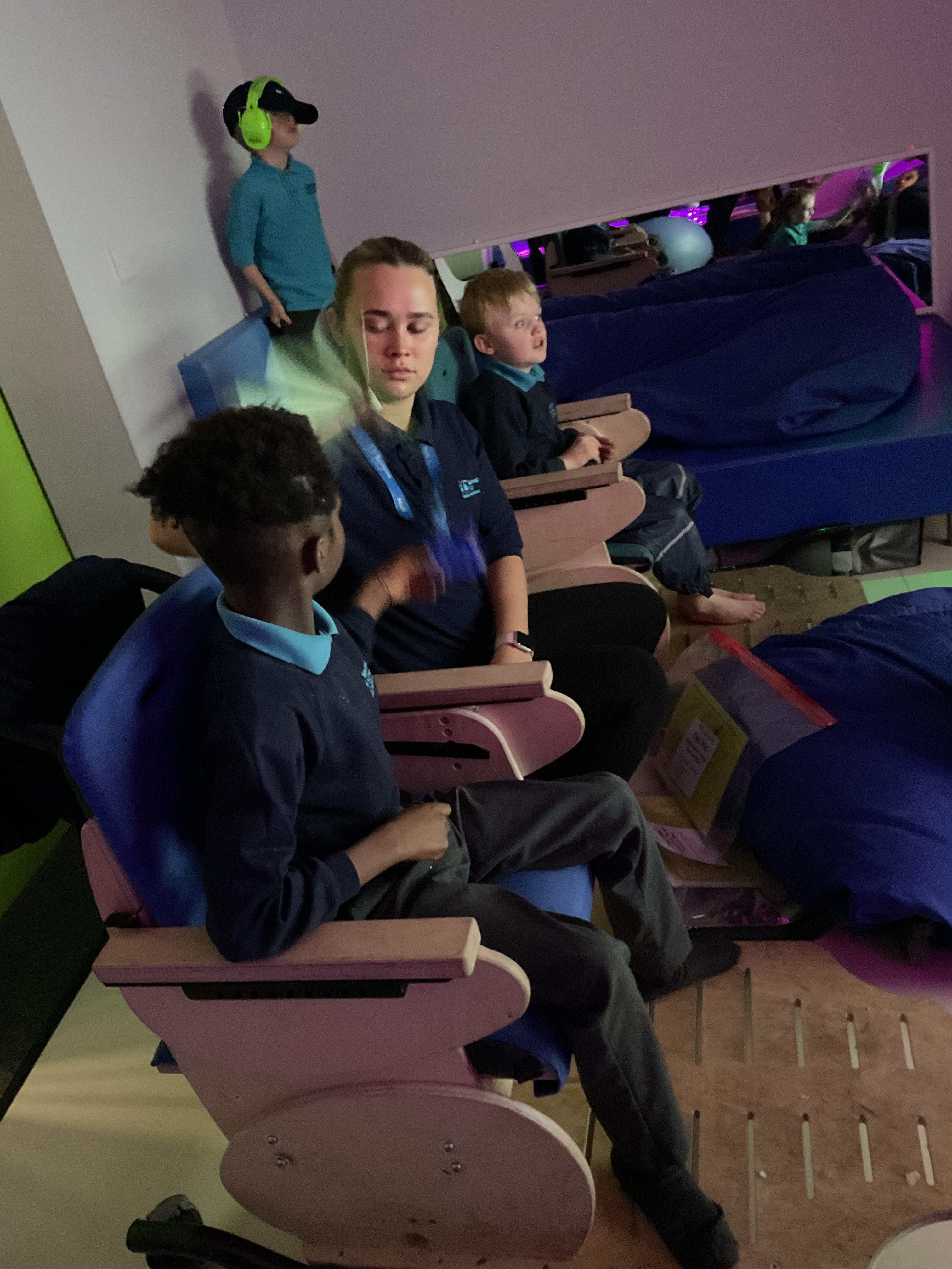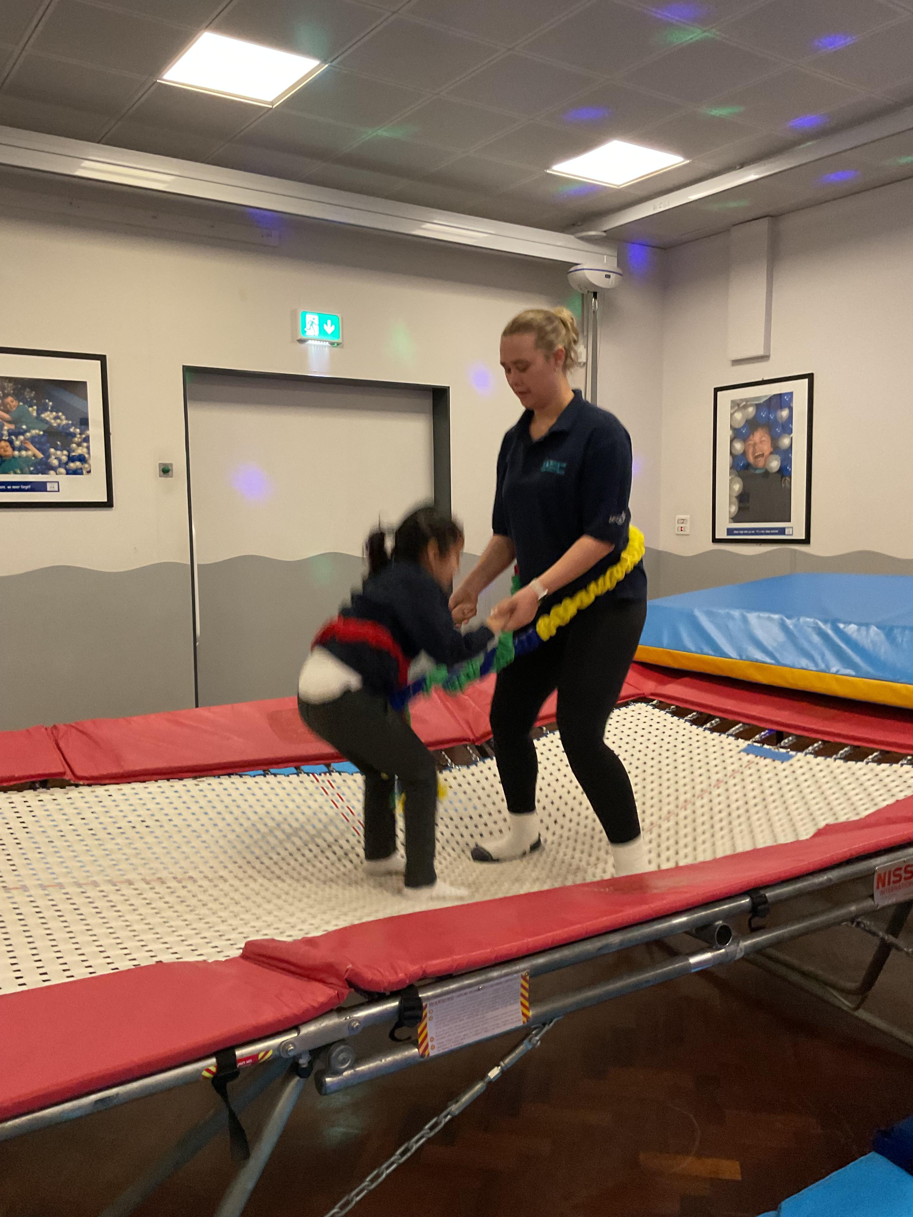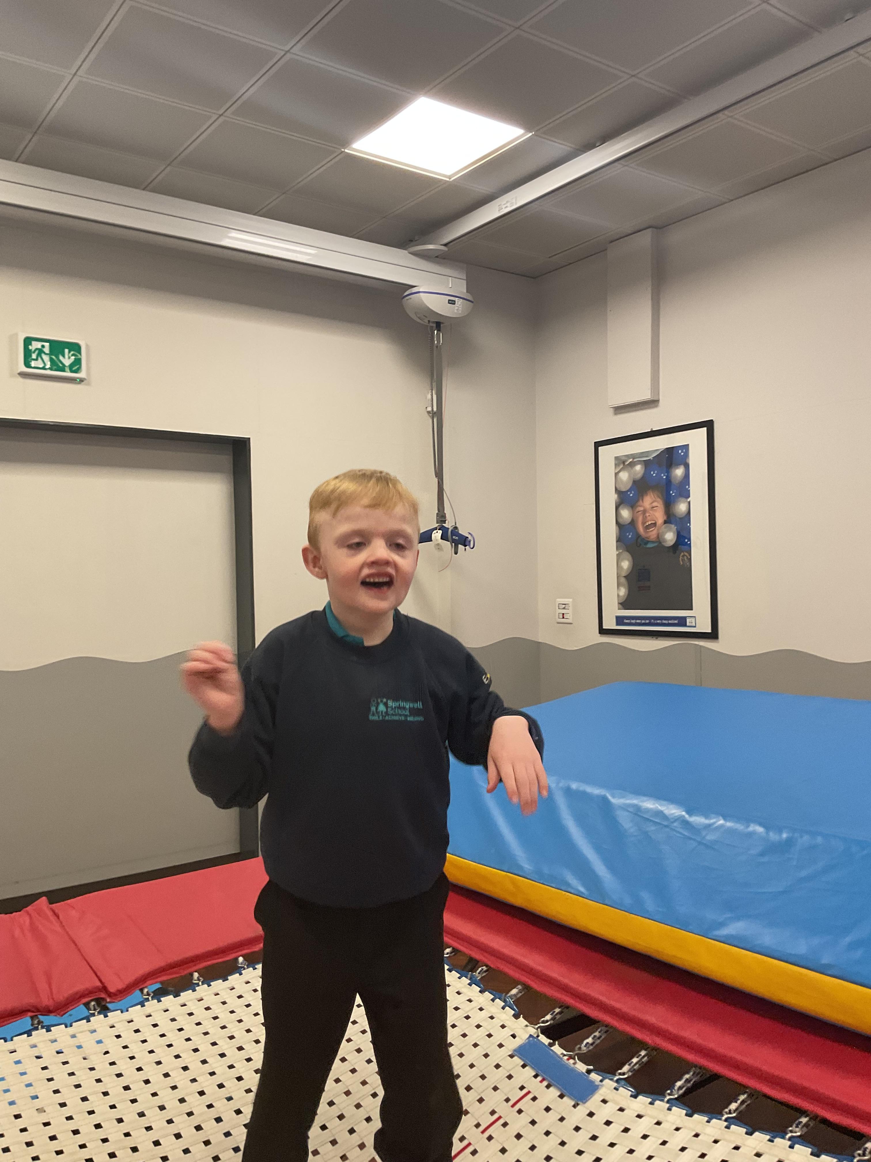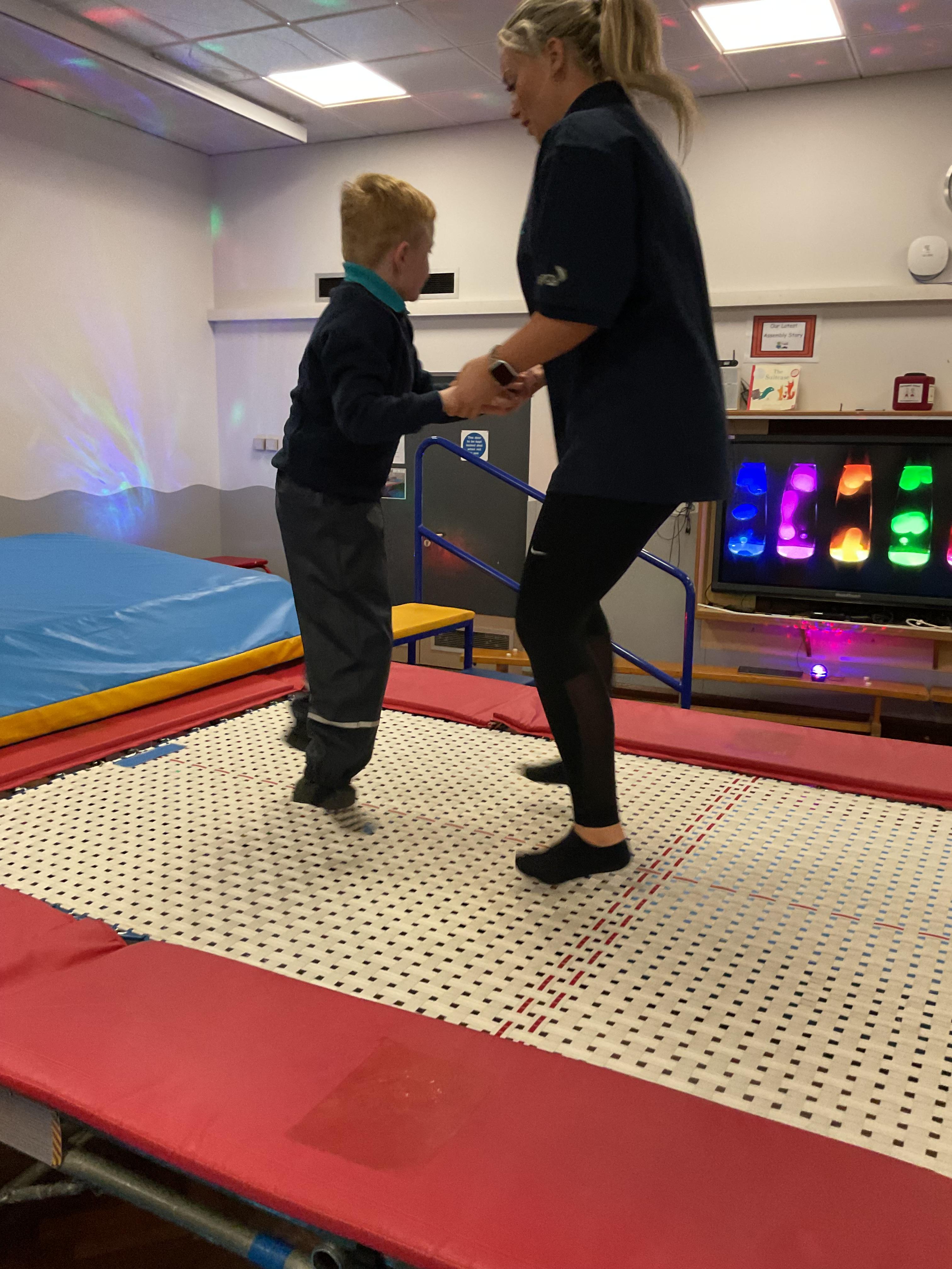 Zebras have really enjoyed our rebound session today. This helps us to develop balance and the coordination of our motor skills. It also helps us to develop  our proprioception, knowing where our body is and how it needs to be positioned to be able to jump, be in the air and land back on the trampoline. We also really like putting the sensory lights on and listening to some music, helping us to unwind and relax after a busy day at school!