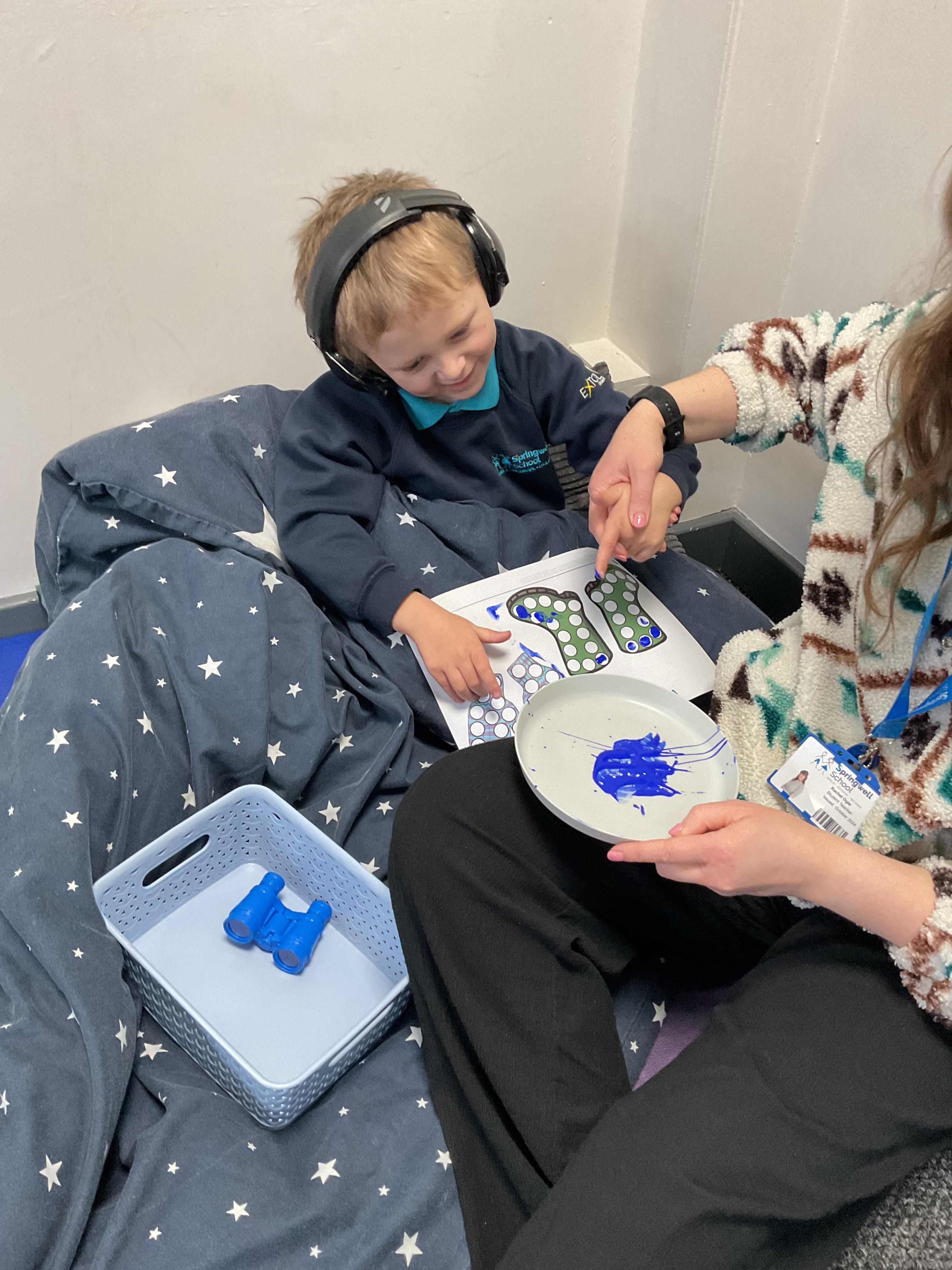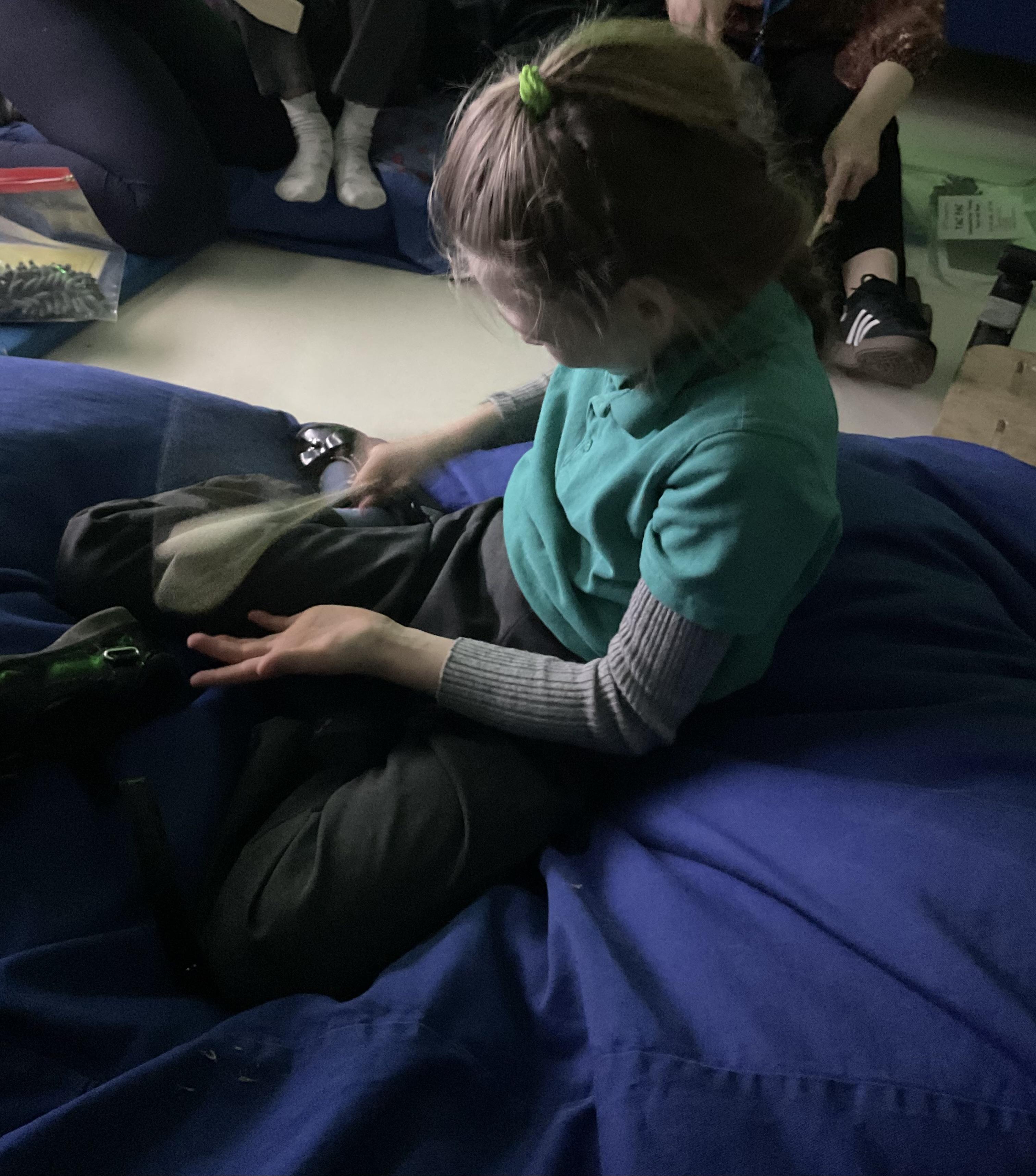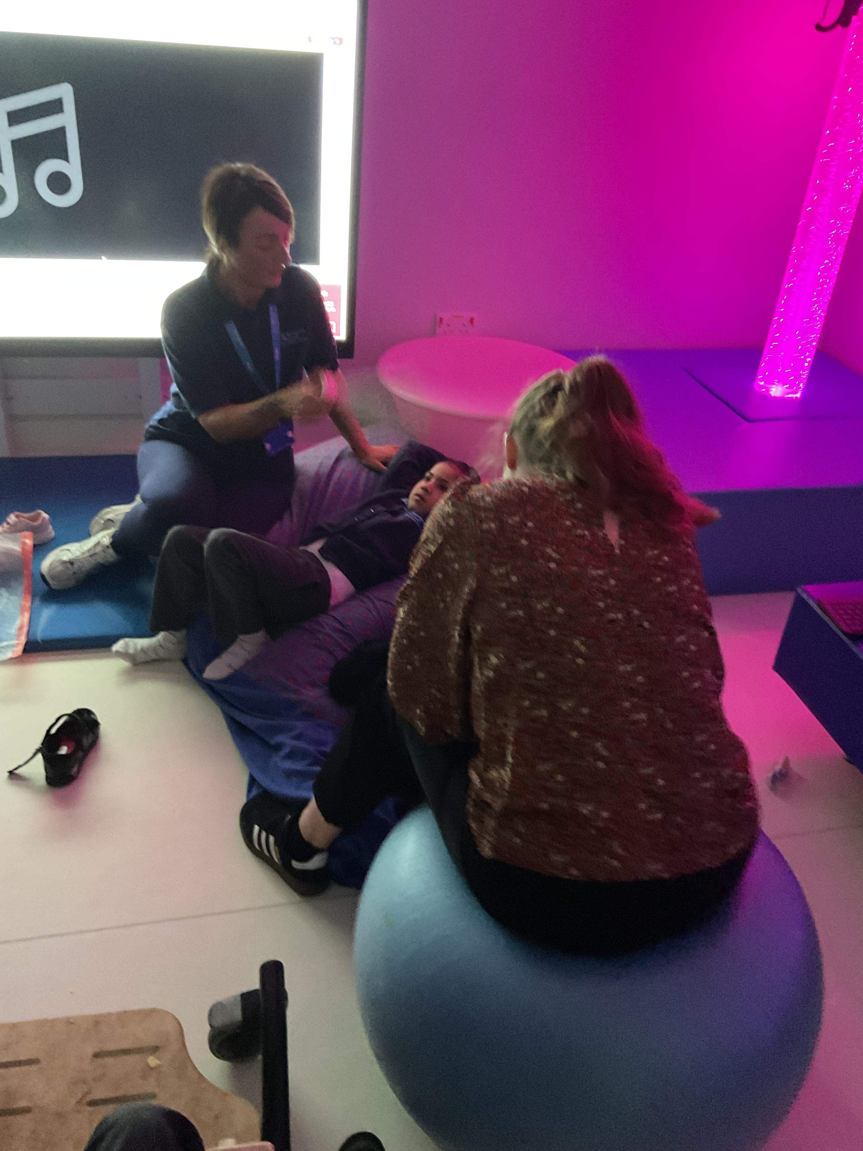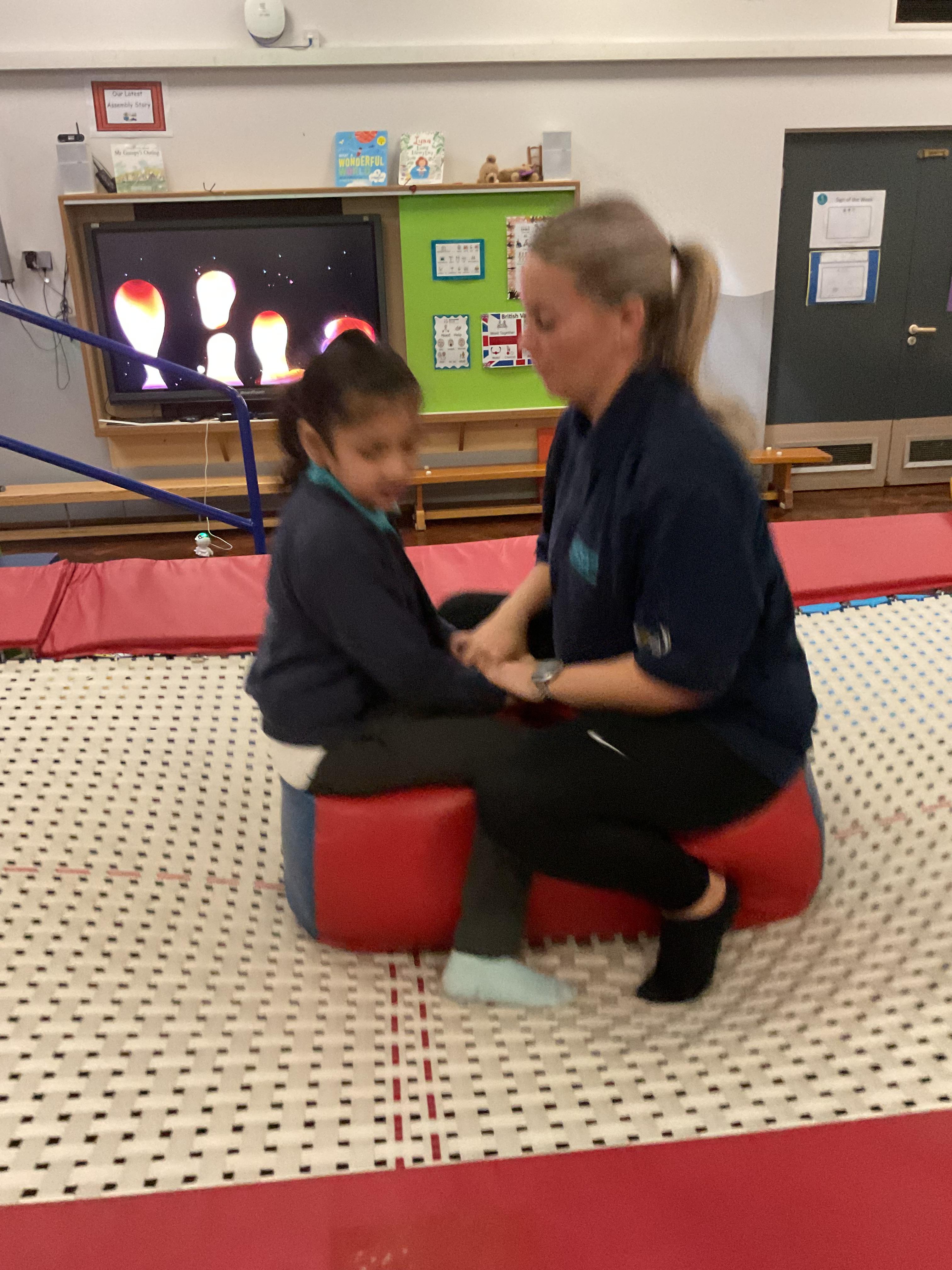 Zebras have really enjoyed our rebound session today. This helps us to develop balance and the coordination of our motor skills. It also helps us to develop  our proprioception, knowing where our body is and how it needs to be positioned to be able to jump, be in the air and land back on the trampoline. We also really like putting the sensory lights on and listening to some music, helping us to unwind and relax after a busy day at school!