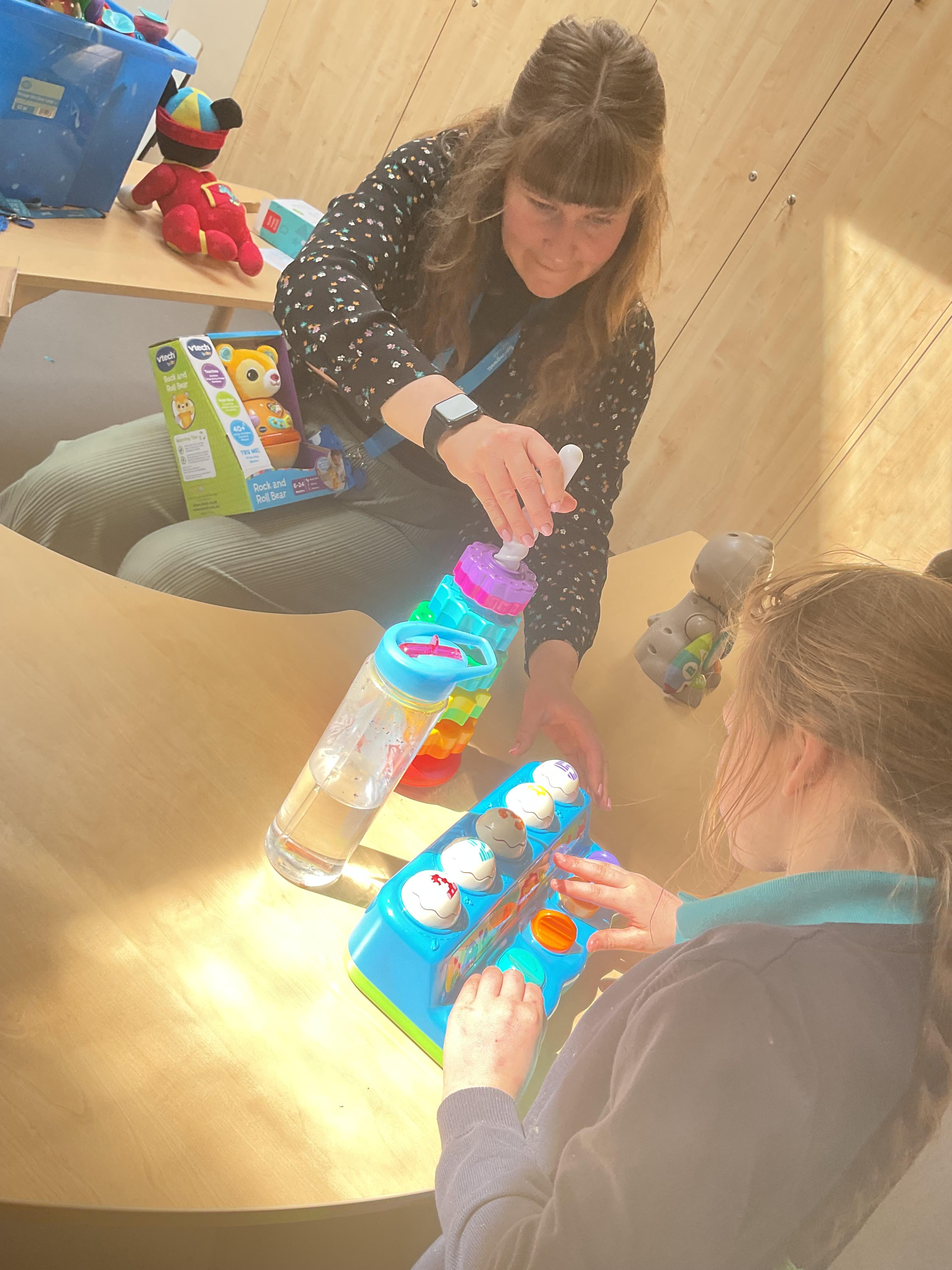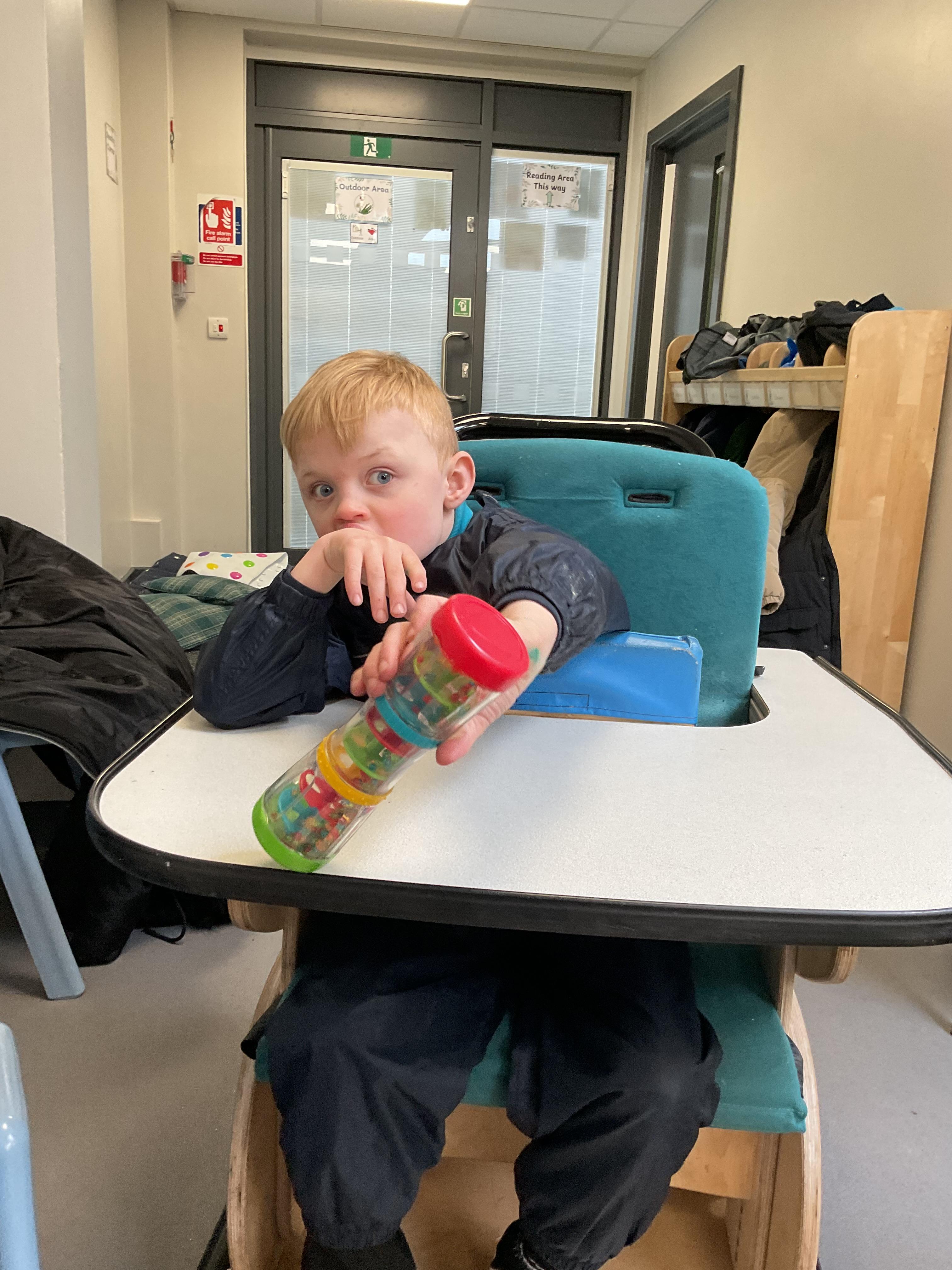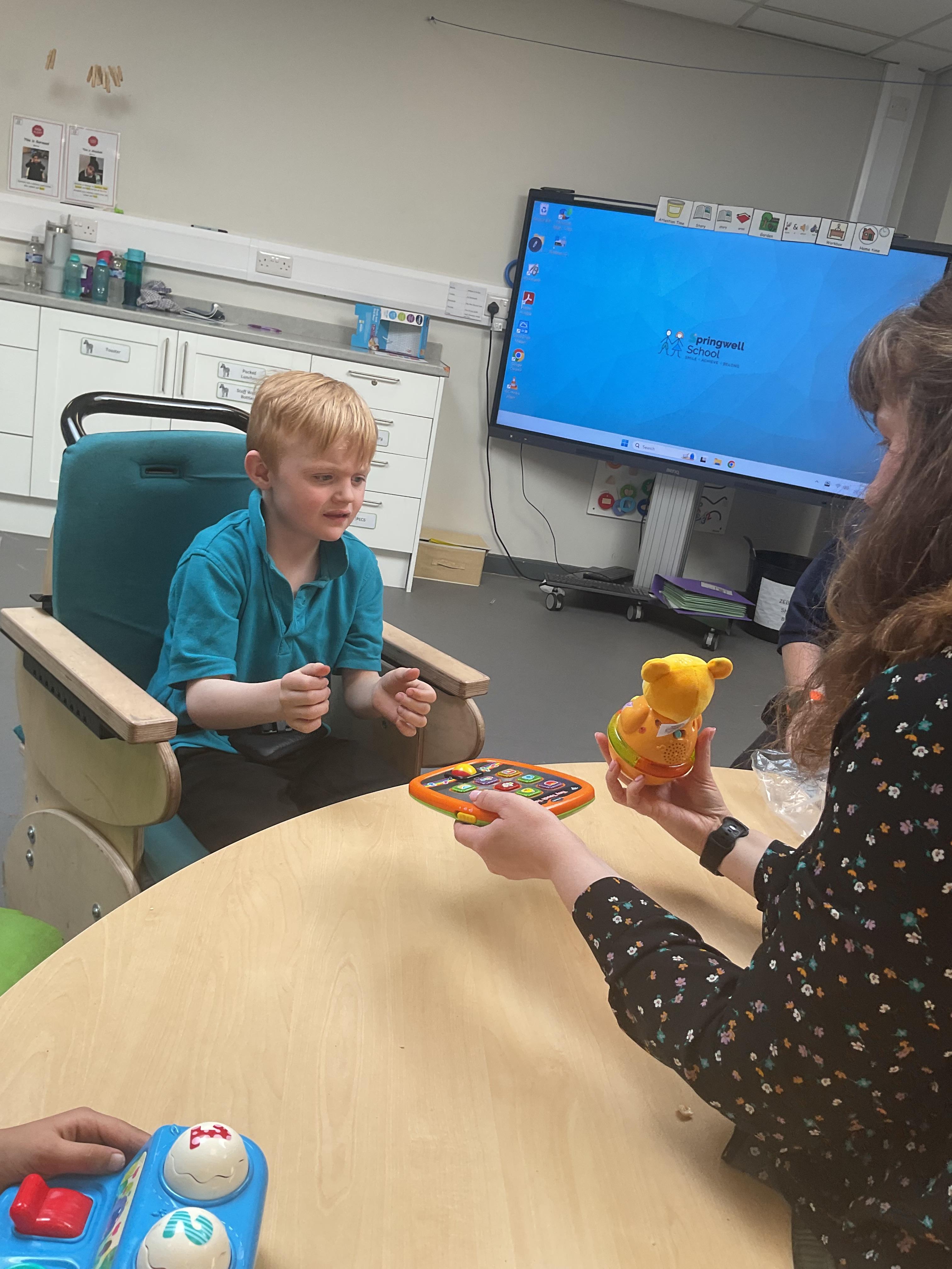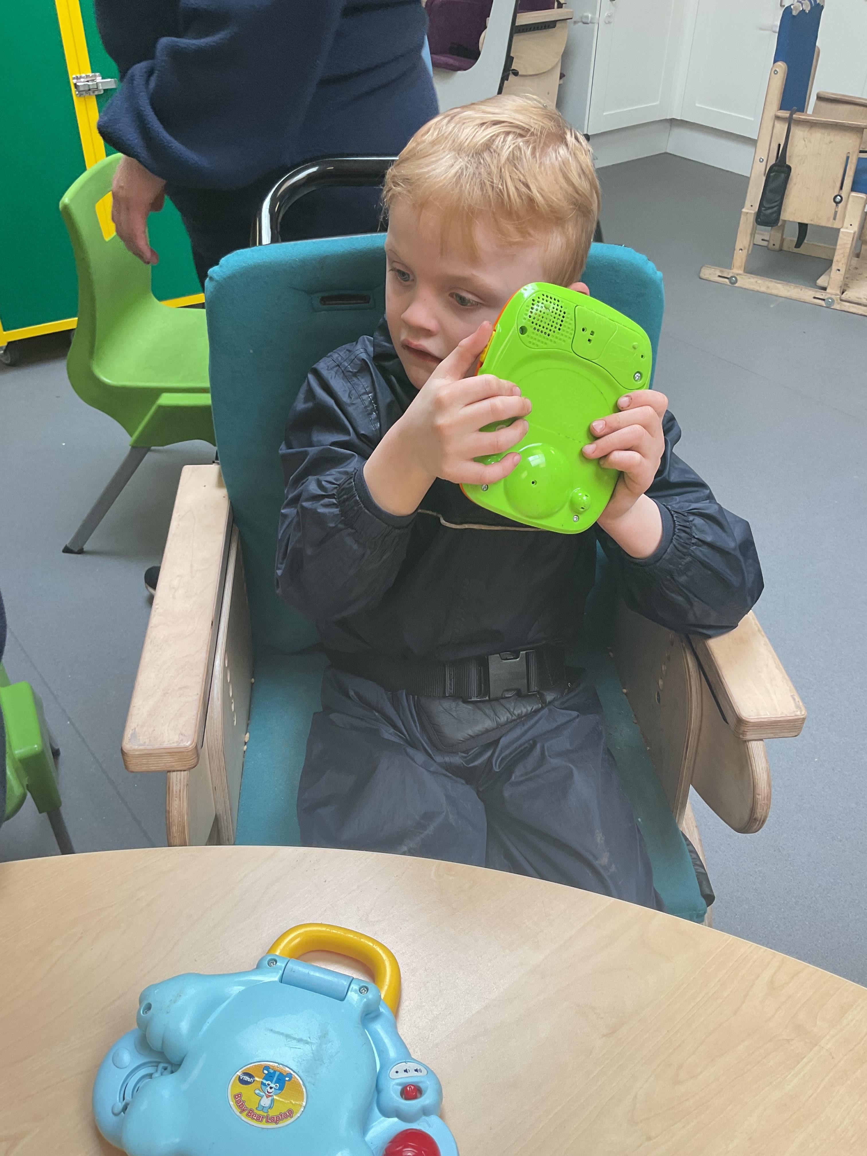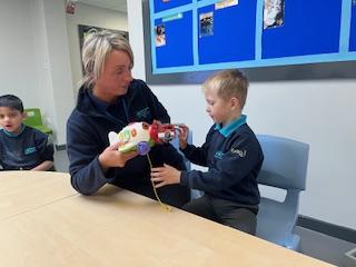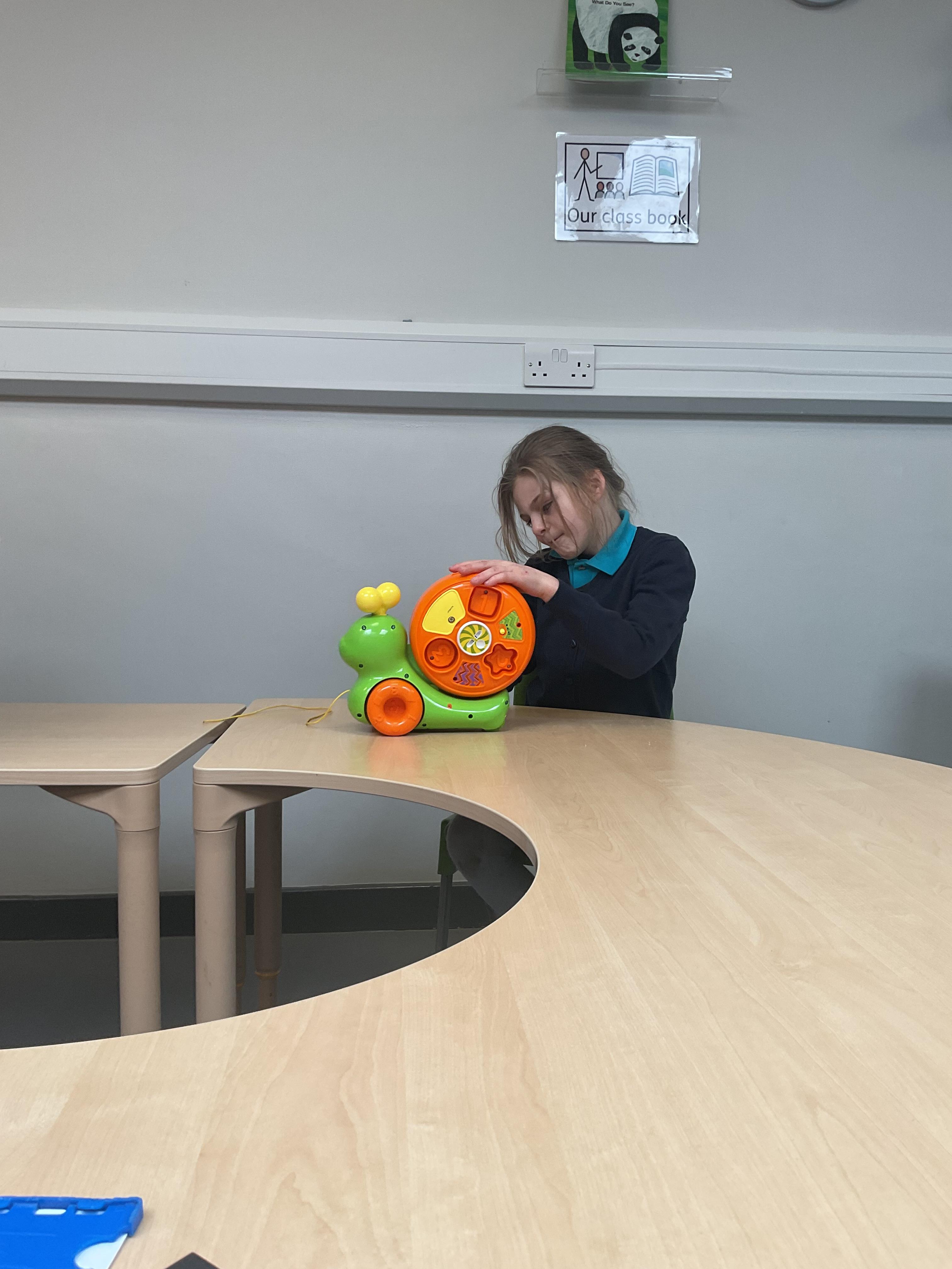 Today, we practised our turn-taking and communication skills by sharing some cause and effect toys. We all had a great time and we each got to choose our favourite toy. We enjoyed the noises and the lights and we practised choosing the toy we wanted.