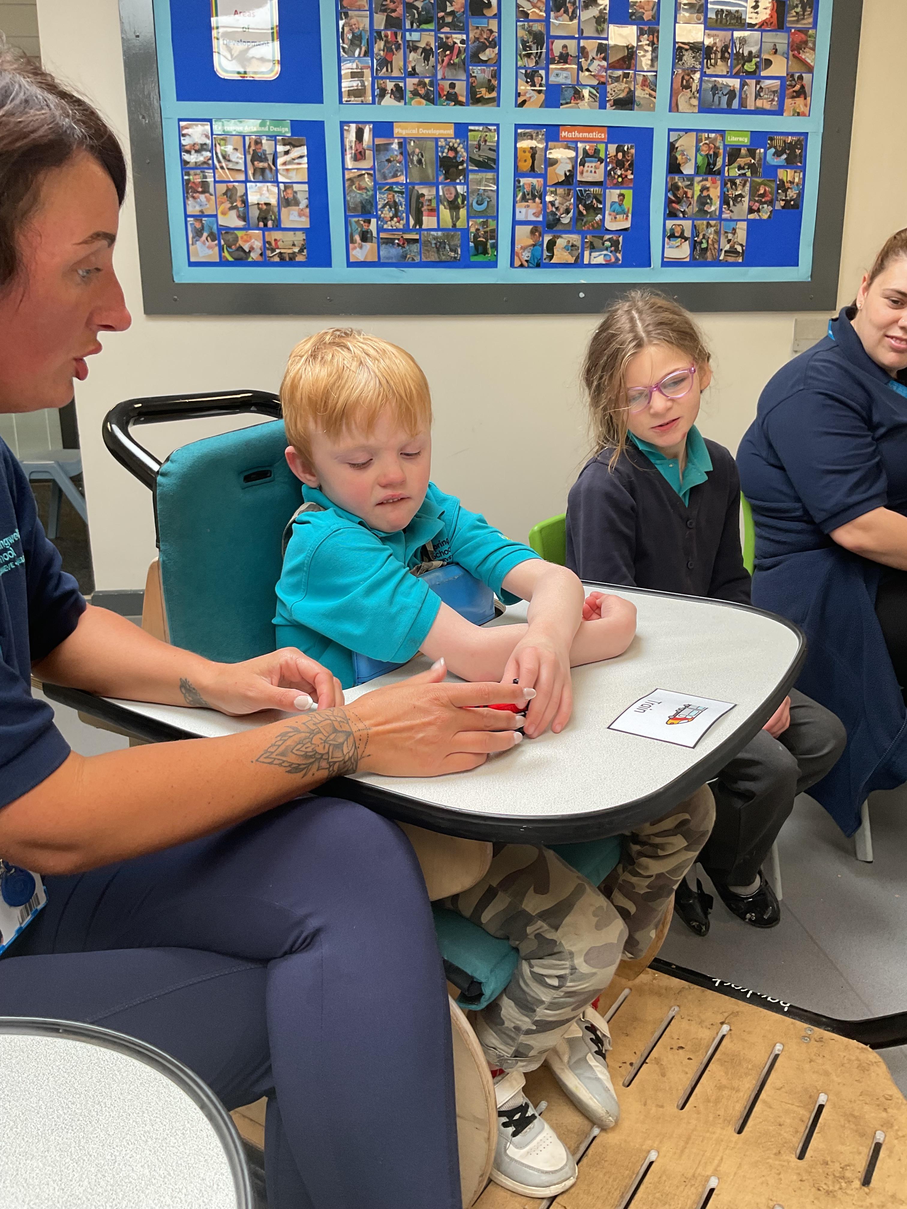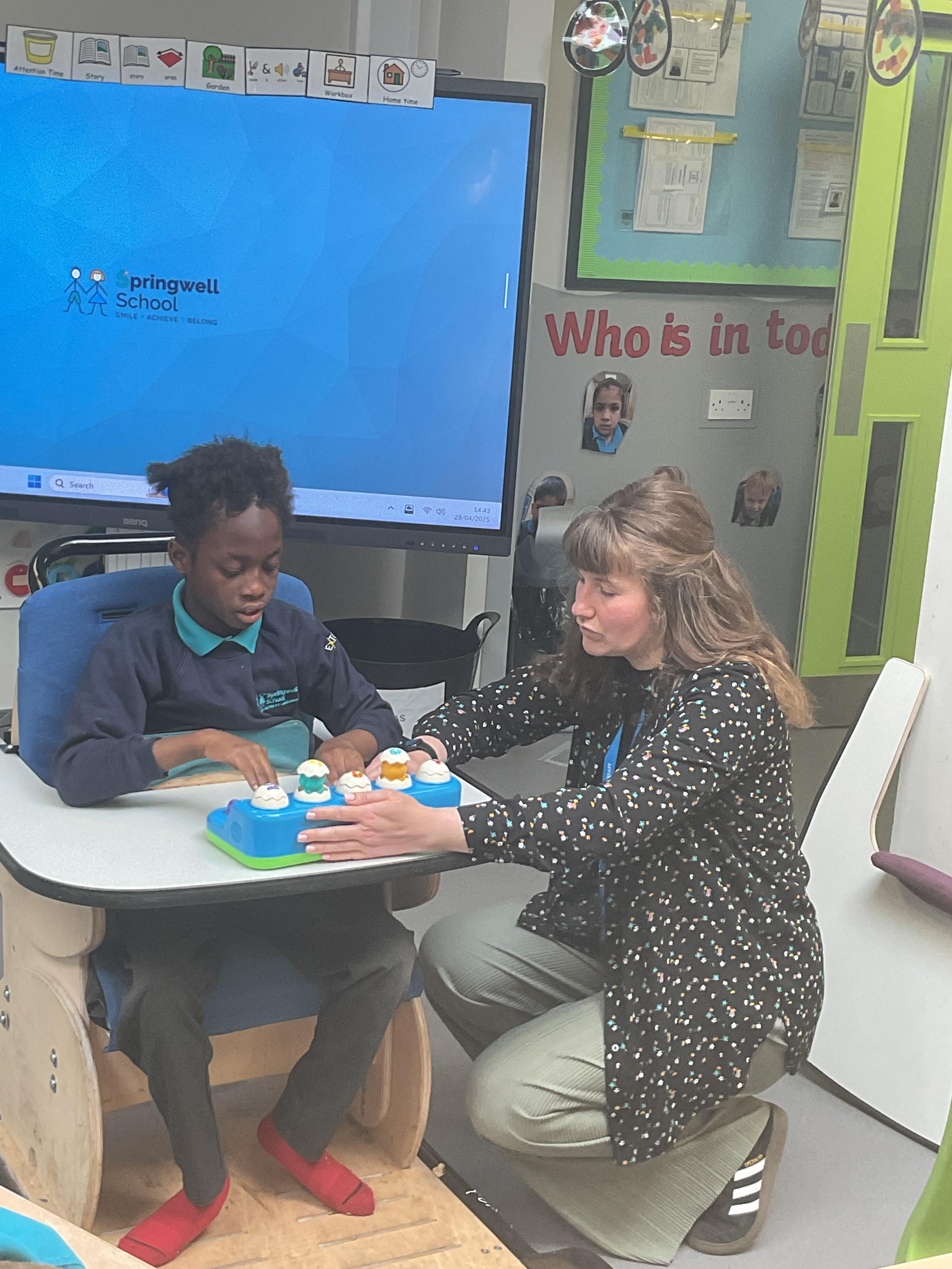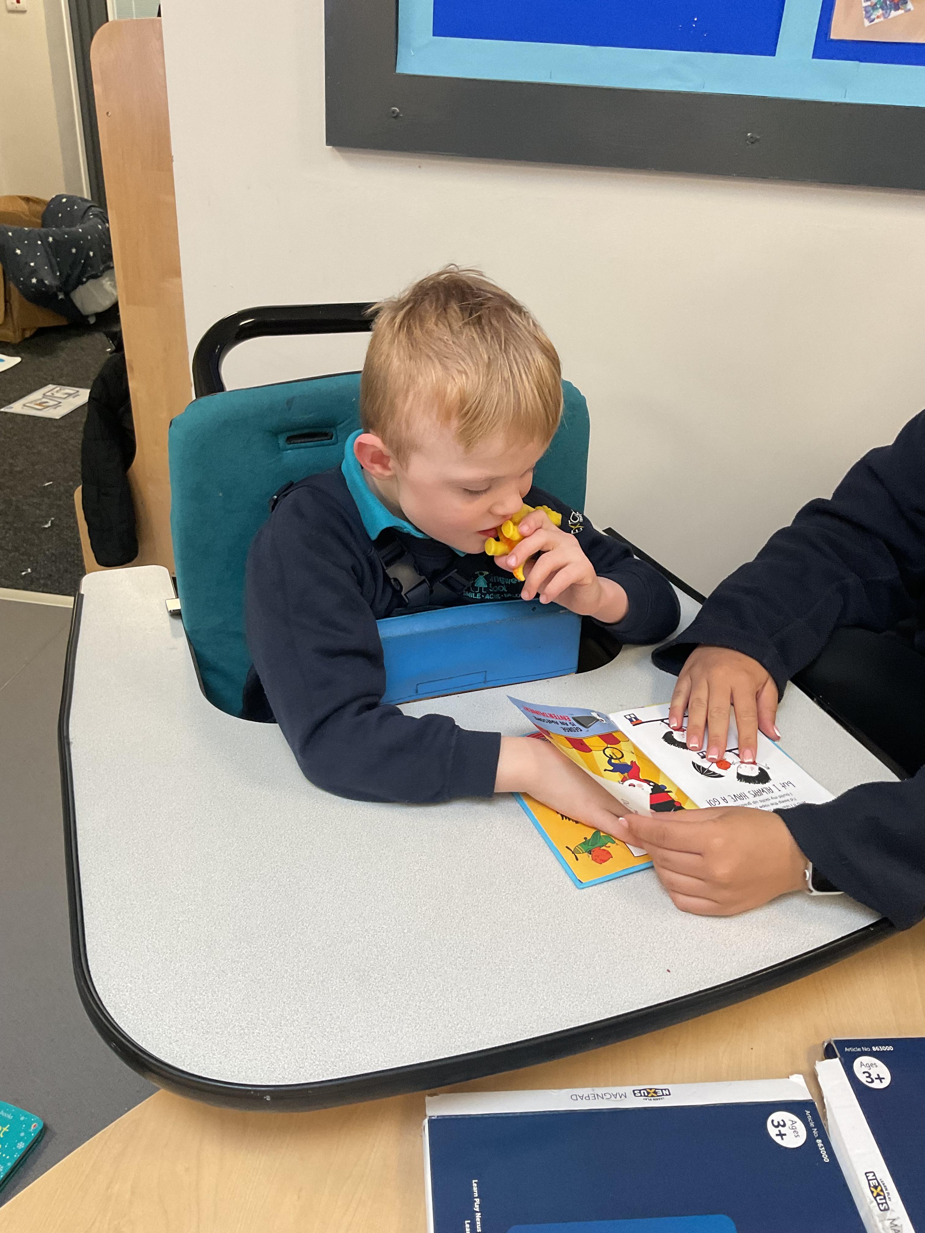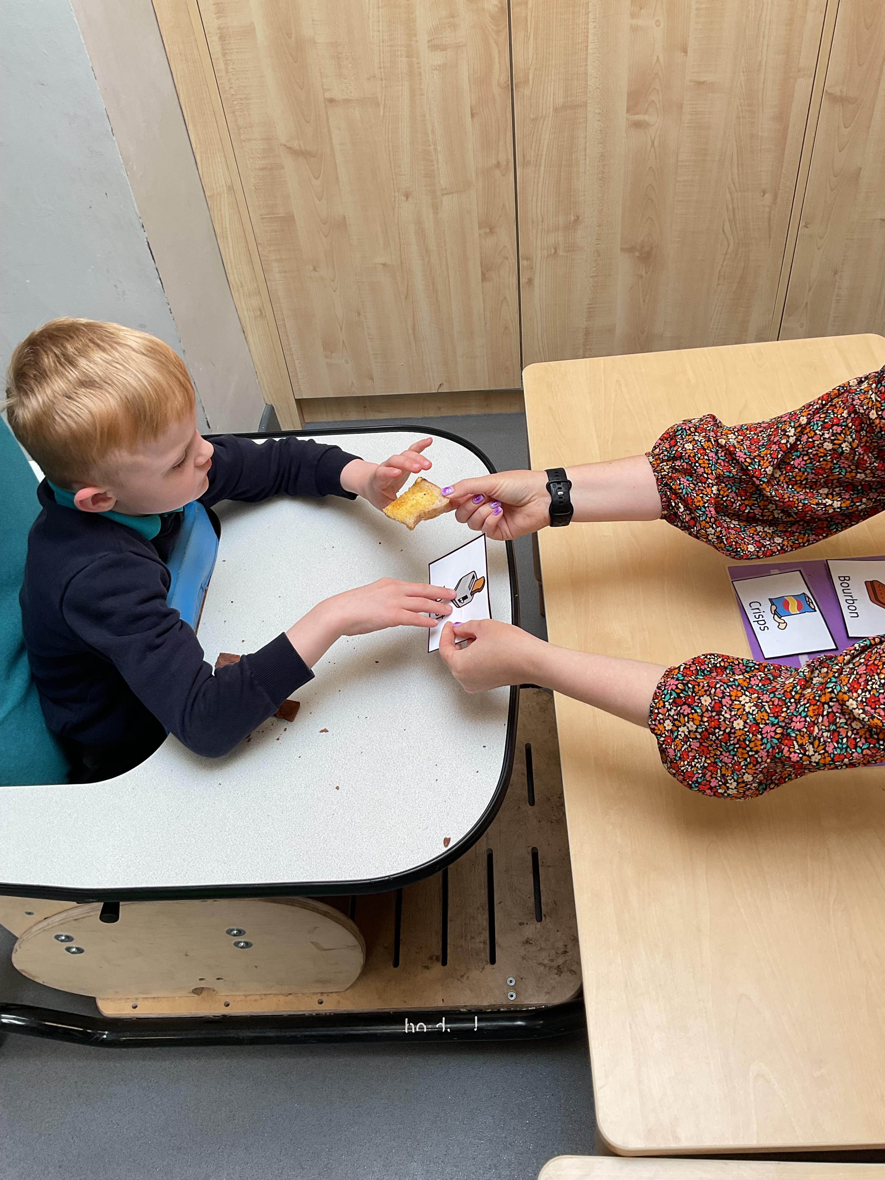 Today, we practised our turn-taking and communication skills by sharing some cause and effect toys. We all had a great time and we each got to choose our favourite toy. We enjoyed the noises and the lights and we practised choosing the toy we wanted.