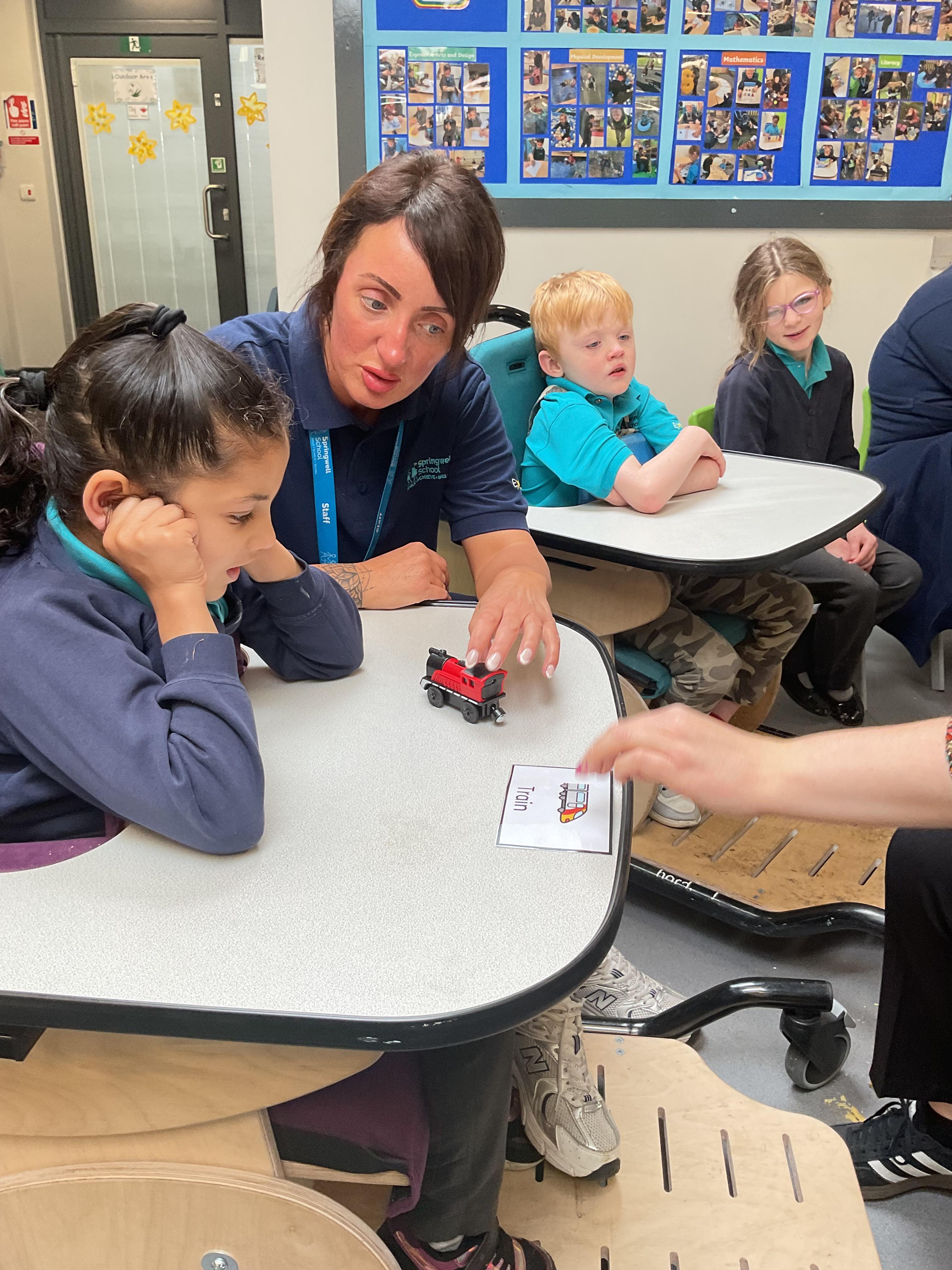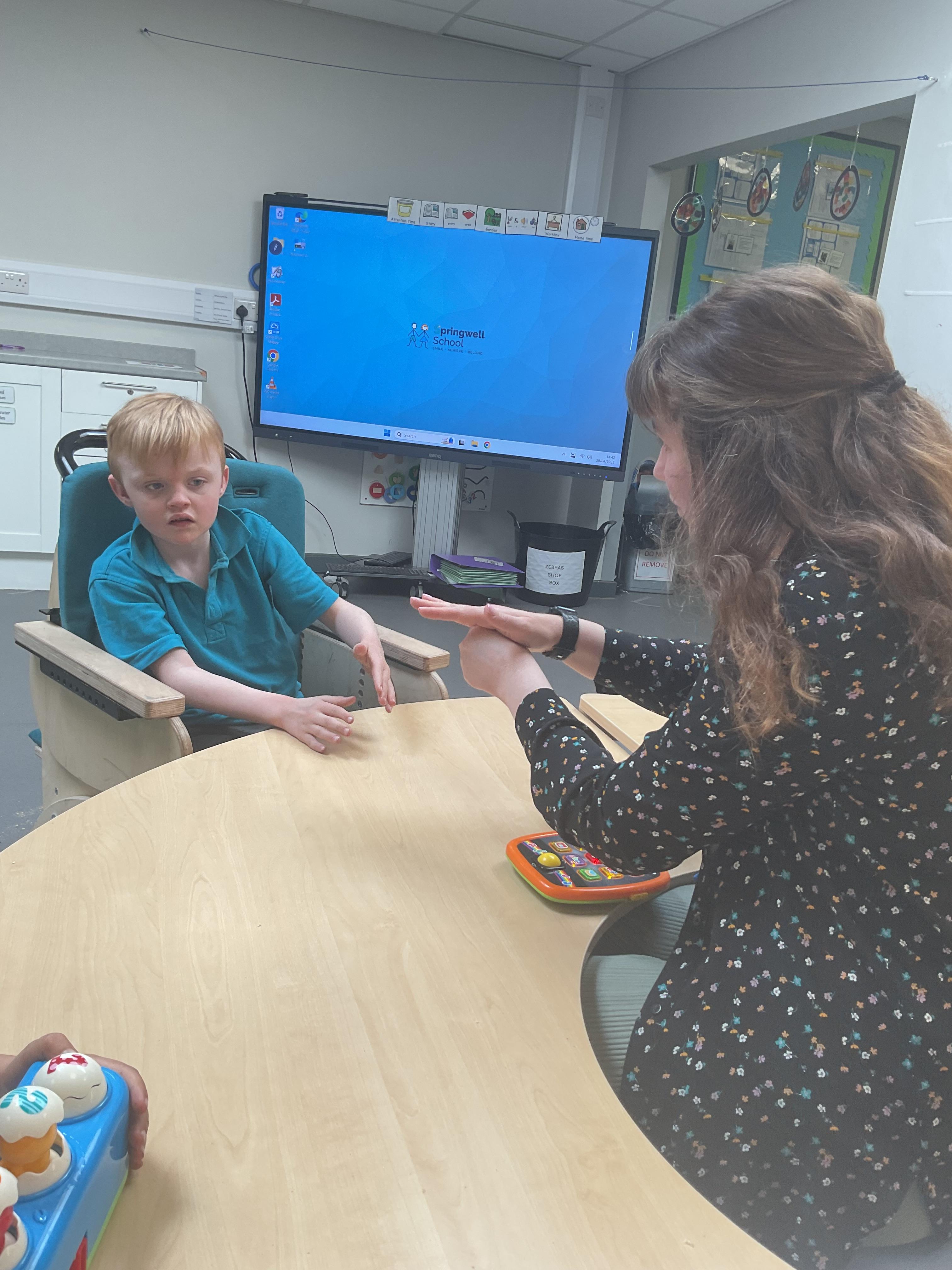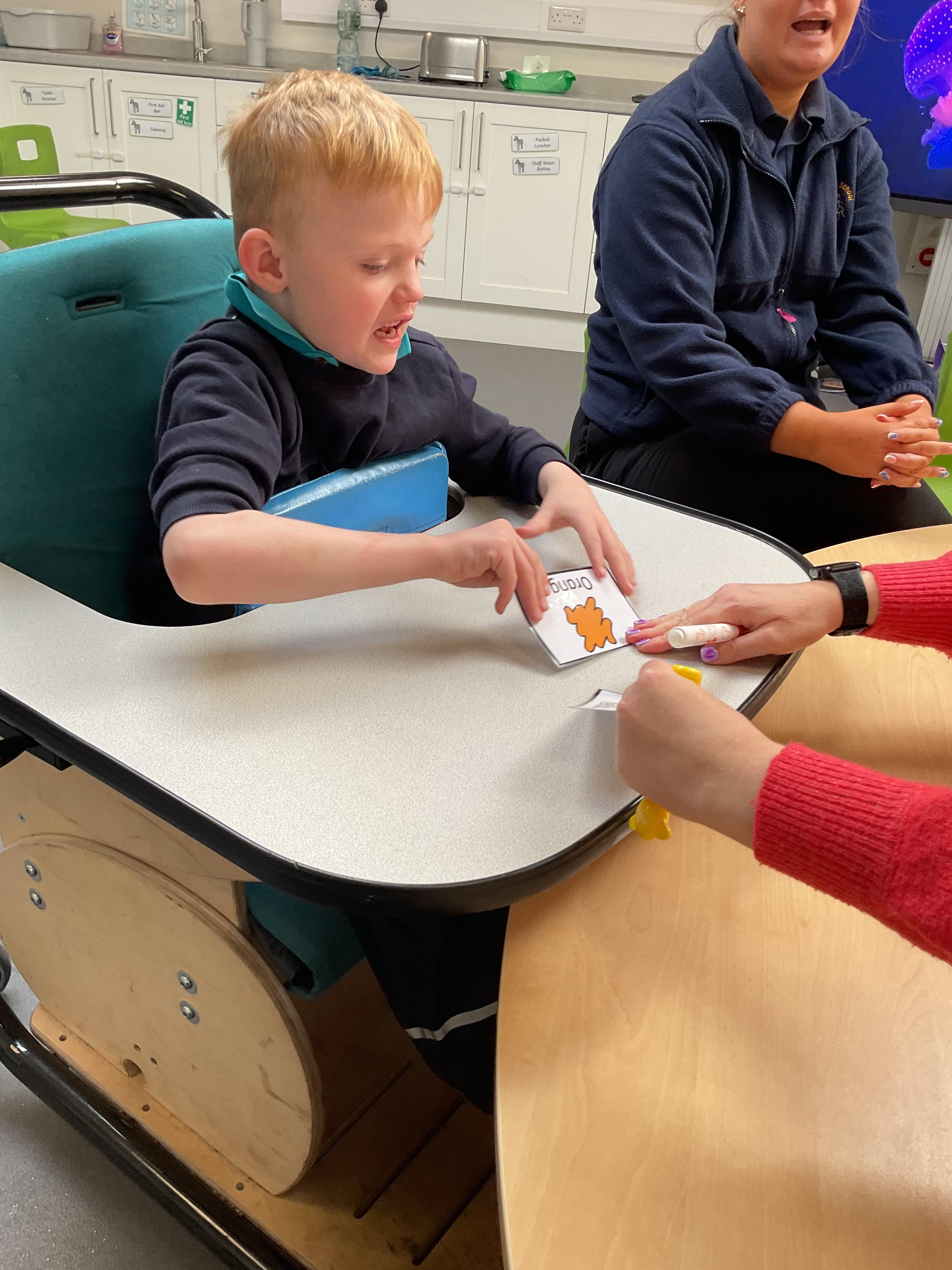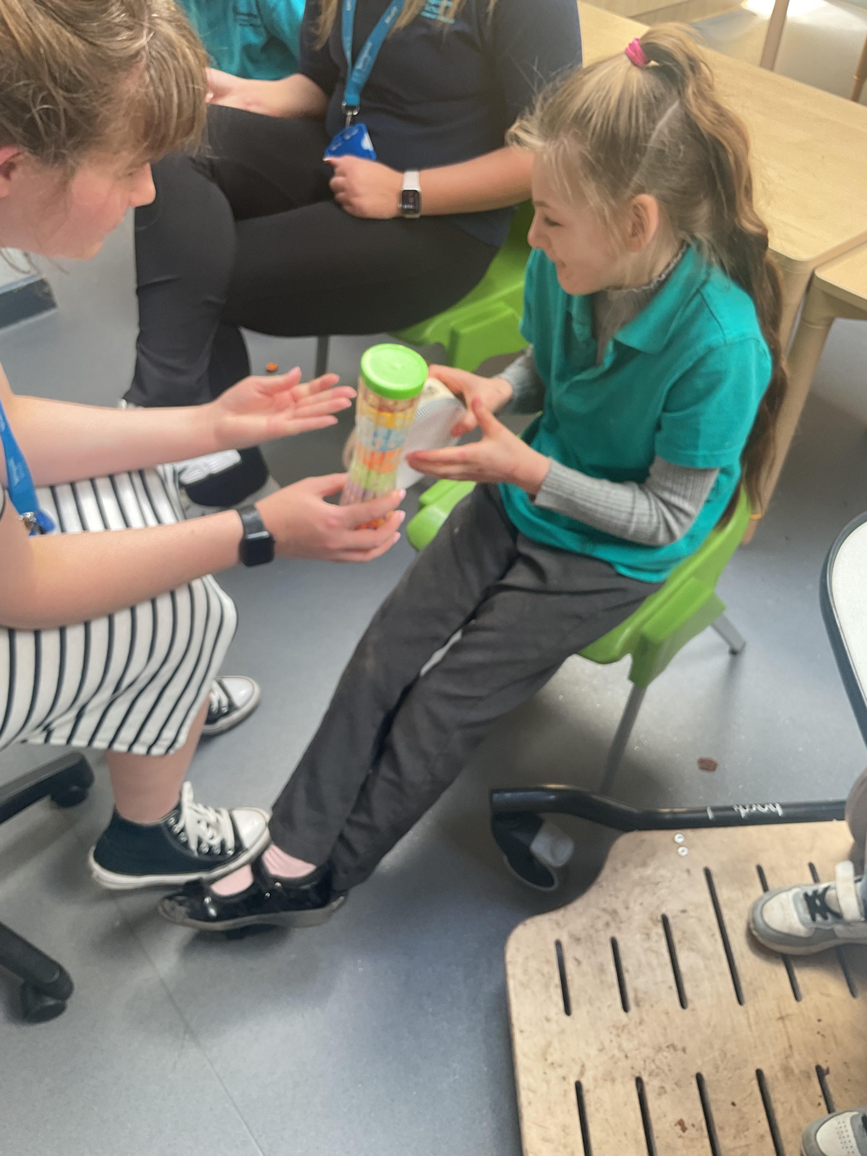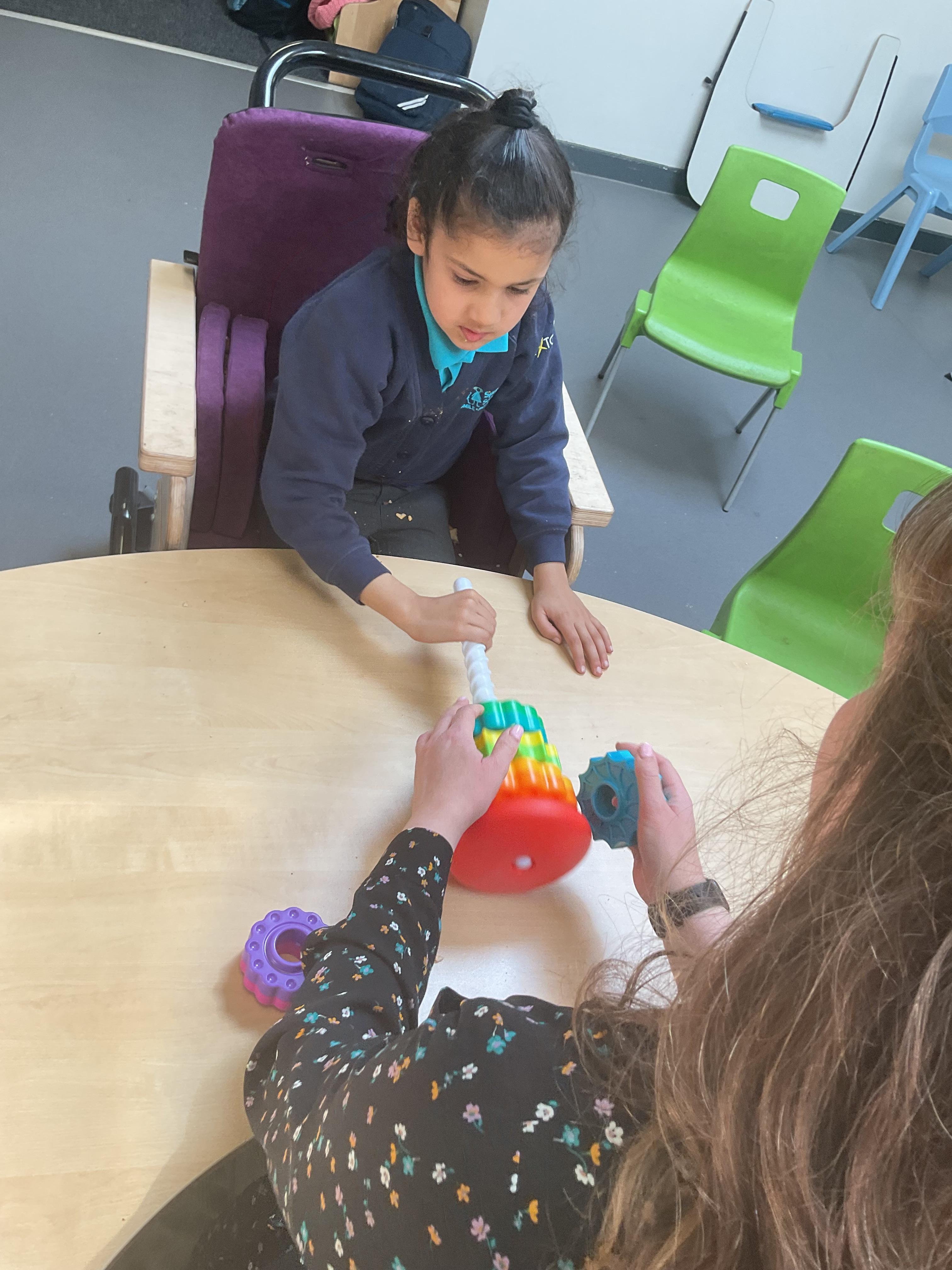 Today, we practised our turn-taking and communication skills by sharing some cause and effect toys. We all had a great time and we each got to choose our favourite toy. We enjoyed the noises and the lights and we practised choosing the toy we wanted.