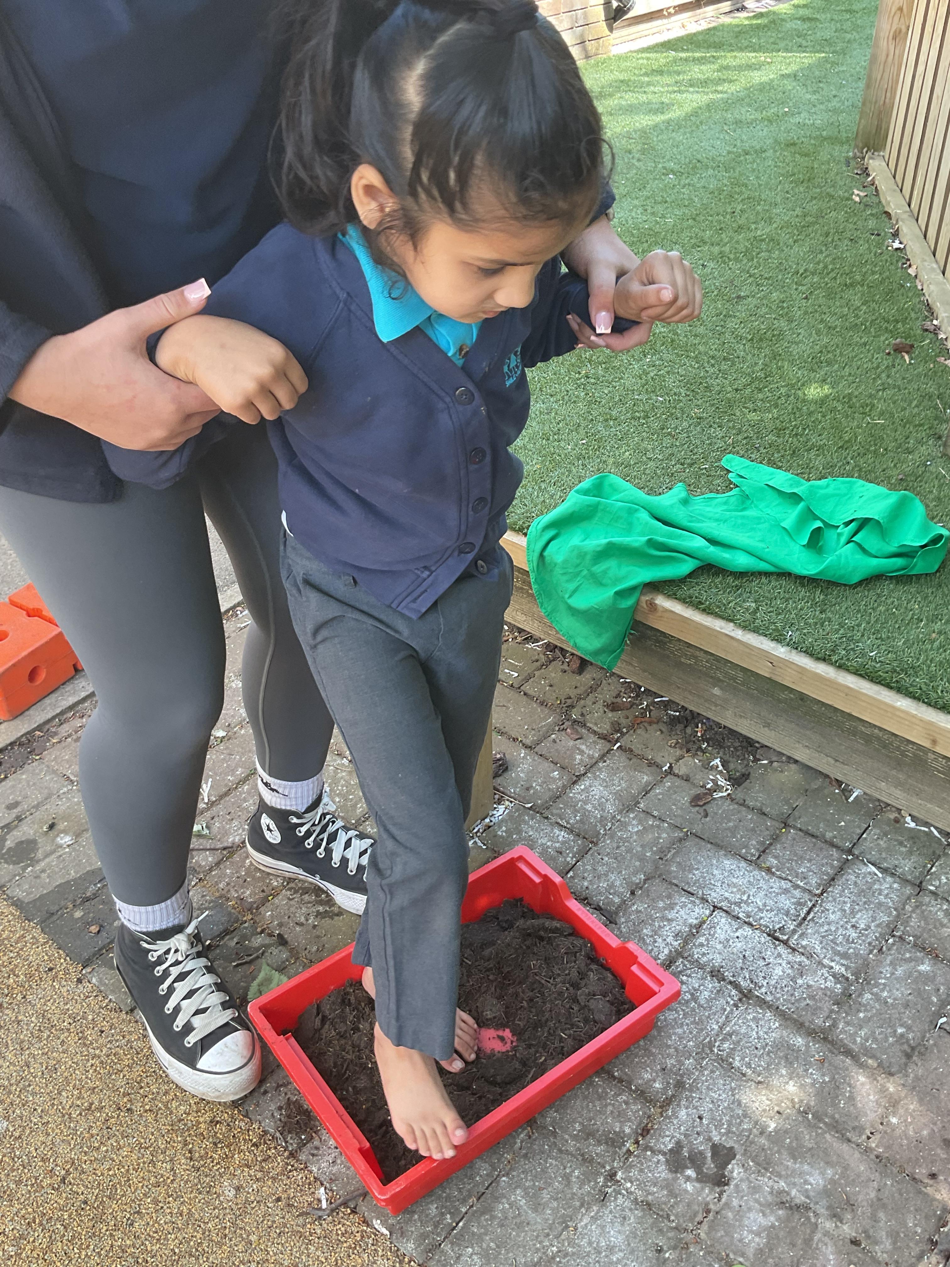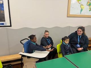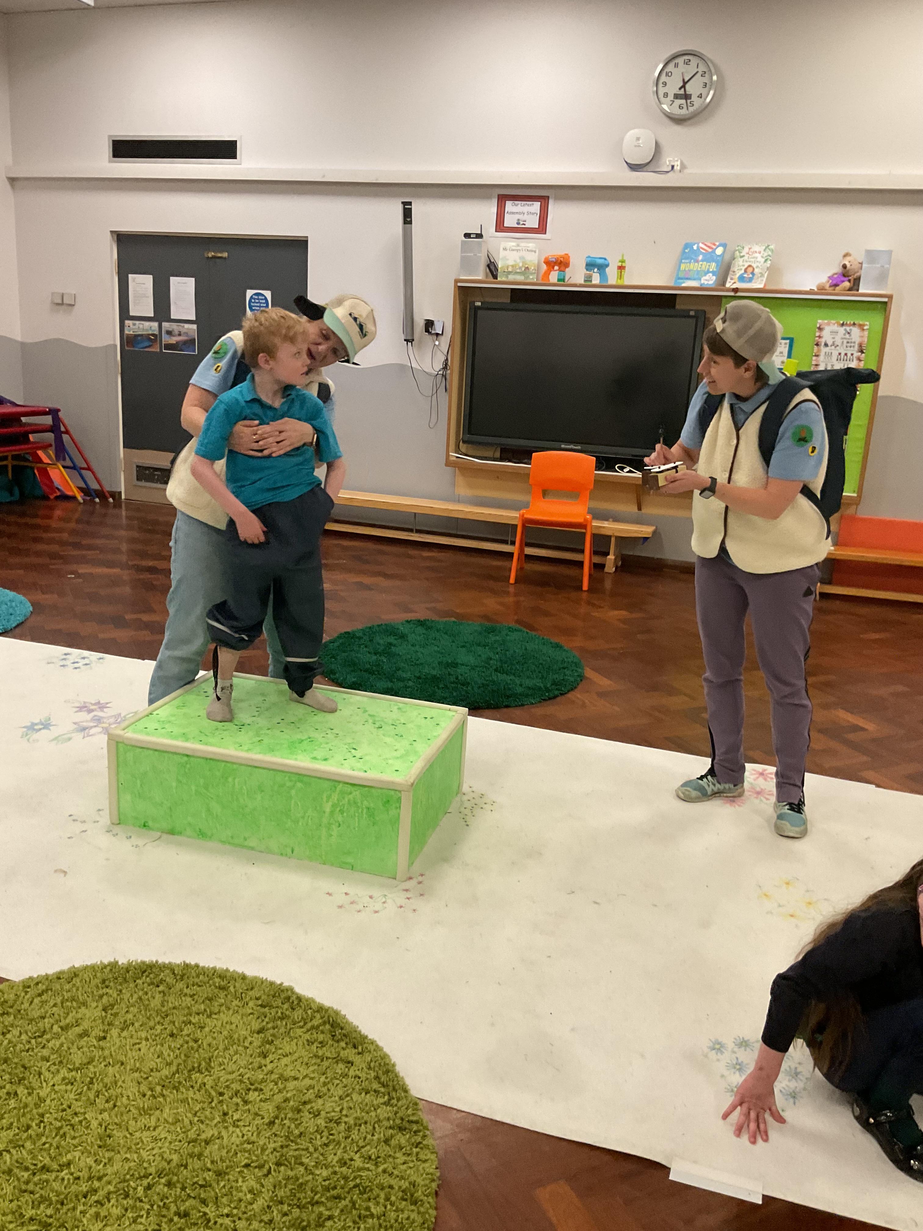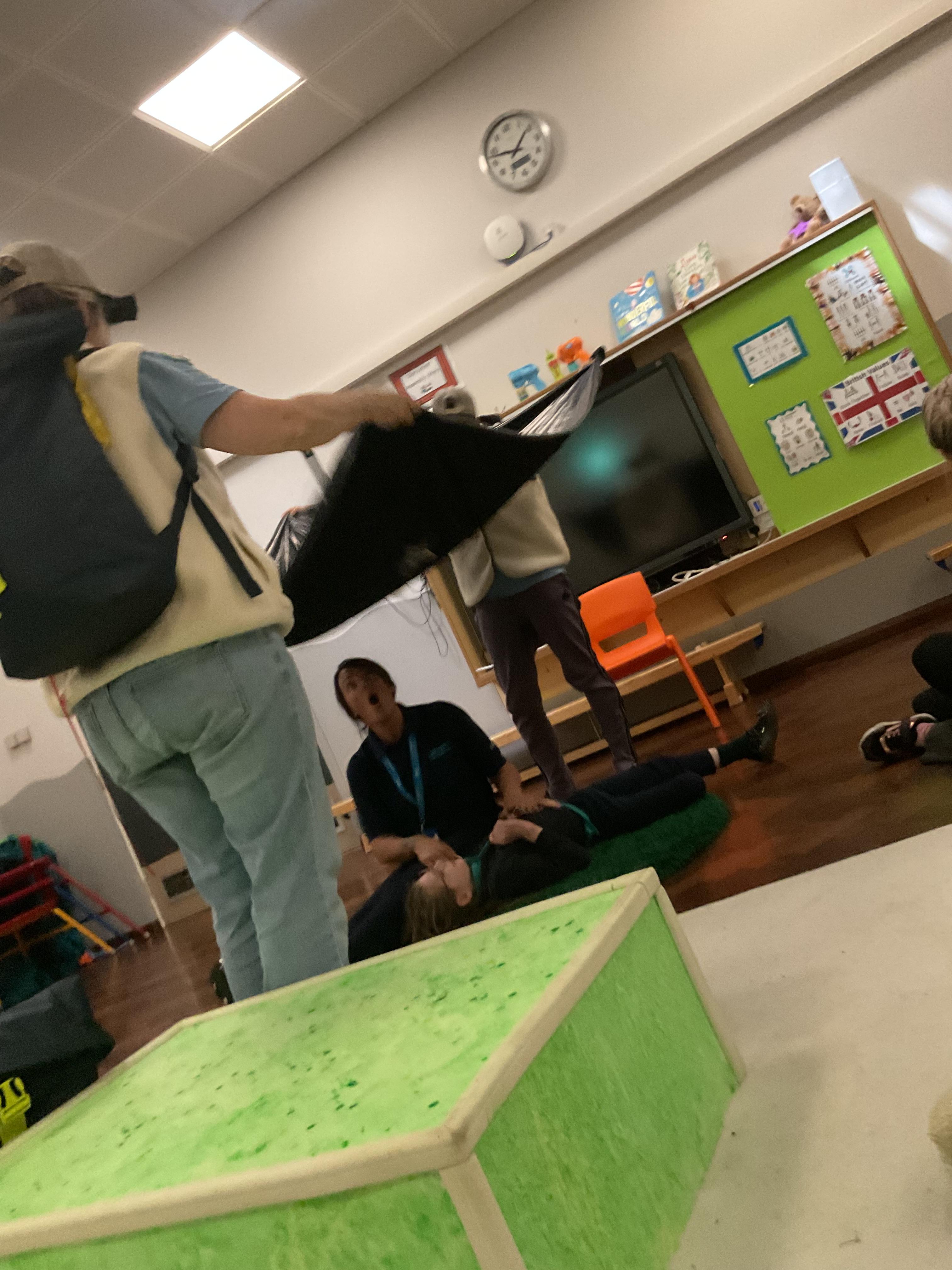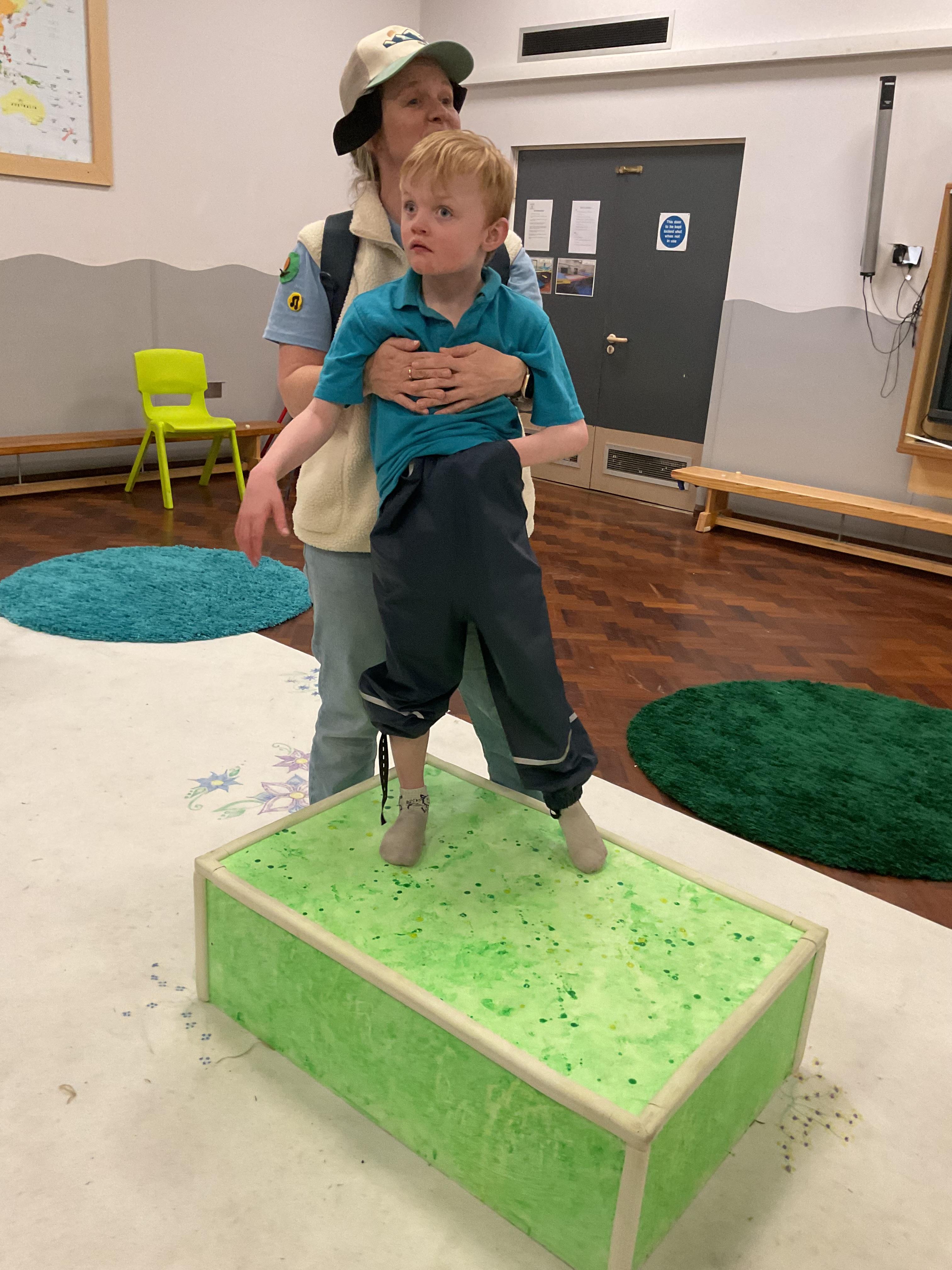 This week, we focused on our sensory story called “A Train Ride through India”. We kicked off the week by learning all about trains, we watched videos of trains, songs about trains and listened to train noises. In our cookery session, we made delicious edible trains using crackers, cheese and grapes. During the week, we explored our outdoor area and interacted with sensory trays inspired by the story “We’re Going on a Bear Hunt”. We experienced walking through squelching mud, crossing an icy cold river and hiding in a deep dark cave! On Wednesday, we worked hard on our individual rebound targets and had a fantastic time. We practised jumping in the middle of the trampoline and learning how to jump and stop effectively. In PSHRE, we worked hard to recognise our faces during morning greetings by choosing from two photographs. To finish the week, we had a special visit from the amazing “TimbaDash” theatre group. The children thoroughly enjoyed the performance, the photos speak for themselves. We want to say a huge thankyou to TimbaDash; we feel so lucky to participate in their performance.