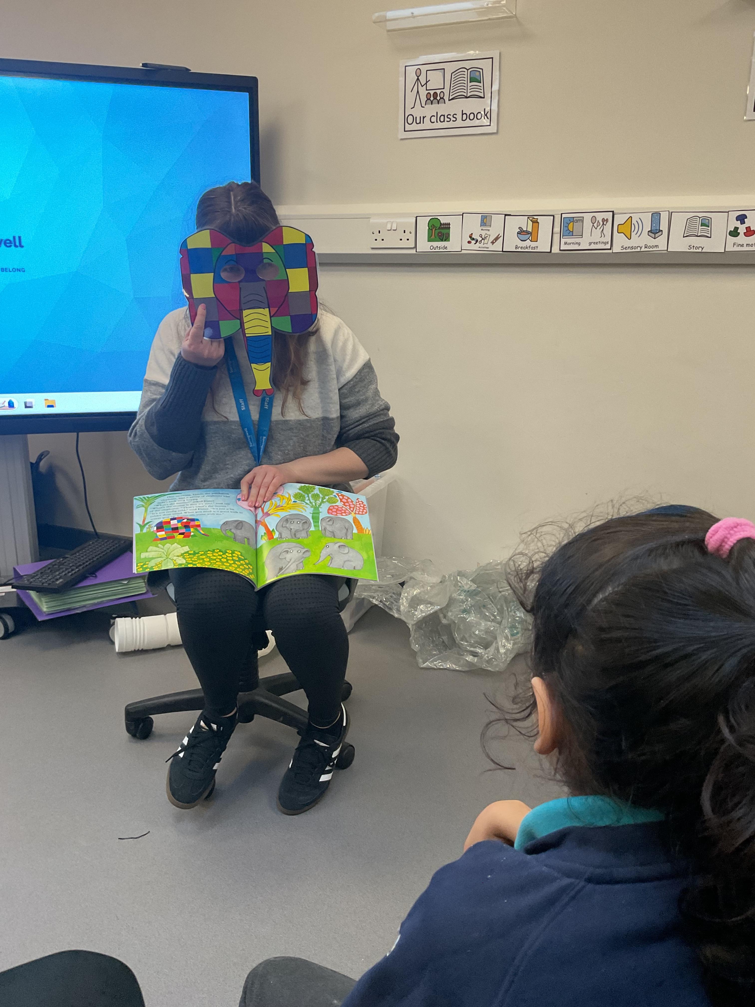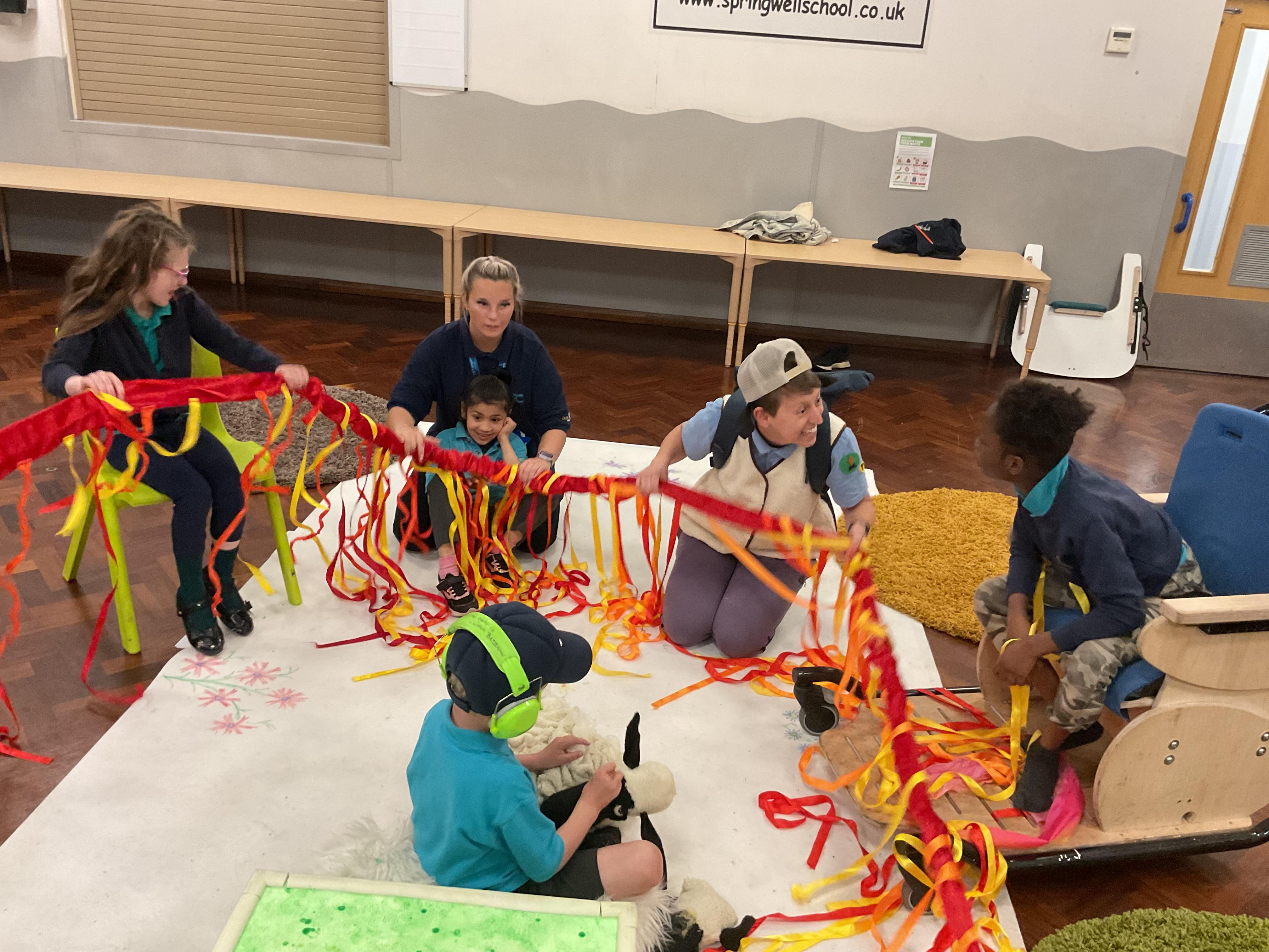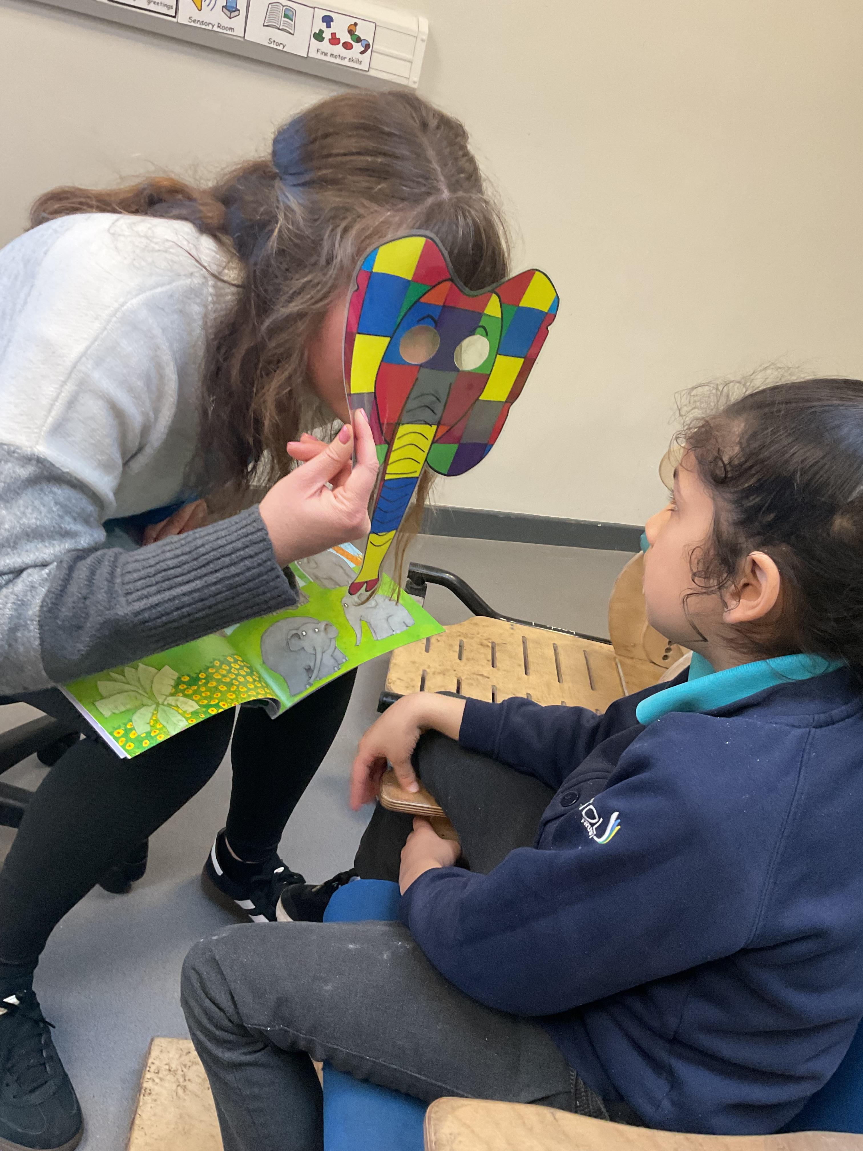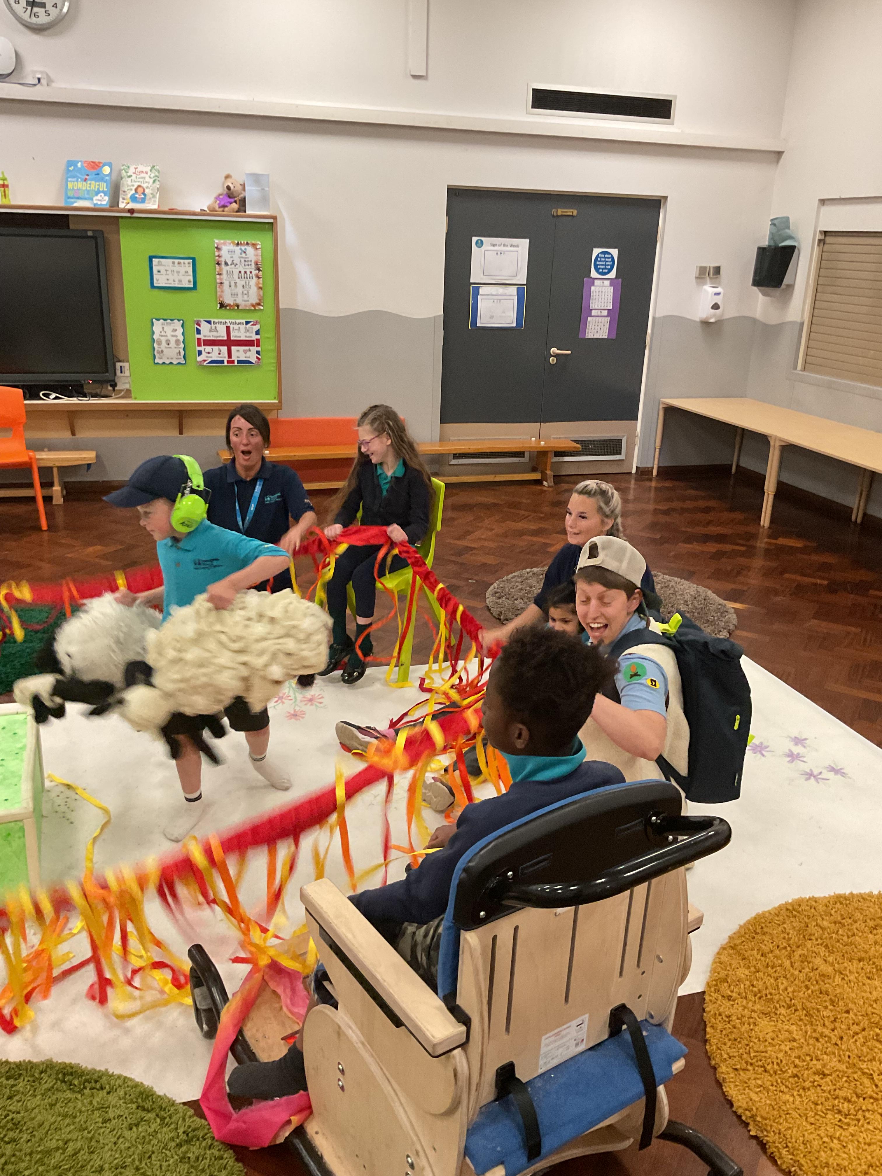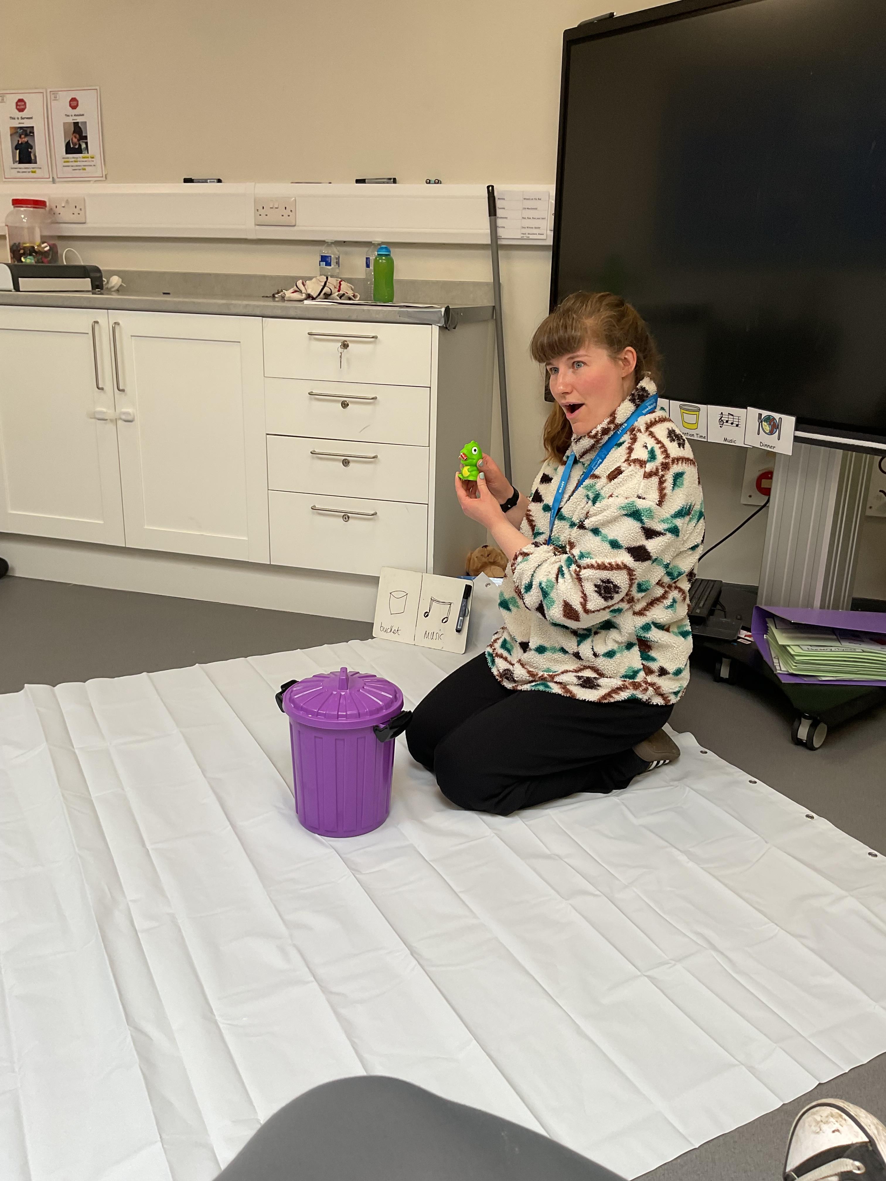 This week, we focused on our sensory story called “A Train Ride through India”. We kicked off the week by learning all about trains, we watched videos of trains, songs about trains and listened to train noises. In our cookery session, we made delicious edible trains using crackers, cheese and grapes. During the week, we explored our outdoor area and interacted with sensory trays inspired by the story “We’re Going on a Bear Hunt”. We experienced walking through squelching mud, crossing an icy cold river and hiding in a deep dark cave! On Wednesday, we worked hard on our individual rebound targets and had a fantastic time. We practised jumping in the middle of the trampoline and learning how to jump and stop effectively. In PSHRE, we worked hard to recognise our faces during morning greetings by choosing from two photographs. To finish the week, we had a special visit from the amazing “TimbaDash” theatre group. The children thoroughly enjoyed the performance, the photos speak for themselves. We want to say a huge thankyou to TimbaDash; we feel so lucky to participate in their performance.