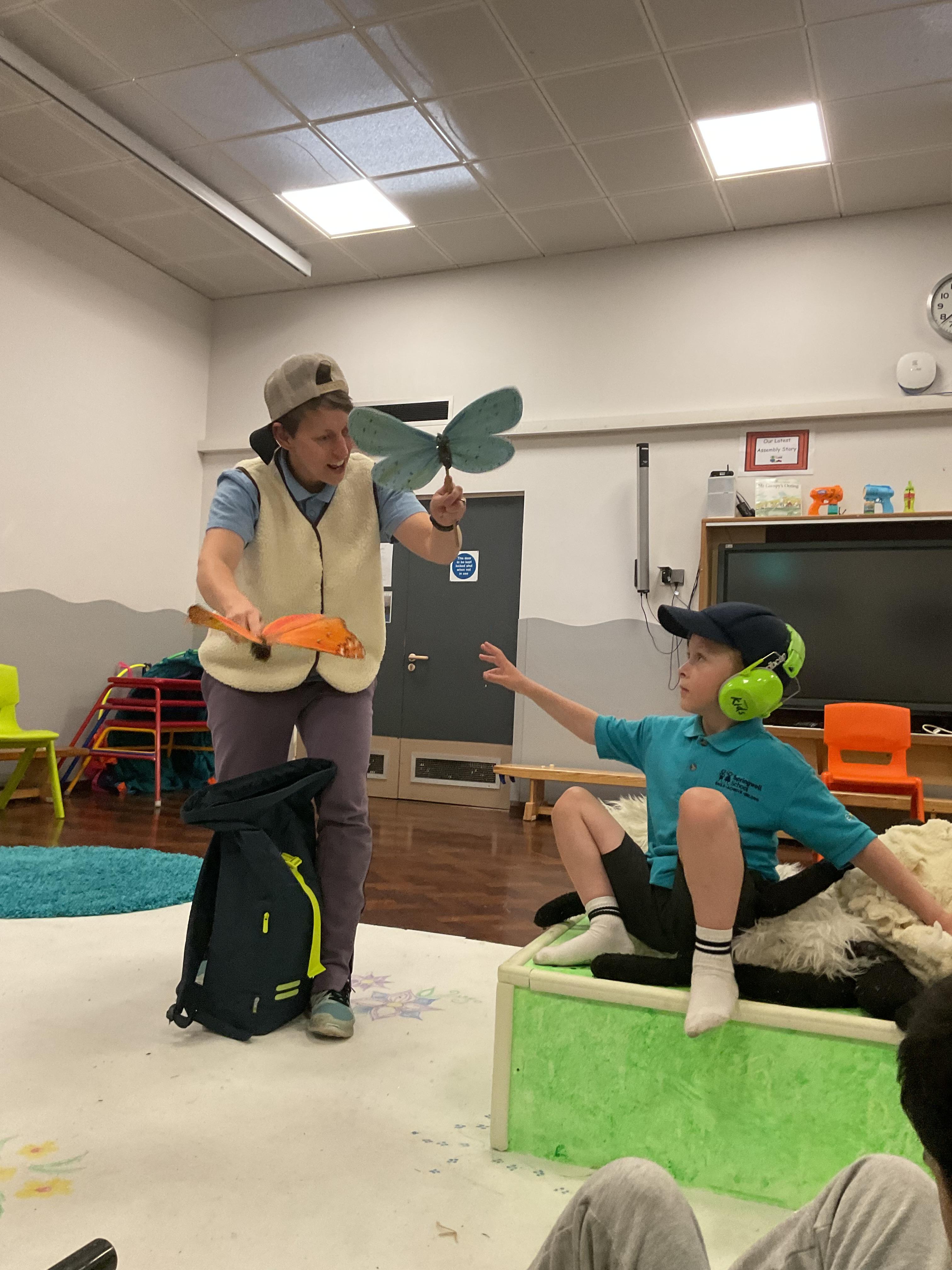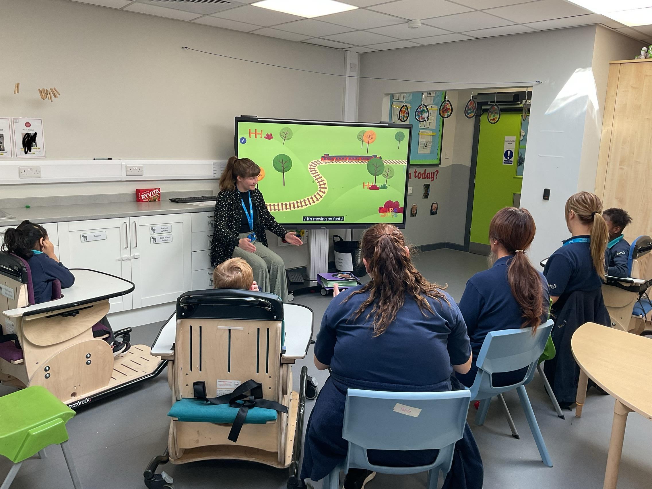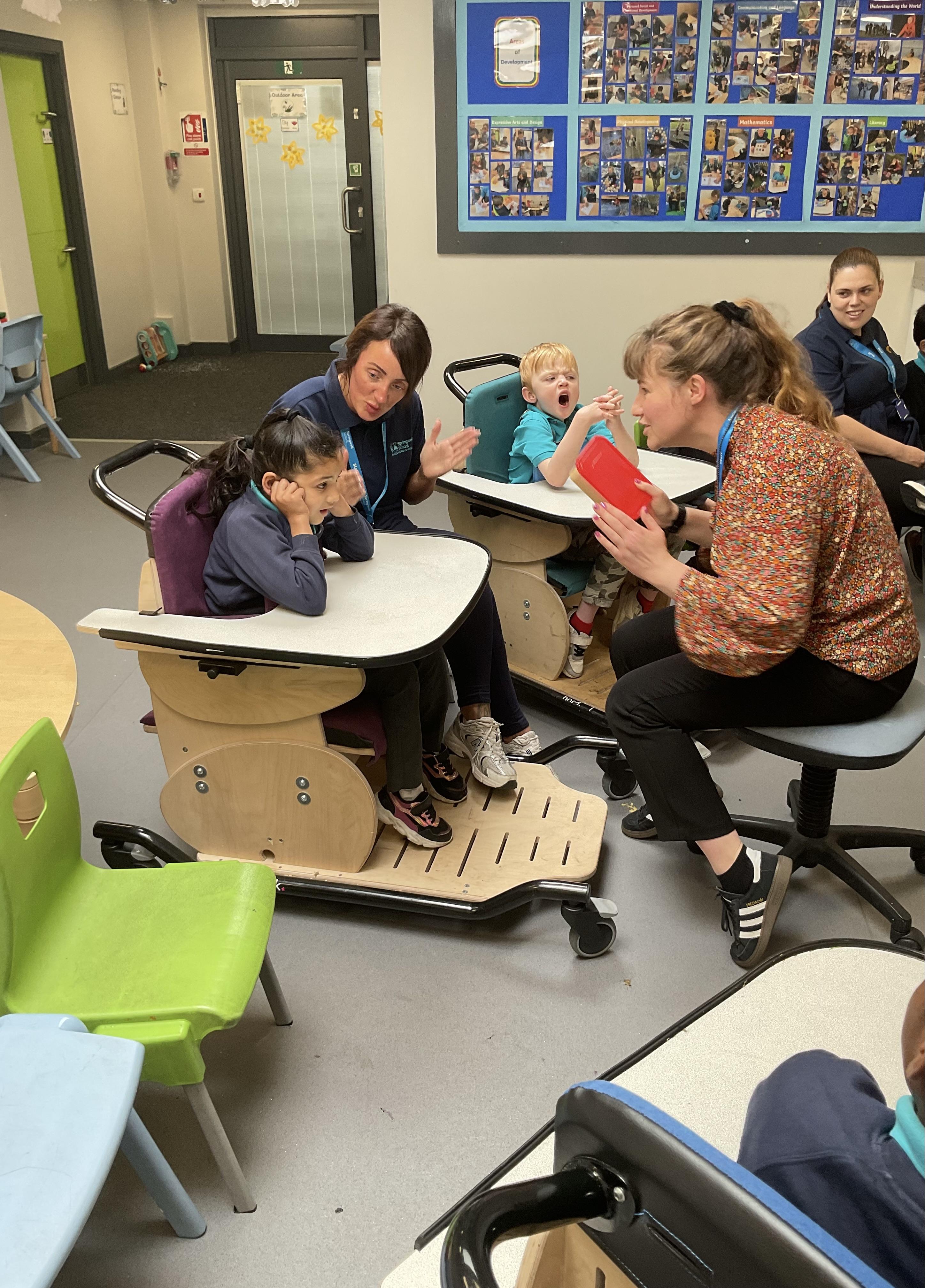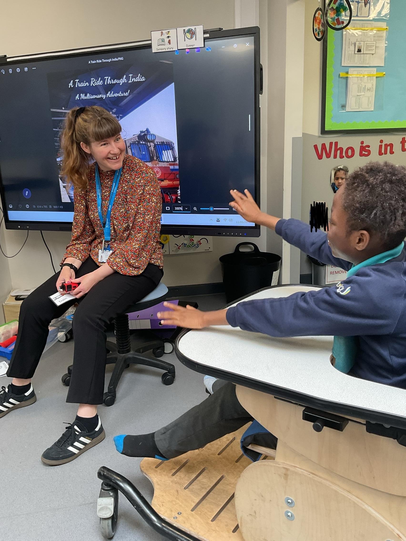 This week, we focused on our sensory story called “A Train Ride through India”. We kicked off the week by learning all about trains, we watched videos of trains, songs about trains and listened to train noises. In our cookery session, we made delicious edible trains using crackers, cheese and grapes. During the week, we explored our outdoor area and interacted with sensory trays inspired by the story “We’re Going on a Bear Hunt”. We experienced walking through squelching mud, crossing an icy cold river and hiding in a deep dark cave! On Wednesday, we worked hard on our individual rebound targets and had a fantastic time. We practised jumping in the middle of the trampoline and learning how to jump and stop effectively. In PSHRE, we worked hard to recognise our faces during morning greetings by choosing from two photographs. To finish the week, we had a special visit from the amazing “TimbaDash” theatre group. The children thoroughly enjoyed the performance, the photos speak for themselves. We want to say a huge thankyou to TimbaDash; we feel so lucky to participate in their performance.