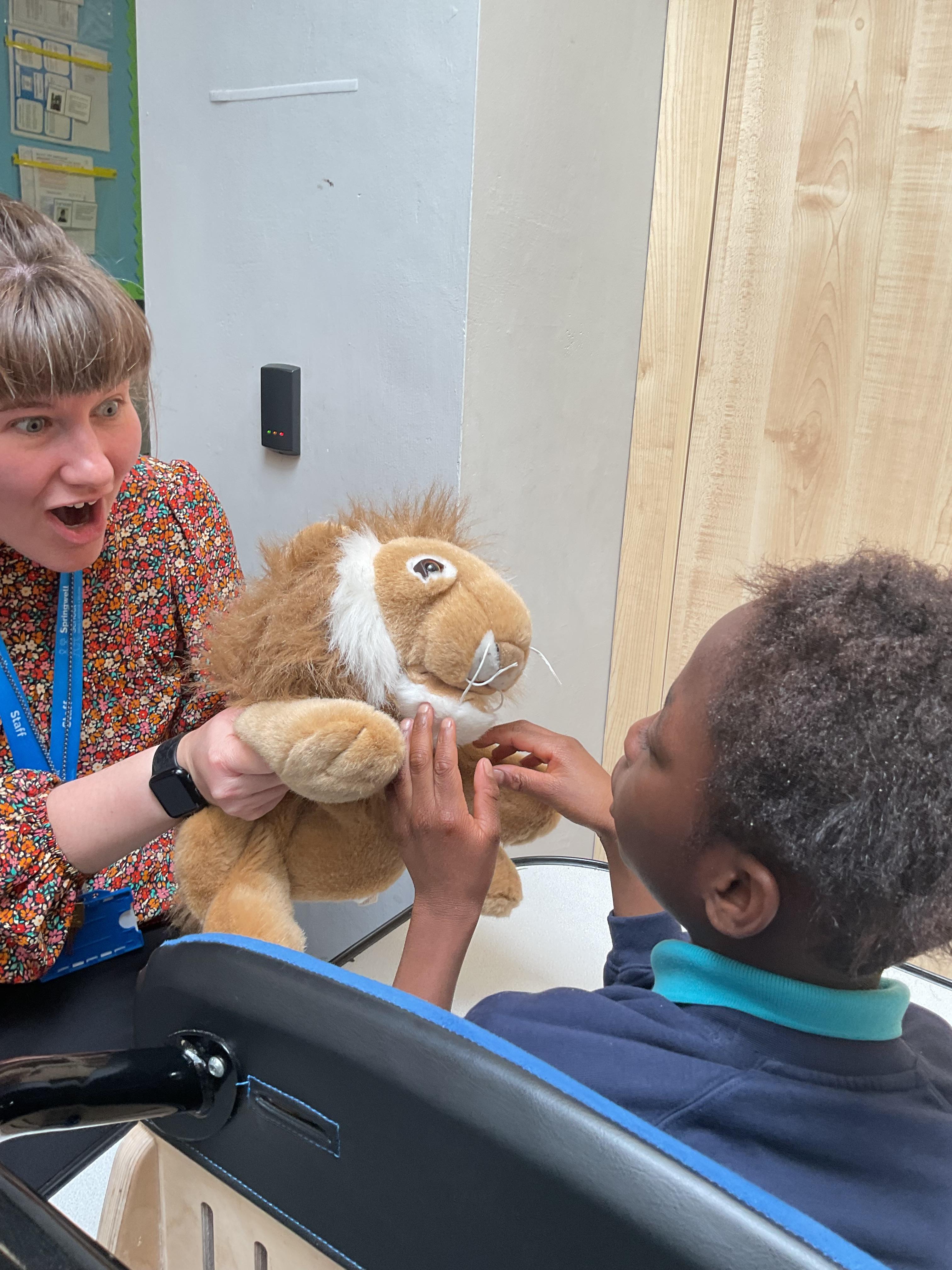 What an amazing week for Zebra Class! We have worked very hard this week and have particularly enjoyed the sunshine we have had! Our focus has been on our new sensory story, “Panda Bear, Panda Bear, What do you see?”. In literacy, we listened very carefully and explored the different animals featured in the story. Linking with our new story in cookery, we improved our cutting skills by making our own bears made from fruit, we were lucky enough to eat them afterwards! On Wednesday, all the children had lots of fun in our class assembly, showing all our parents and carers all the hard work we have been working on. Our assembly was based on “The Gruffalo”, we went on a sensory walk, made Gruffalo pictures and masks and tried some yummy food. Zebras have also been individually working hard completing their work box activities, everyone has completed lots of fine motor work, puzzles and matching activities. We enjoyed getting out and about in the community, practising walking on reins. In PSHRE, we finished the week getting out into the community with a bus trip to Elwick Park. Children developed their gross motor skills by running, jumping and climbing. They also practised waiting their turn on all the equipment with their friends.