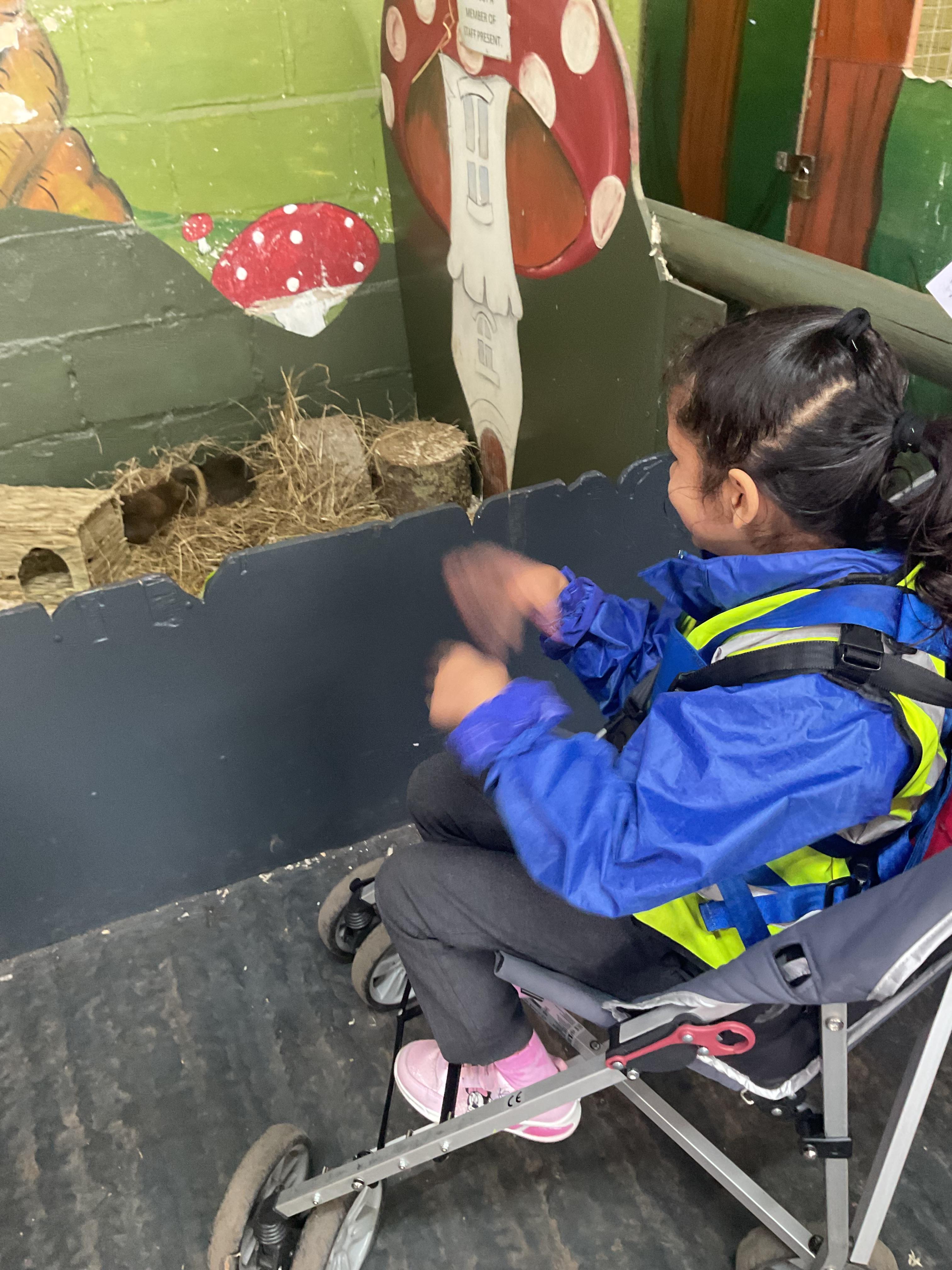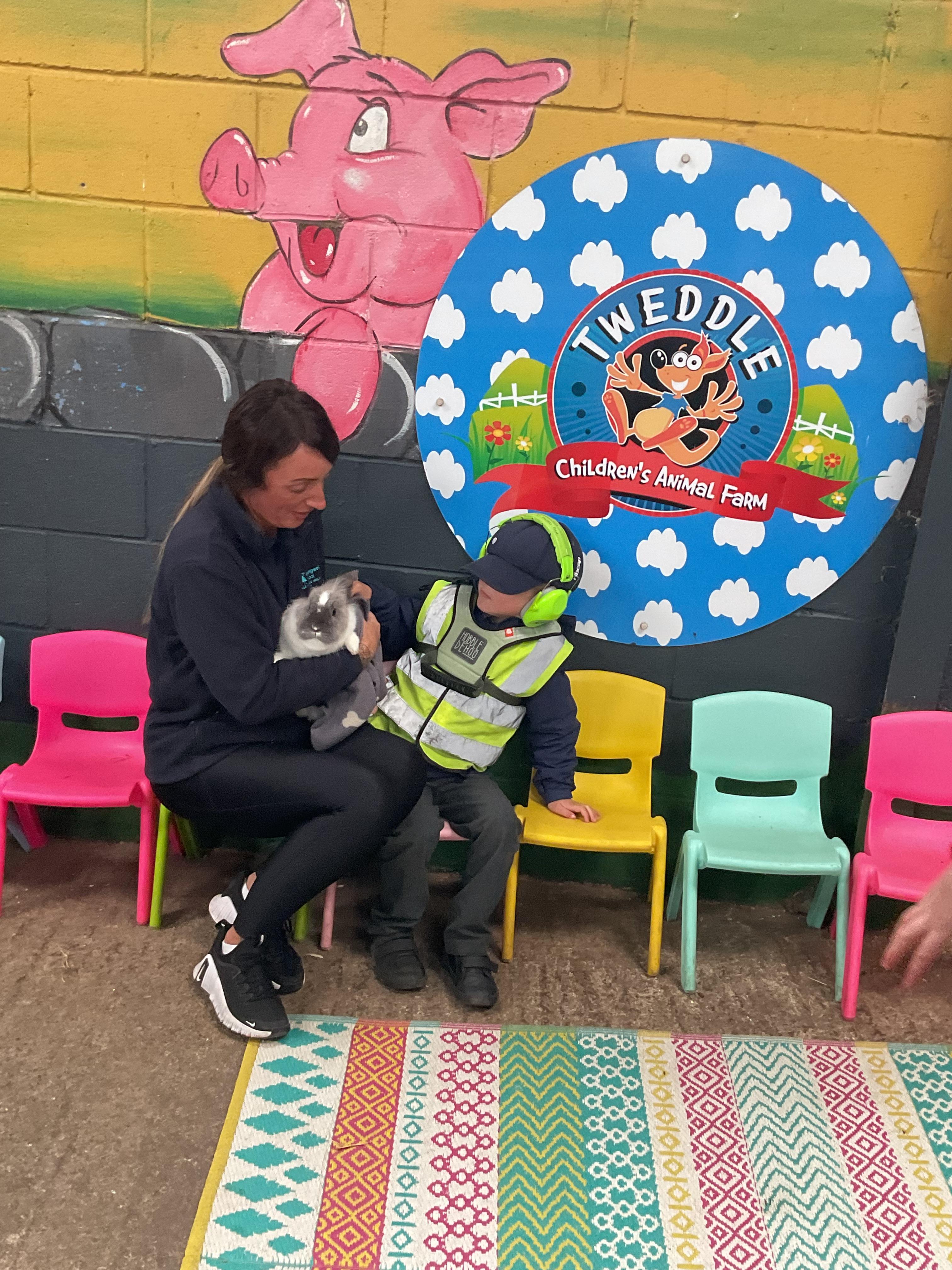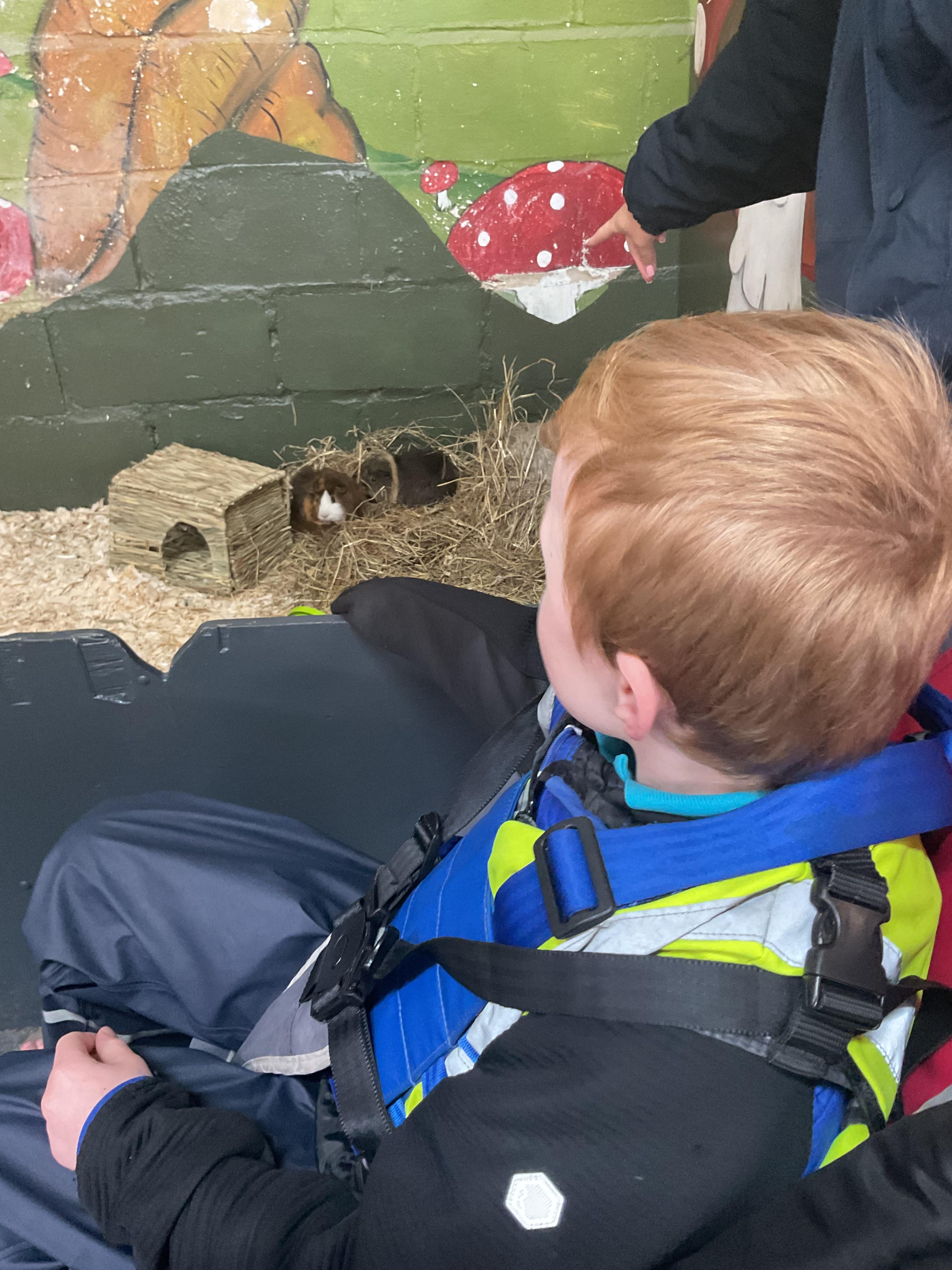 Today, we visited Tweddle's Farm.We had a lovely time. The weather was very sunny and we were able to play outside on the swings. We also visited lots of animals. We saw the rabbits, guinea pigs and were followed around on our walk by a baby goat!