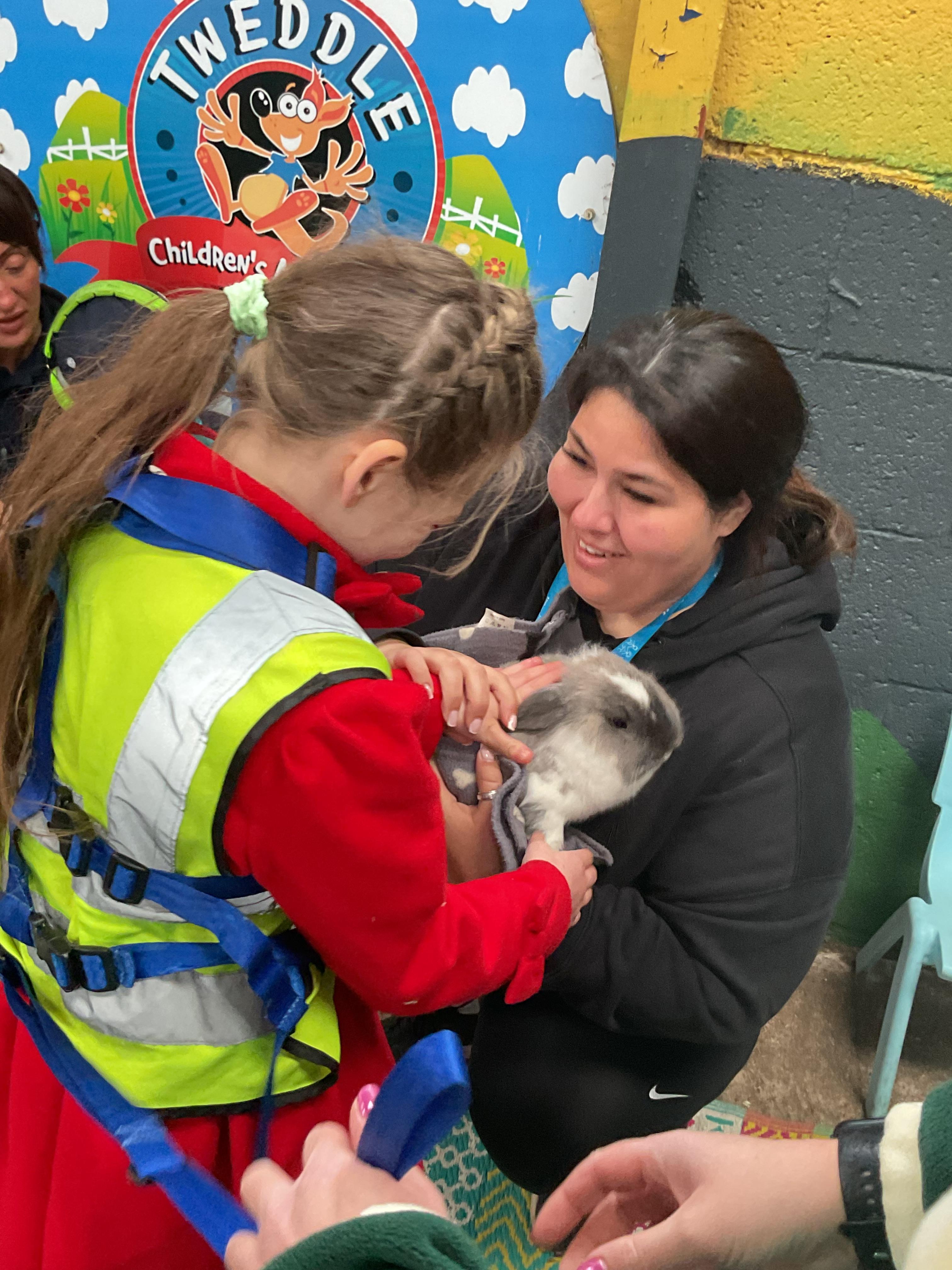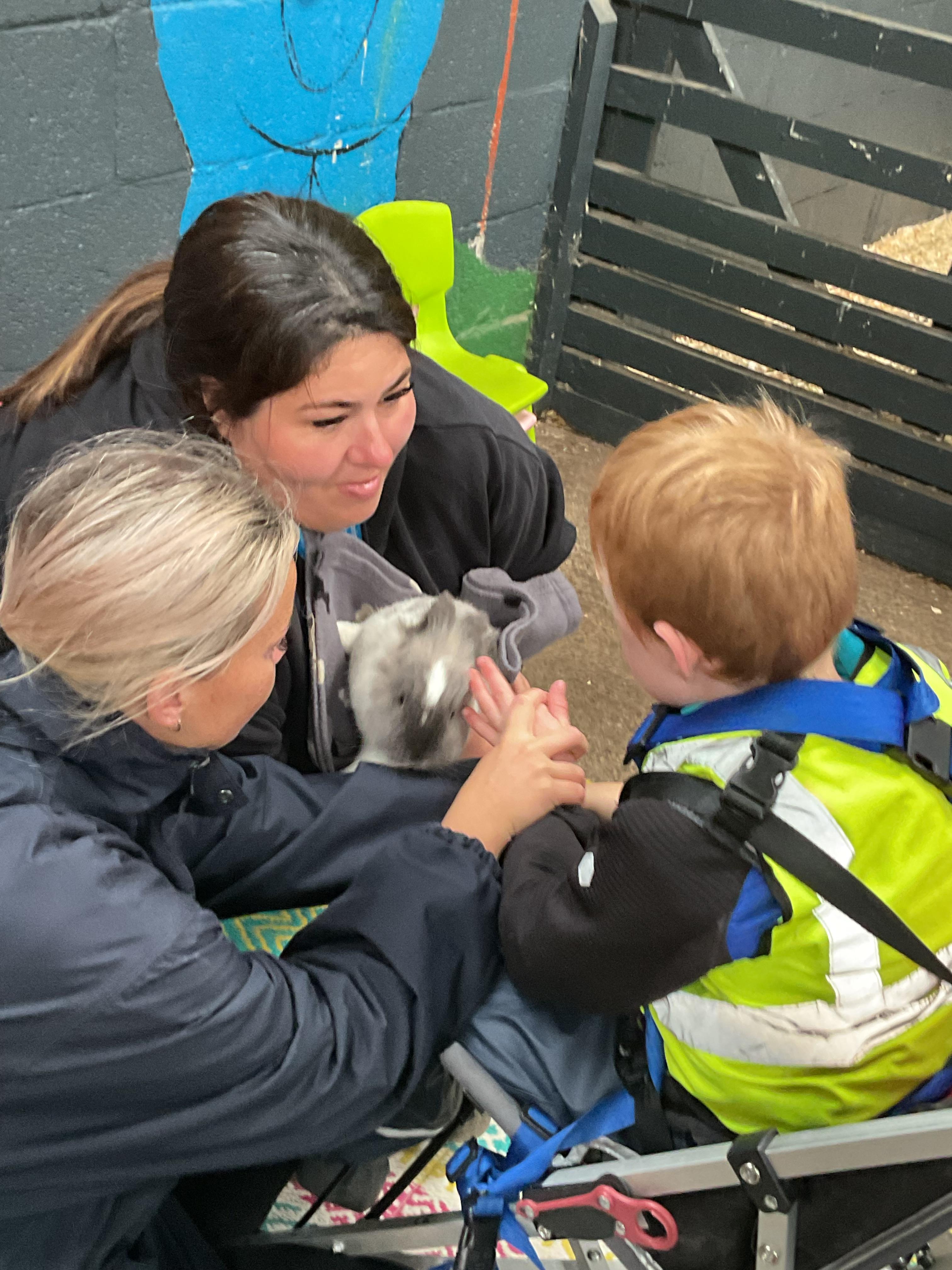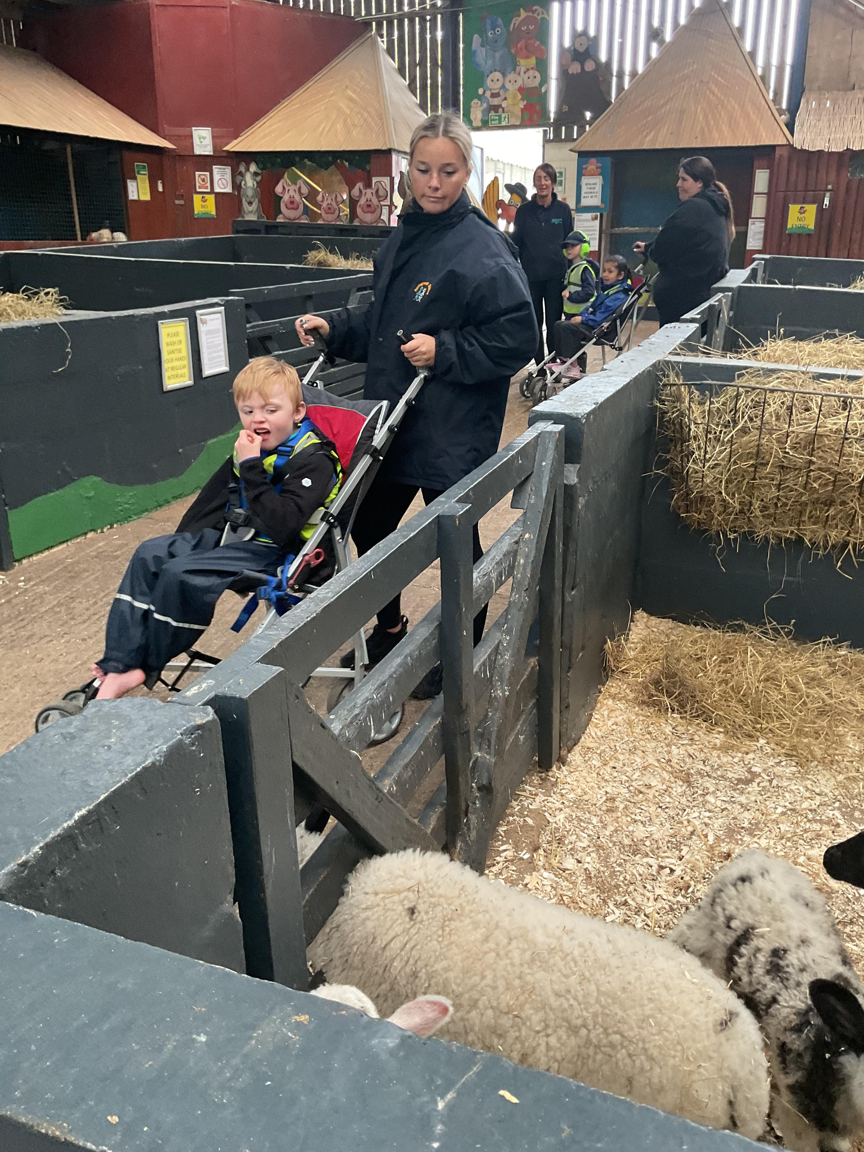 Today, we visited Tweddle's Farm.We had a lovely time. The weather was very sunny and we were able to play outside on the swings. We also visited lots of animals. We saw the rabbits, guinea pigs and were followed around on our walk by a baby goat!