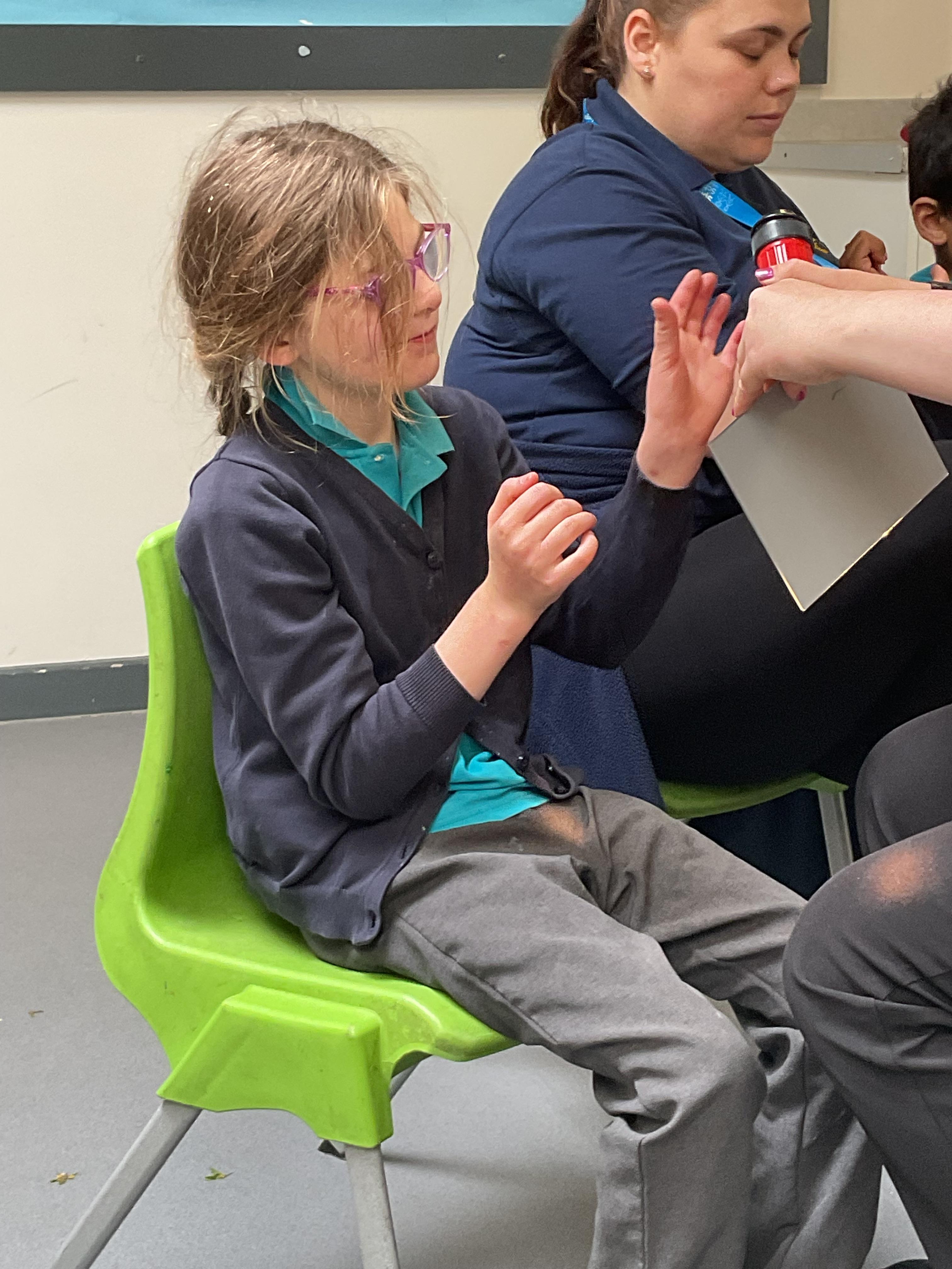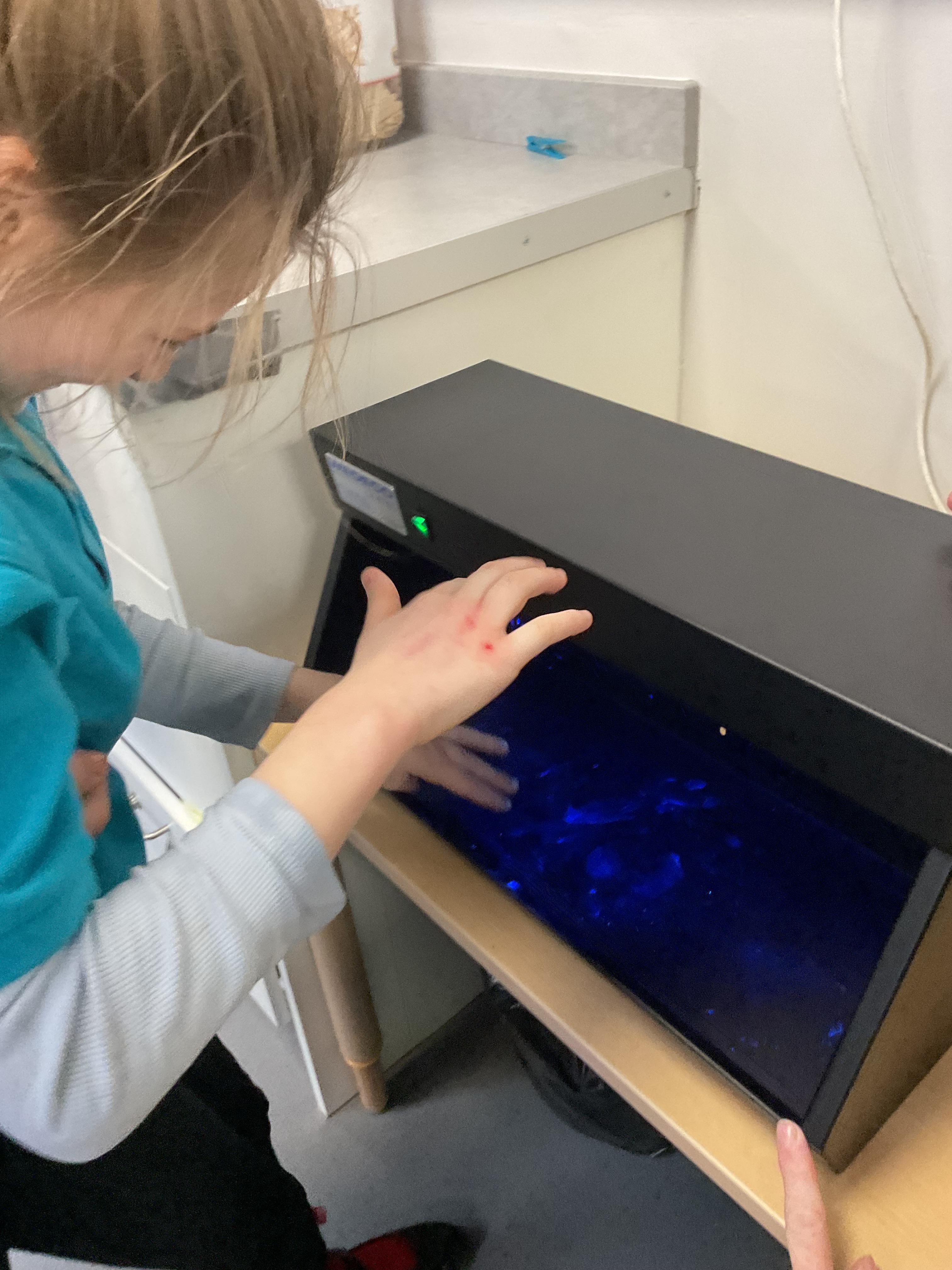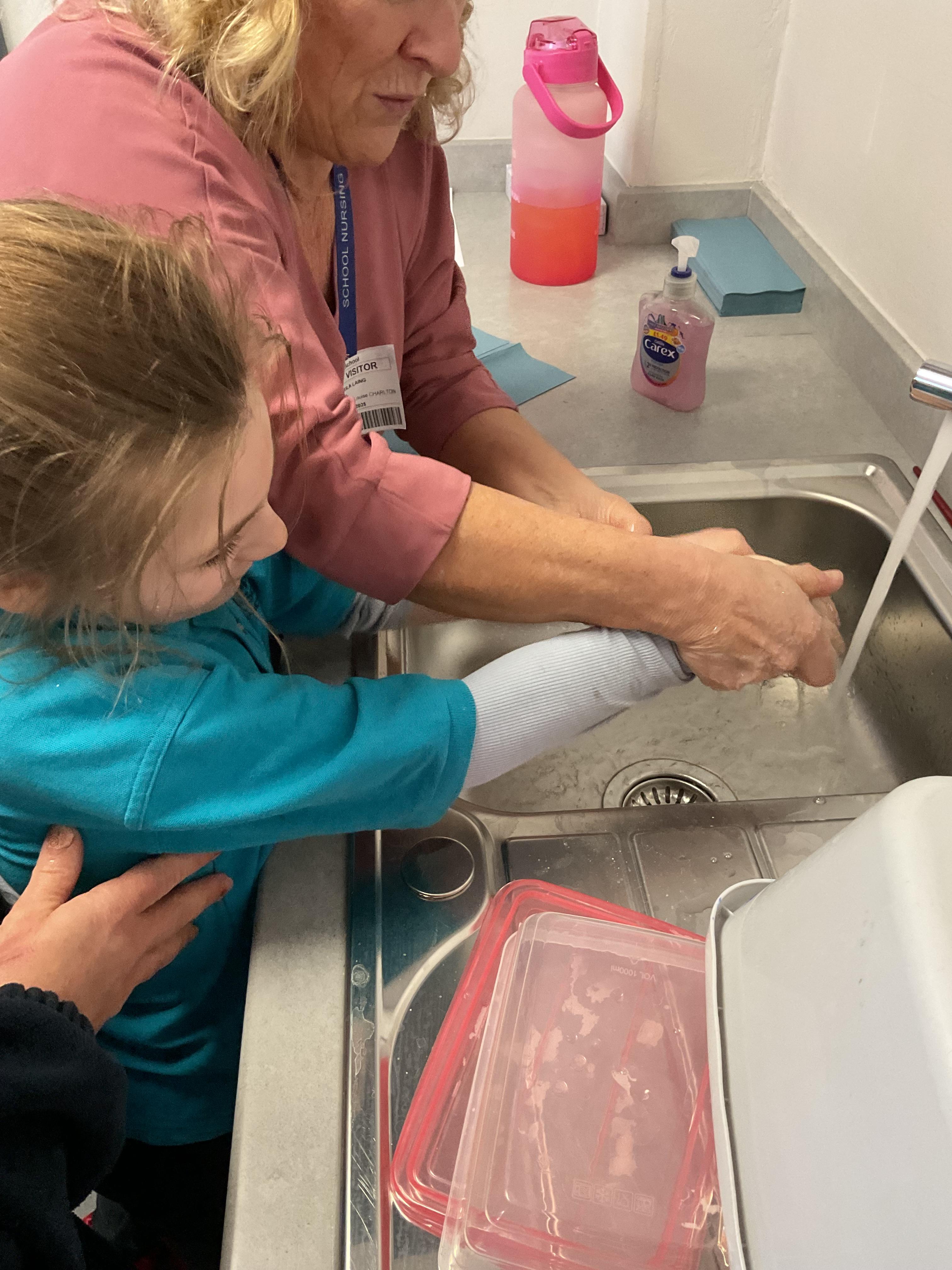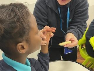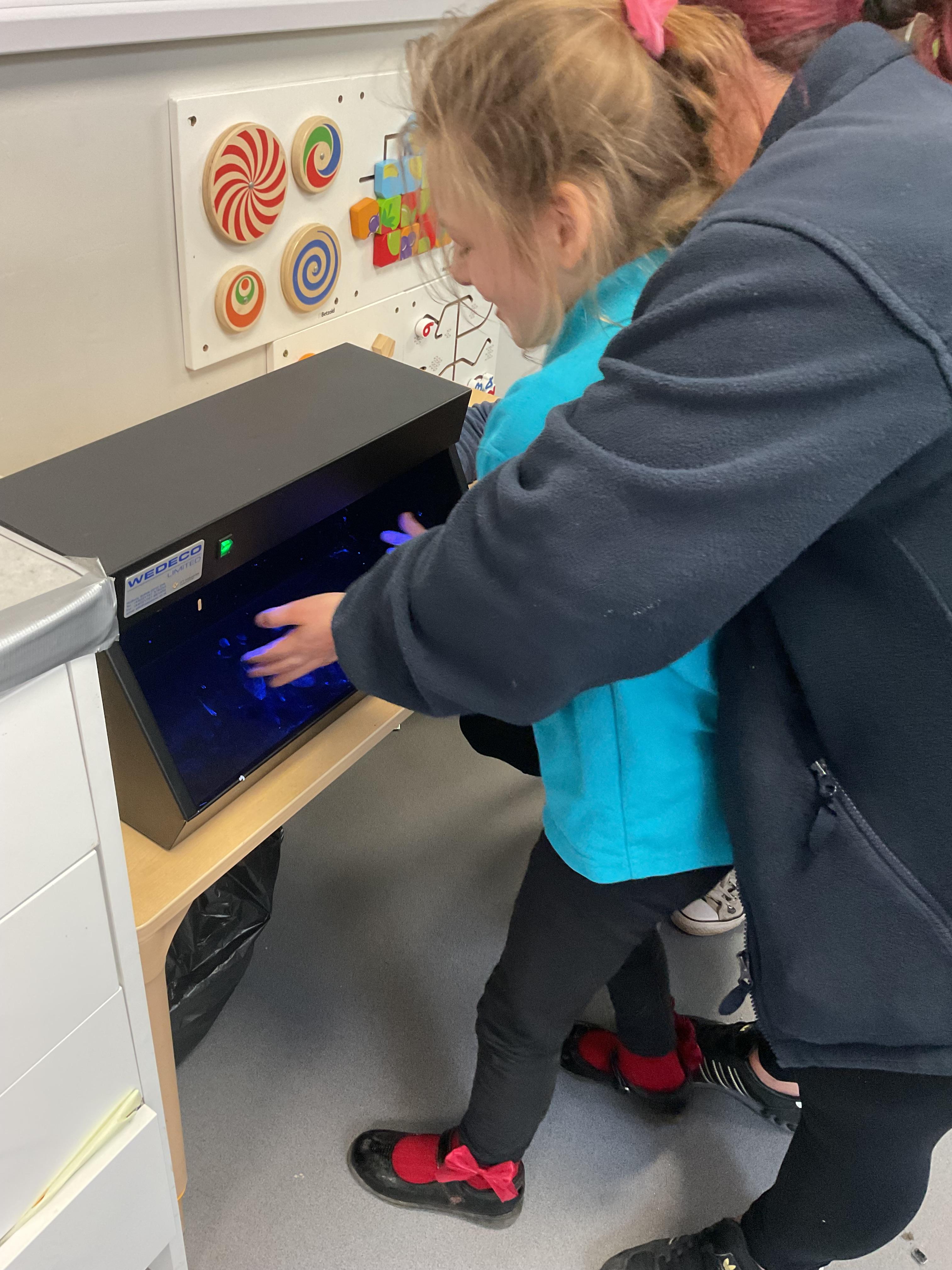 In PSHRE, we had a visit from the school nurse, we learnt the importance of hand washing and learnt to wash our hands correctly. We all listened to a story about a princess who needed to wash her hands, we then looked under the UV lamp to see the germs on our hands. We washed our hands and looked under the lamp again to see how clean they were. We all got a sticker for our hard work, well done Zebras!