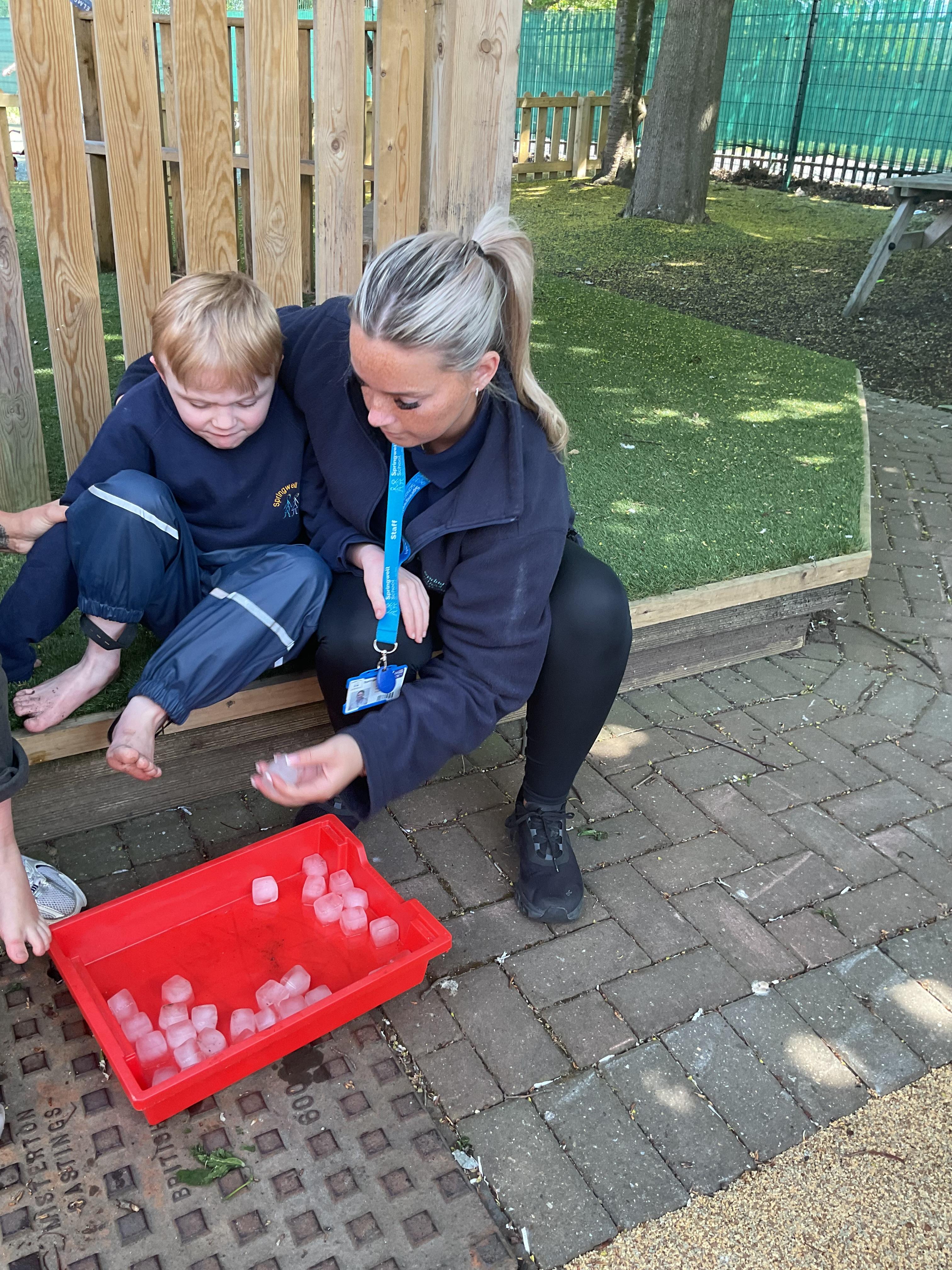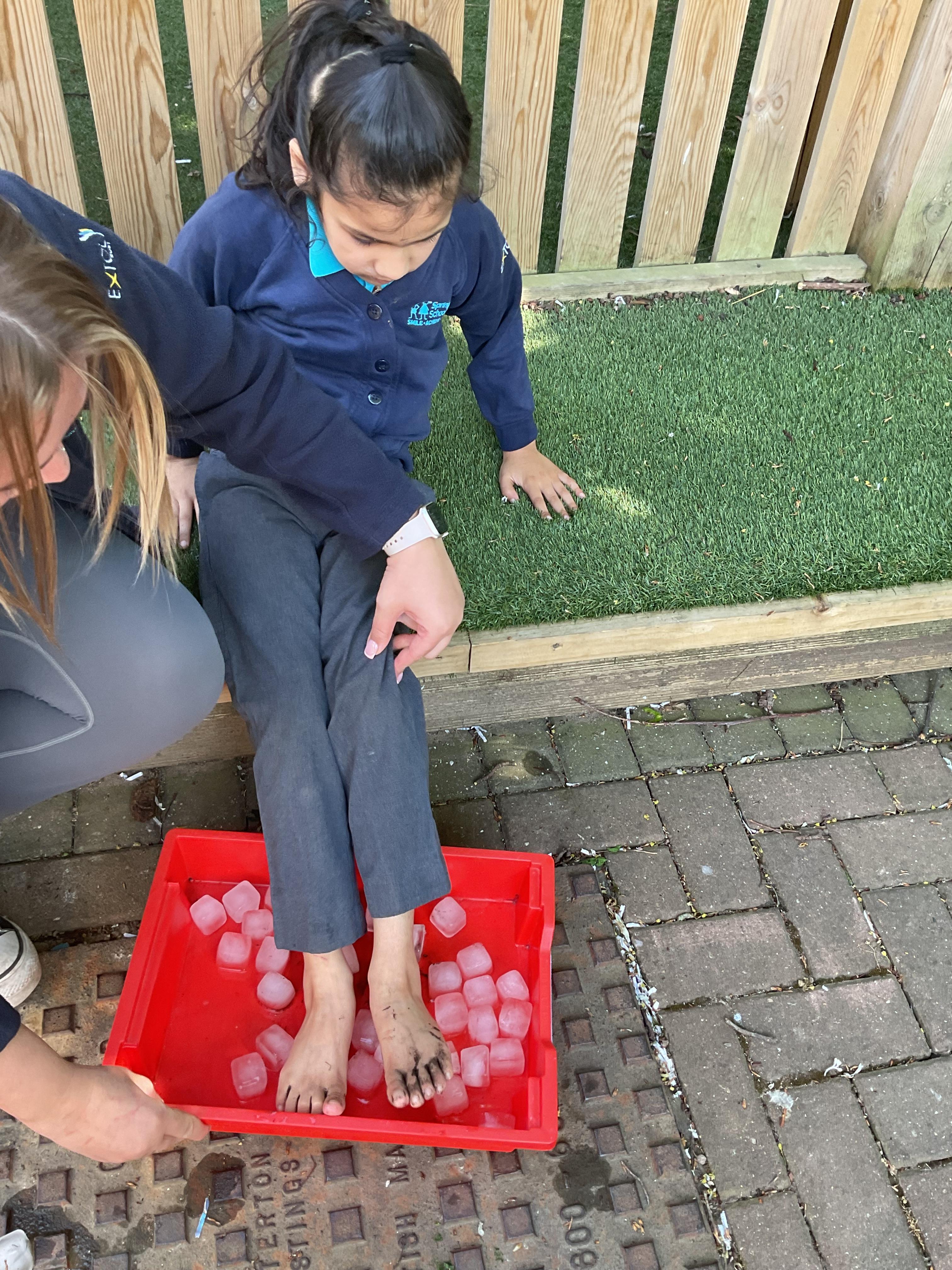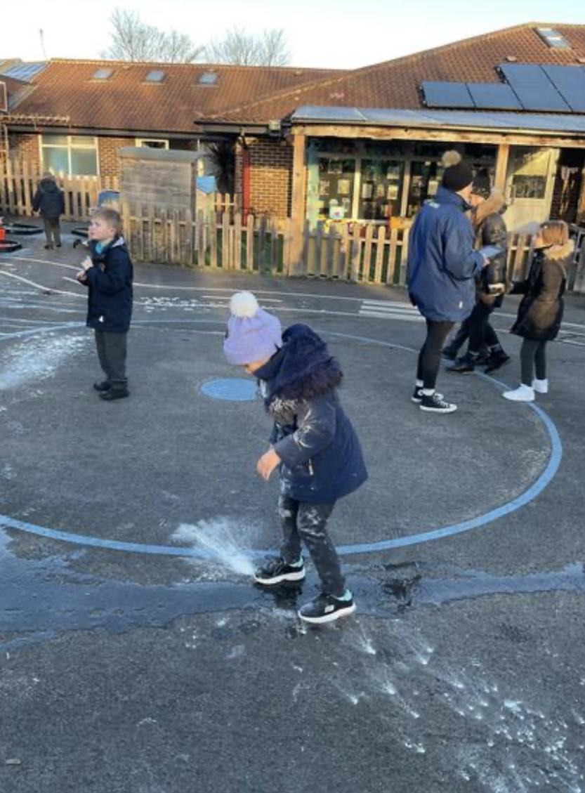 A lovely busy first week back, all children enjoyed settling back into school with their friends. We started the week exploring the colour purple in maths. All children improved their fine motor skills by painting with purple paint, gluing and sticking with purple pom-poms and drawing with purple crayons and pencils. Zebras made fabulous purple pictures! Zebras also enjoyed looking at their favourite story books, turning the pages of the books independently. We enjoyed a cold messy Wednesday assembly outside, relating to our new Extreme Earth topic. All children engaged in playing with the ice and some children even made snow angels in the flour! We finished the week with a rebound session, where the zebras shared lots of smiles and giggles.