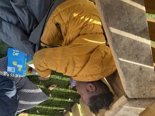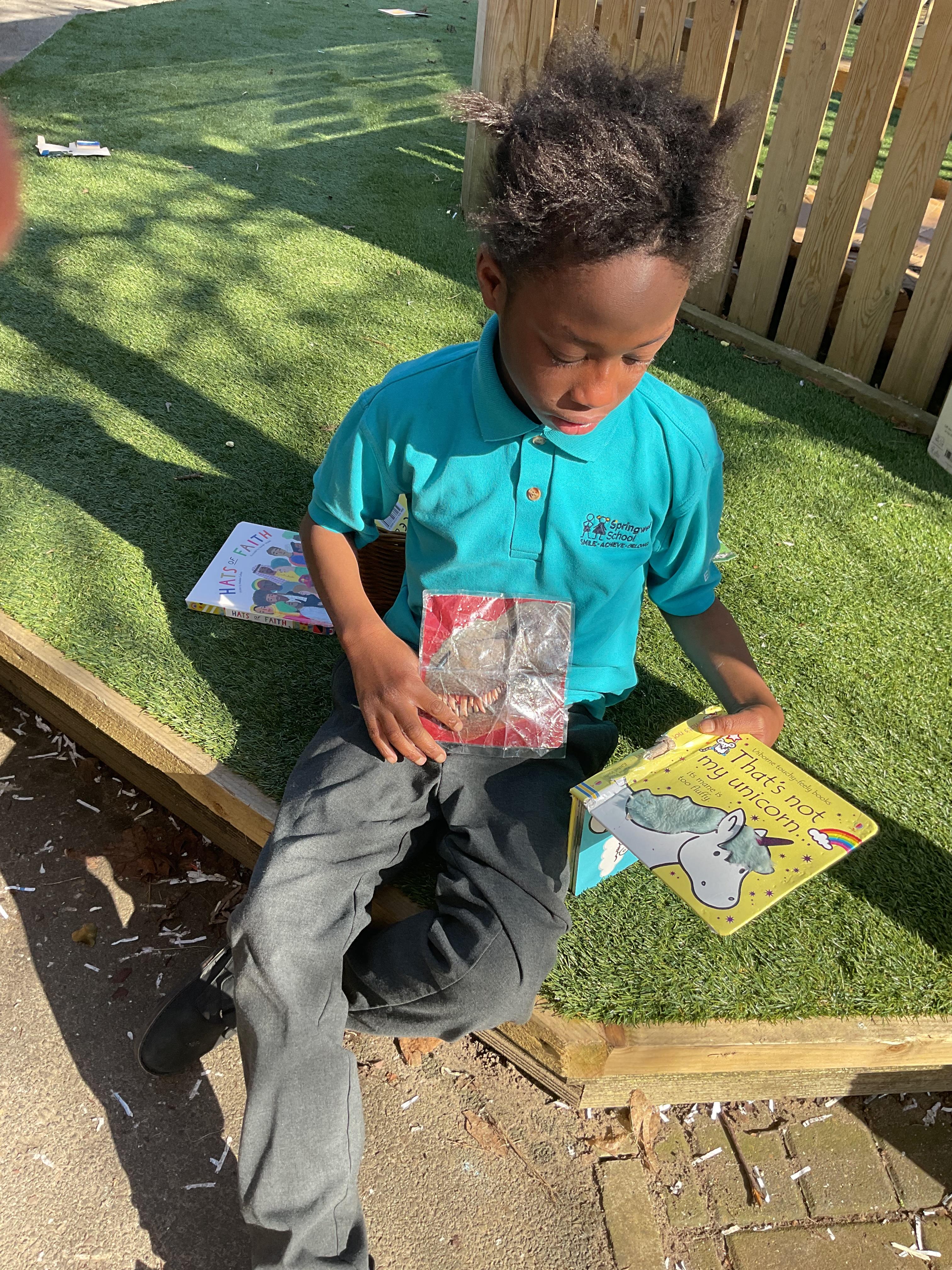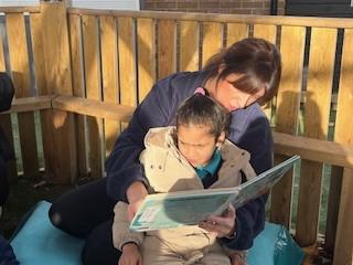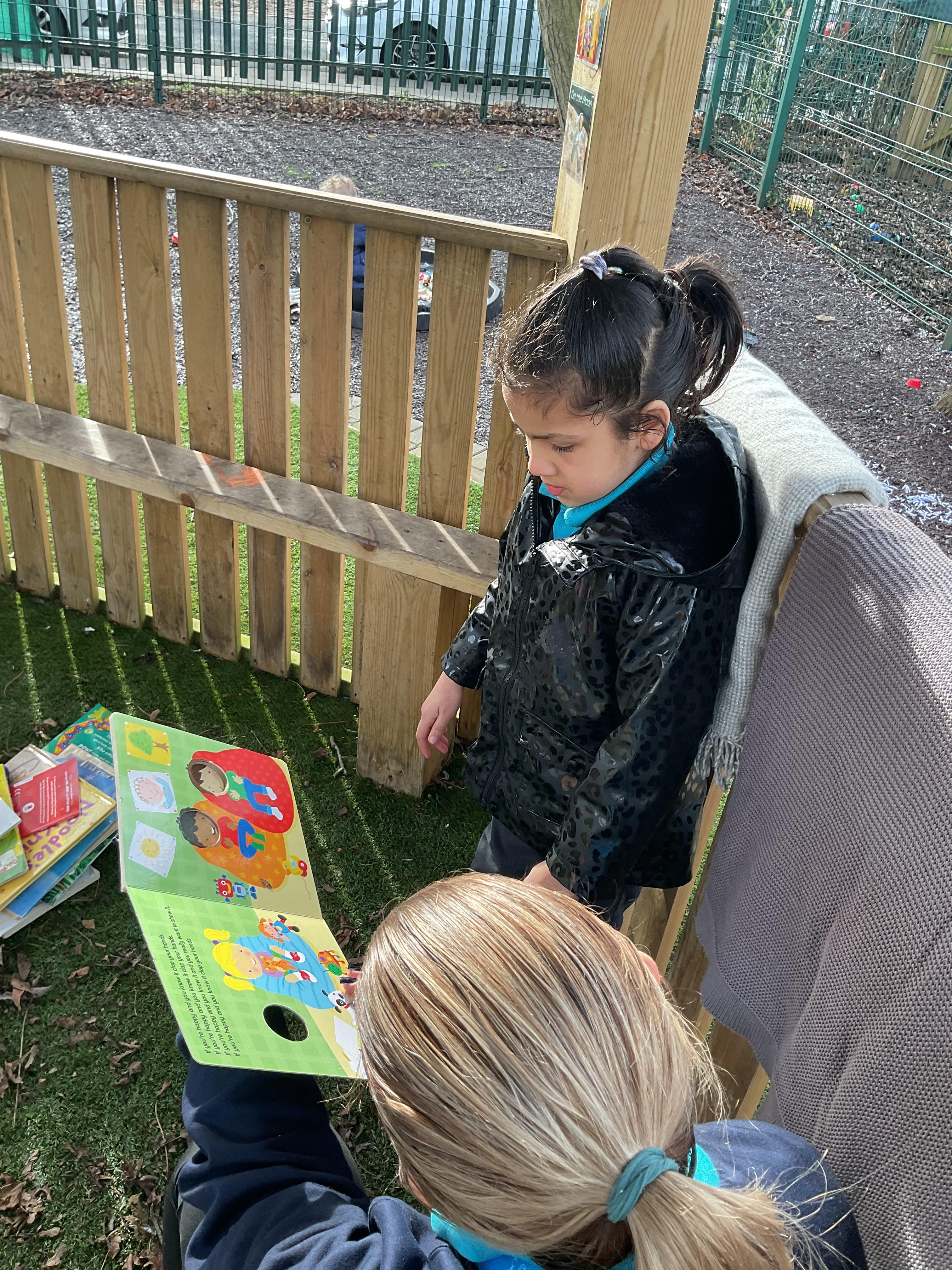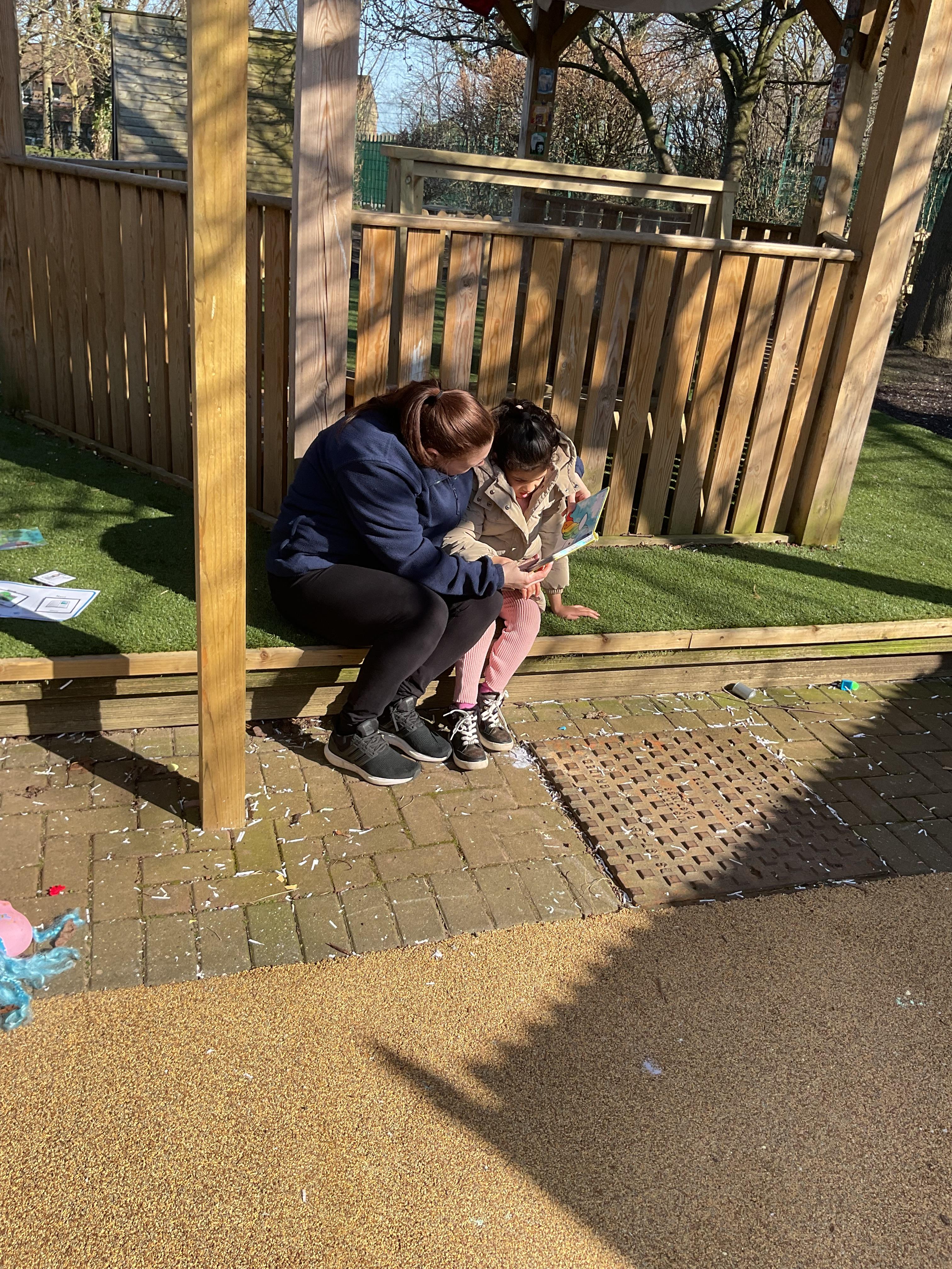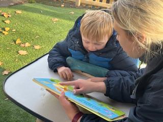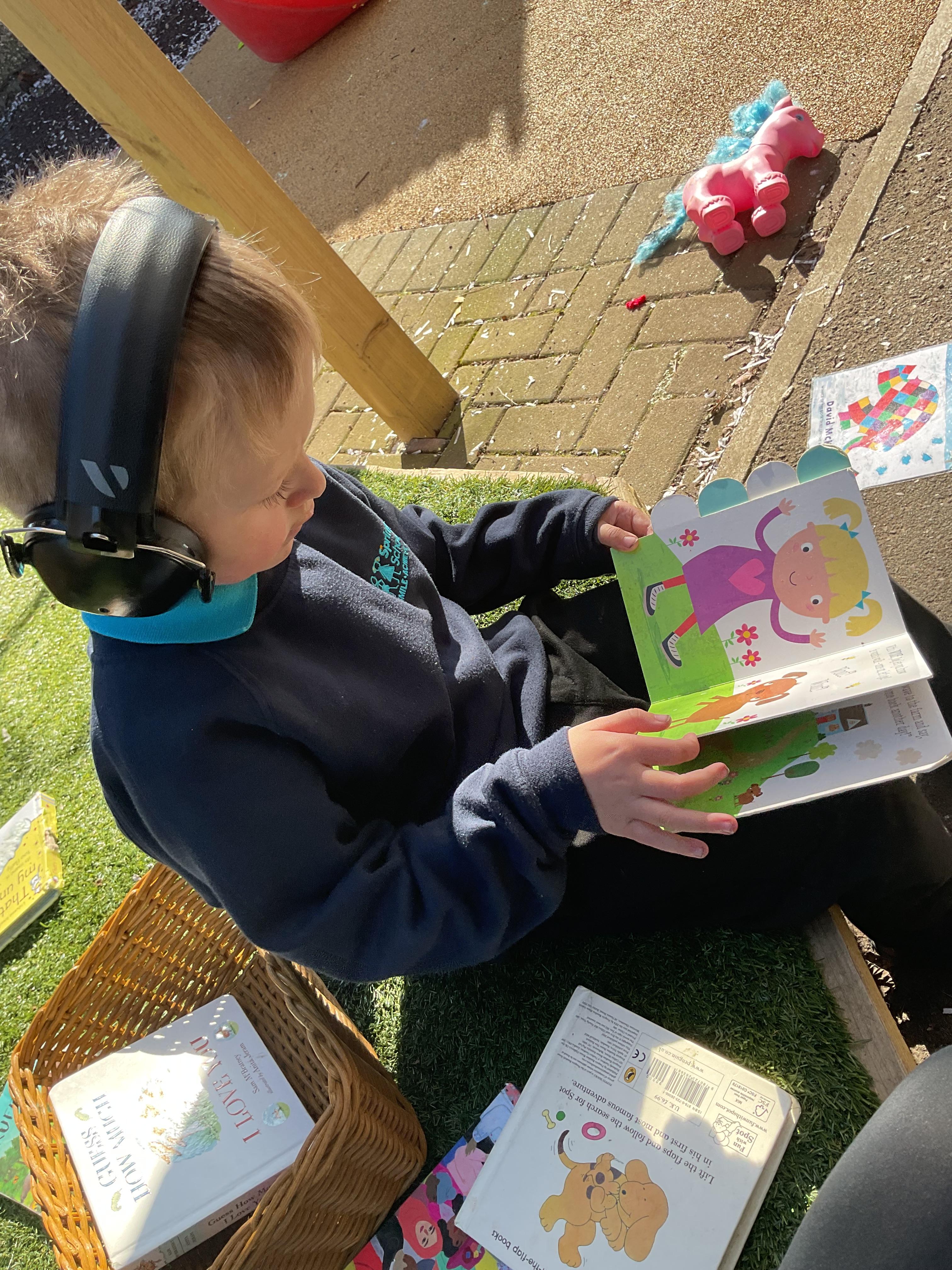 Today, we went outside to read and explore some texts together. We absolutely loved it. We all chose a different text and had a cosy time reading on our cushions. We enjoyed turning the pages, looking at the pictures and listening to our adult read the words to us. We are already looking forward to next time.