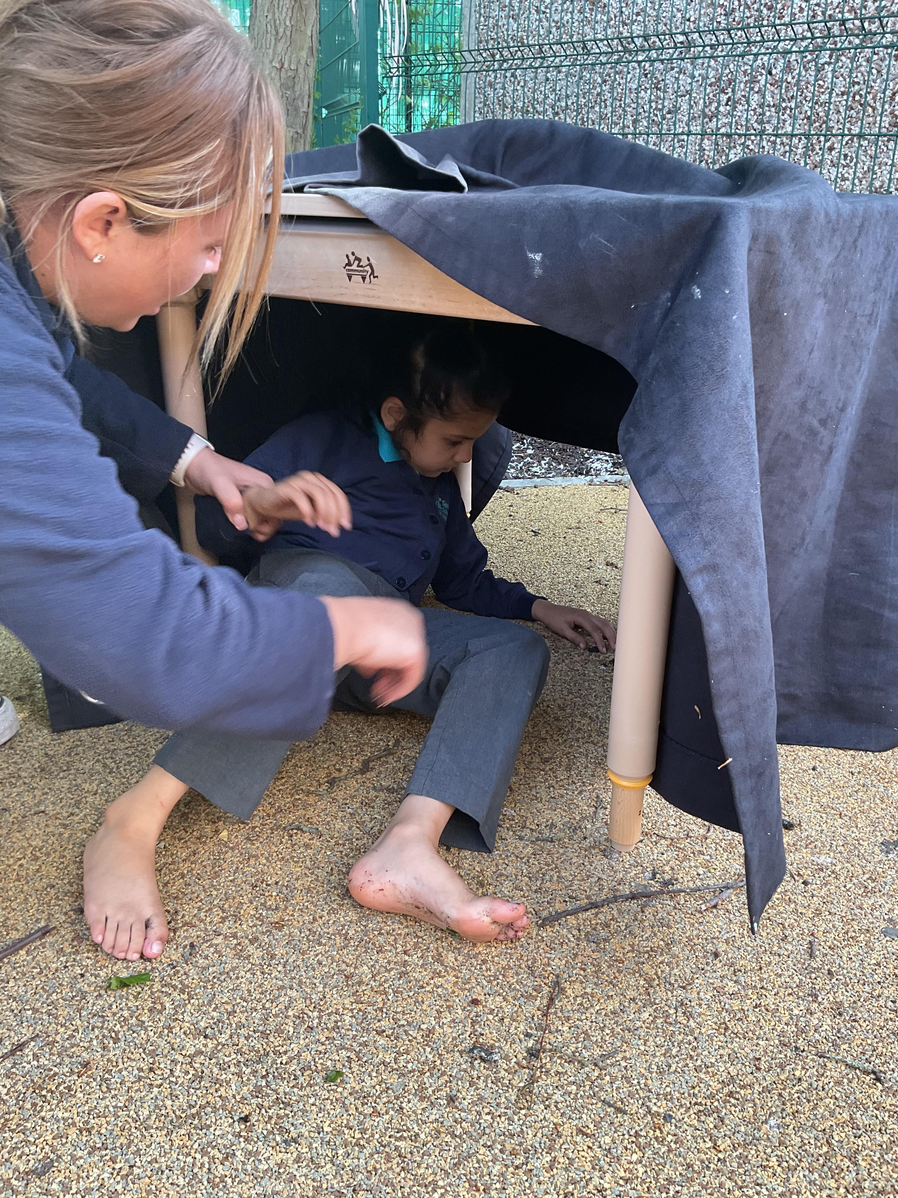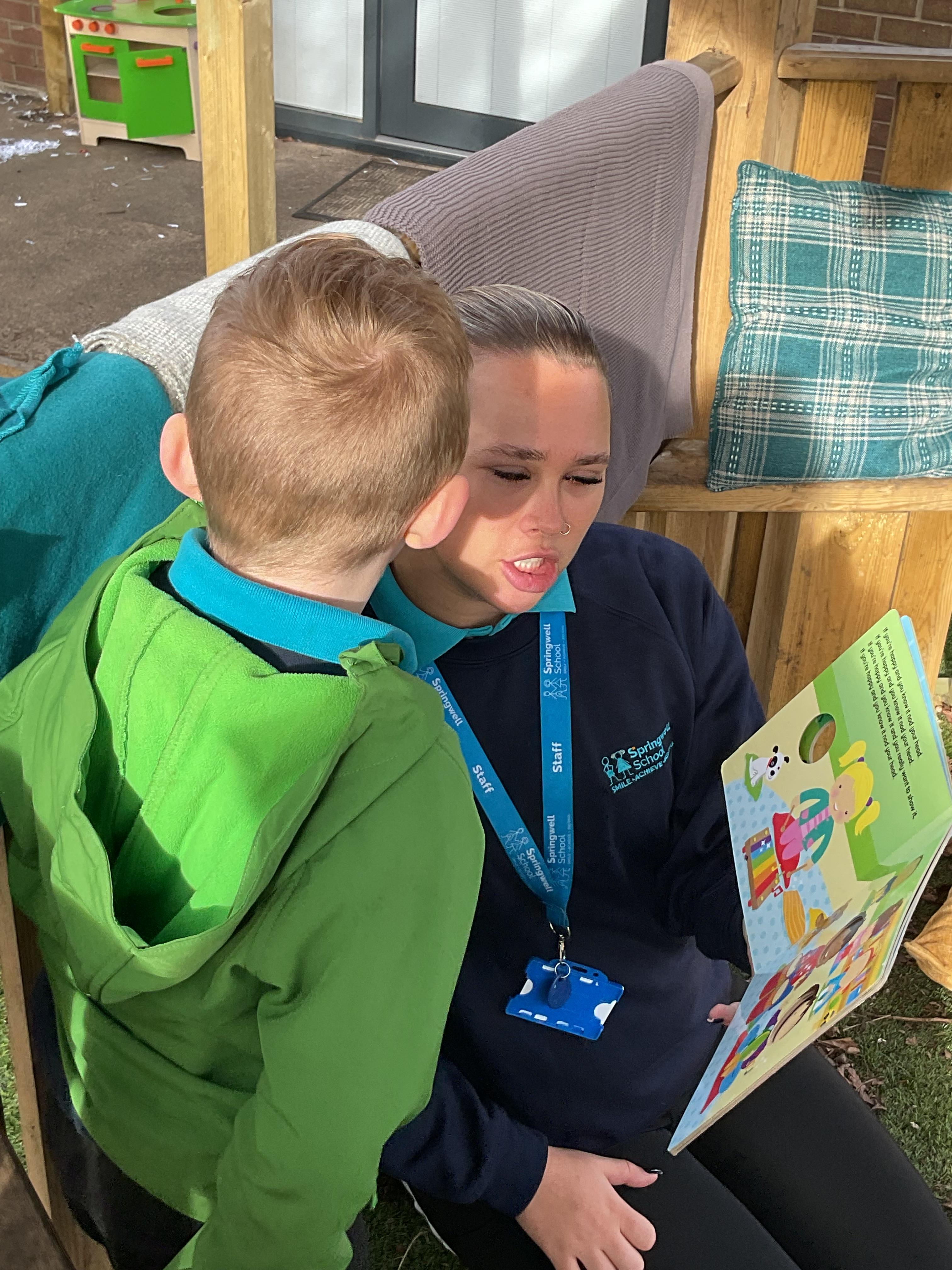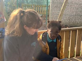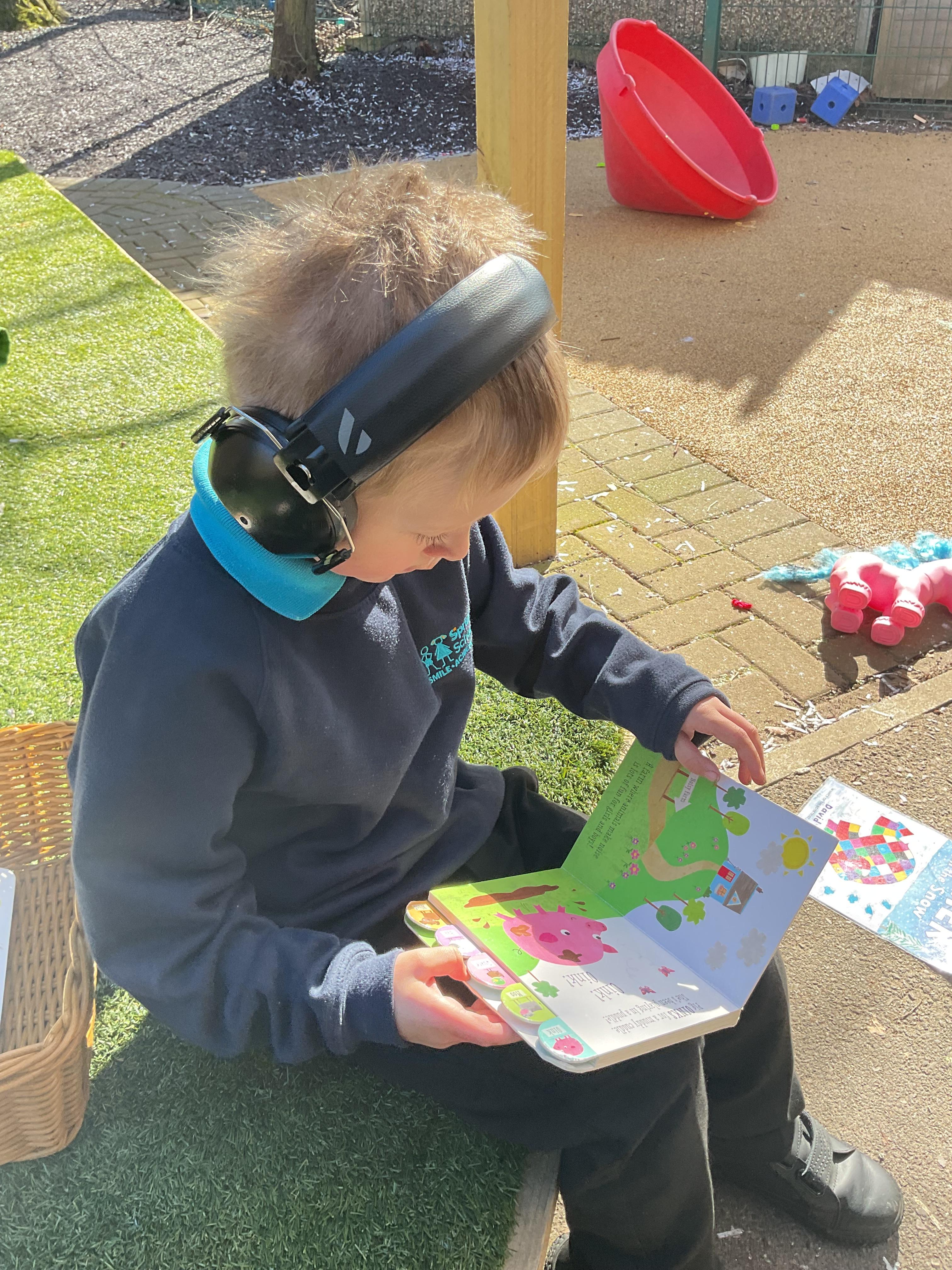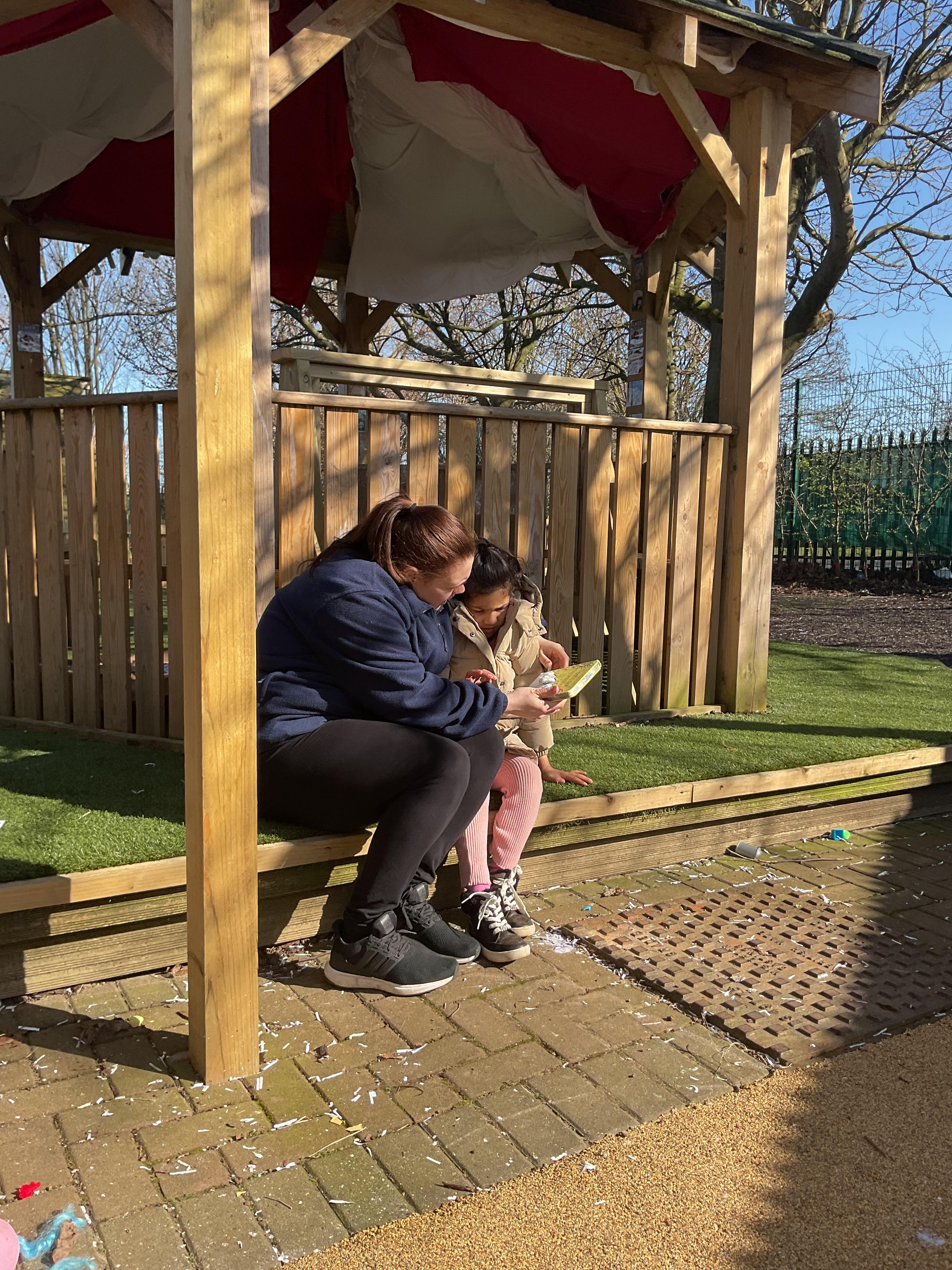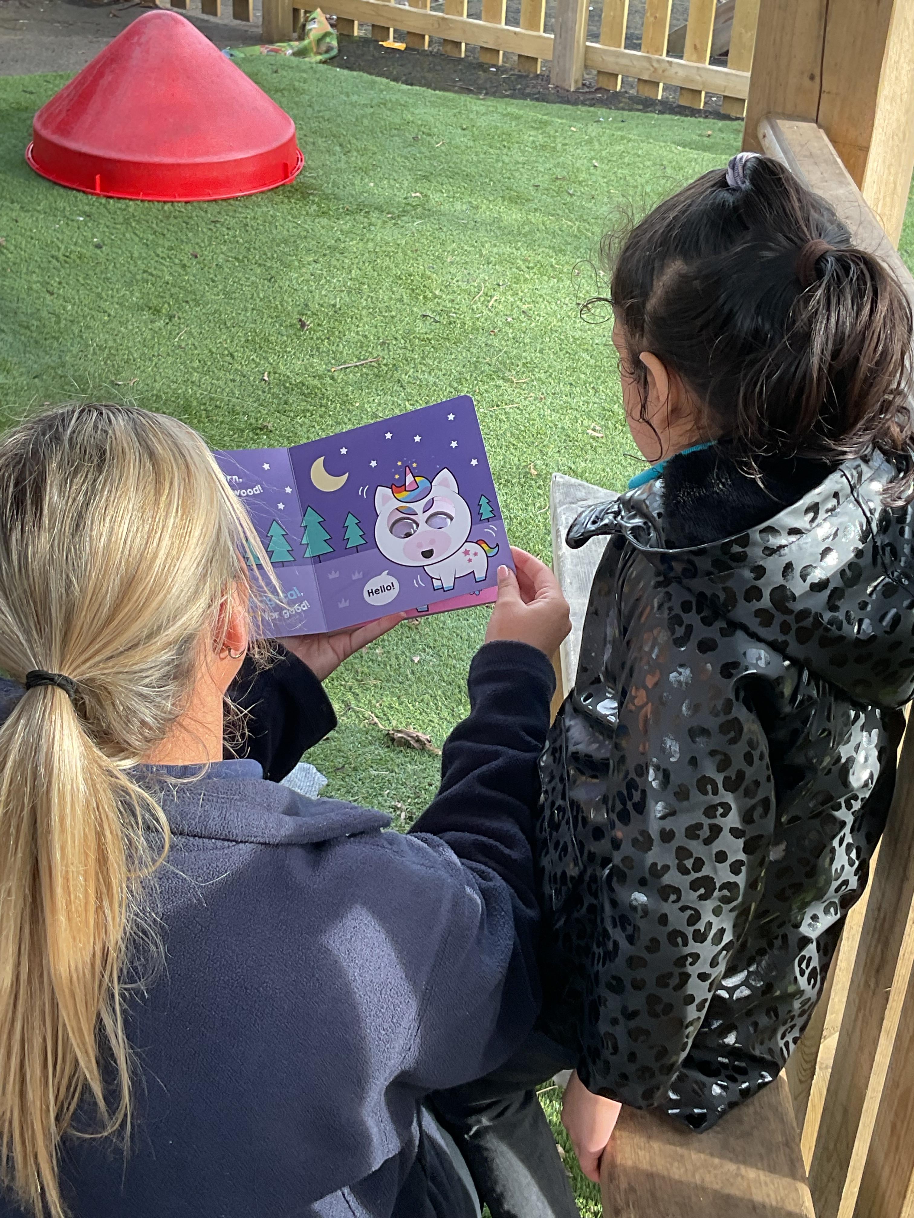 Today, we went outside to read and explore some texts together. We absolutely loved it. We all chose a different text and had a cosy time reading on our cushions. We enjoyed turning the pages, looking at the pictures and listening to our adult read the words to us. We are already looking forward to next time.