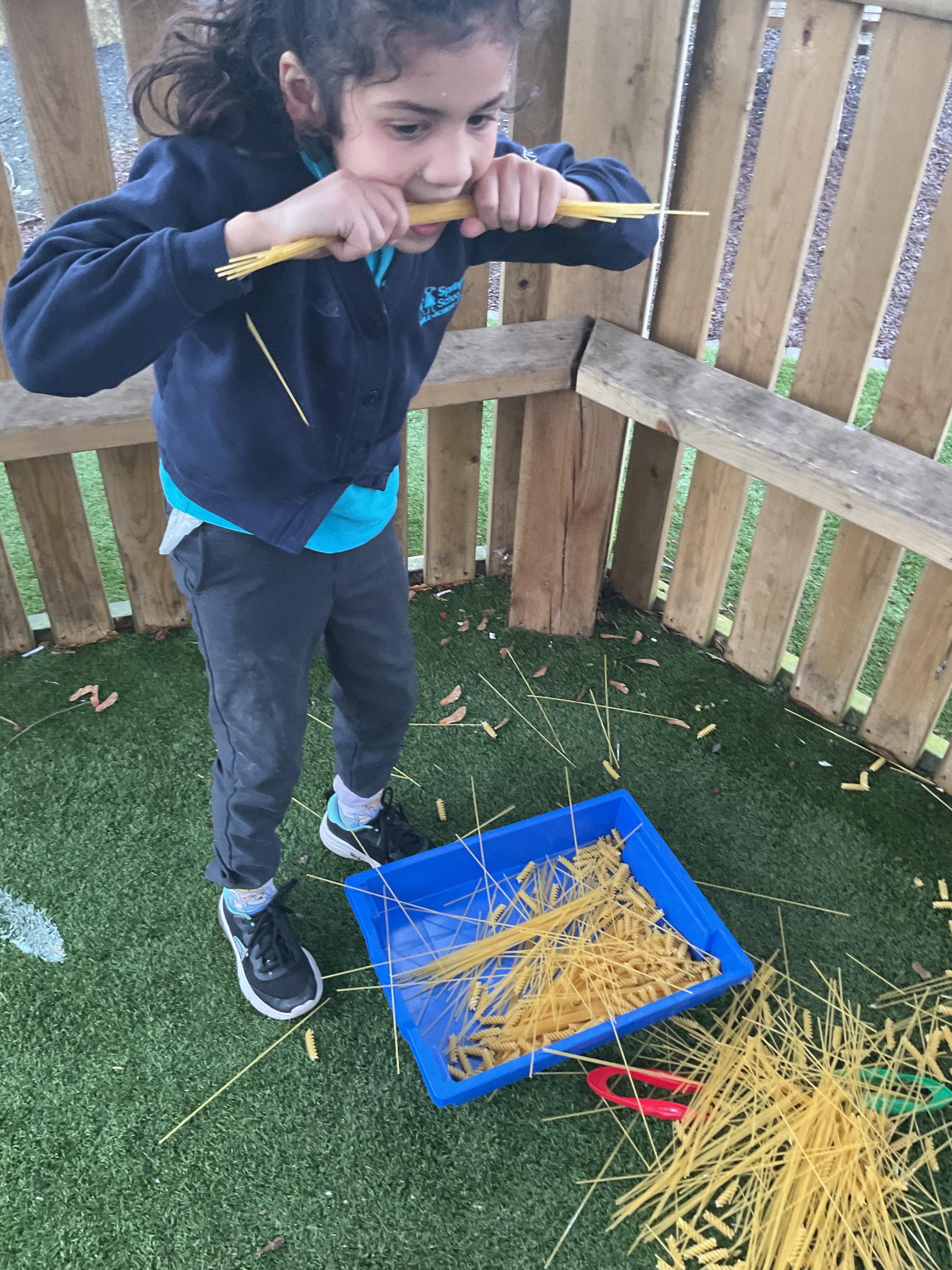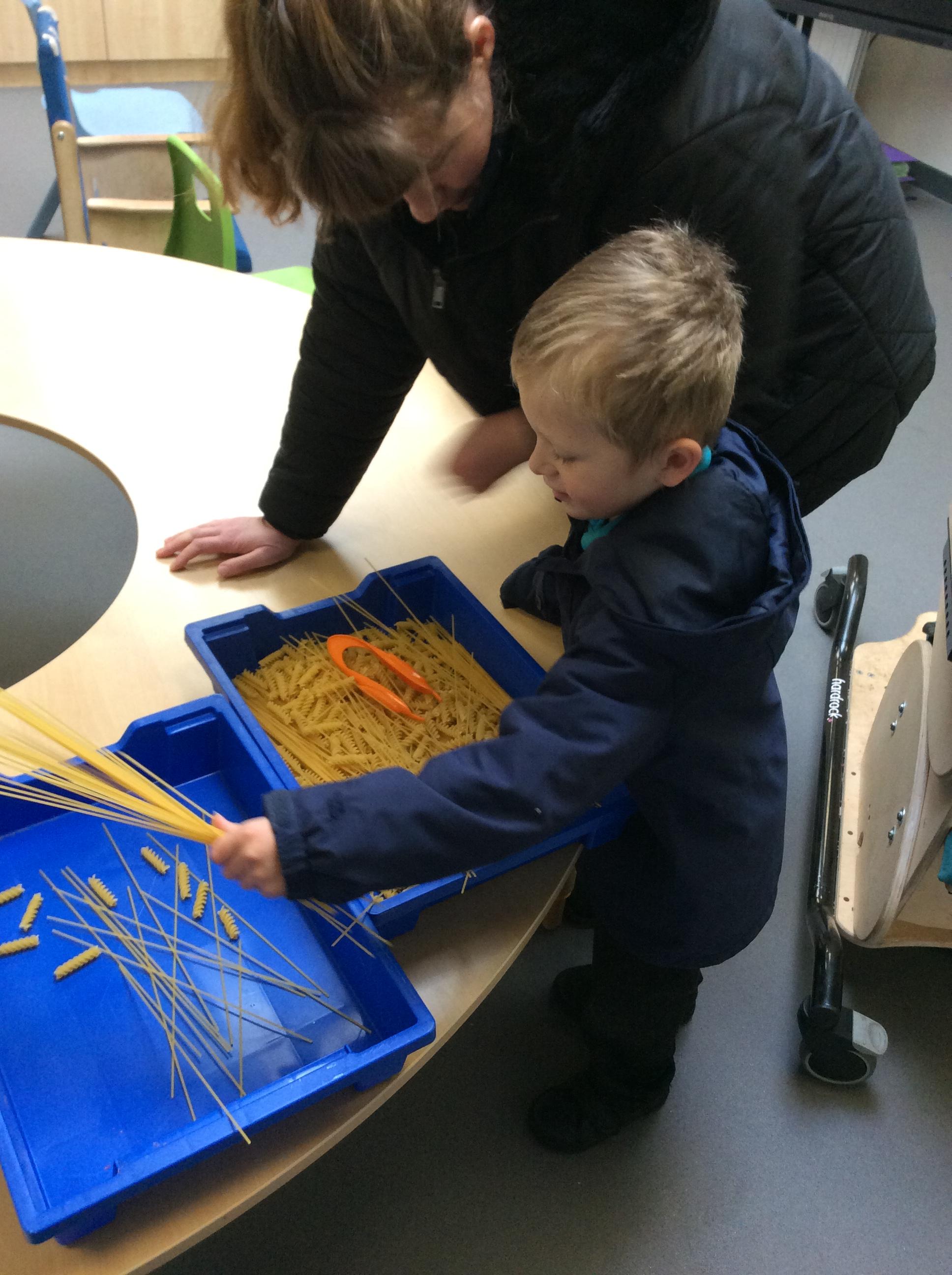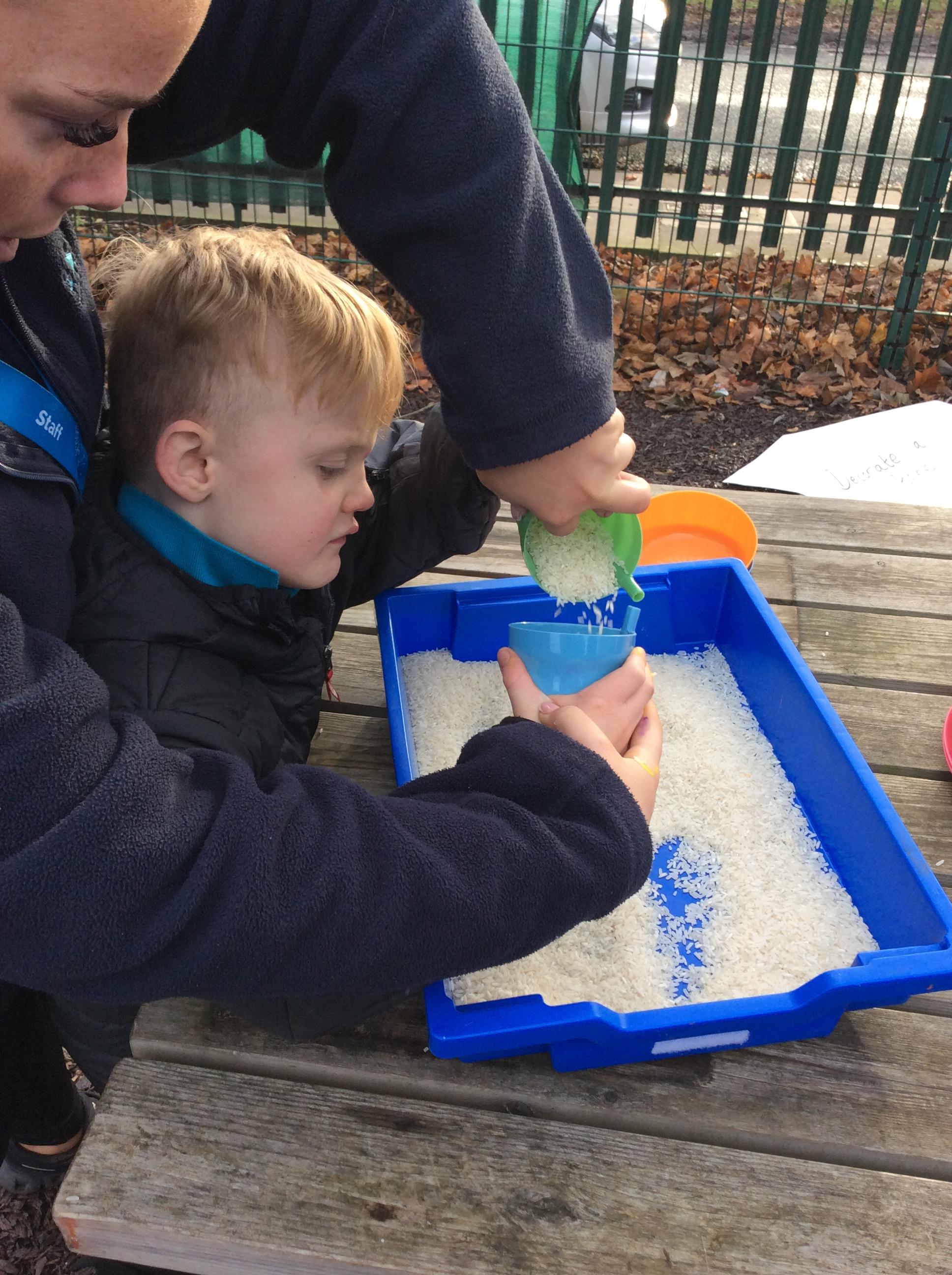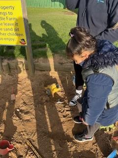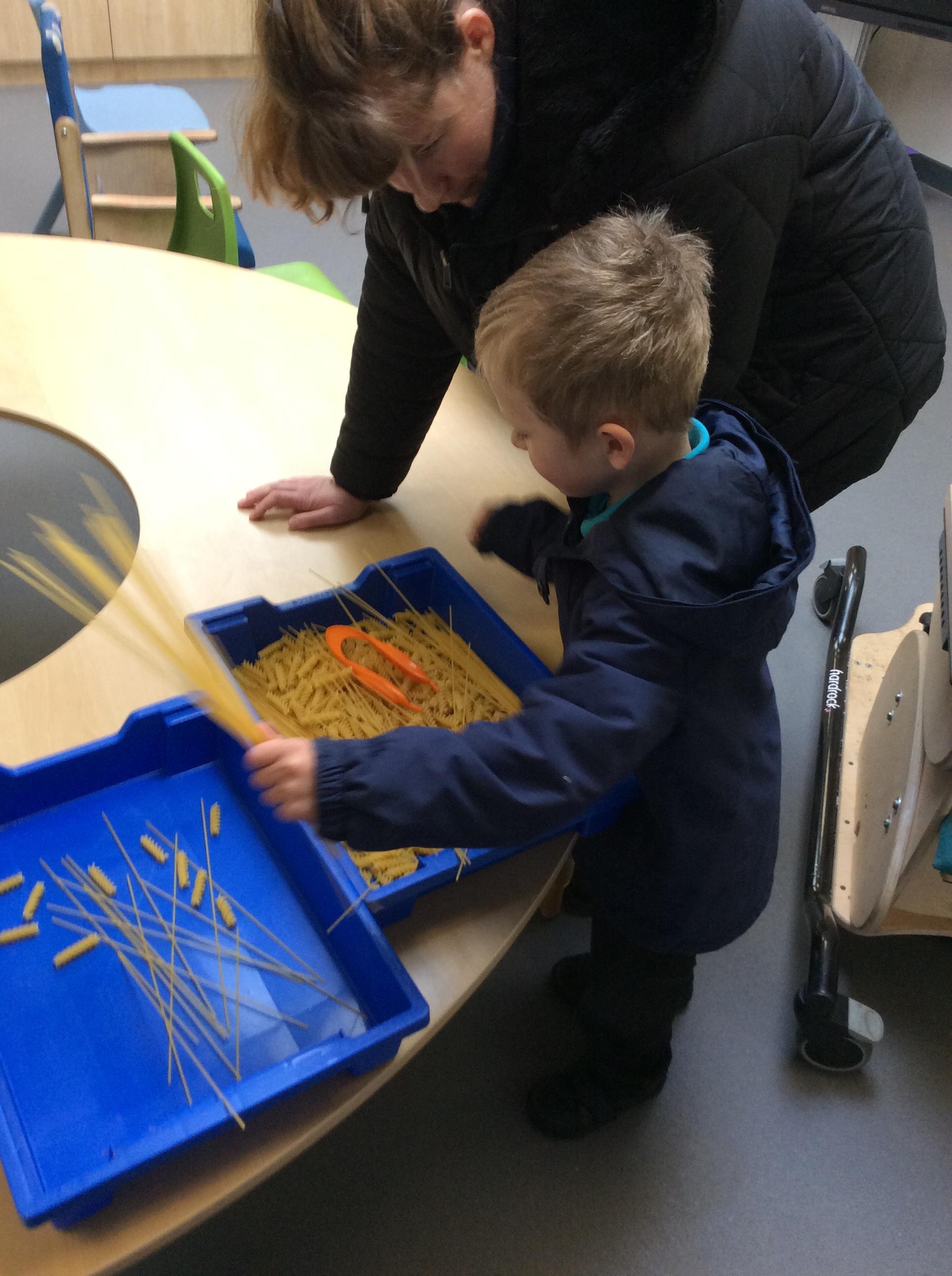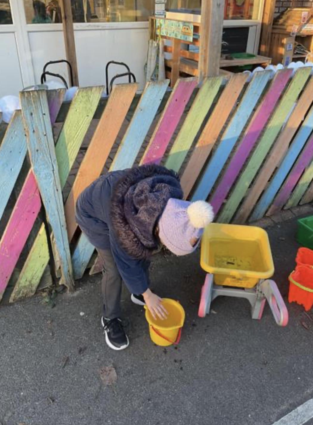 Today, we went outside to investigate Maths. We explored some colour, our pouring skills, our matching skills and our sorting skills. It was very cold and a bit messy but we all had a fantastic time.