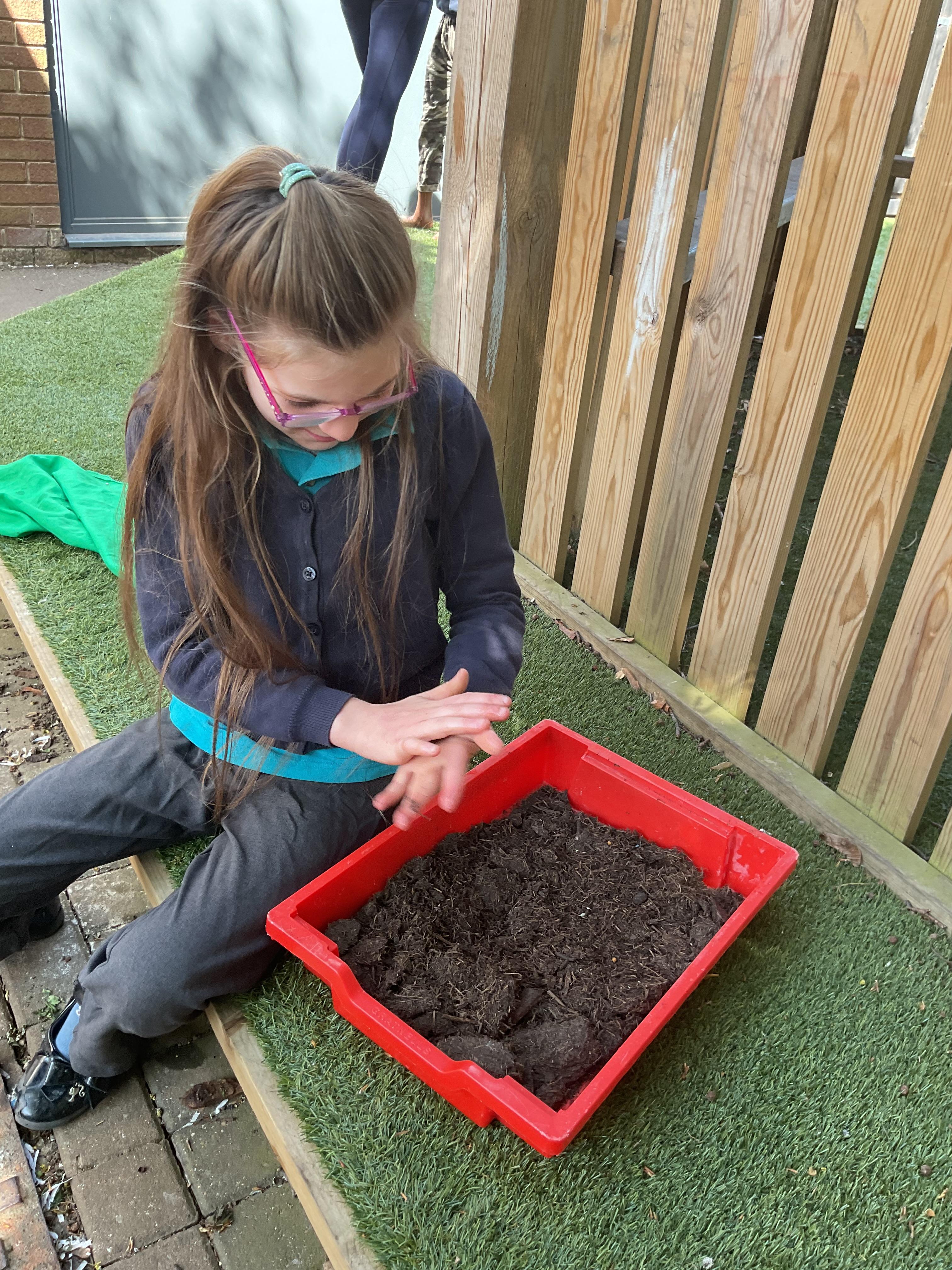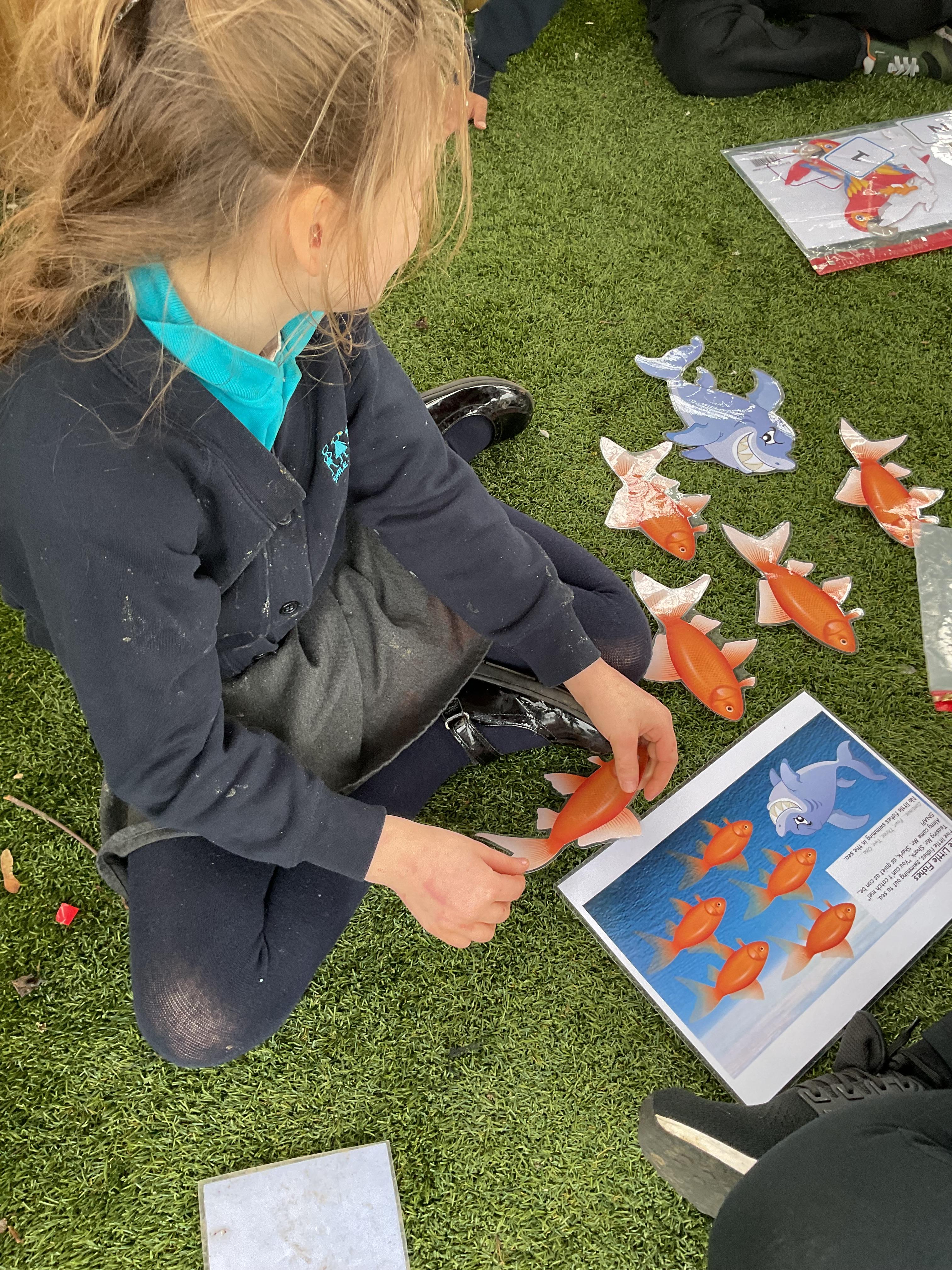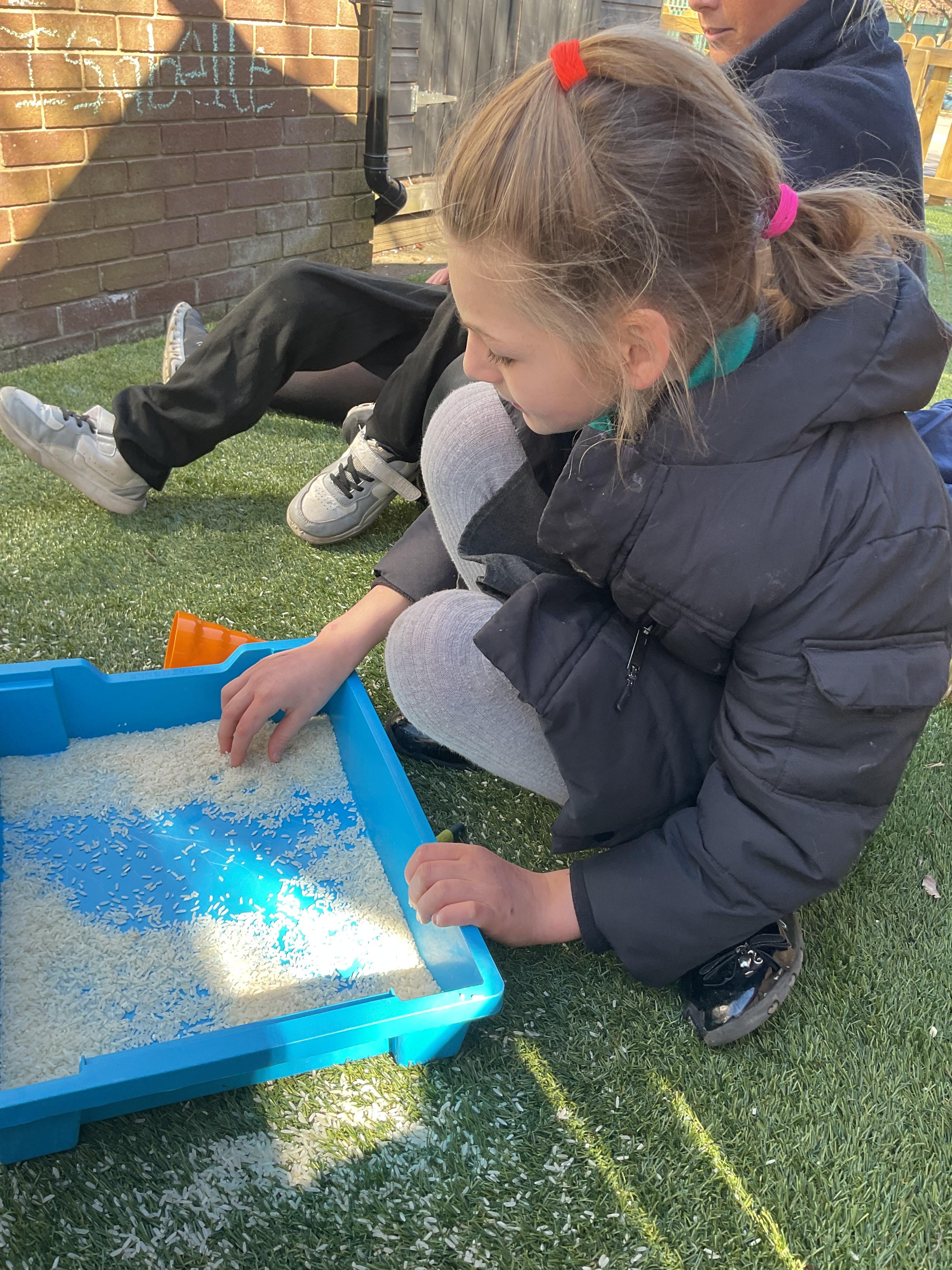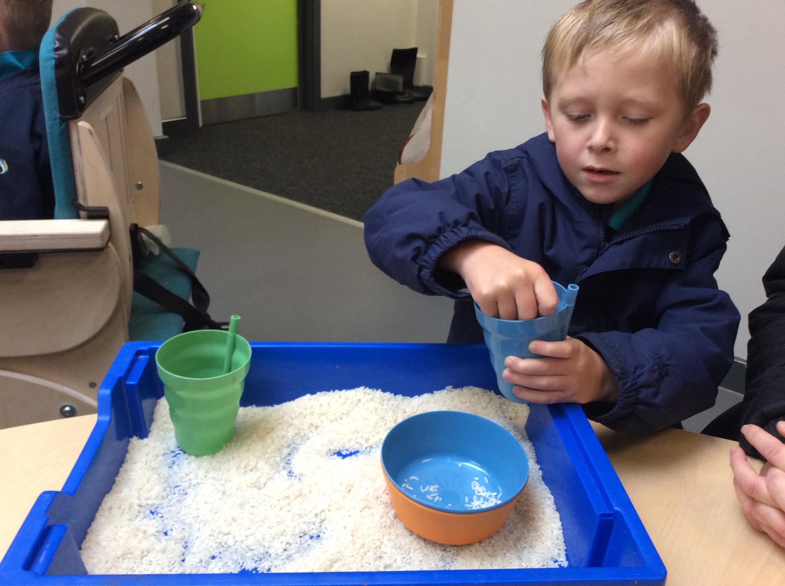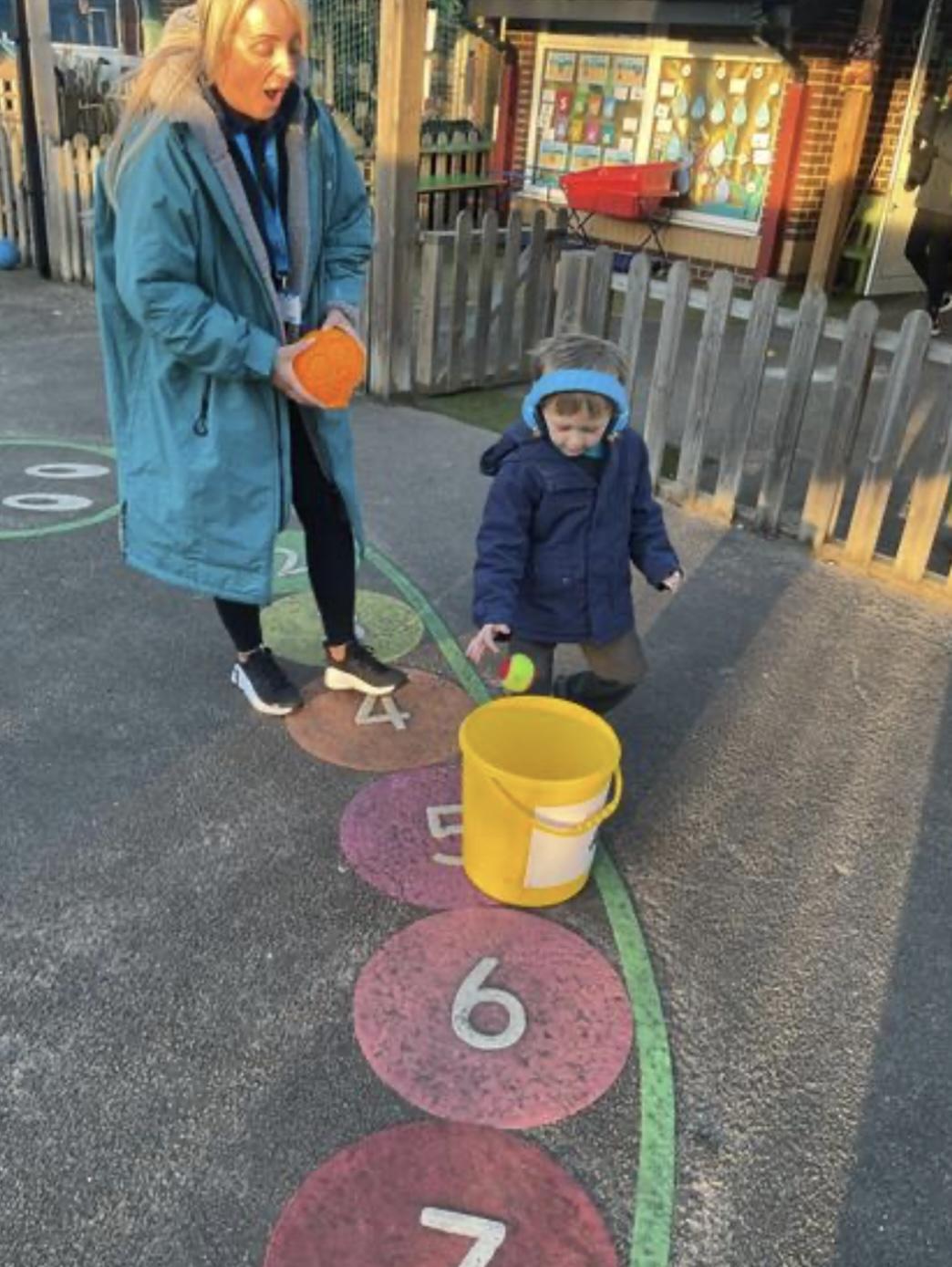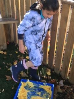 Today, we went outside to investigate Maths. We explored some colour, our pouring skills, our matching skills and our sorting skills. It was very cold and a bit messy but we all had a fantastic time.