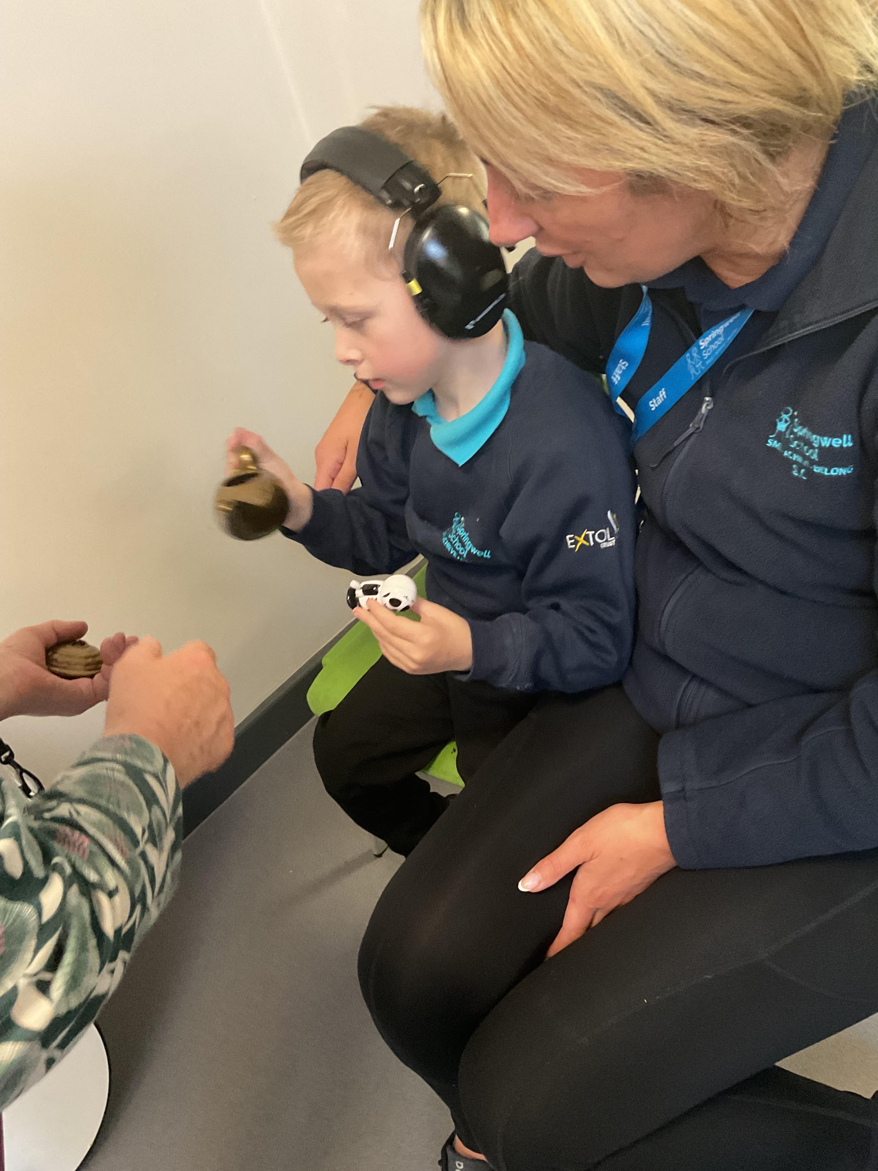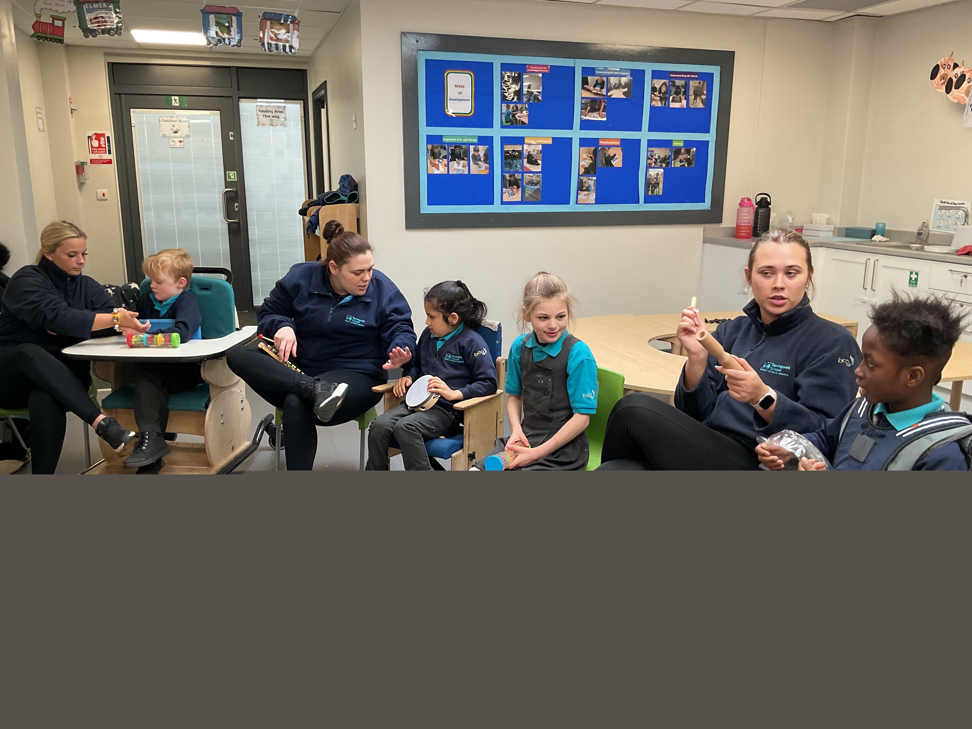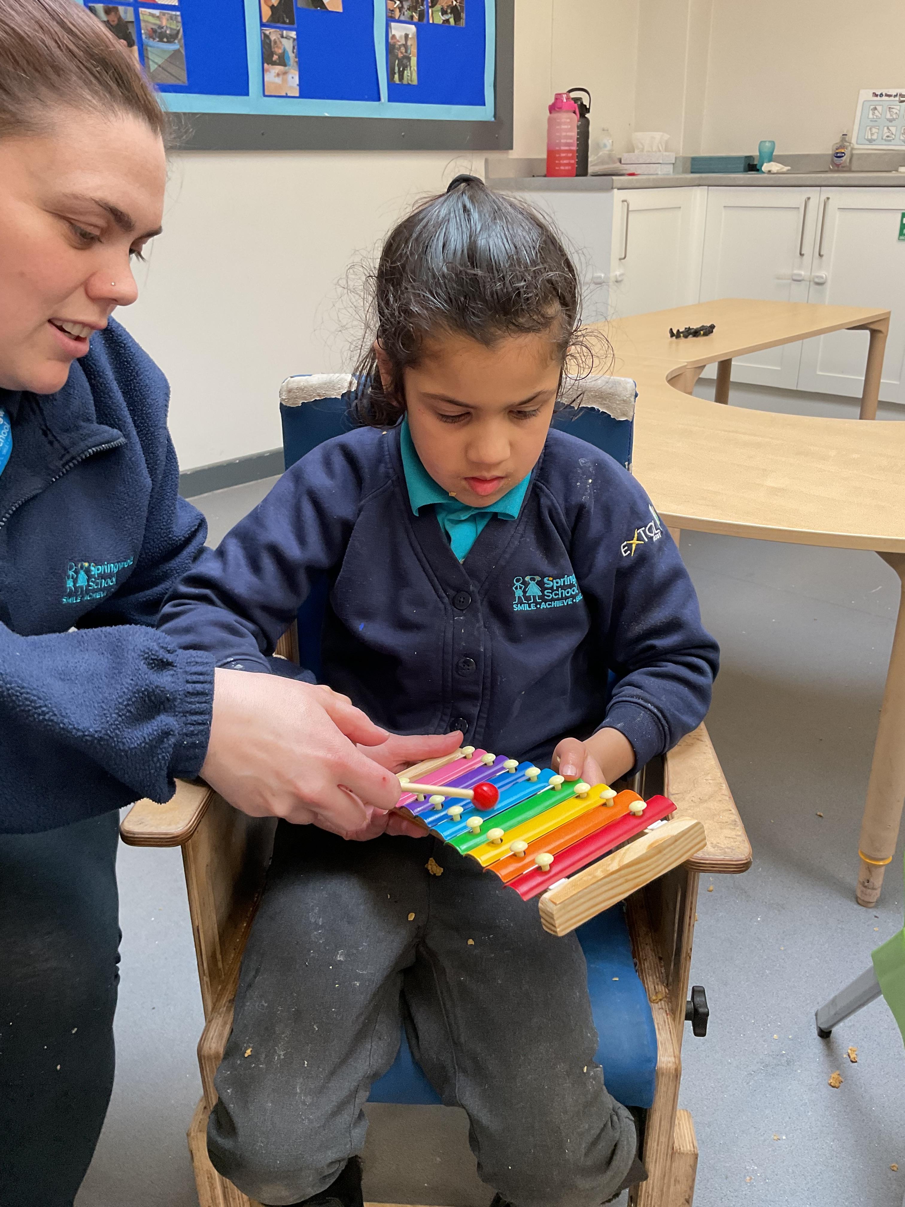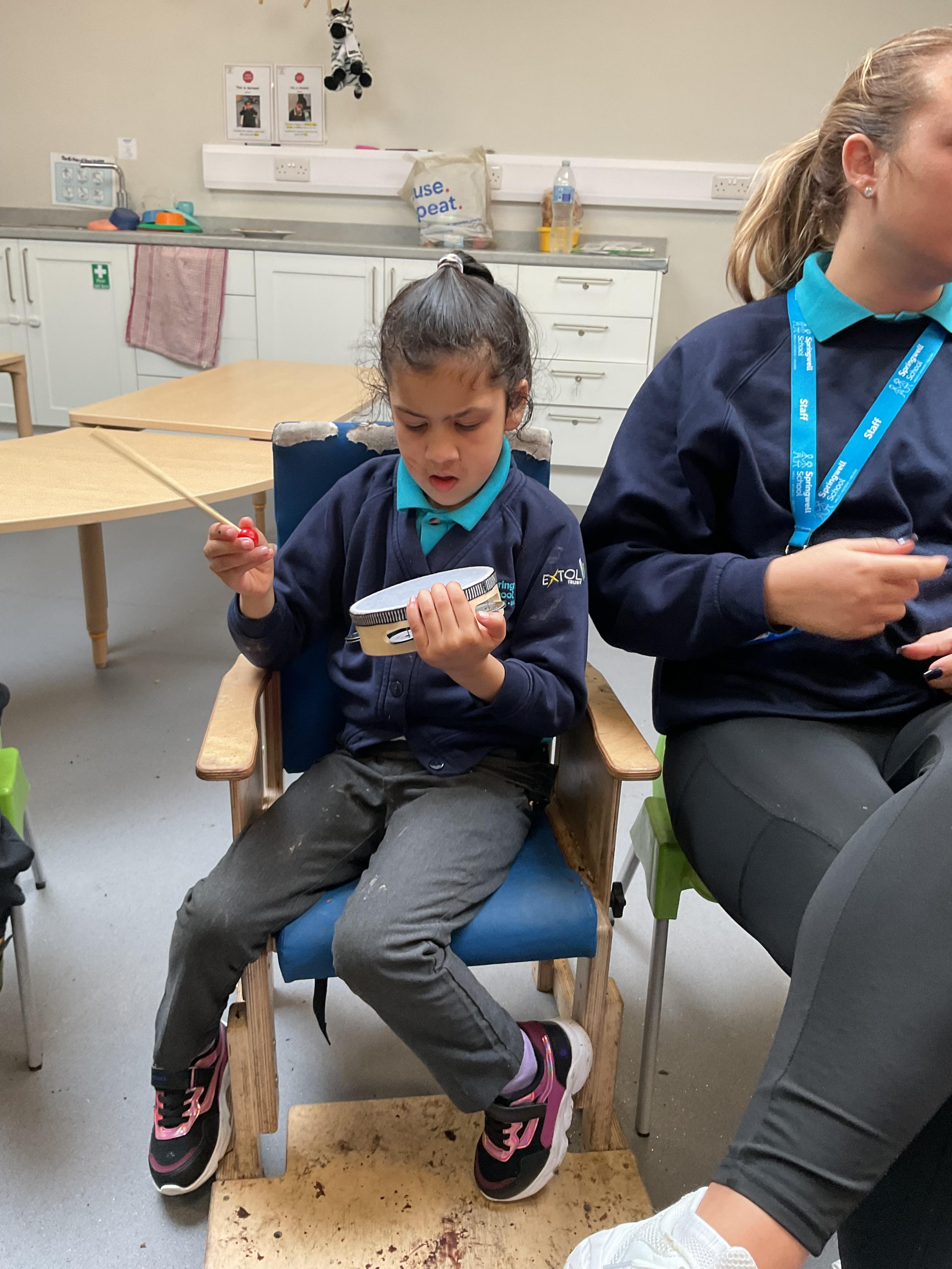 Today, we had a music session in school. We do this regularly in Zebra class. We used the musical instruments to make some sounds and we played some music alongside to accompany us. We enjoyed making lots of noise and we had lots of fun sharing the instruments. We used our voices to sing along too.