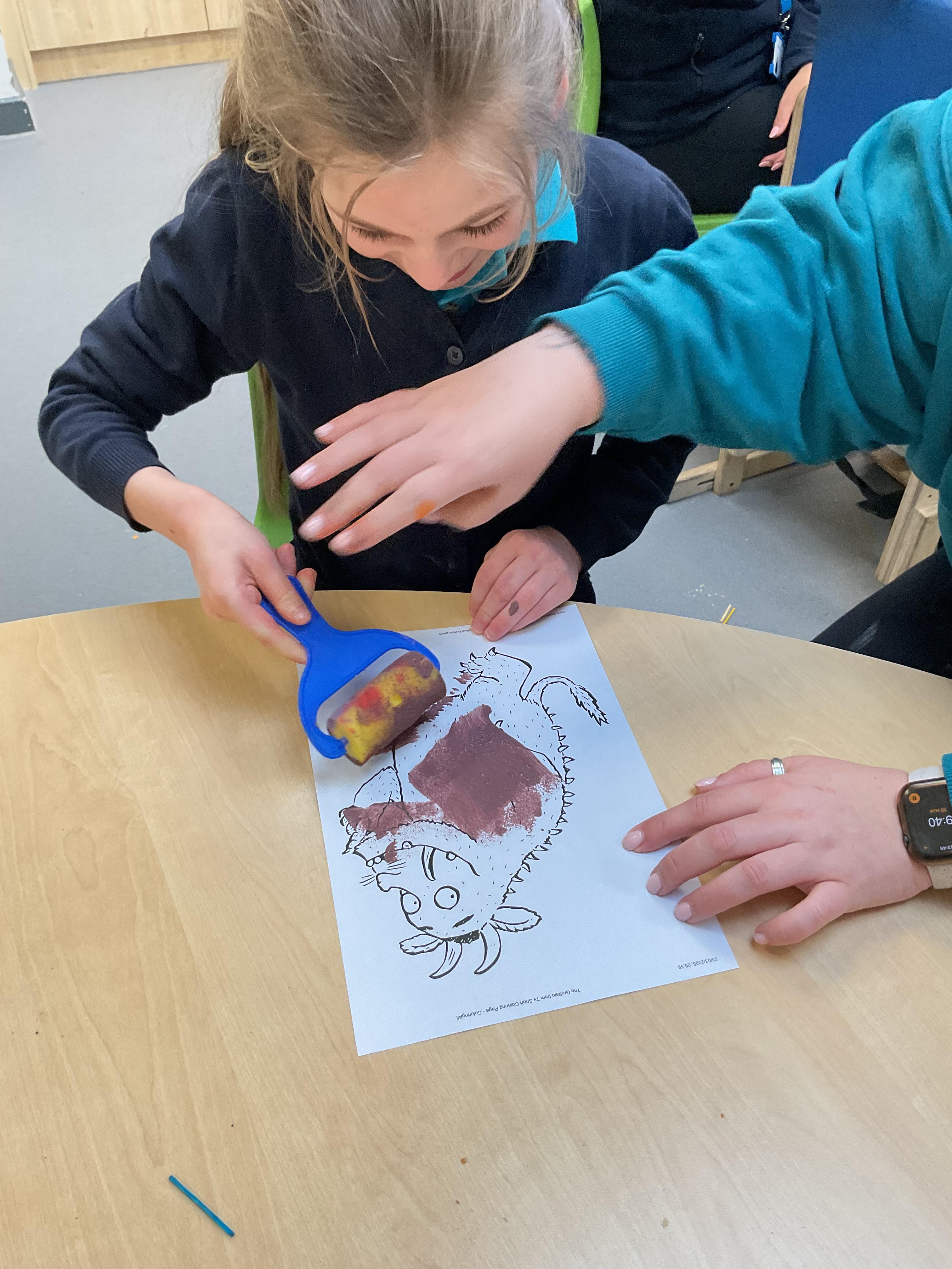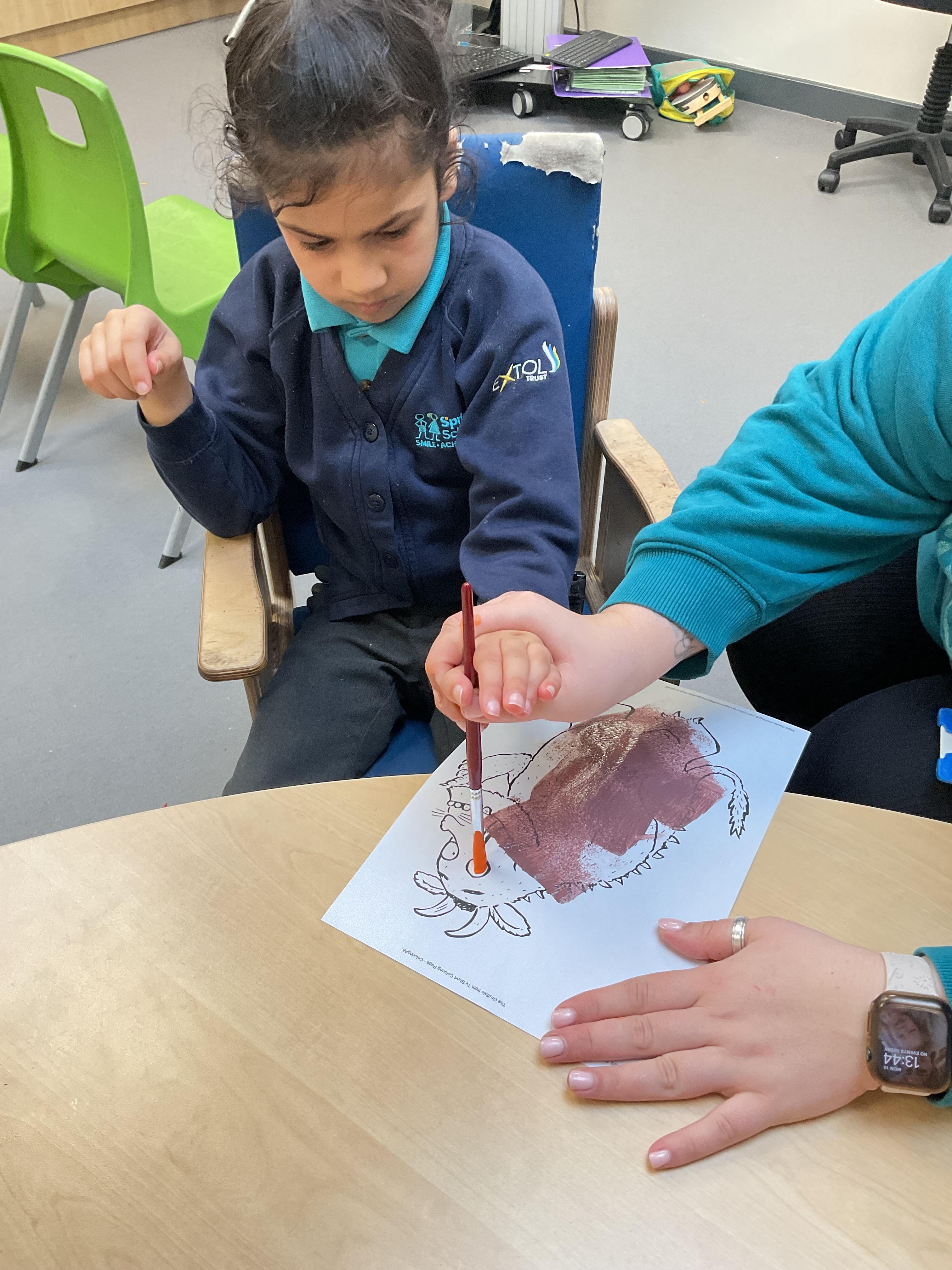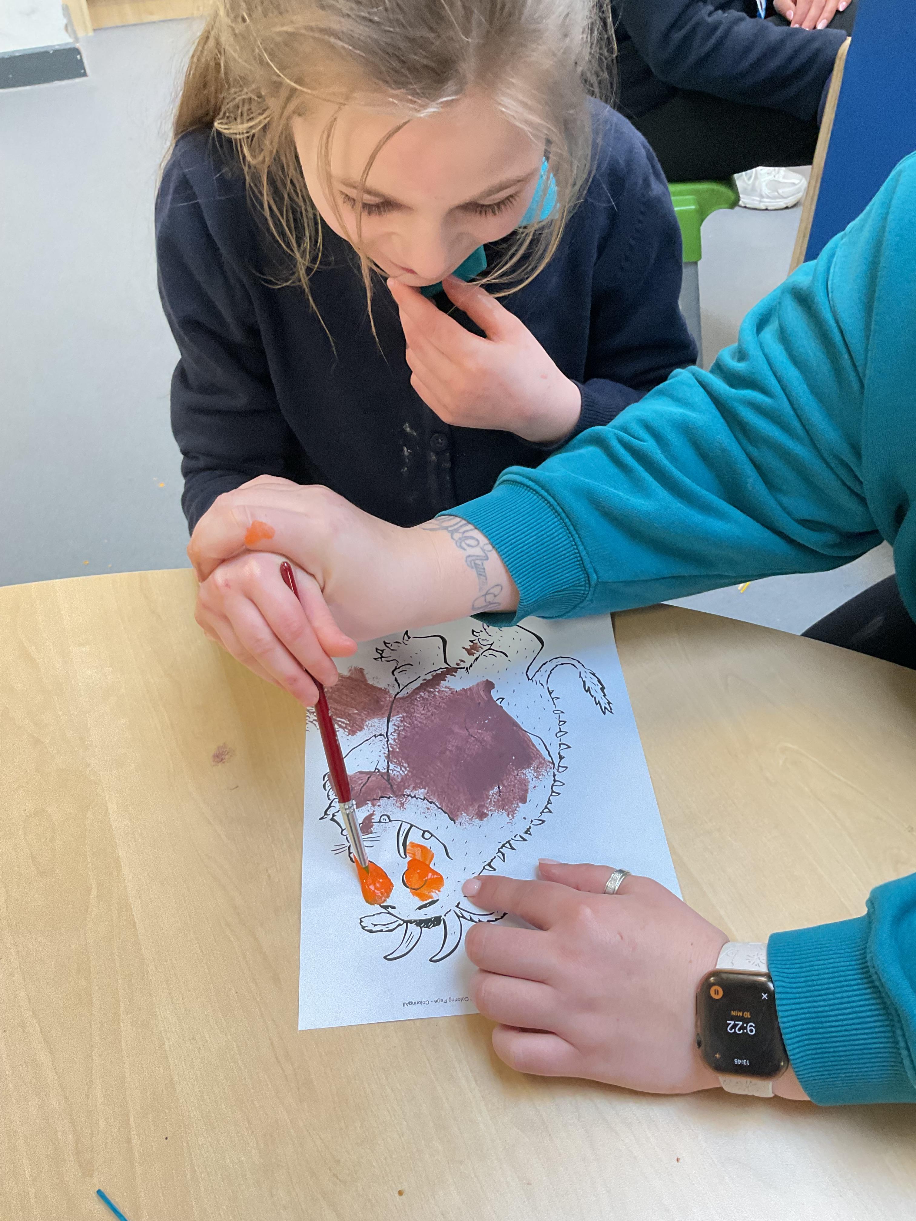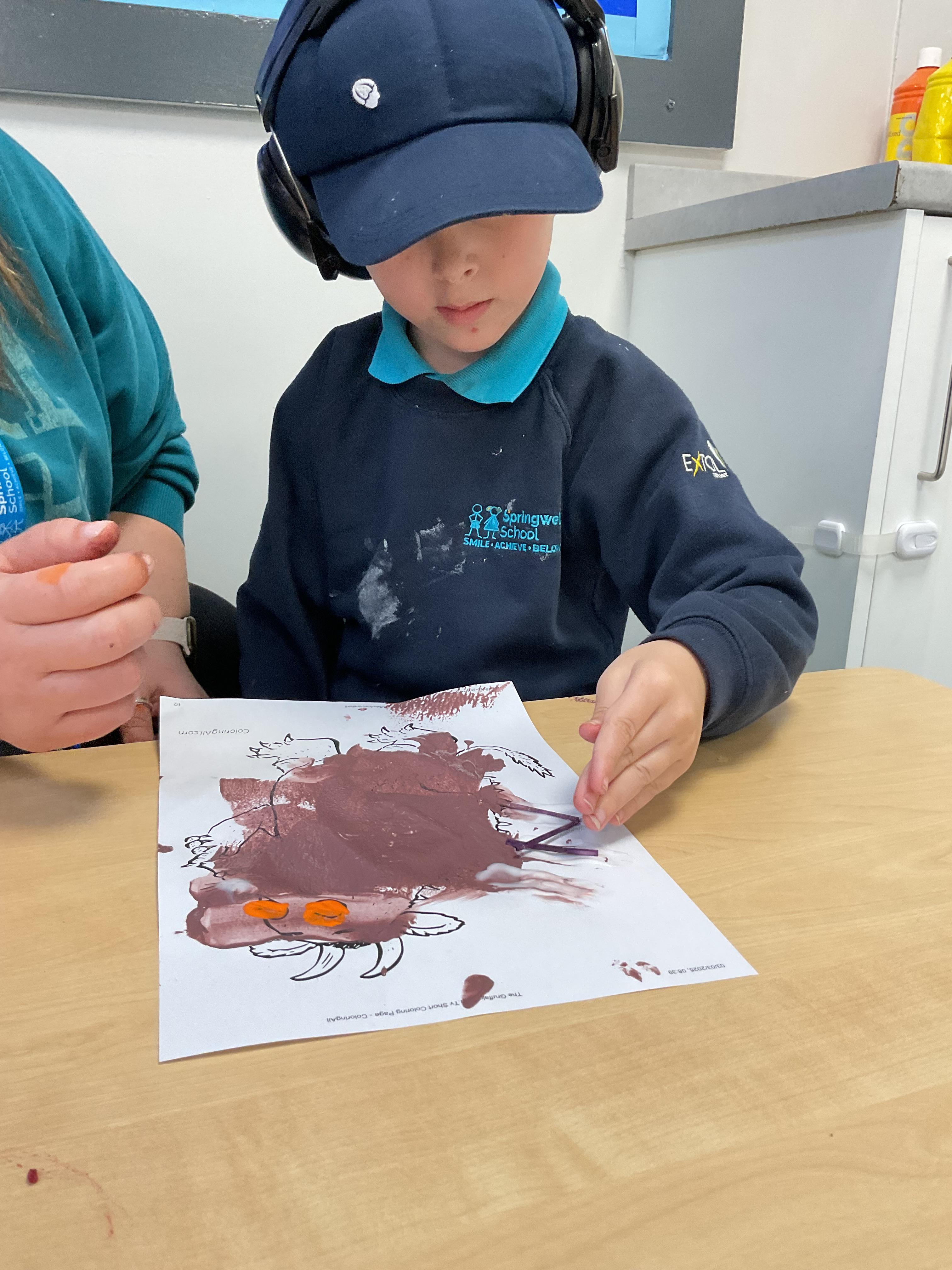 This week, the zebras have been learning about “The Gruffalo”. We listened to the story and made our own Gruffalo masks! Each child made a Gruffalo picture with his poisonous green nose, his orange eyes and his purple pricks all over his back! We used different tools to create our own Gruffalo, including a rolling brush, paintbrush and even our fingers for finger painting. In cookery, we made some delicious Gruffalo cakes. The children loved mixing the cake batter and getting a bit messy. In the middle of the week, we enjoyed listening to the Gruffalo song and dancing with our musical instruments. On Wednesday we celebrated Science Day, we had great fun exploring a range of science-themed sensory activities in the hall. We used all our senses to explore colours, water and ice. We also tried some fruit and vegetables and the children’s favourite part watched the volcano explode! In PSHRE, we continued to develop our cutting skills. We coloured in the snake from the Gruffalo and carefully worked with our adults to cut the snake out, amazing work zebras.