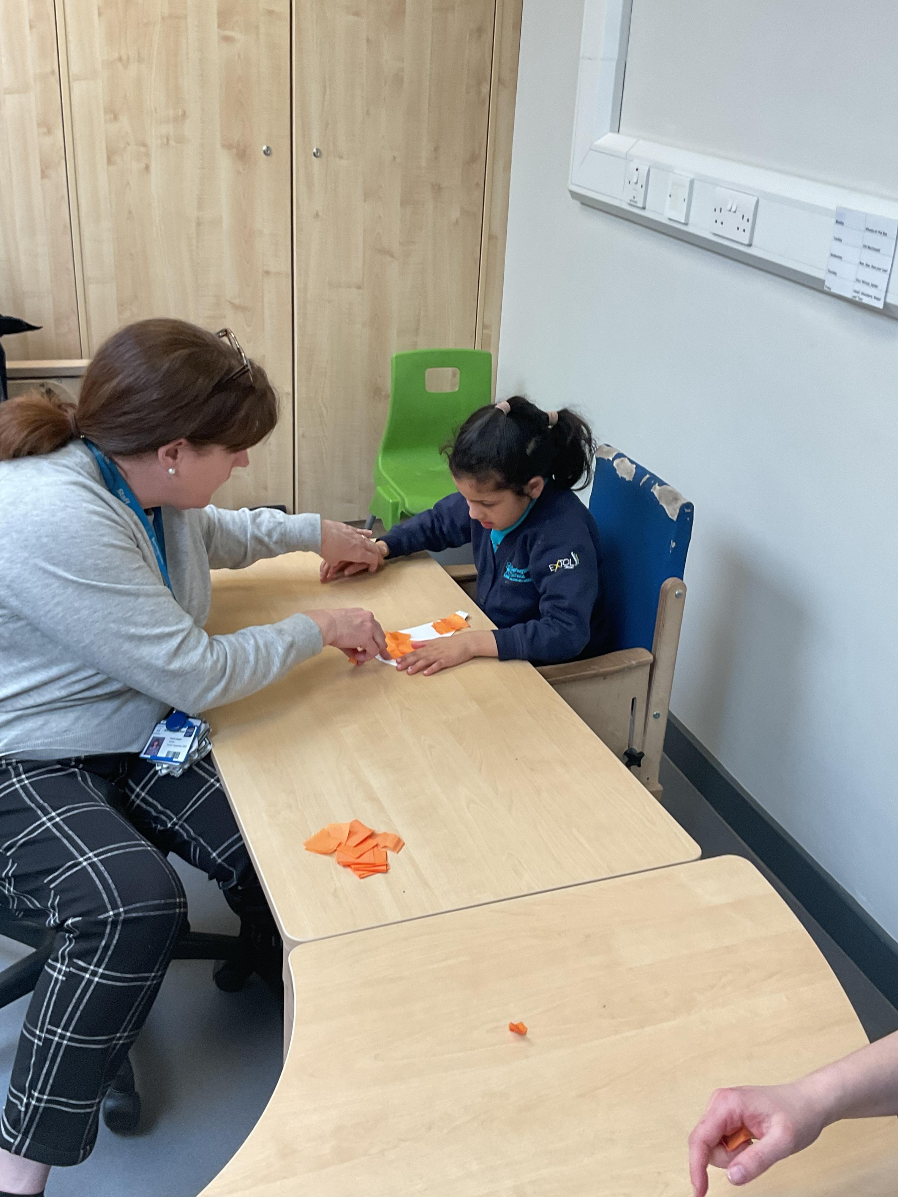 Zebras started the week making their own lion by using orange paint and a fork to mark make a lions mane. In cookery we made biscuits by exploring the diffrent ingredients then mixing and rolling the dough into biscuit shapes. We have continued to work on our communication targets this week. Working particularly hard in signing more at breakfast time and in engaging activities.