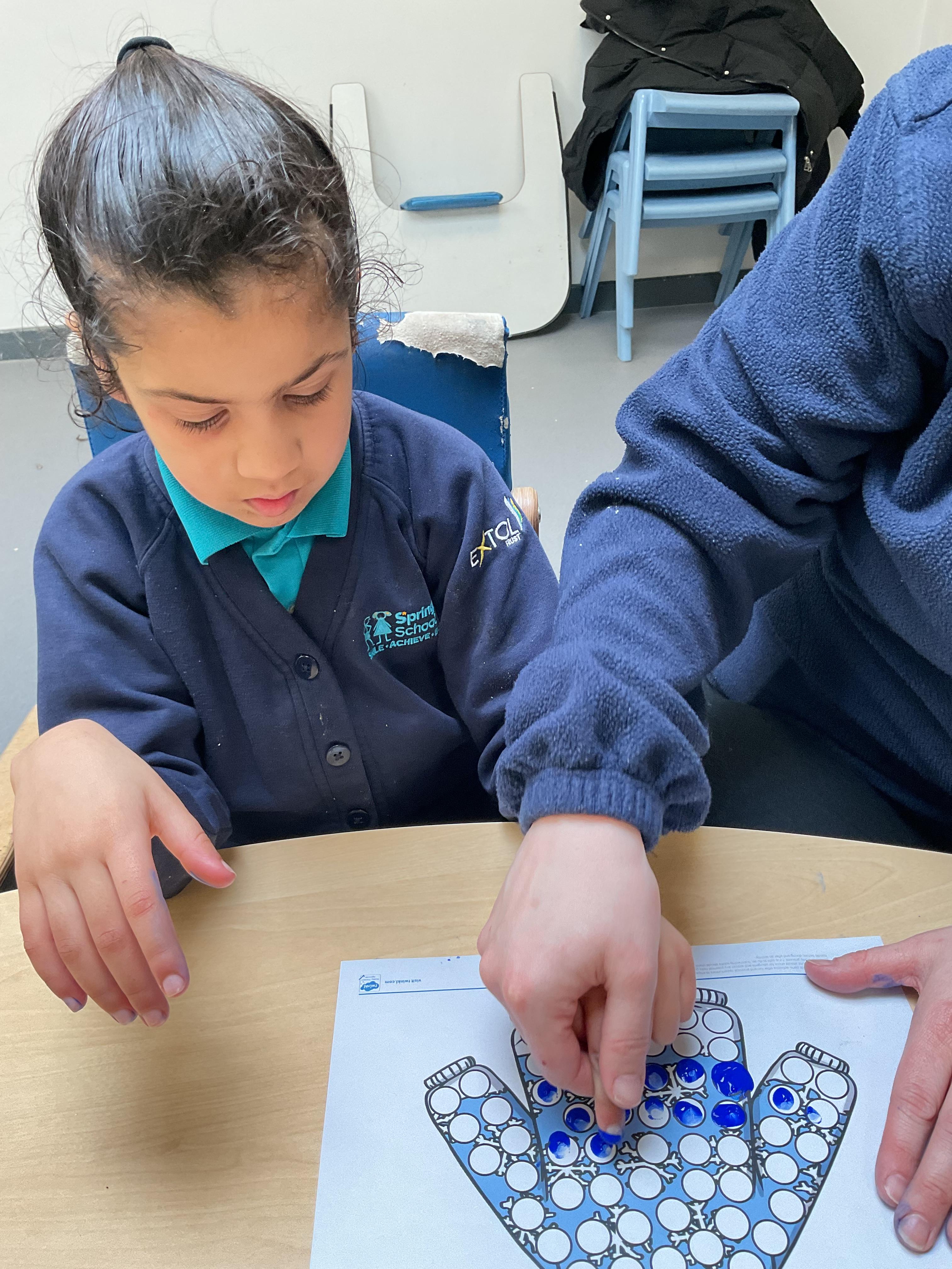 A lovely week for Zebras continuing with our story “Elmer in the Snow”, we created our own Elmer masks with lots of different colours. To improve our fine motor skills this week we have been finger painting with blue paint to make winter pictures! In music we all had a sing and dance and chose our own favourite musical instruments to play. Our favourite song was “I am the Music Man”.