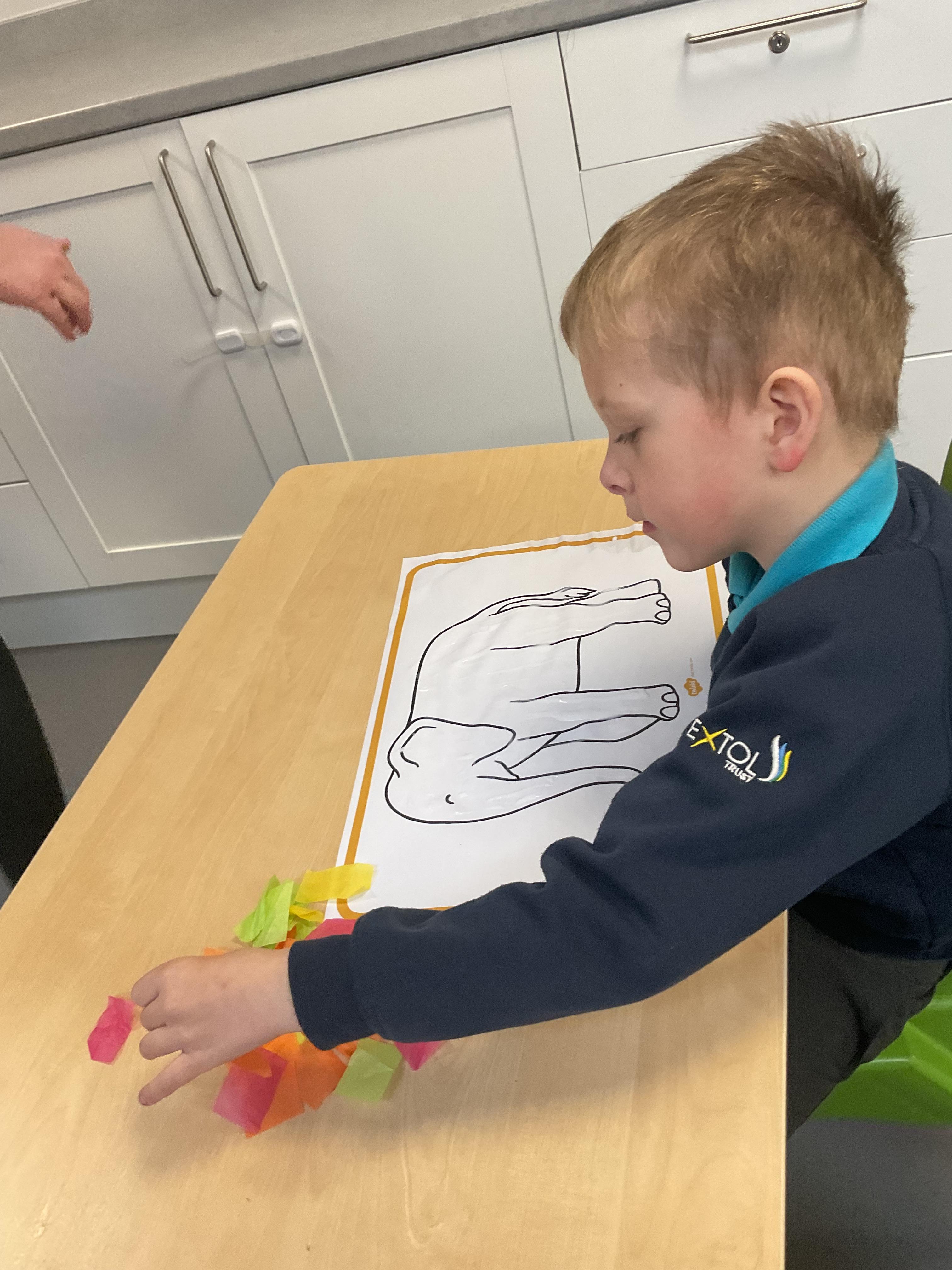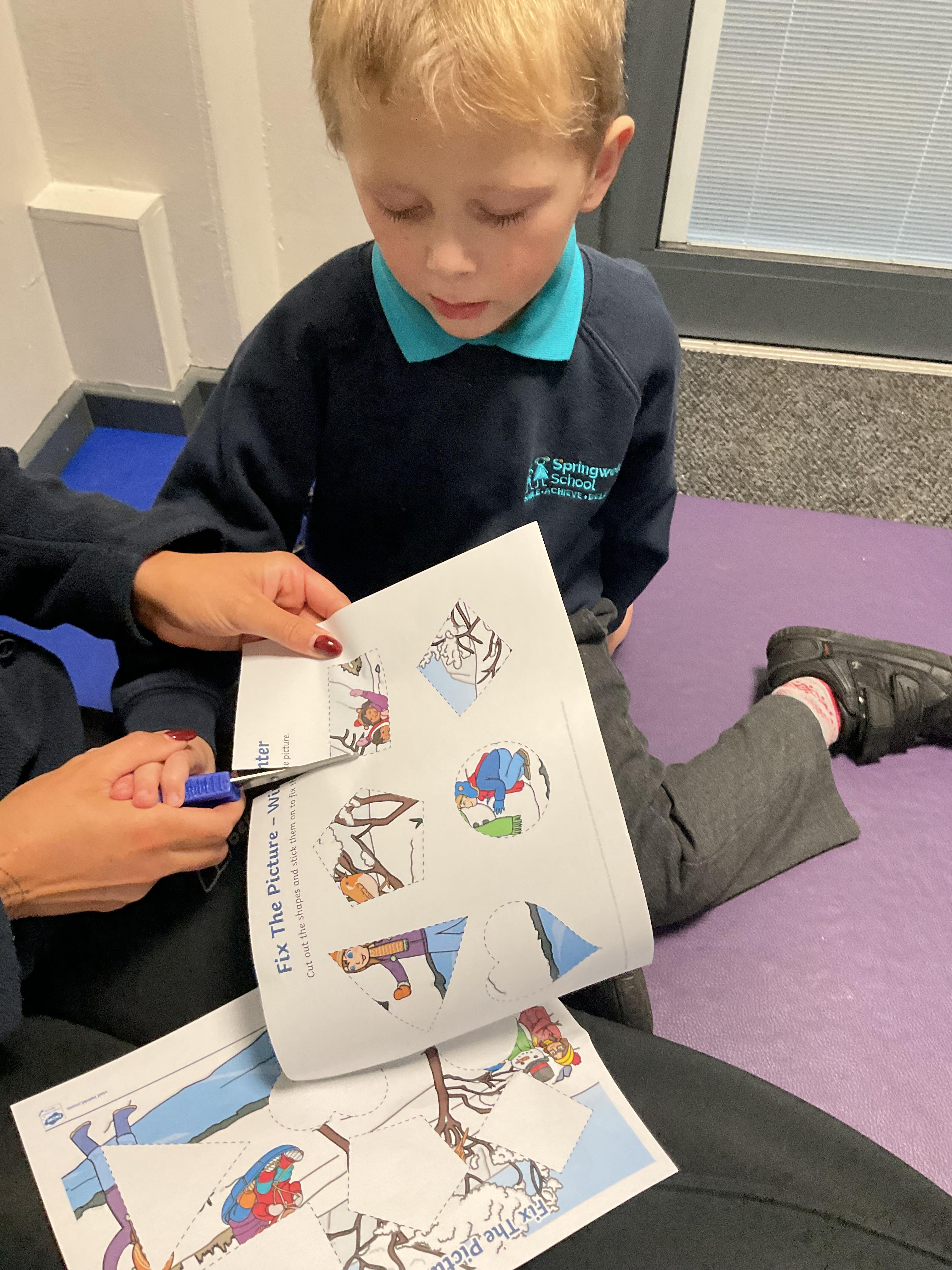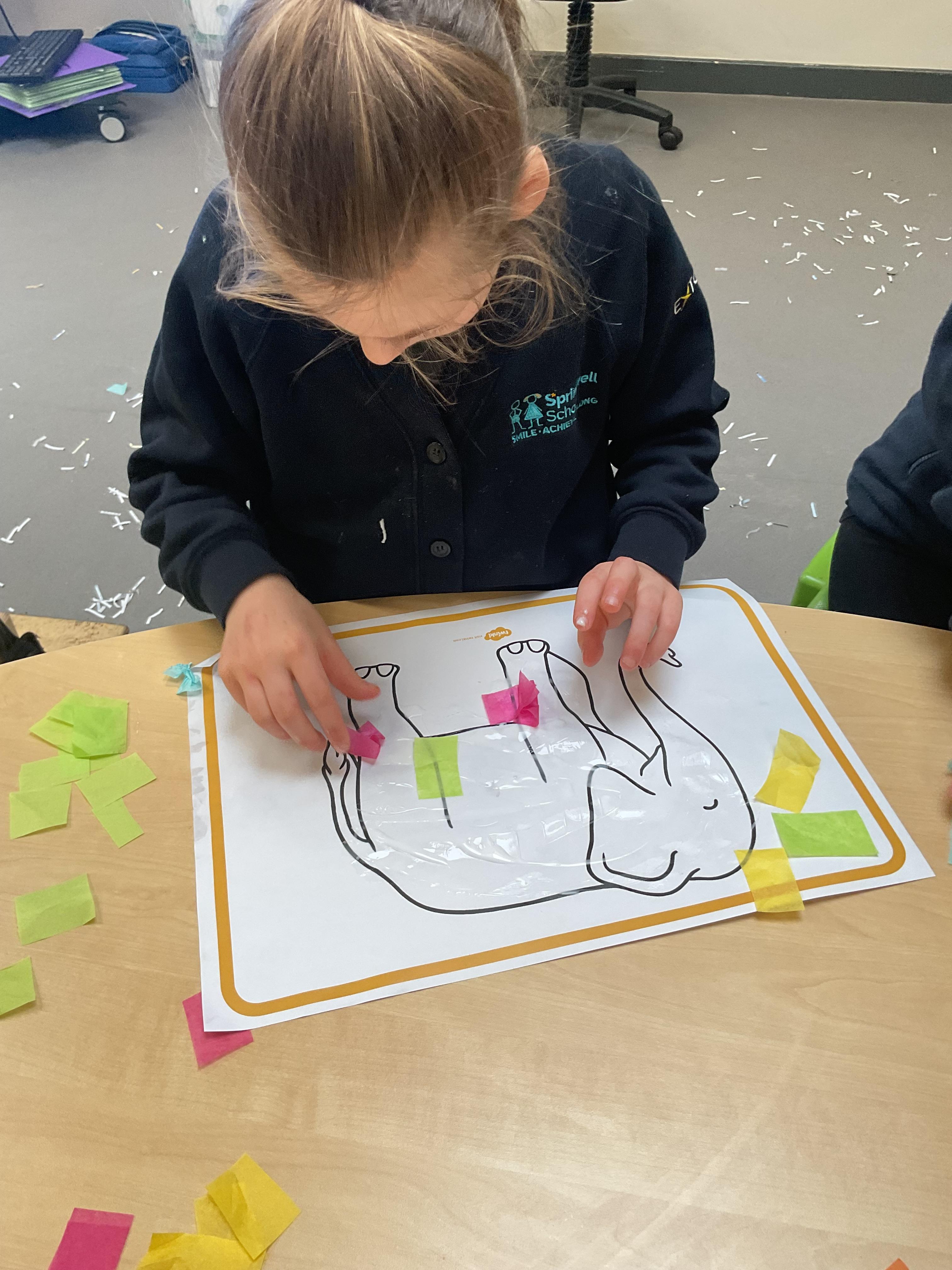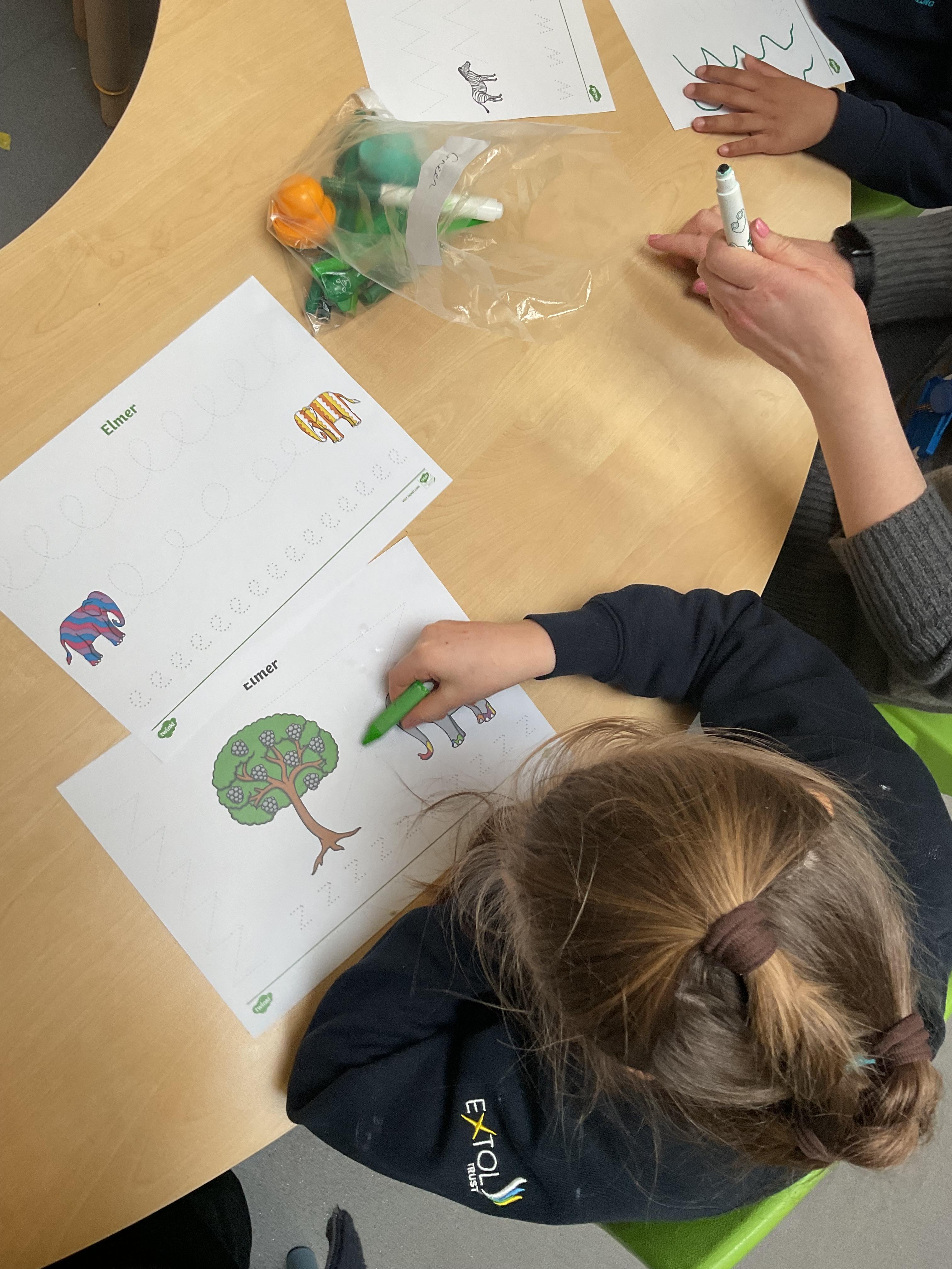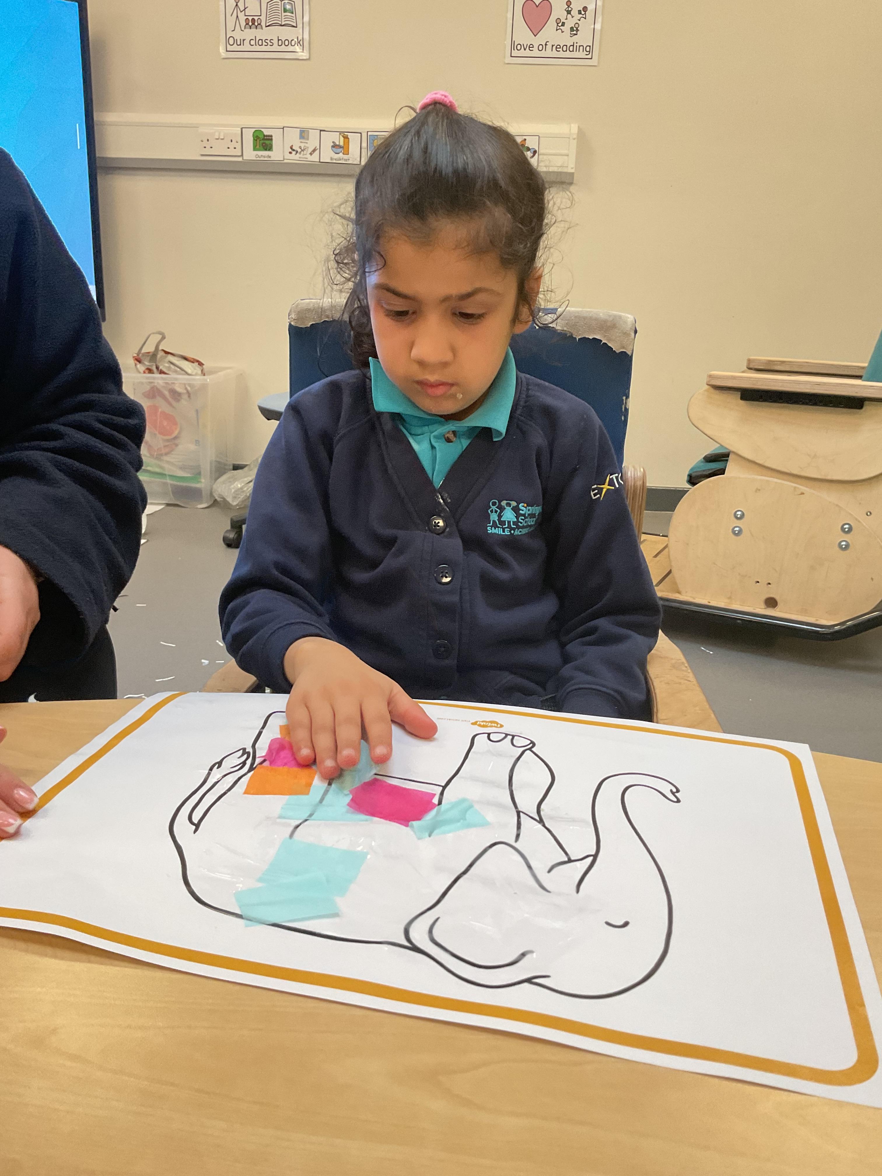 This week in literacy, Zebra class enjoyed listening to our new story “Elmer in the snow”. We explored different props from the story, tried on Elmer masks and pretended to be elephants! After, we created our own Elmer the elephants by gluing different colour tissue paper to elephants. During the week, we worked really hard in practising our fine motor skills. We all focused on holding a pen correctly and forming some marks, we finished with an exciting song of dough disco! The children's favourite part of the week was getting messy in our sensory lesson. We got to touch and taste some cold ice, then went outside to make marks in the shaving foam and feel diffrent textures of the pasta. In PSHRE, we all tried very hard practising cutting skills with our adults.