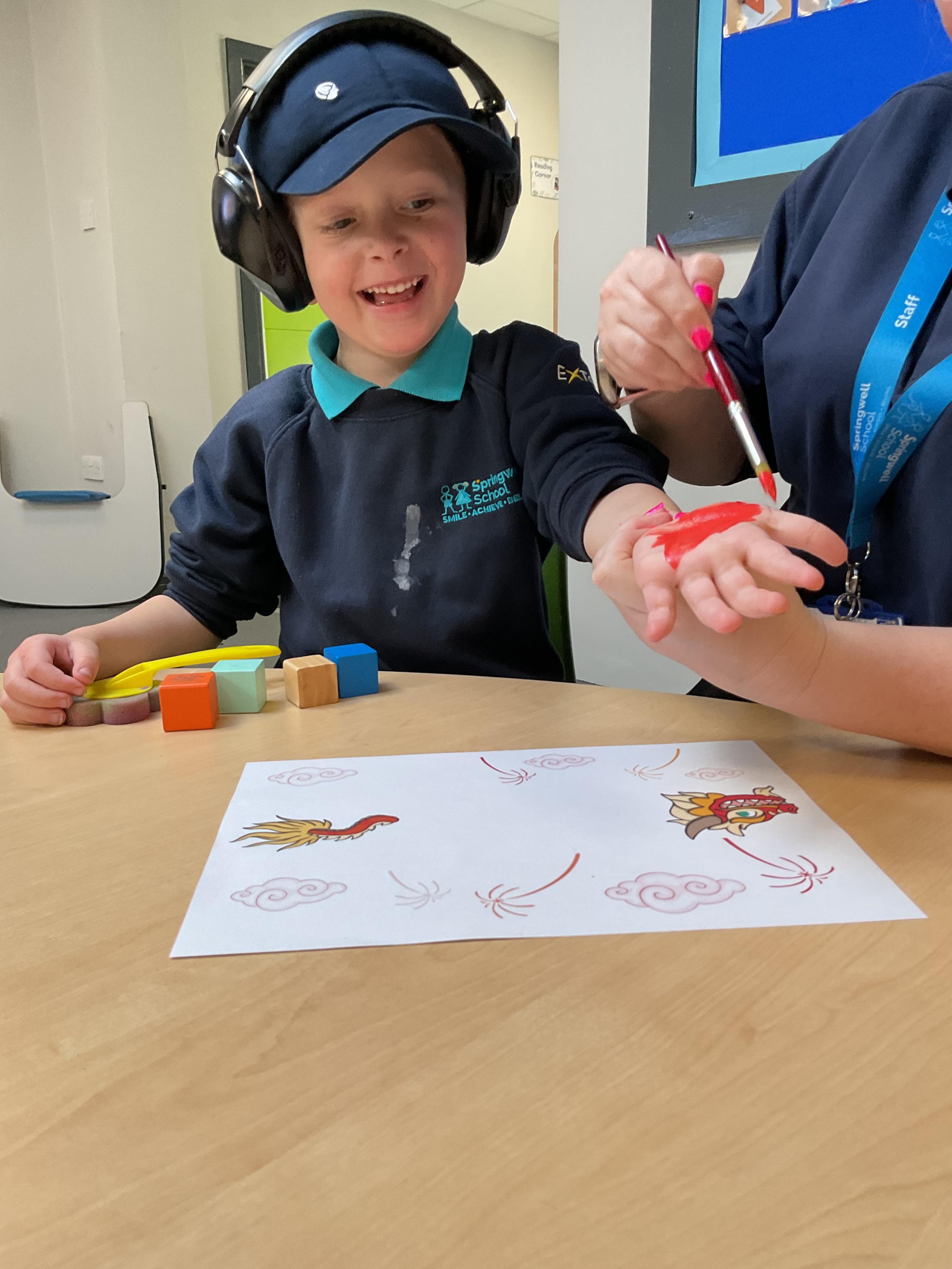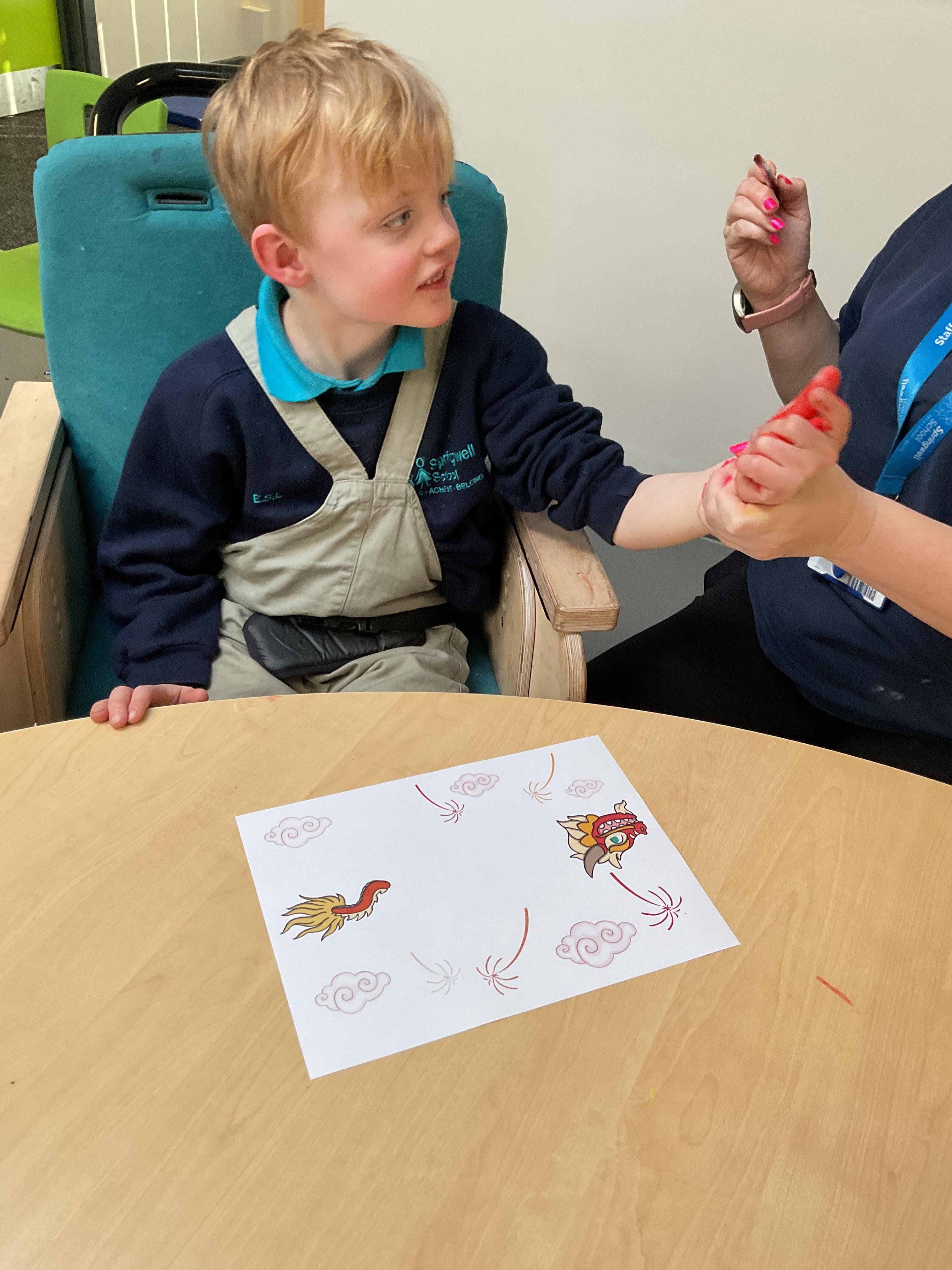 A very busy week in zebras, learning all about our new story “Polar Bear, Polar Bear, What Do You Hear?”. We started the week making polar bear pictures with white paint and forks, the children all joined in with this activity independently and enjoyed getting a little messy. We then continued making snowflake pictures with glue and cotton wool. All children explored Chinese new year on Wednesday, they explored new foods like curry, rice and noodles. Zebras made their own Chinese dragons by painting their hands red and yellow. We finished the week getting out into the community, developing our walking skills. We enjoyed a cold walk around summerhill, taking turns to walk with reins. The children enjoyed taking in the nature and were even lucky enough to see a horse galloping by!