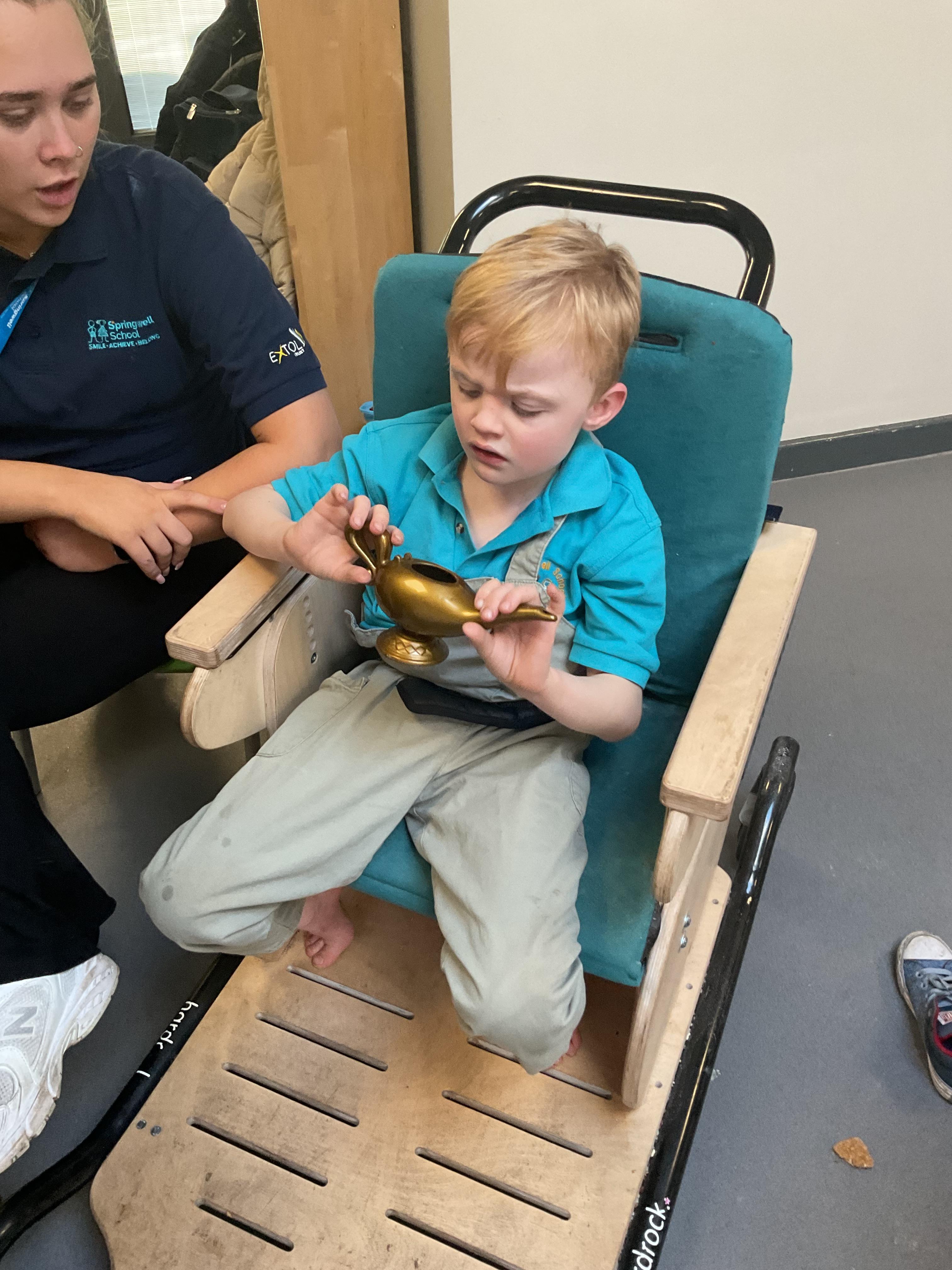This week in Zebras, we have had lots of fun and worked really hard. In PSHRE we have enjoyed getting out in the community and developing our walking skills. We used reins and took turns walking. We had a nice long walk around the Headland on Thursday. Also, on Friday we had a walk around our local community. The children did an amazing job, we are so proud of them. In Maths, we have been singing counting songs. The children were given choices of which song they wanted and we used the packs and props to act them out. The library ladies came in for a visit. Joanna read the children a sensory story of Aladdin using props - they had lots of fun exploring them. They even made their very own genie lamps that they brought home, we hope you enjoyed them as much as we enjoyed making them! In cookery, we made some scrumptious iced cupcakes. The children enjoyed getting messy and exploring all the ingredients. They took turns pouring and mixing in the ingredients. We shared the cupcakes out for snack time, they were delicious!