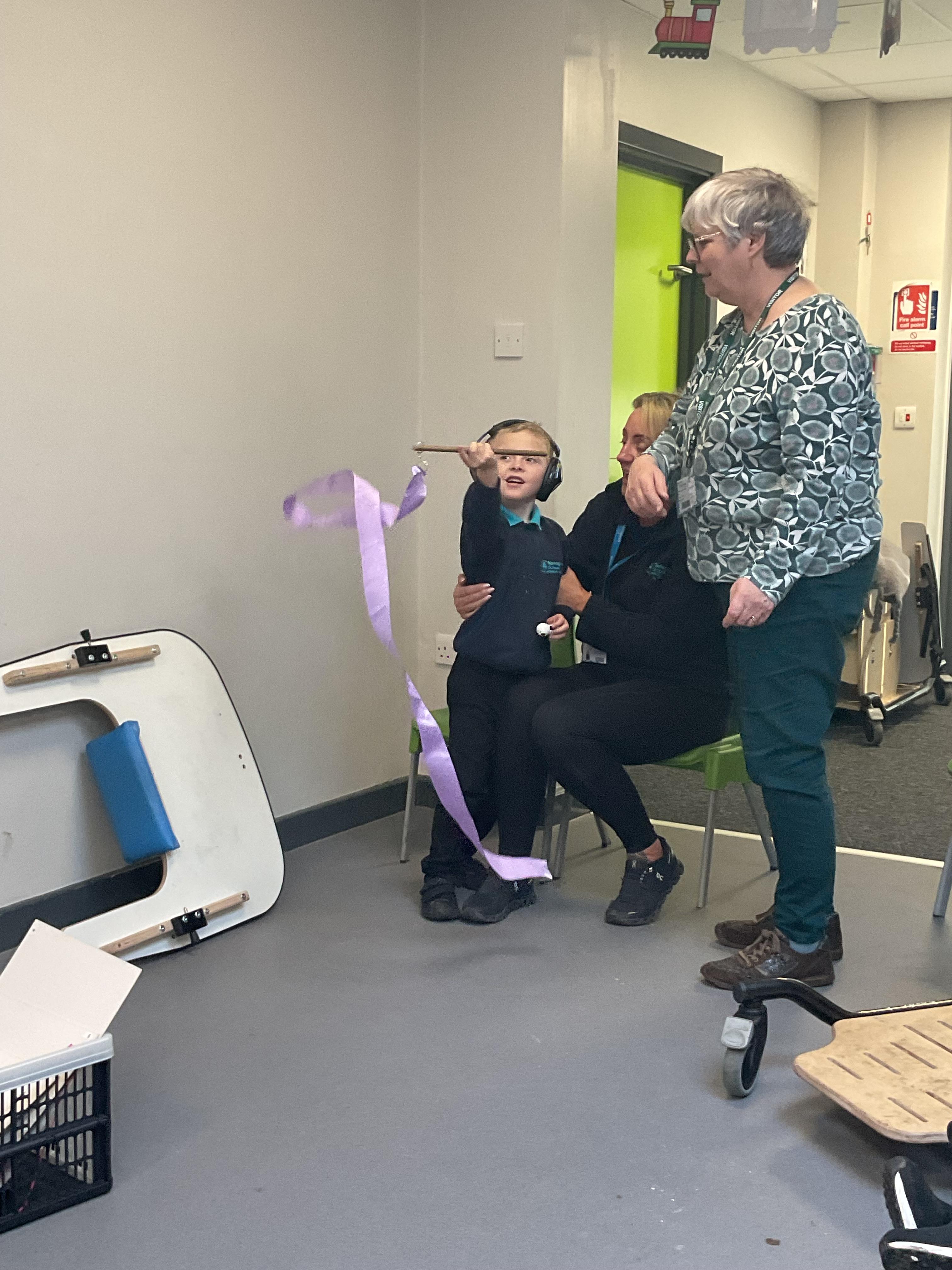 • We participate in rebound therapy weekly to develop our physical skills as well as our listening and attention skills.