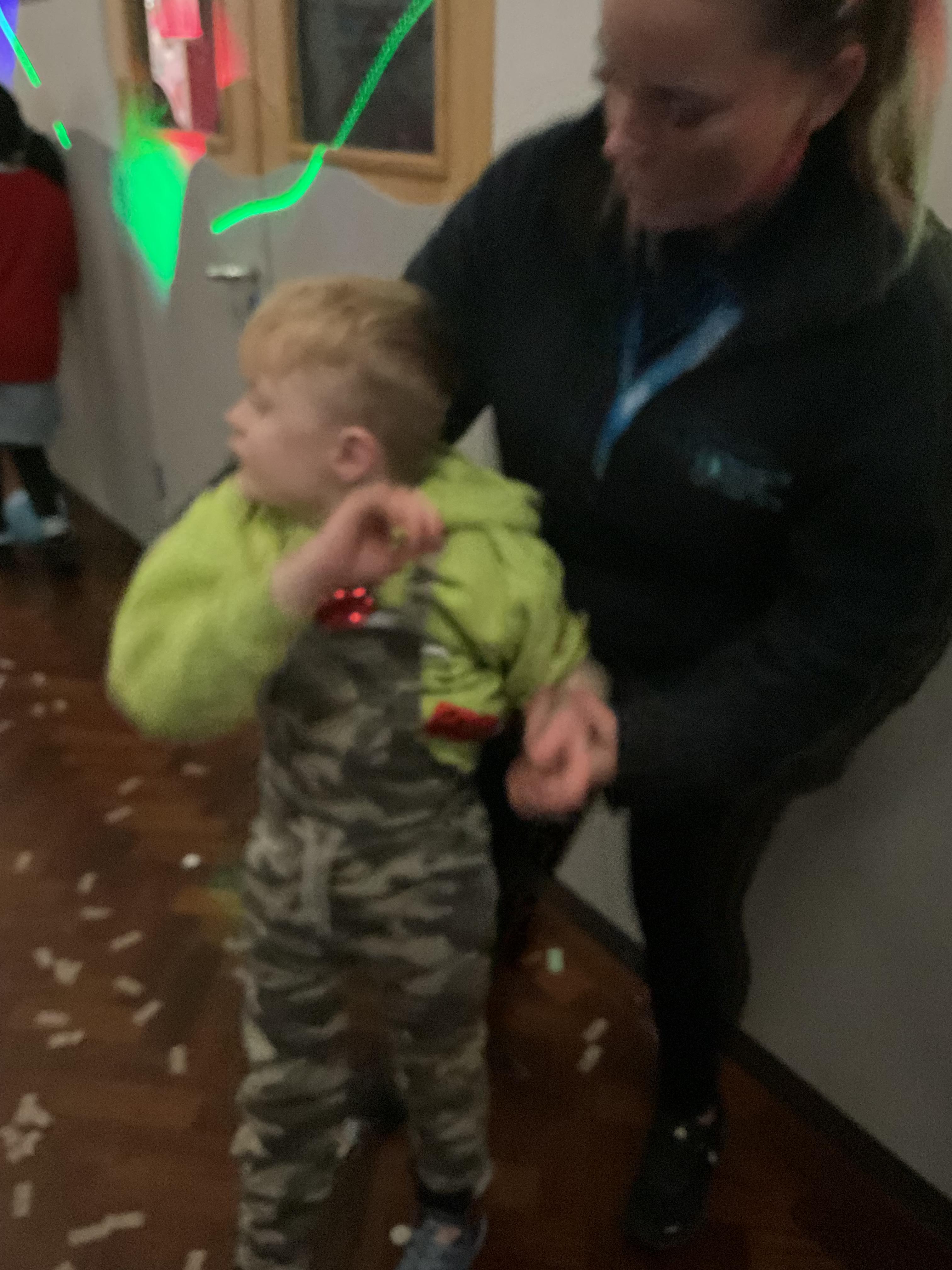 A lovely Christmas filled day today for Zebras, making Christmas cards on the morning. Developing our fine motor skills by finger painting with our favourite colours. On the afternoon a special visitor, Gav the Dj man, visited our party and played our favourite songs. We danced at the party, played pass the parcel, won lots of prizes and ate party food!