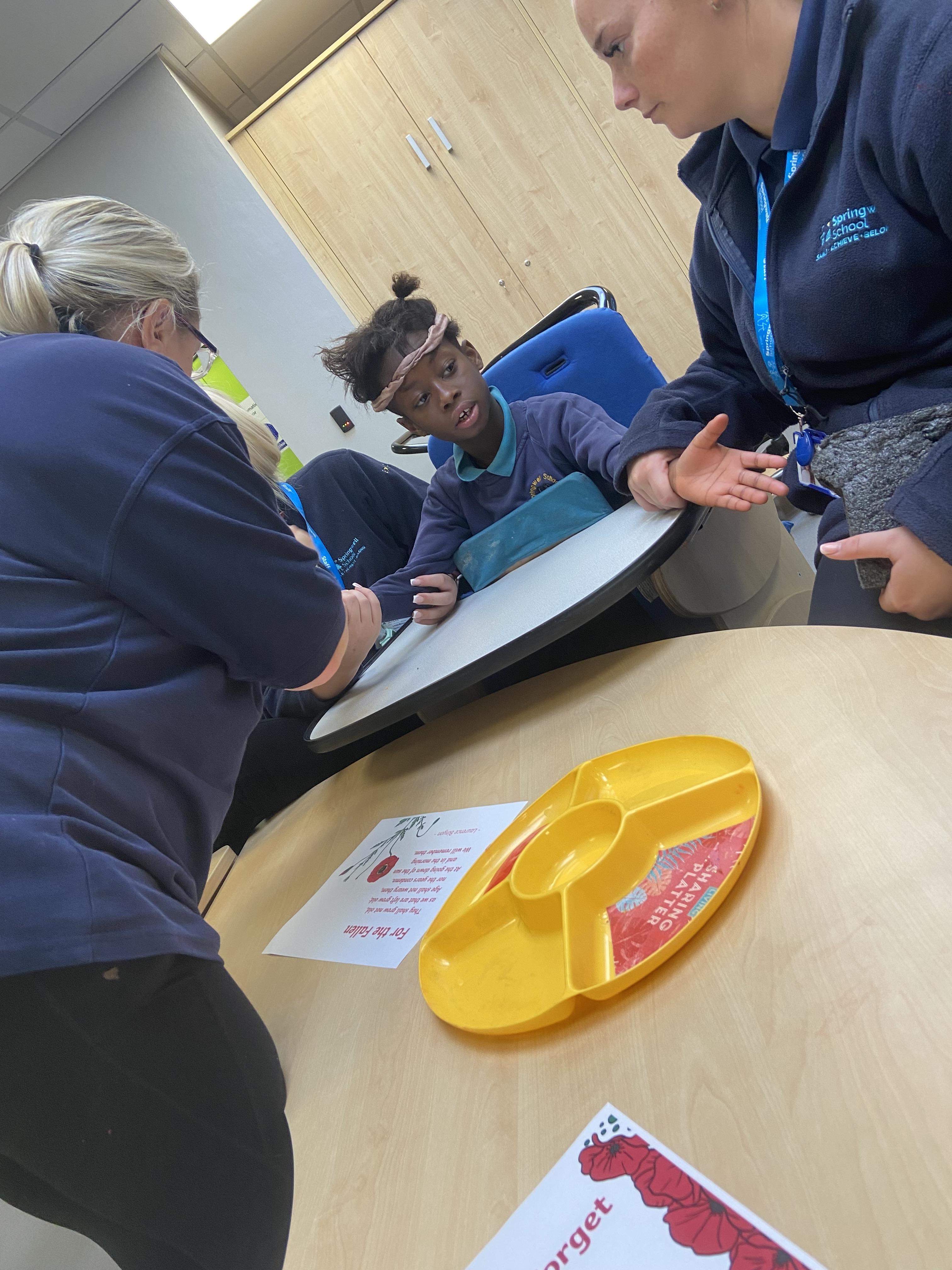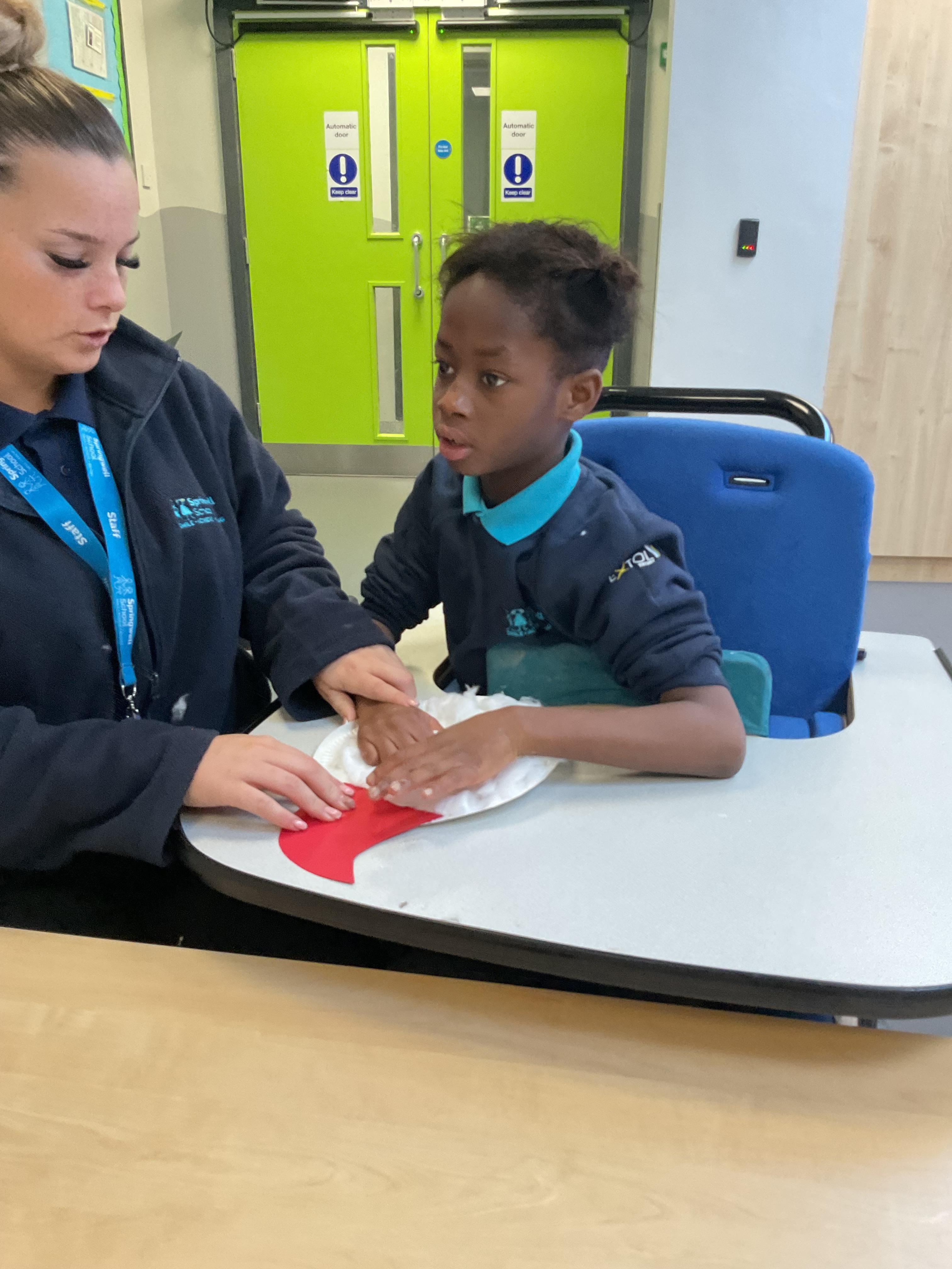 This week in Zebra Class, we have been learning about Remembrance Day. On Thursday, we headed to the Headland on the bus and looked around the War Memorial in Redheugh Gardens. It is dedicated to Hartlepool civilians and servicemen who lost their lives in the First and Second World War. During the afternoon, we used potatoes to print our very own poppy pictures - we needed to use our fine motor skills to manipulate the potatoes and press down. On Friday, we completed another art activity and painted our hands to look like poppies to make Remembrance pictures. They looked fantastic! Some of us enjoyed the sensory tactile feeling on the paint on our hands more than others.
