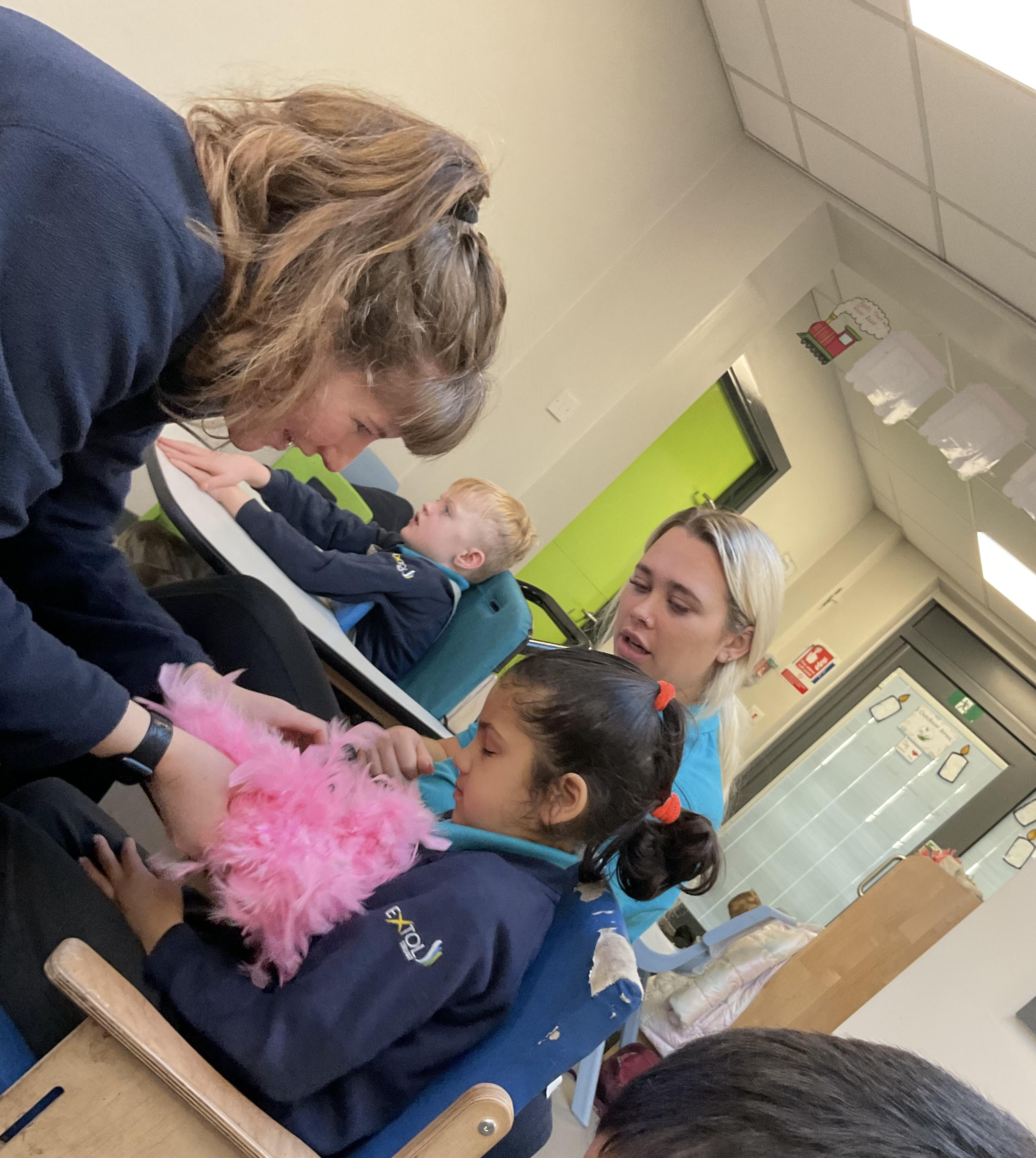 Today, all children were fully engaged in attention autism. All children explored bubbles, feathers, flashing spinning lights and balls. Good sitting and attention skills Zebras!