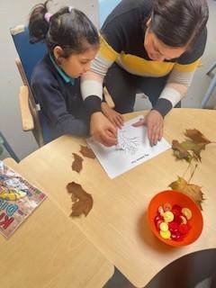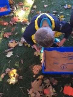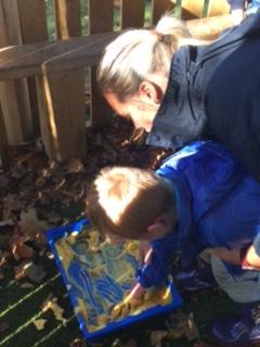 Then, later in the afternoon, we had invited parents into the classroom to "Share a Story." We shared the sensory story "We are Going on a Leaf Hunt" with our parents and went outside to collect some leaves. We then created some artwork and had some cake! Everyone had a great time. Thank you to our parents for visiting!