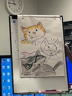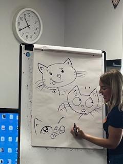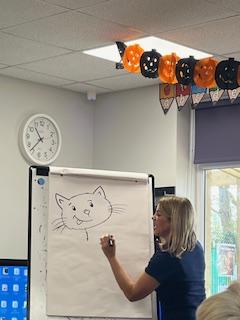 We have had a really busy day today! This morning we had a visit from an author- Liz Million. She was fantastic and taught us how to draw cats. We all tried really hard and produced some lovely work.